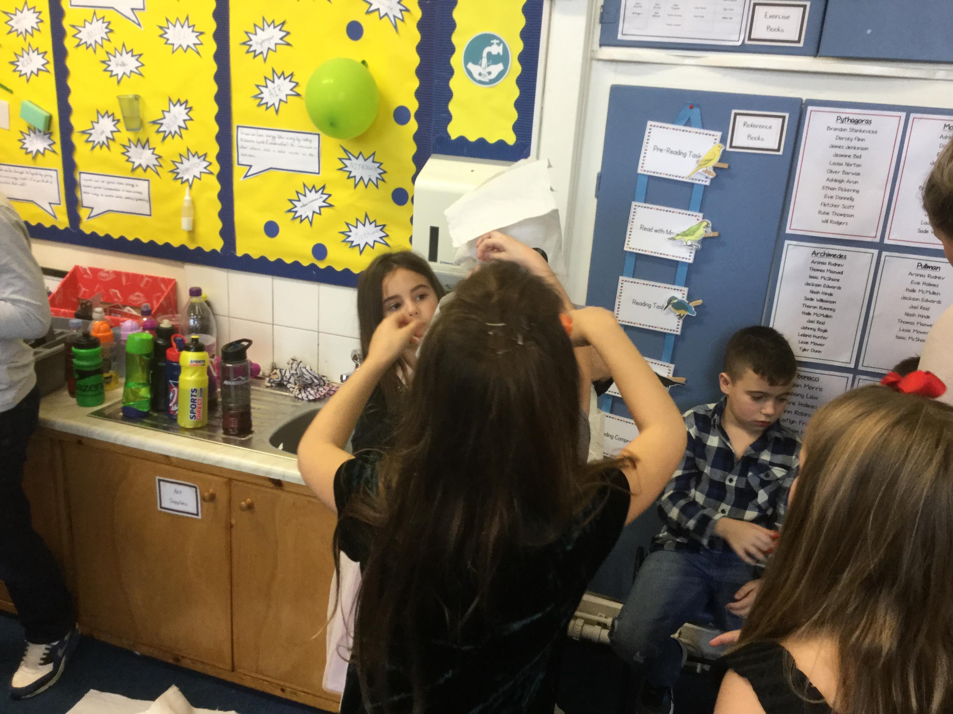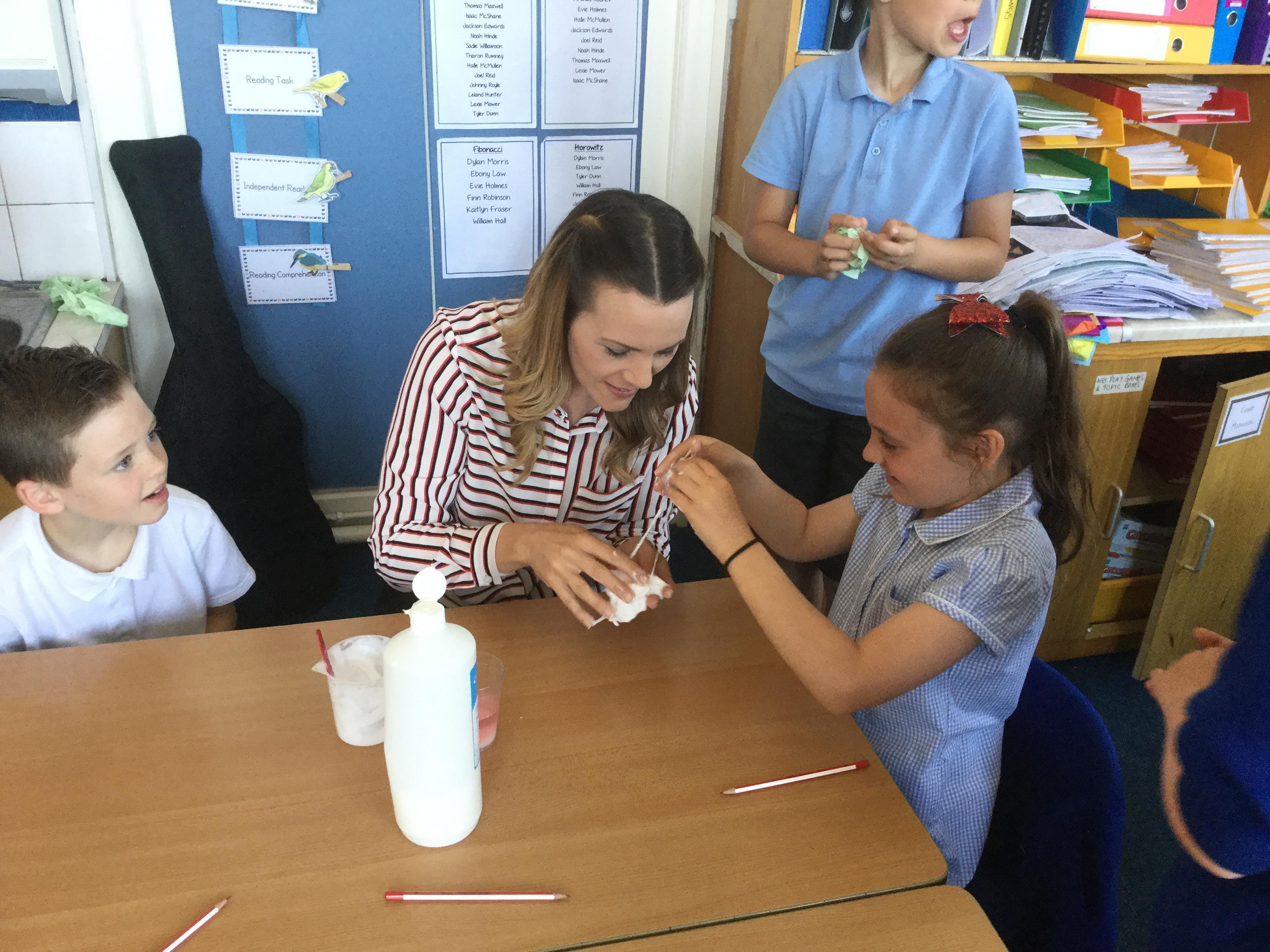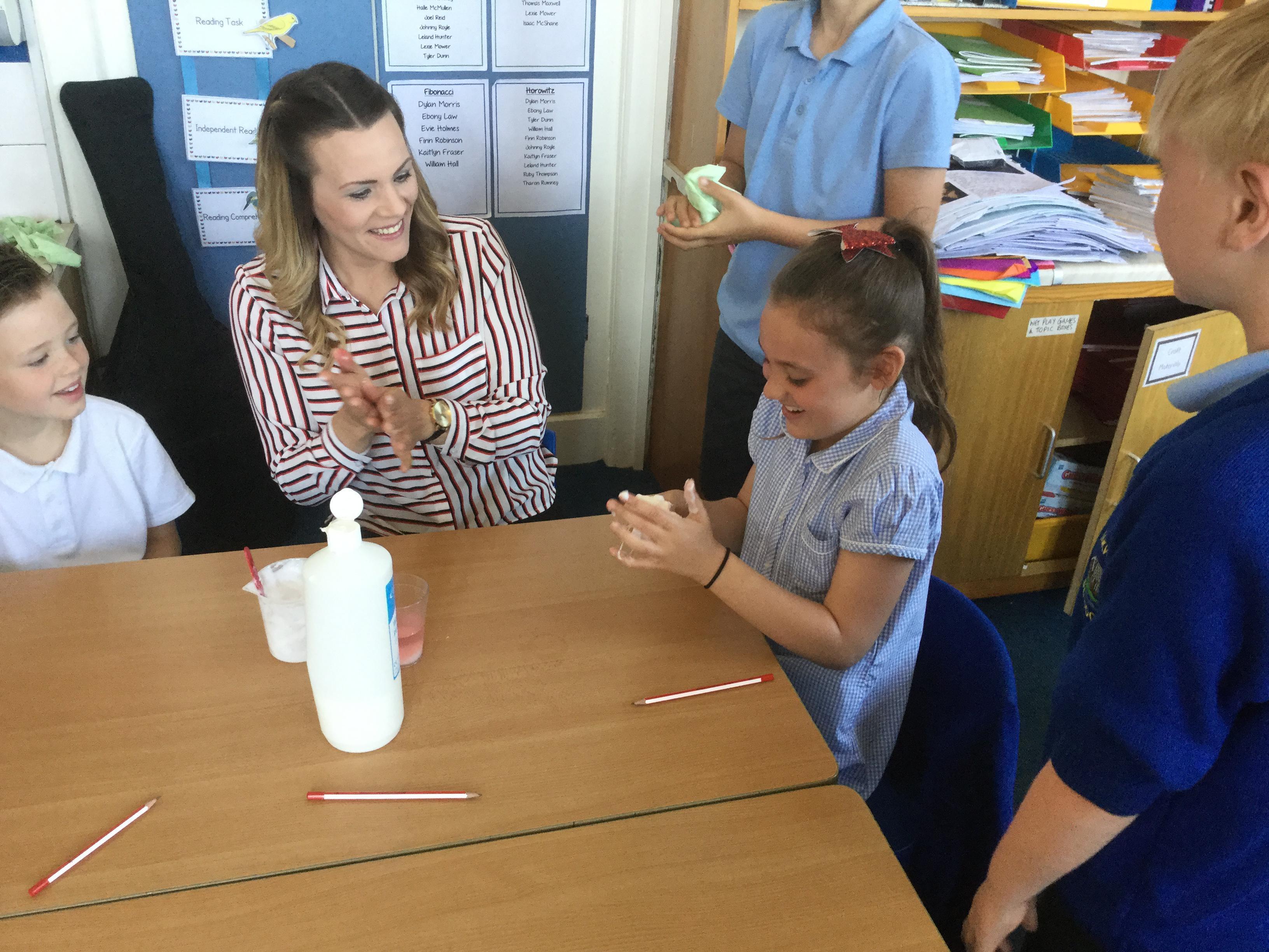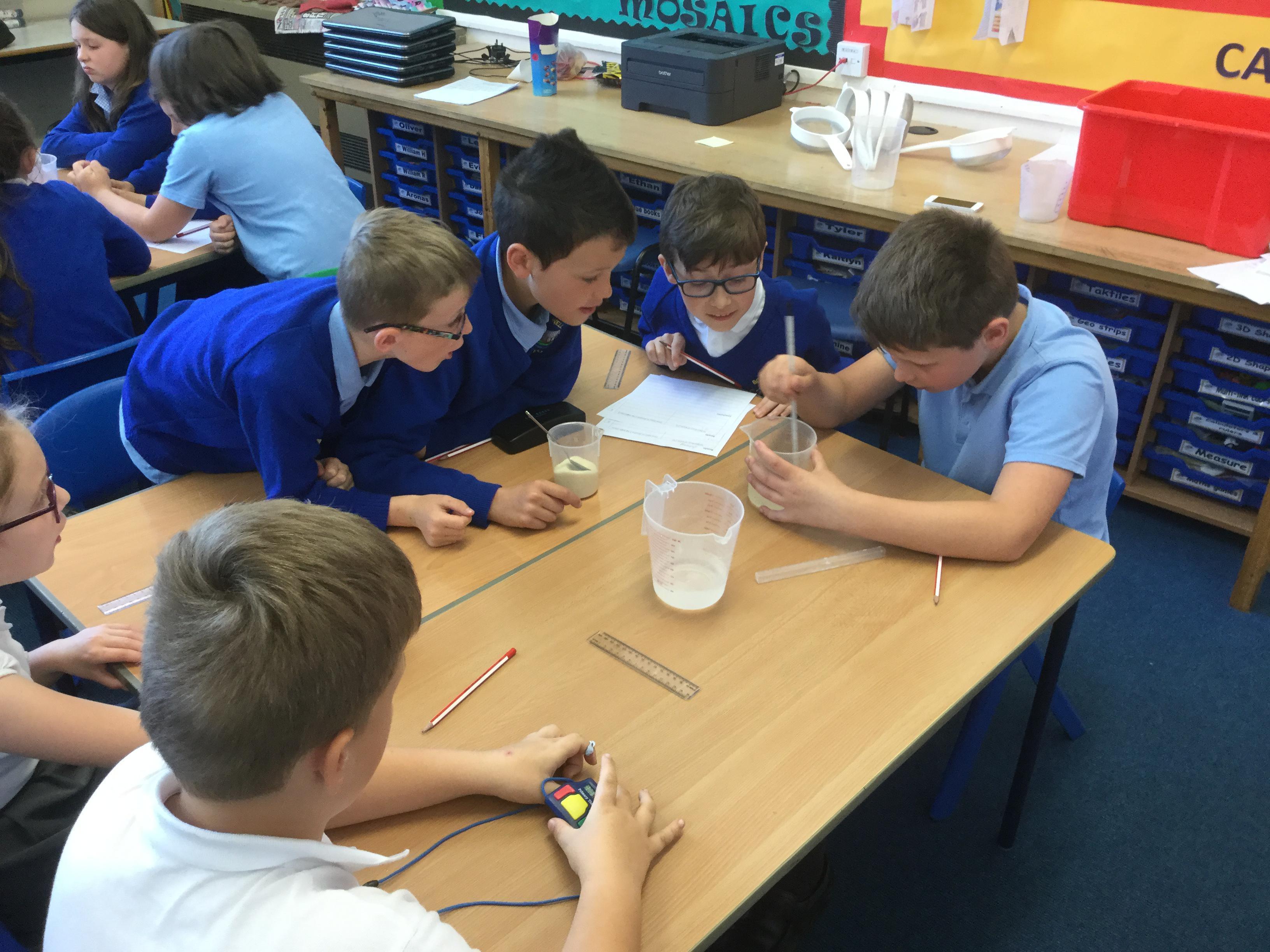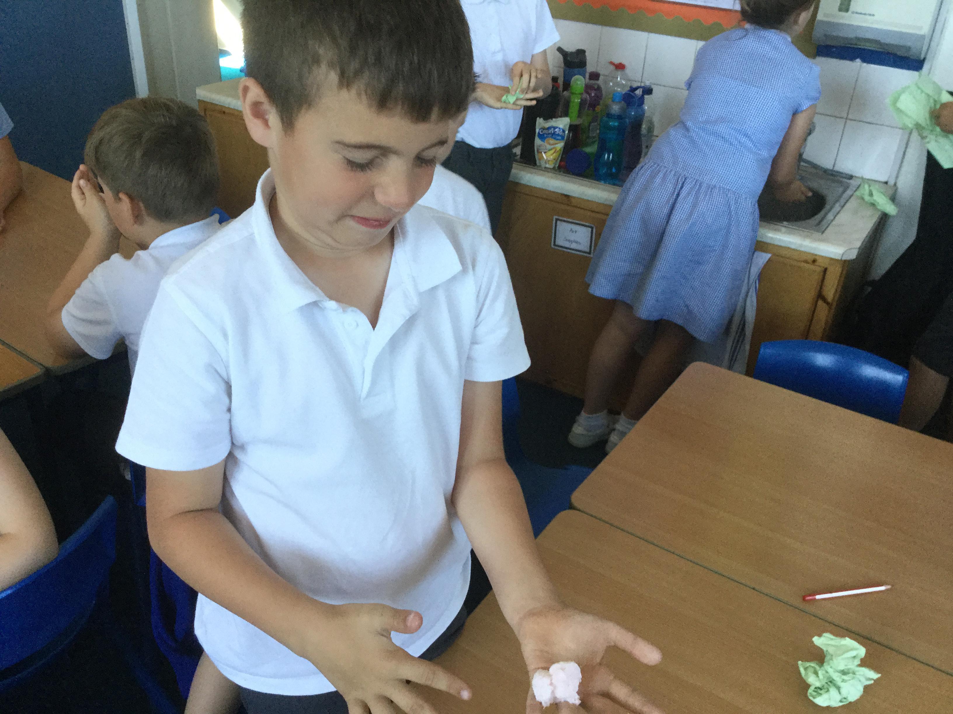 In Science we have been looking at reversible and irreversible changes. We carried out an investigation to see how temperature affected how quickly sugar dissolves (reversible with evaporation) and made plastic using milk and vinegar (irreversible).  It was a lot of fun but a little smelly!