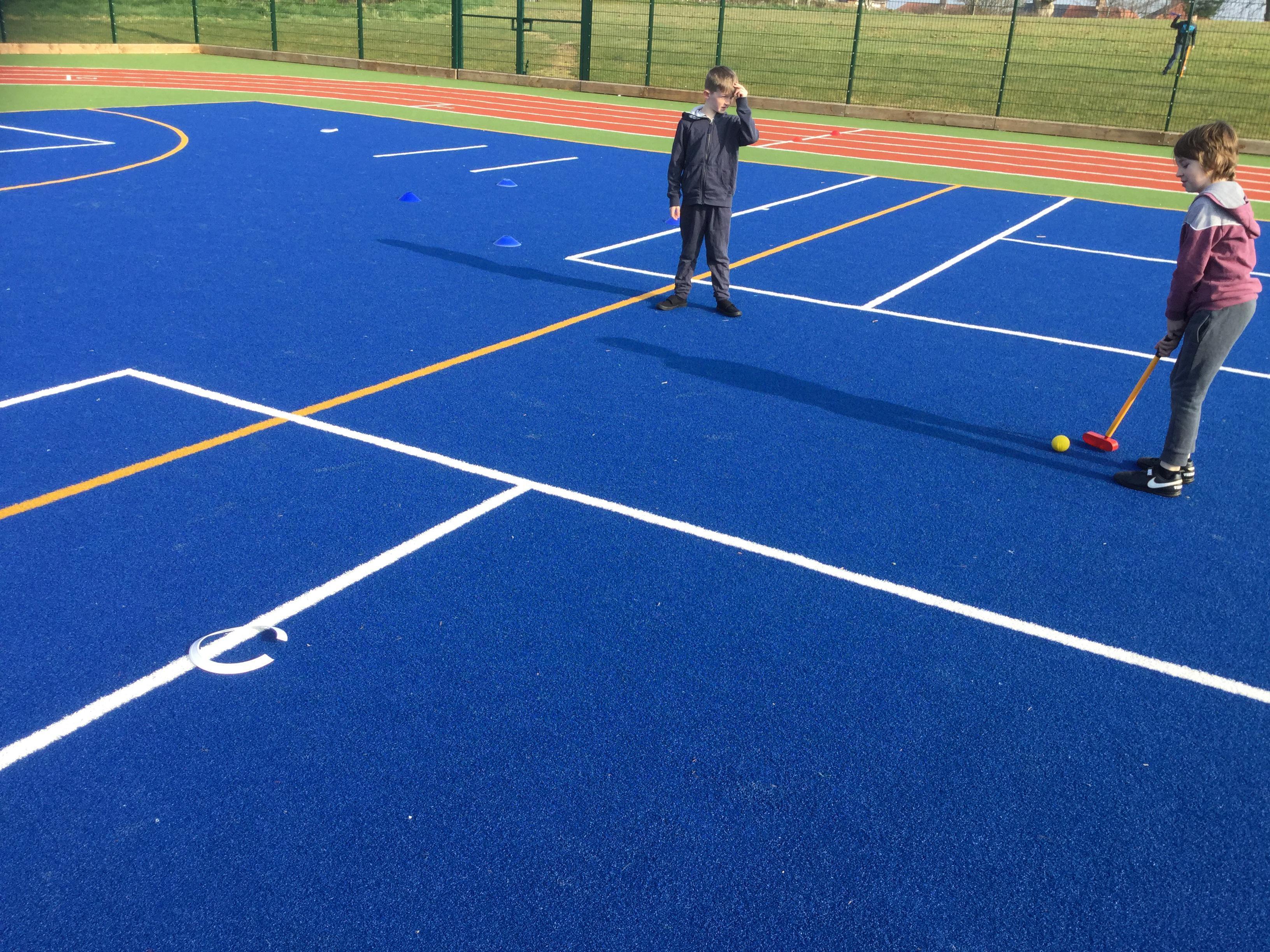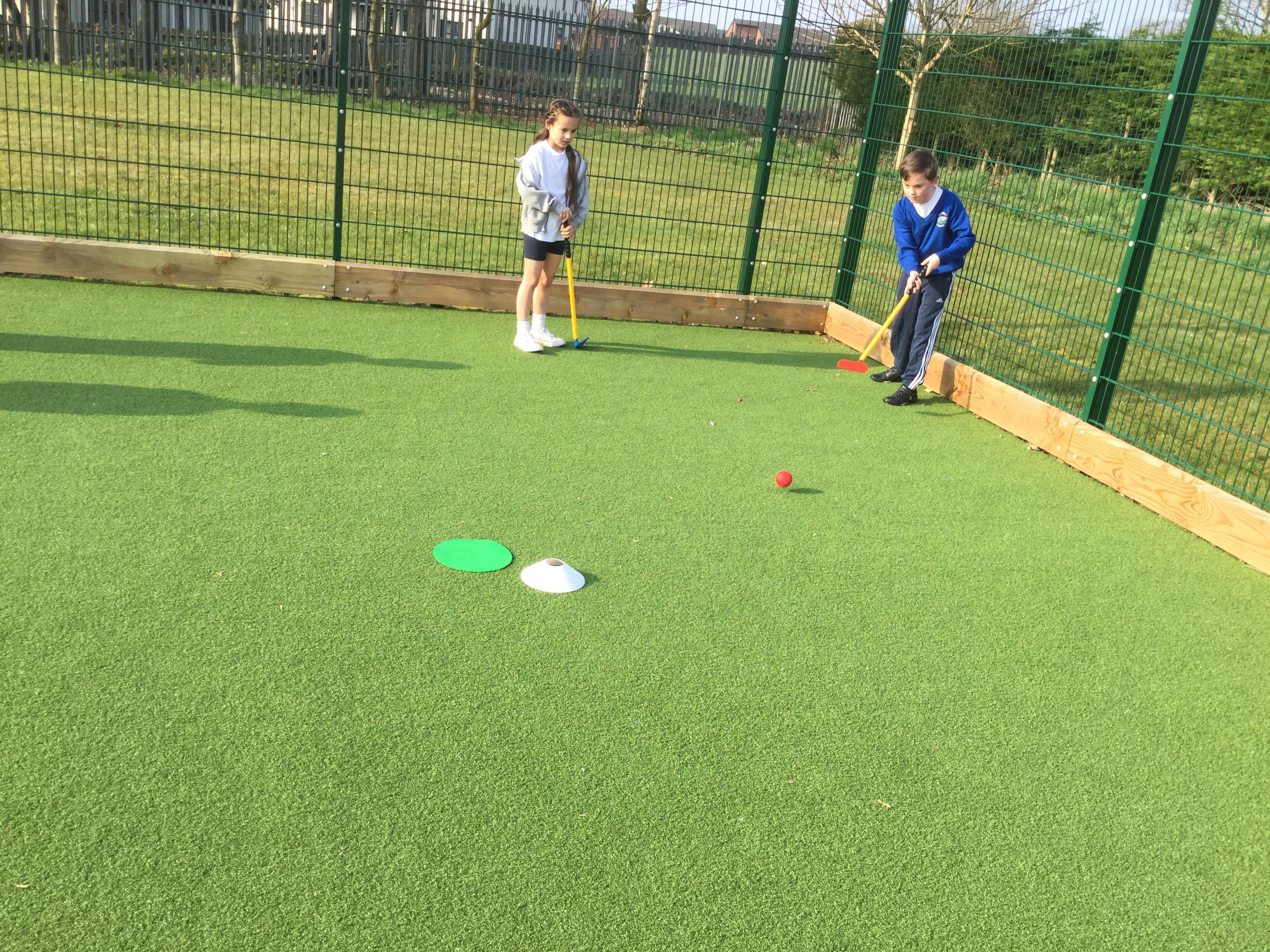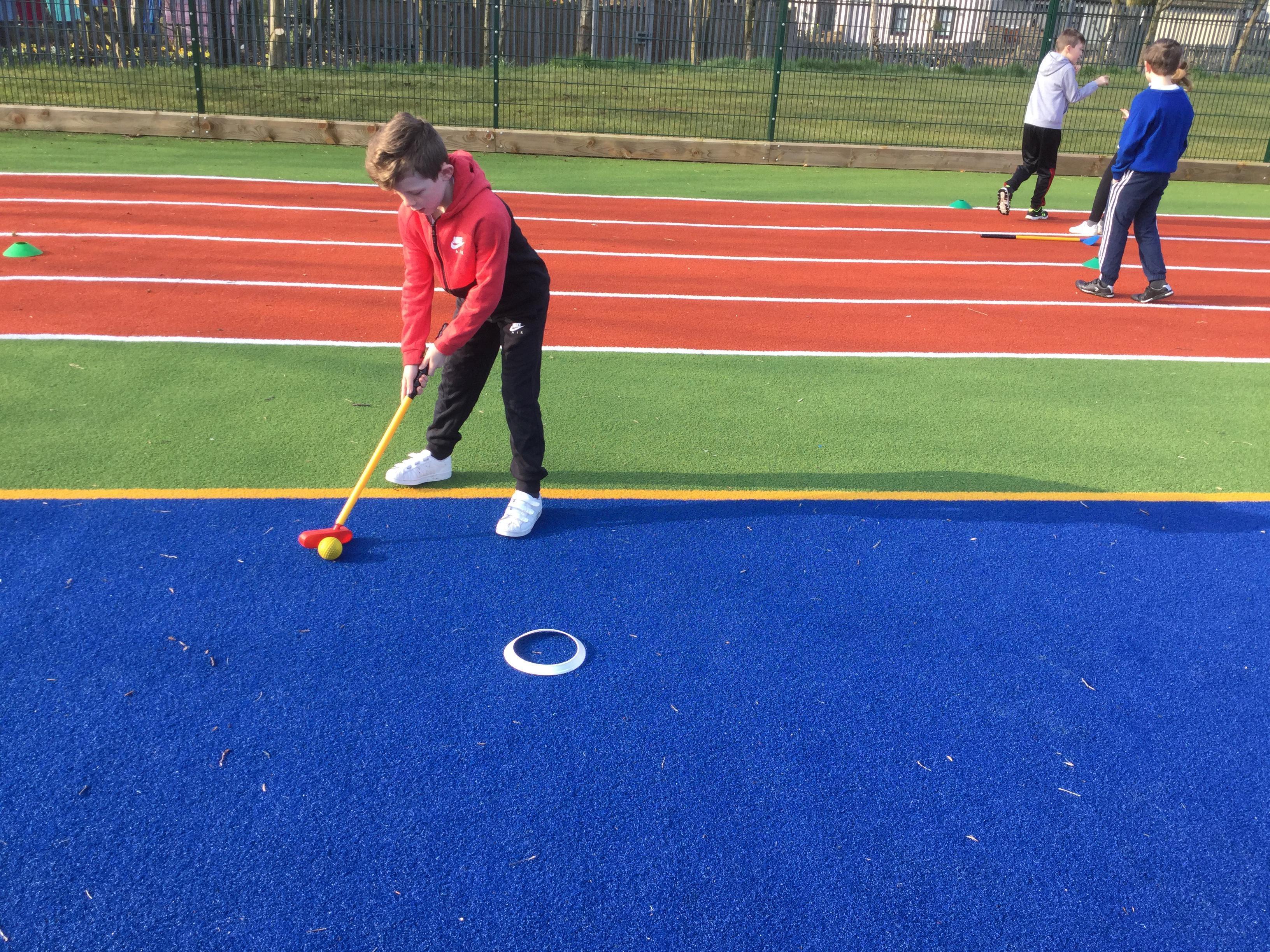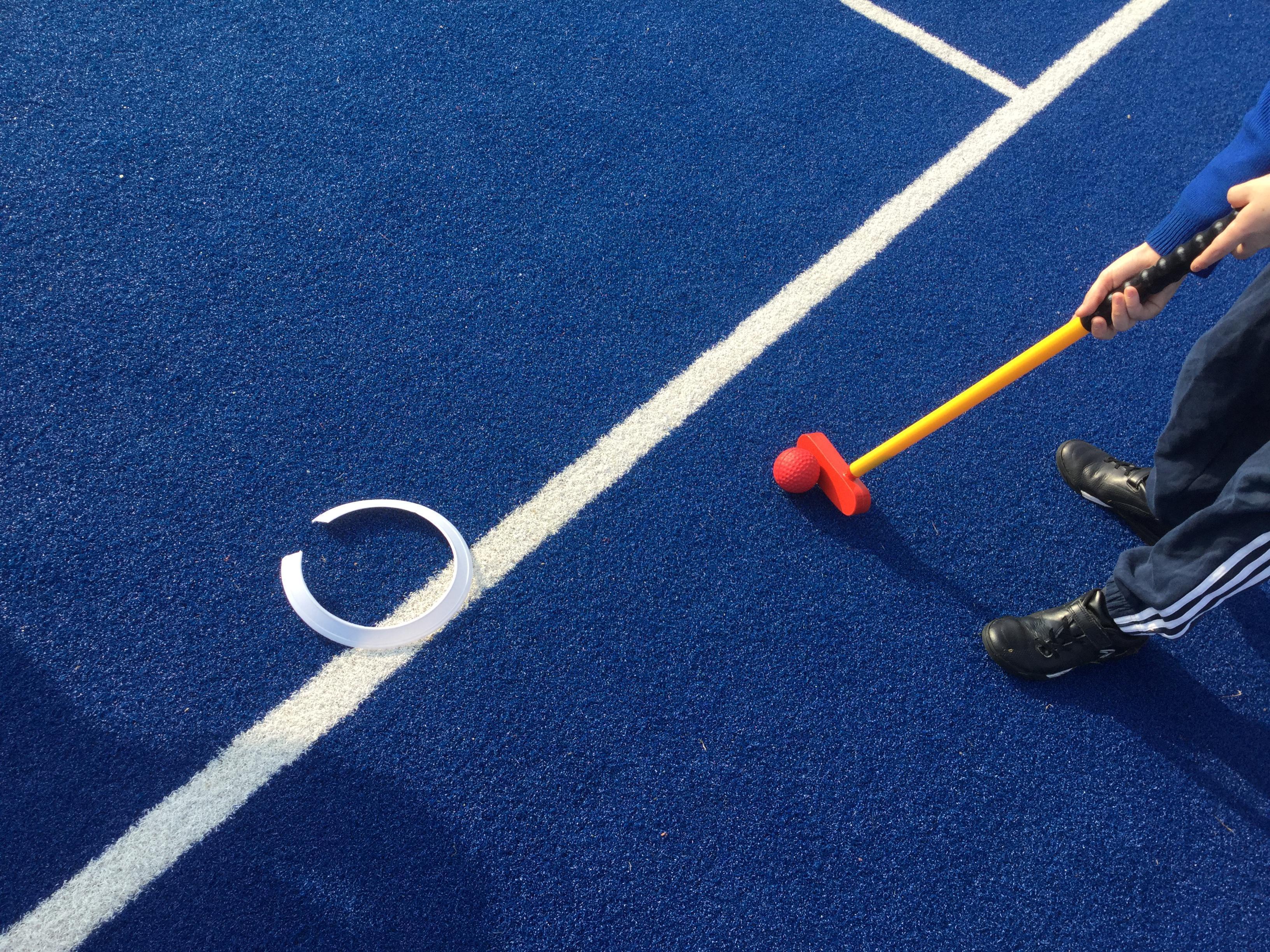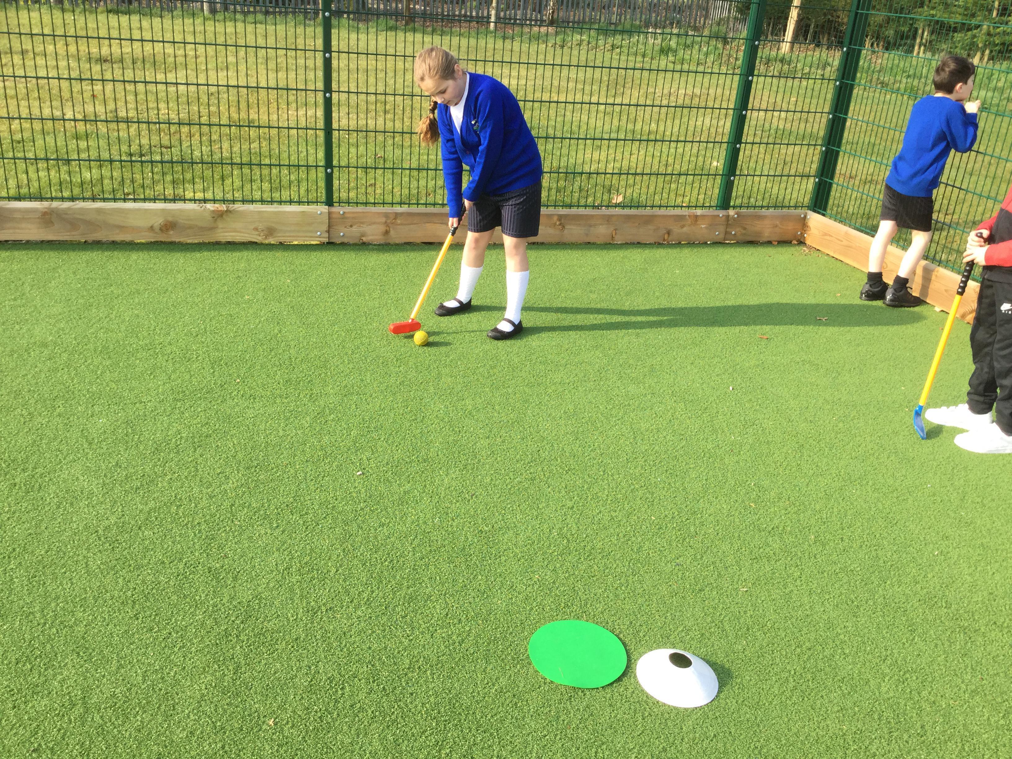 The children are learning how to play golf with their coach, Dan.  They worked in teams to go around a nine hole course with lots of obstacles and tricky terrain. They had to choose whether to use an iron or a putter, and were learning to 'chip' the ball. They all really enjoyed it and some of them are definitely budding Tiger Woods!