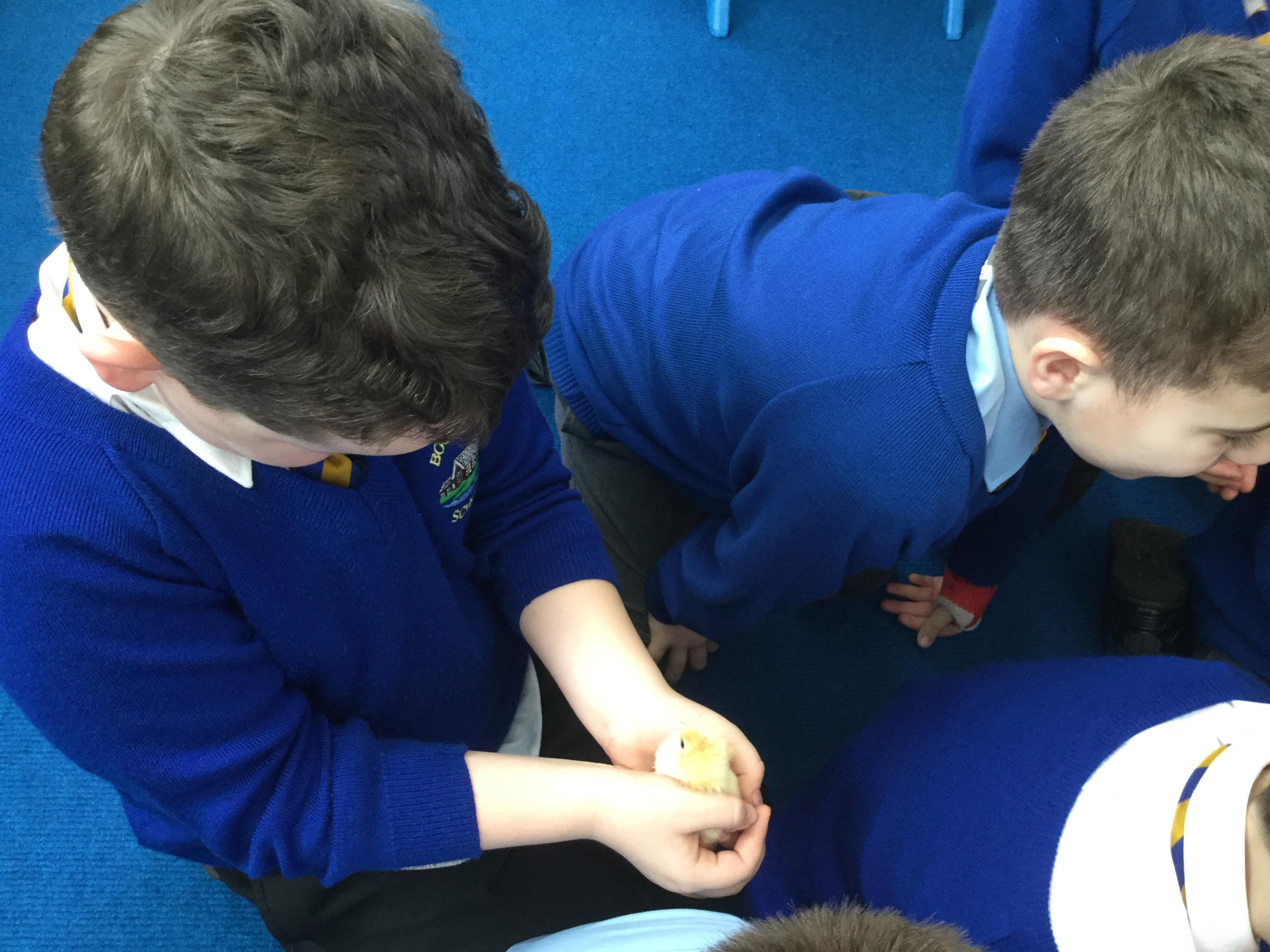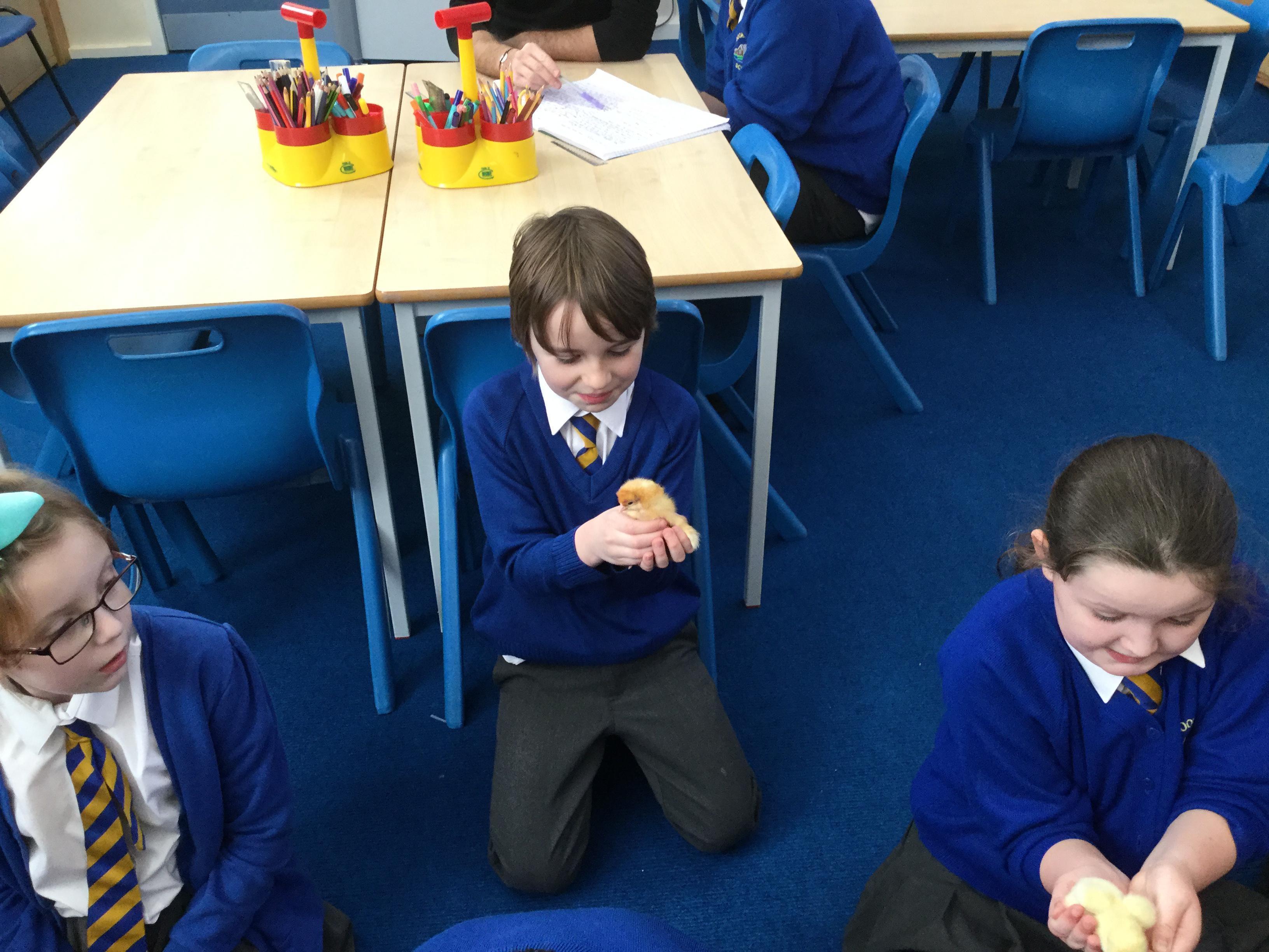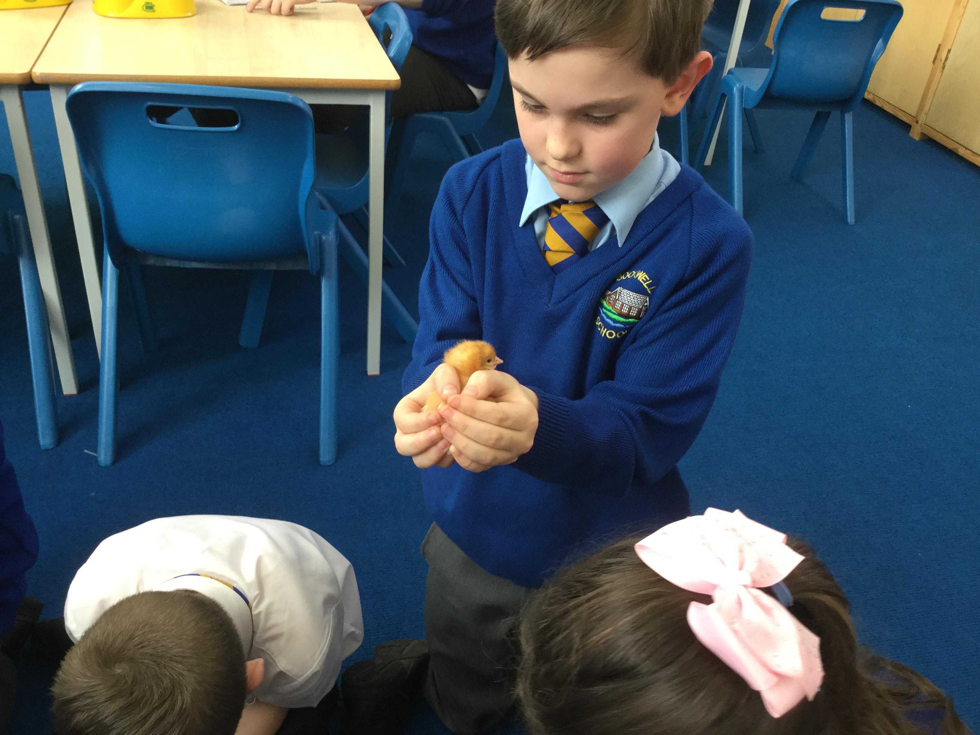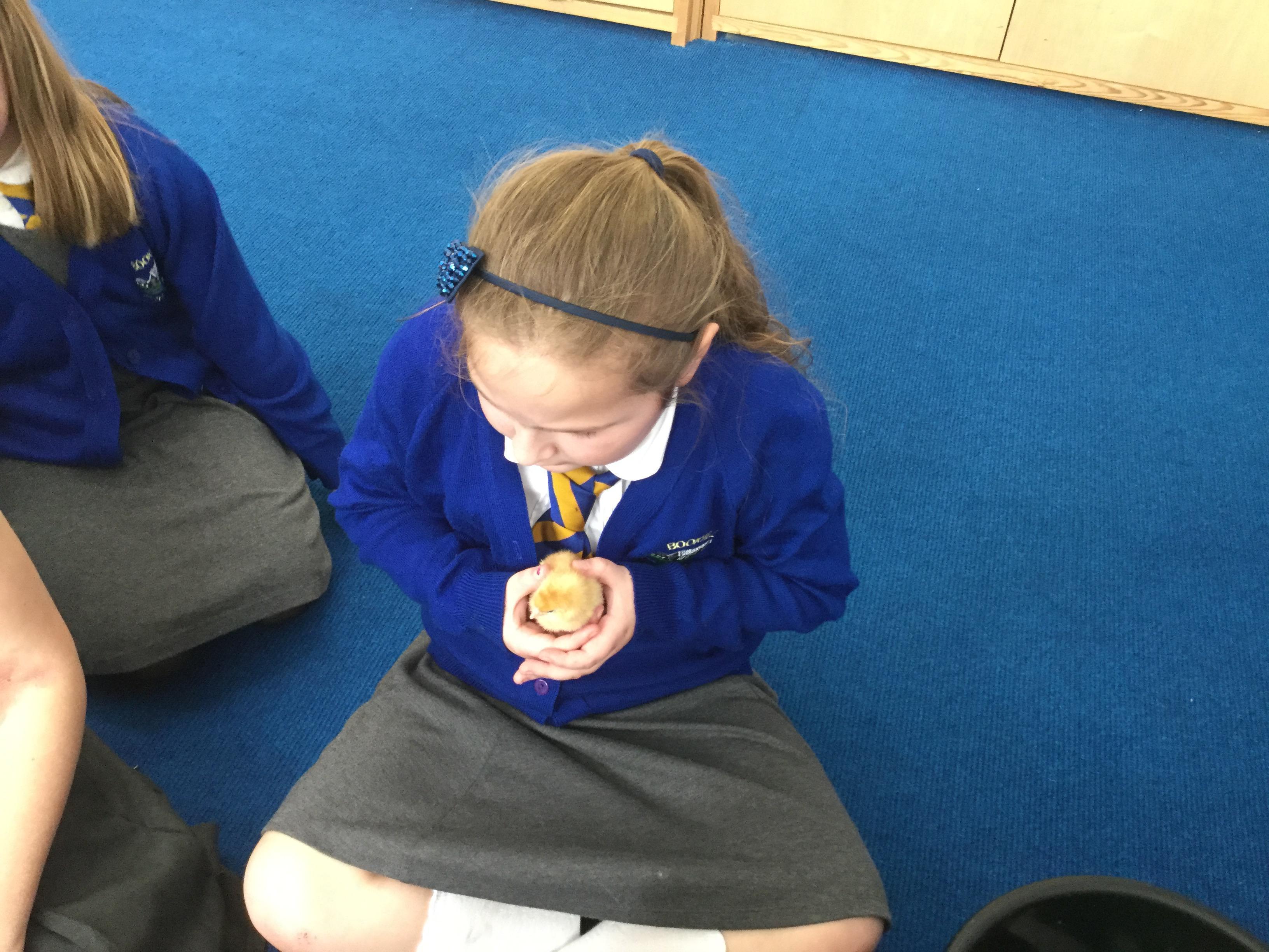 The children had a wee hold of the chicks today. The chicks were quite excitable and noisy - and so were the class! It has been a real treat for them to watch the chicks develop and they have a better understanding of the lifecycle of a chicken now - egg-cellent!