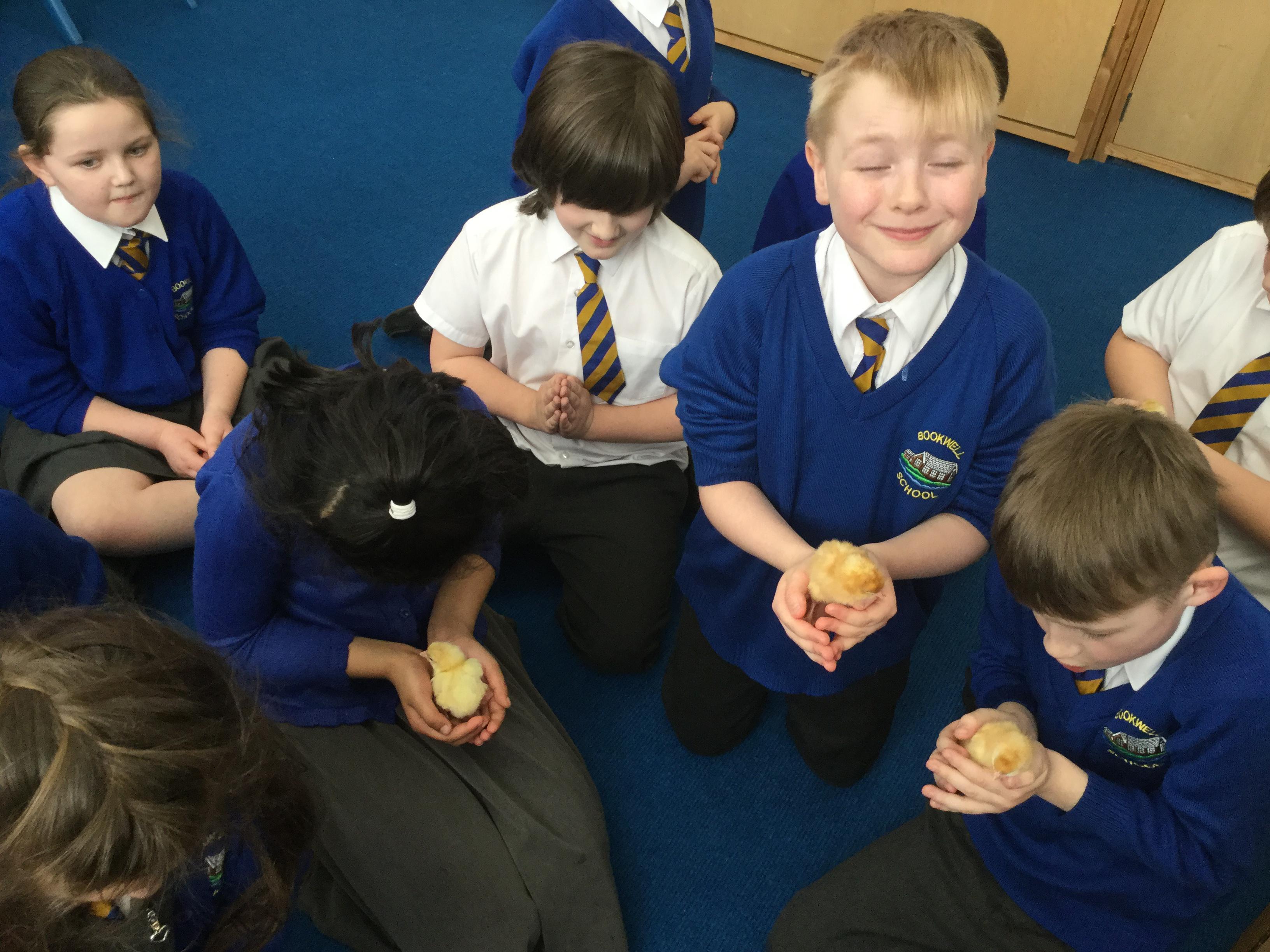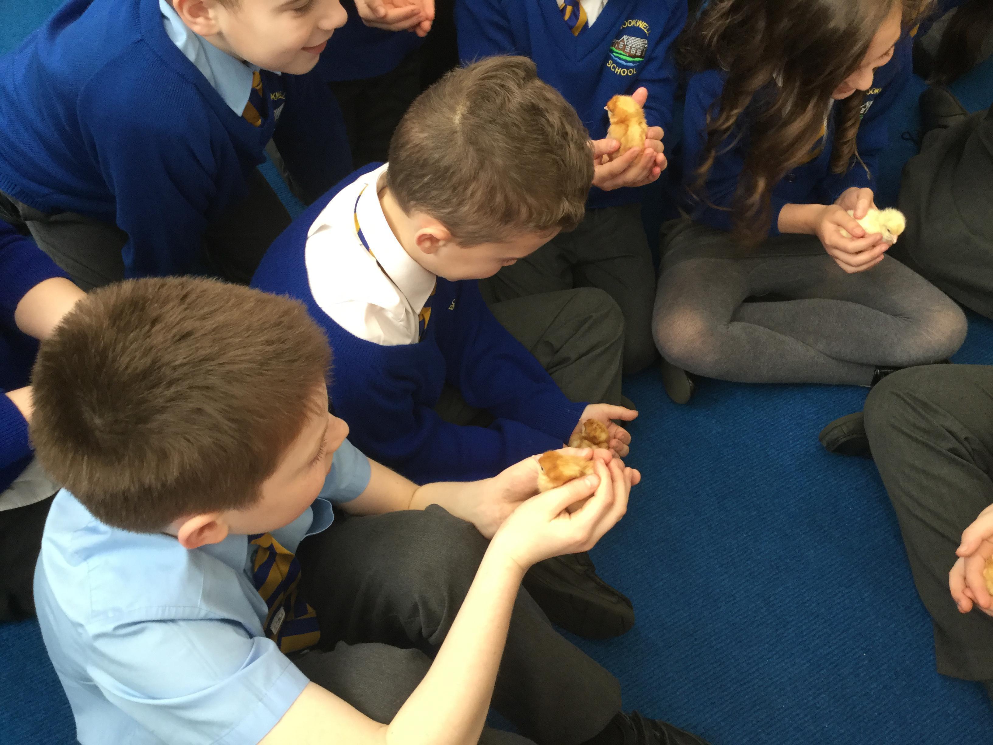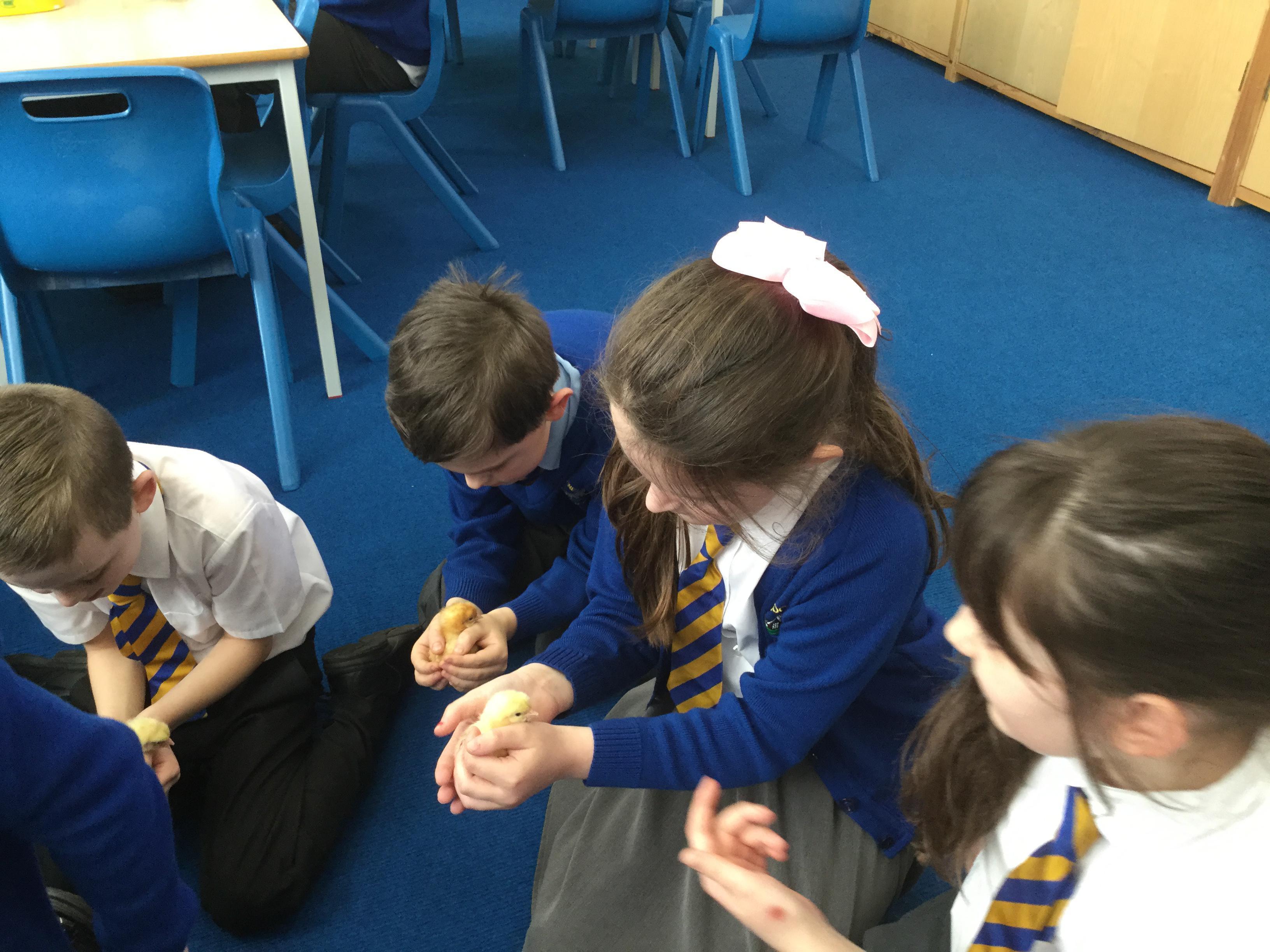 The children had a wee hold of the chicks today. The chicks were quite excitable and noisy - and so were the class! It has been a real treat for them to watch the chicks develop and they have a better understanding of the lifecycle of a chicken now - egg-cellent!