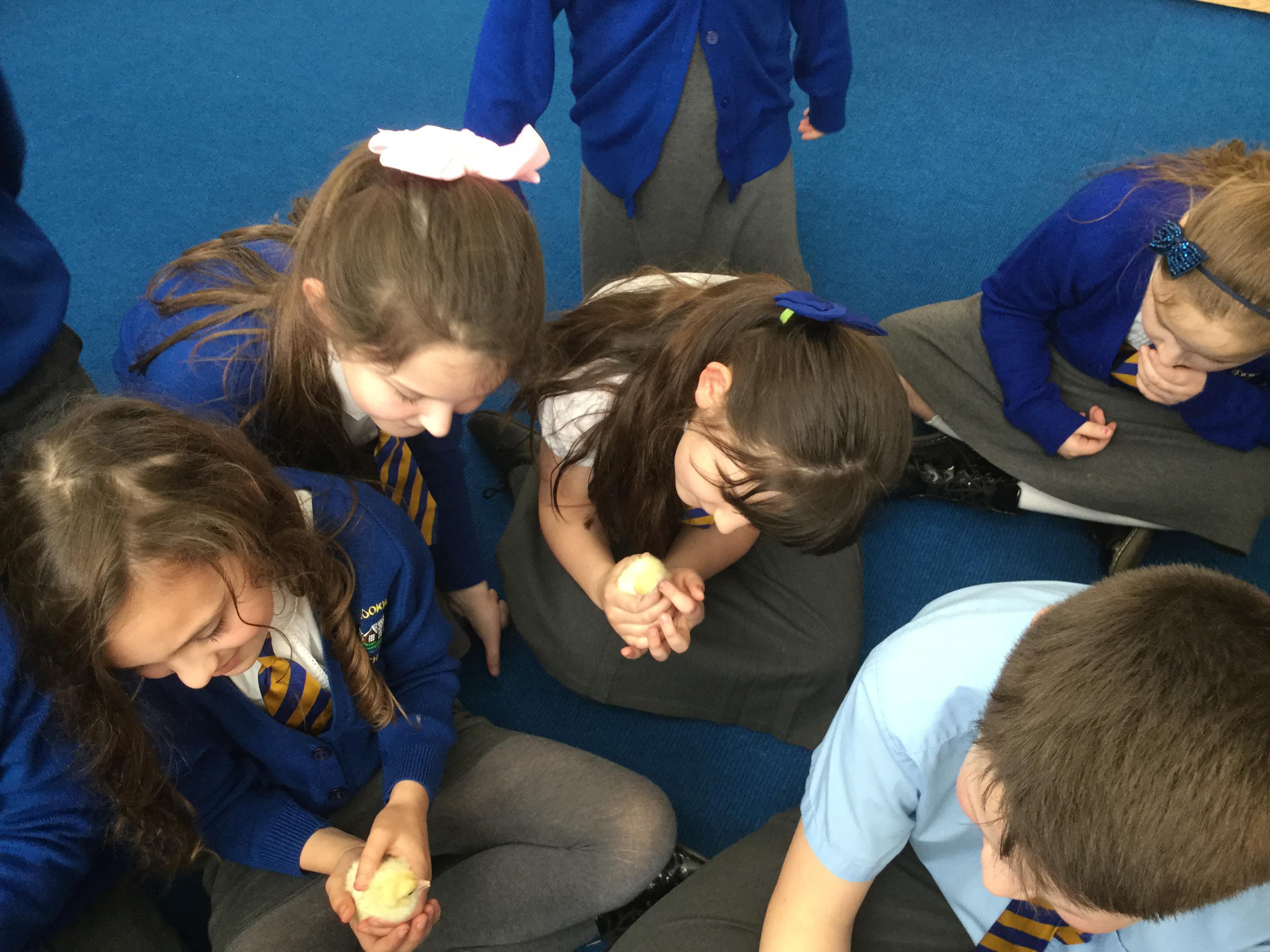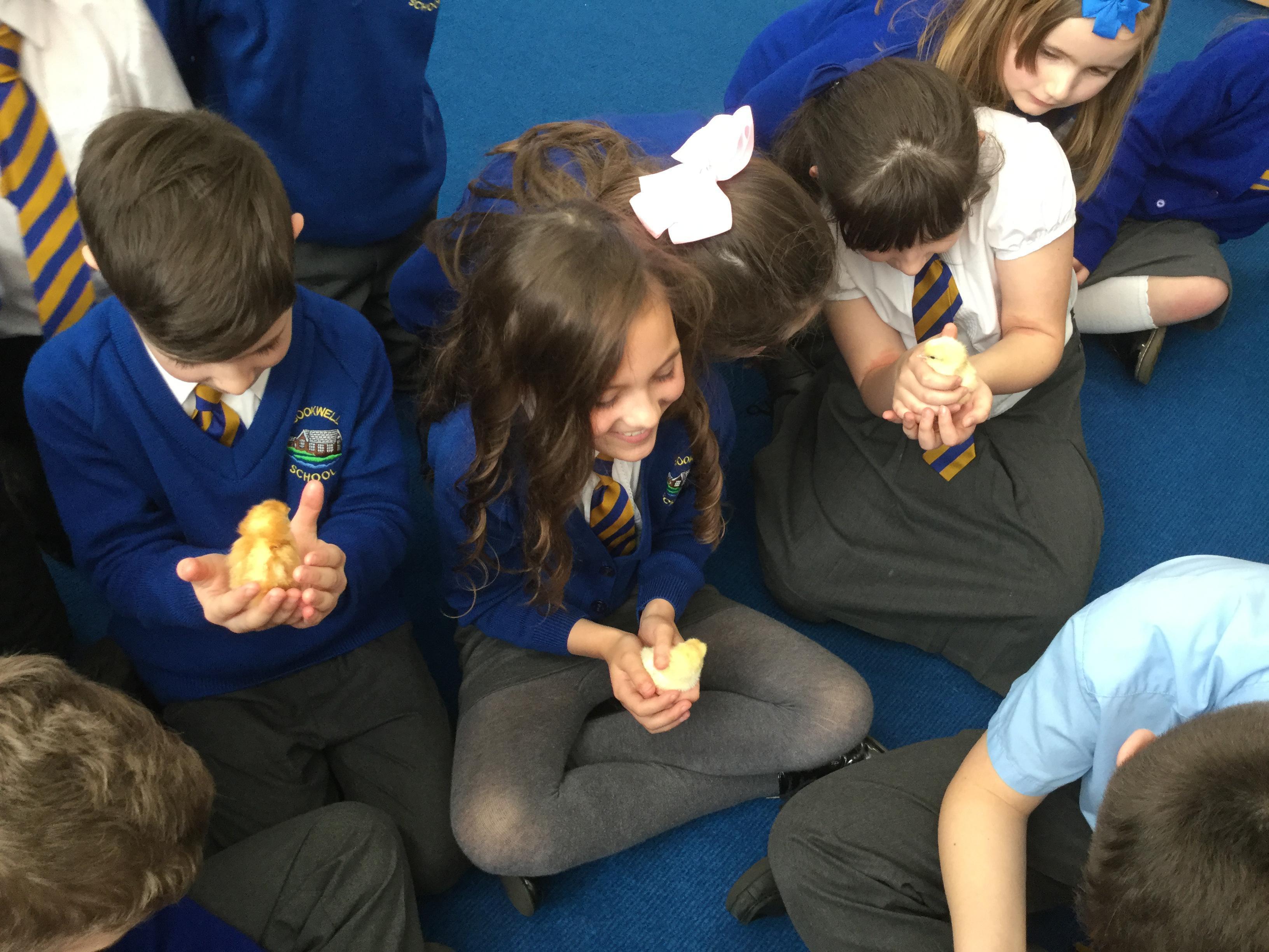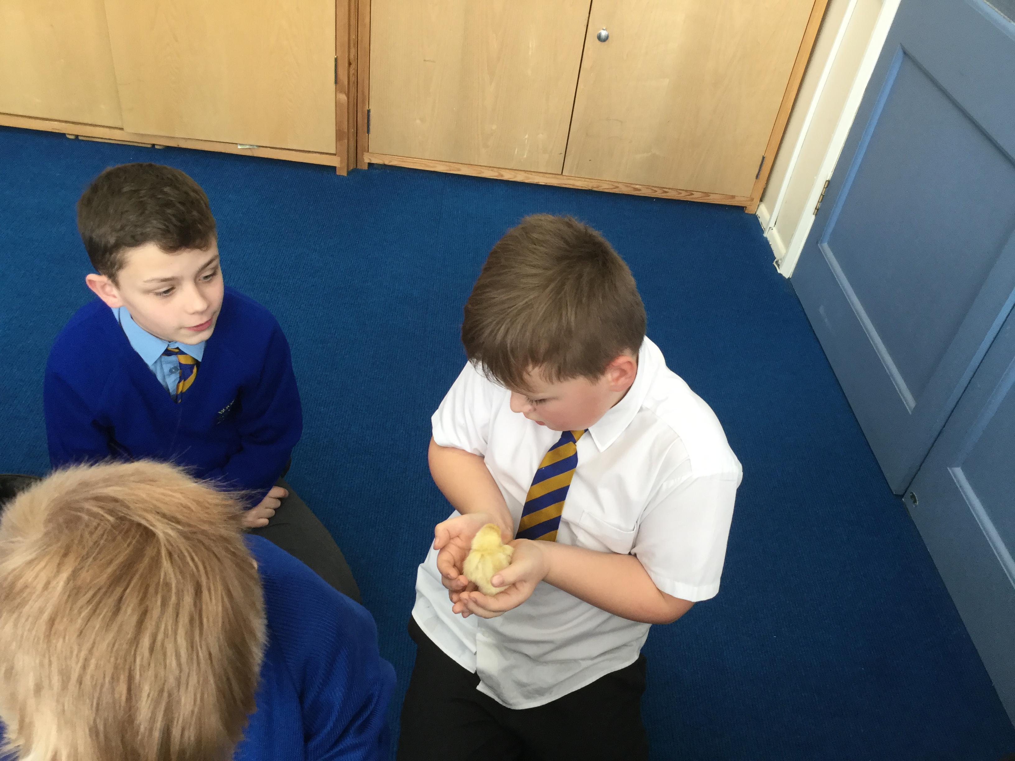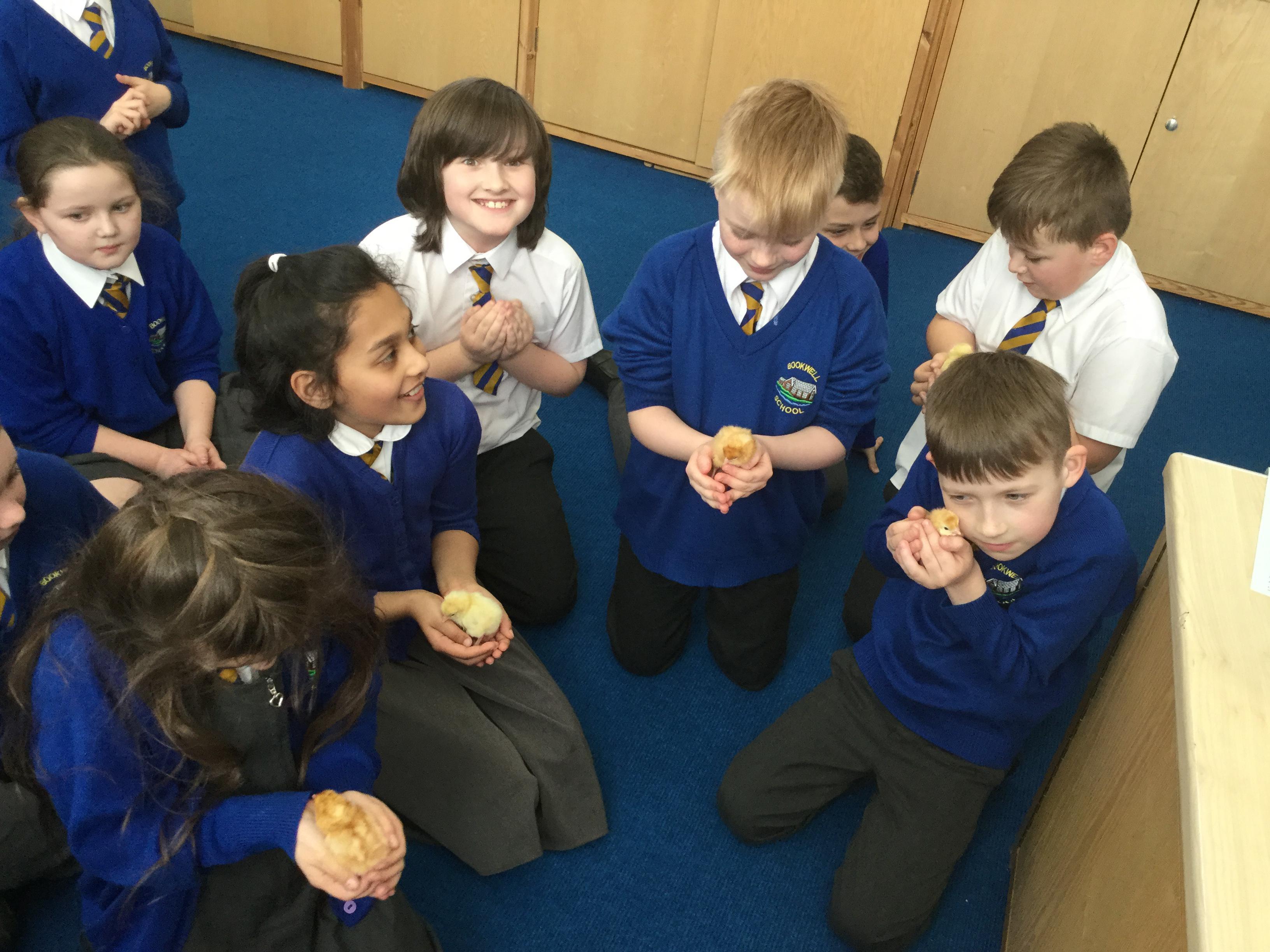 The children had a wee hold of the chicks today. The chicks were quite excitable and noisy - and so were the class! It has been a real treat for them to watch the chicks develop and they have a better understanding of the lifecycle of a chicken now - egg-cellent!