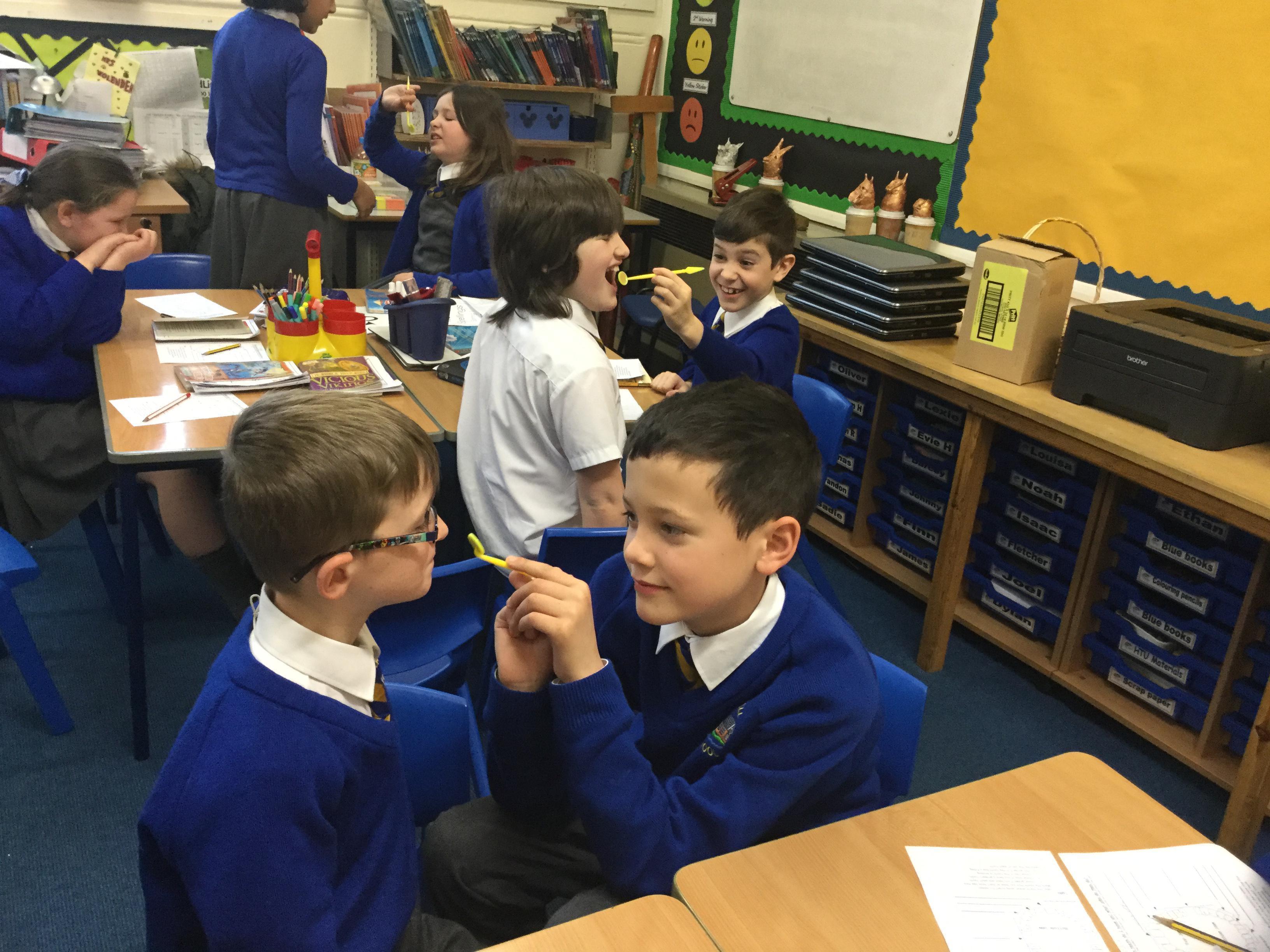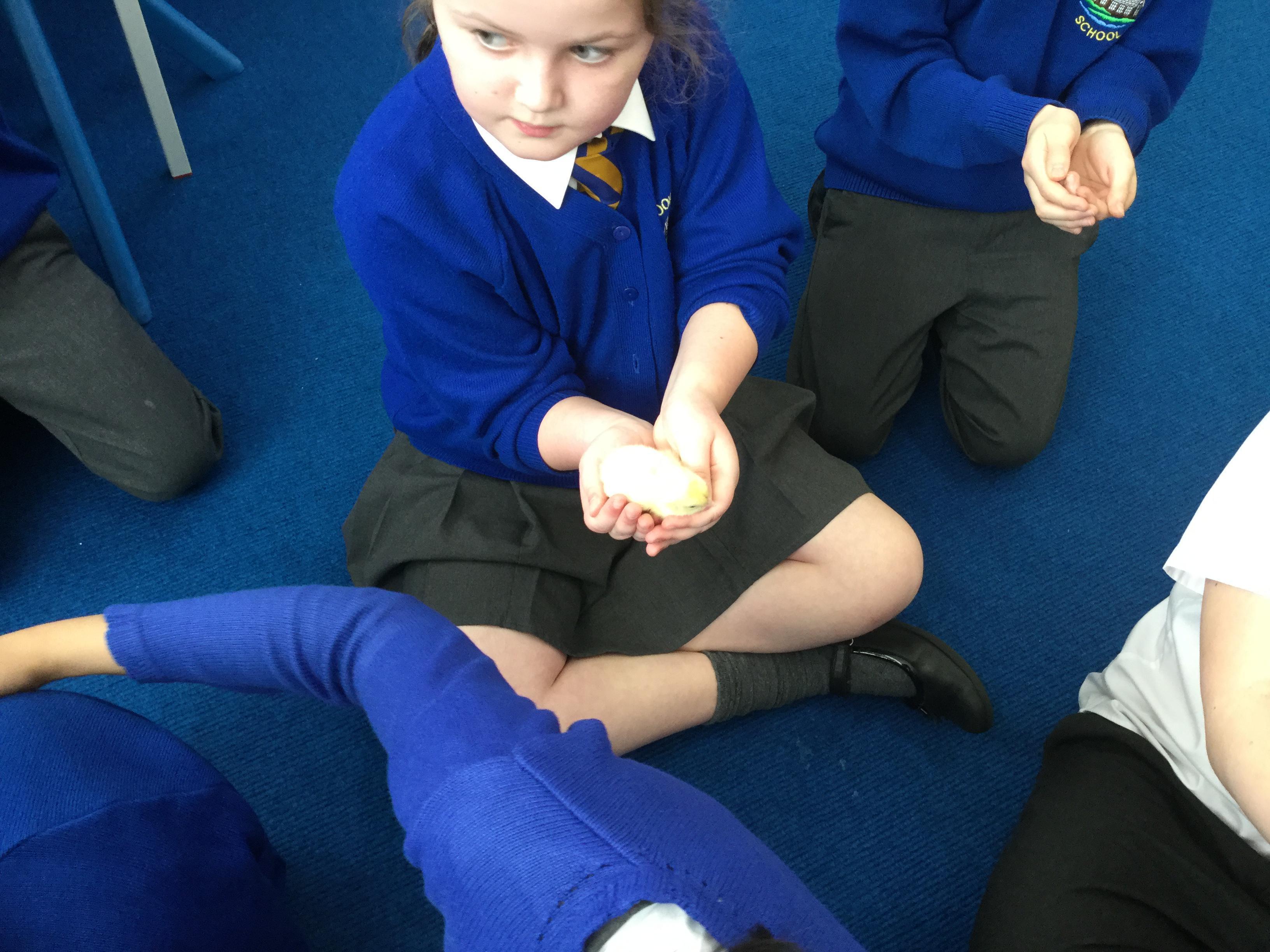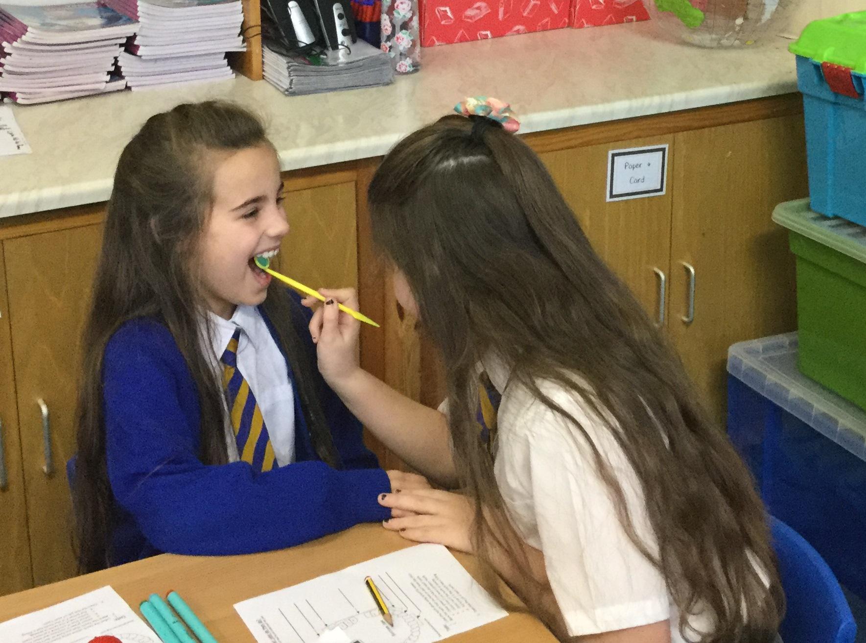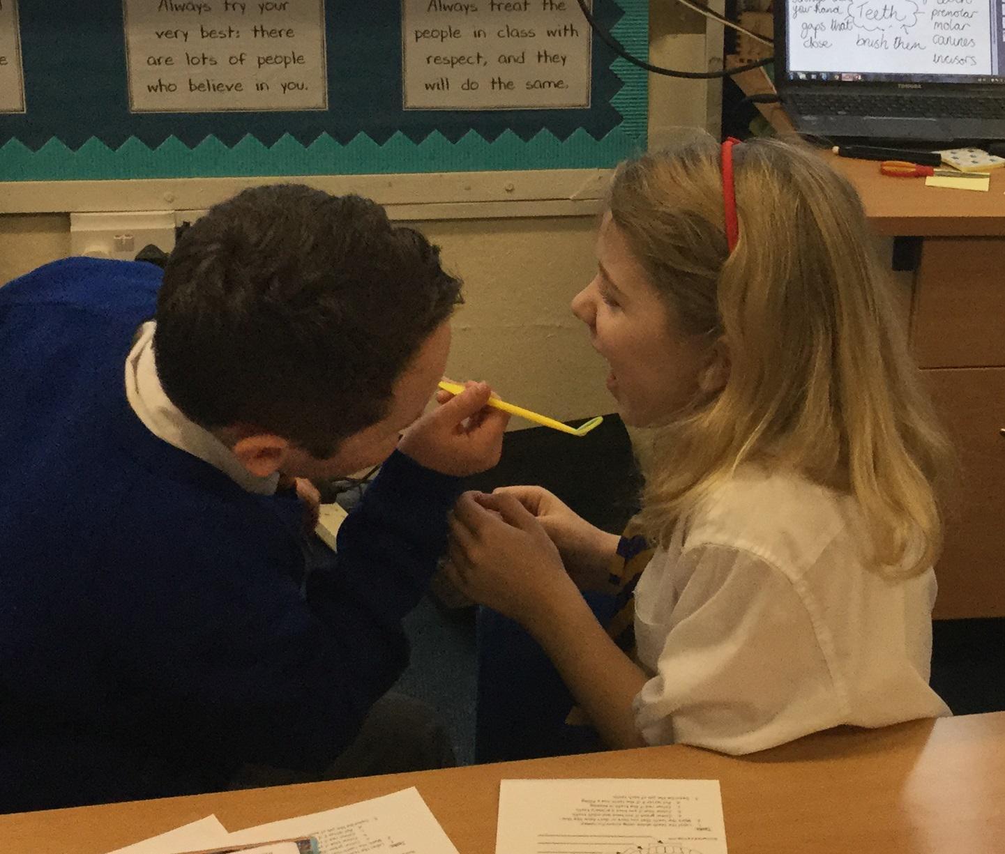 Our new Science topic is 'Teeth and Eating'.  The children had great fun exploring each other's teeth so that they could help their partner map their mouths.  They learned what the different types of teeth are and looked at pictures of children's skulls that showed they were born with both sets of teeth already in their jaw. Interesting!