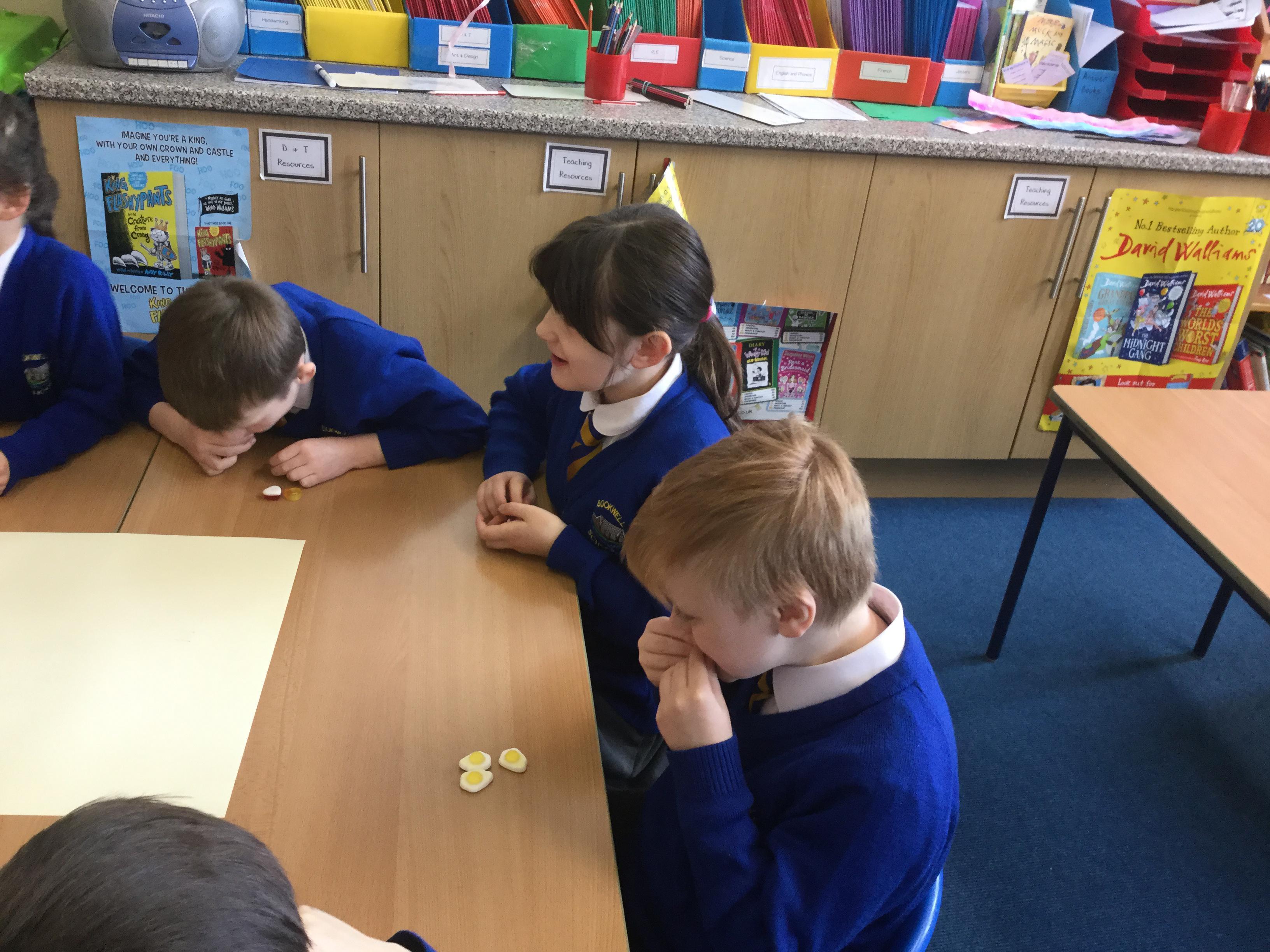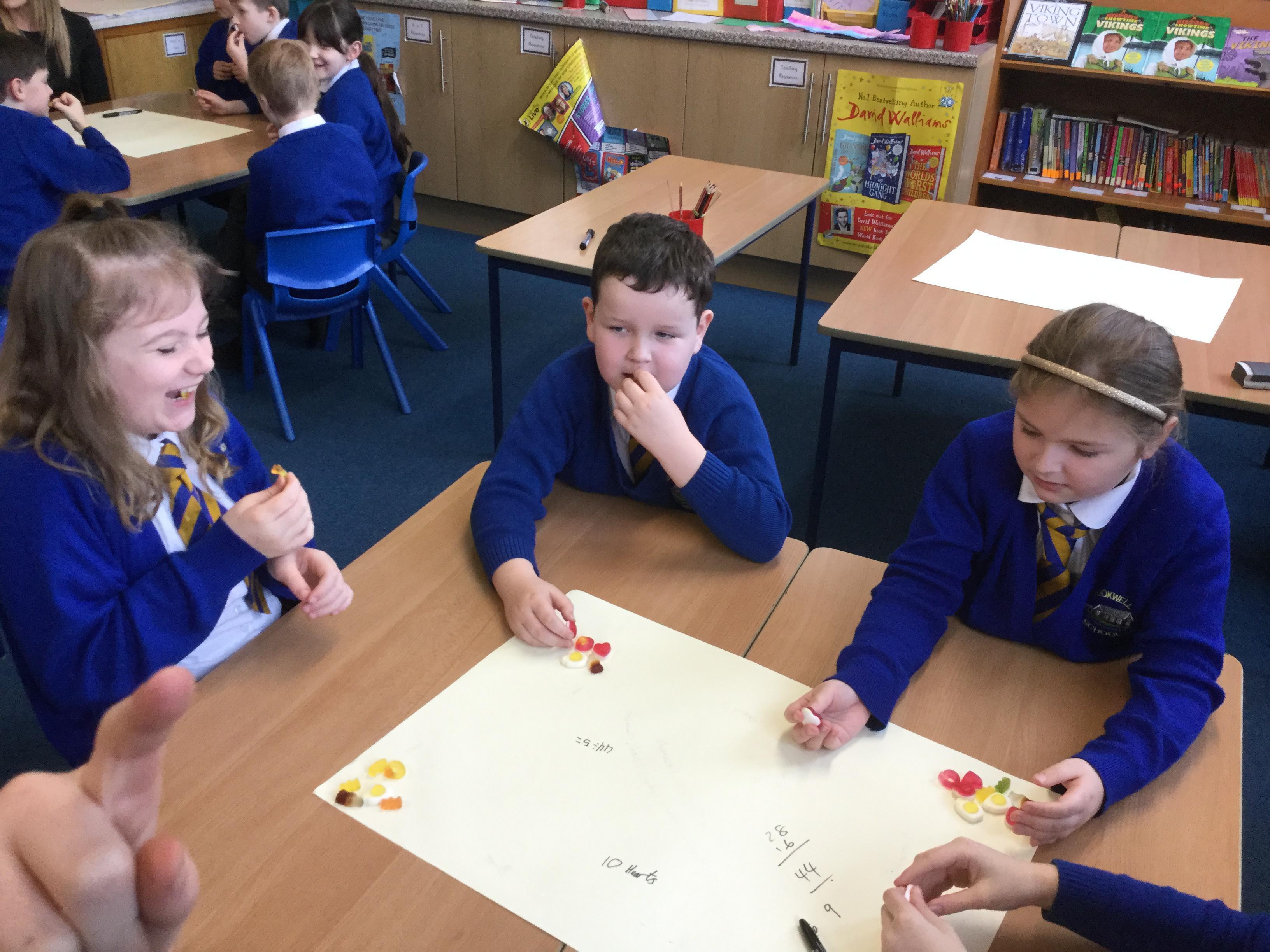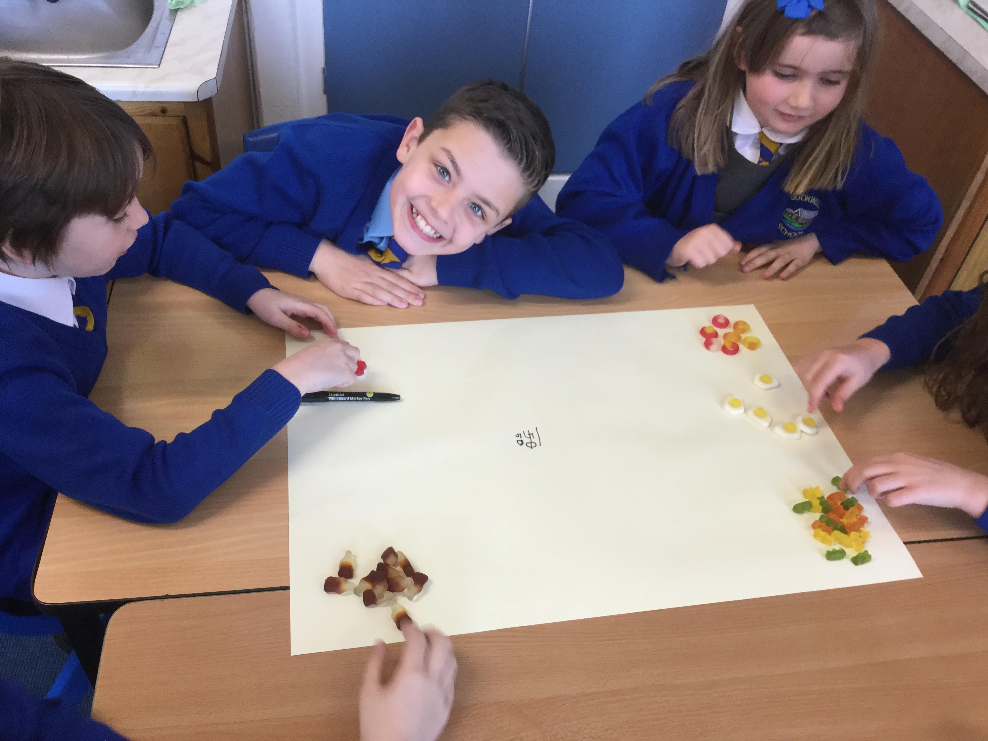 The children have been working hard to get their heads around fractions.  Always a tricky topic, we decided to start with some practical fraction work. We even used sweets to help us with our understanding. Our conclusion?  Fractions are yummy!!