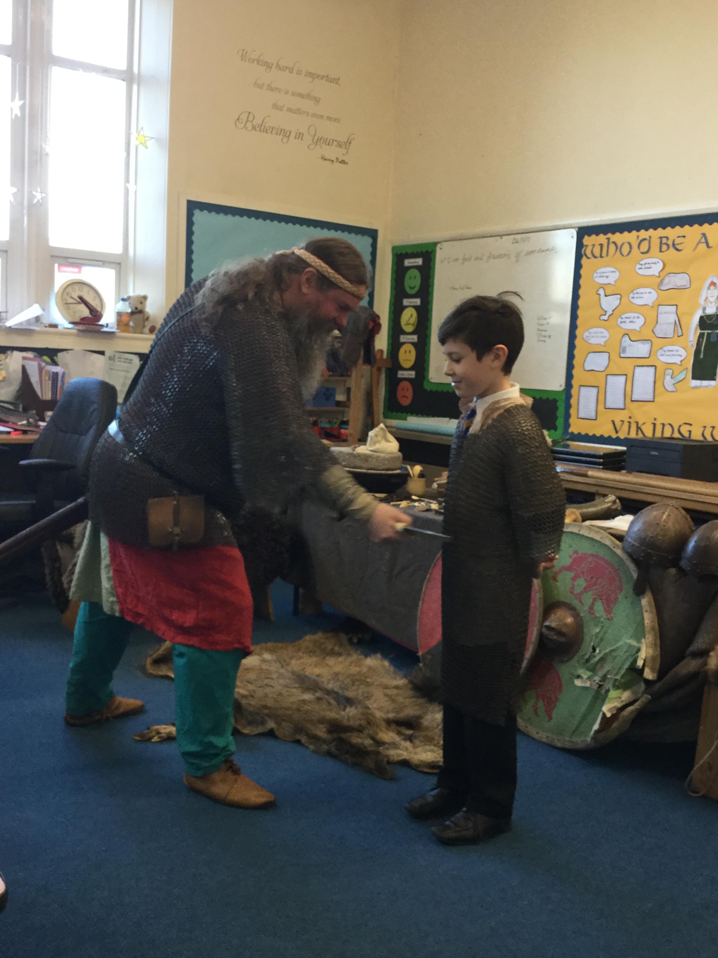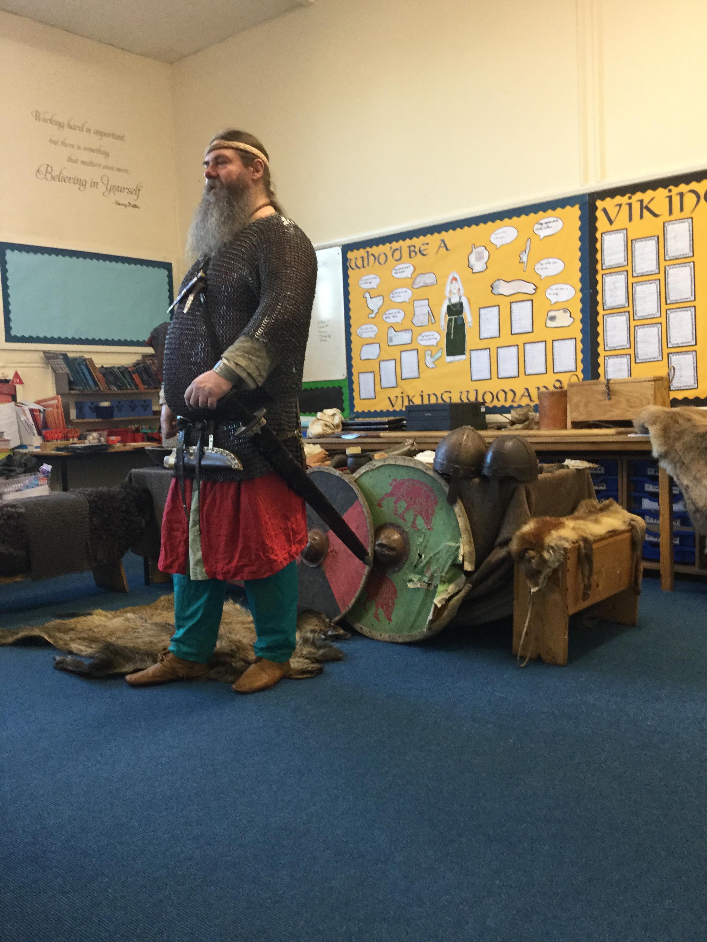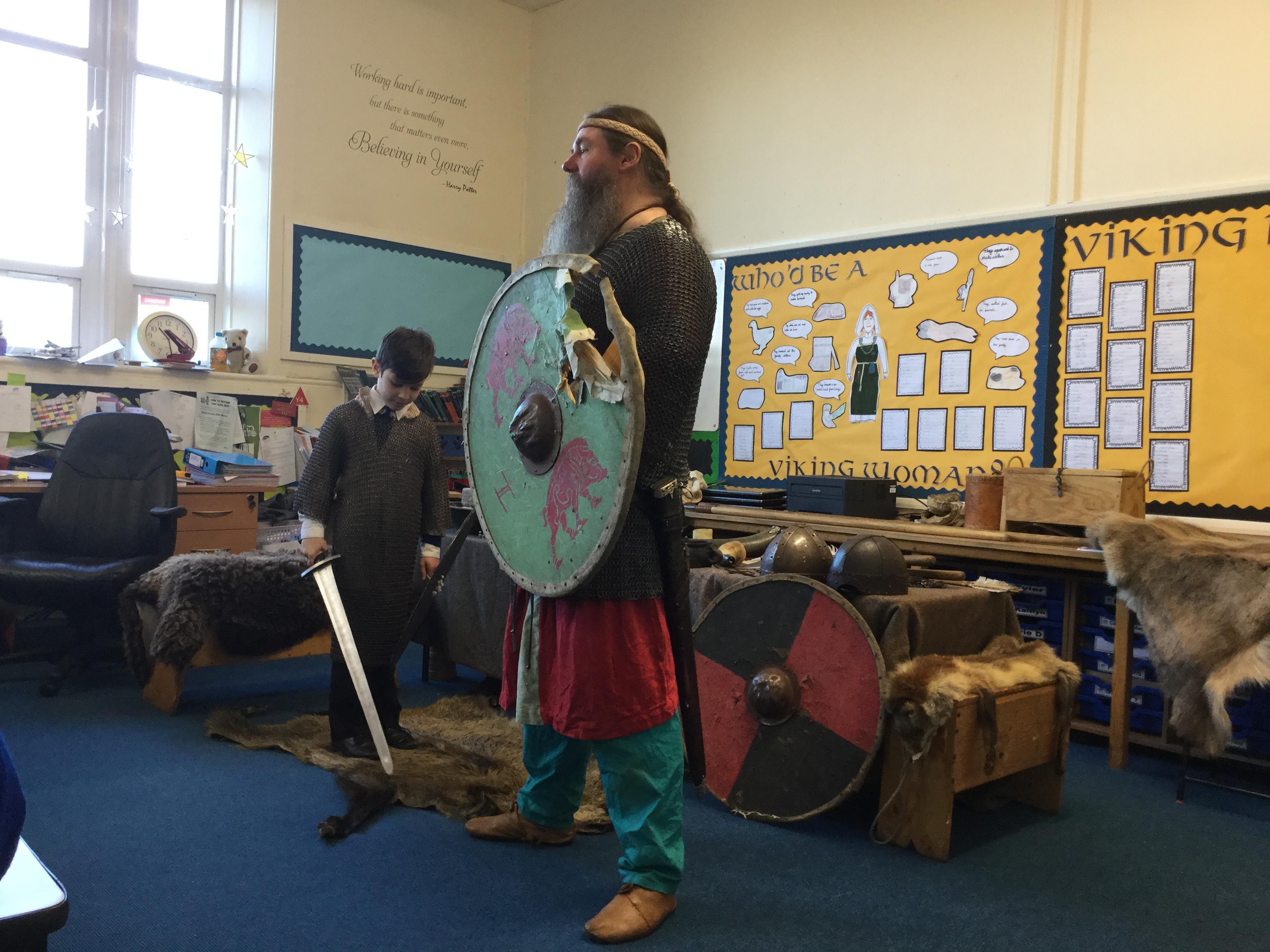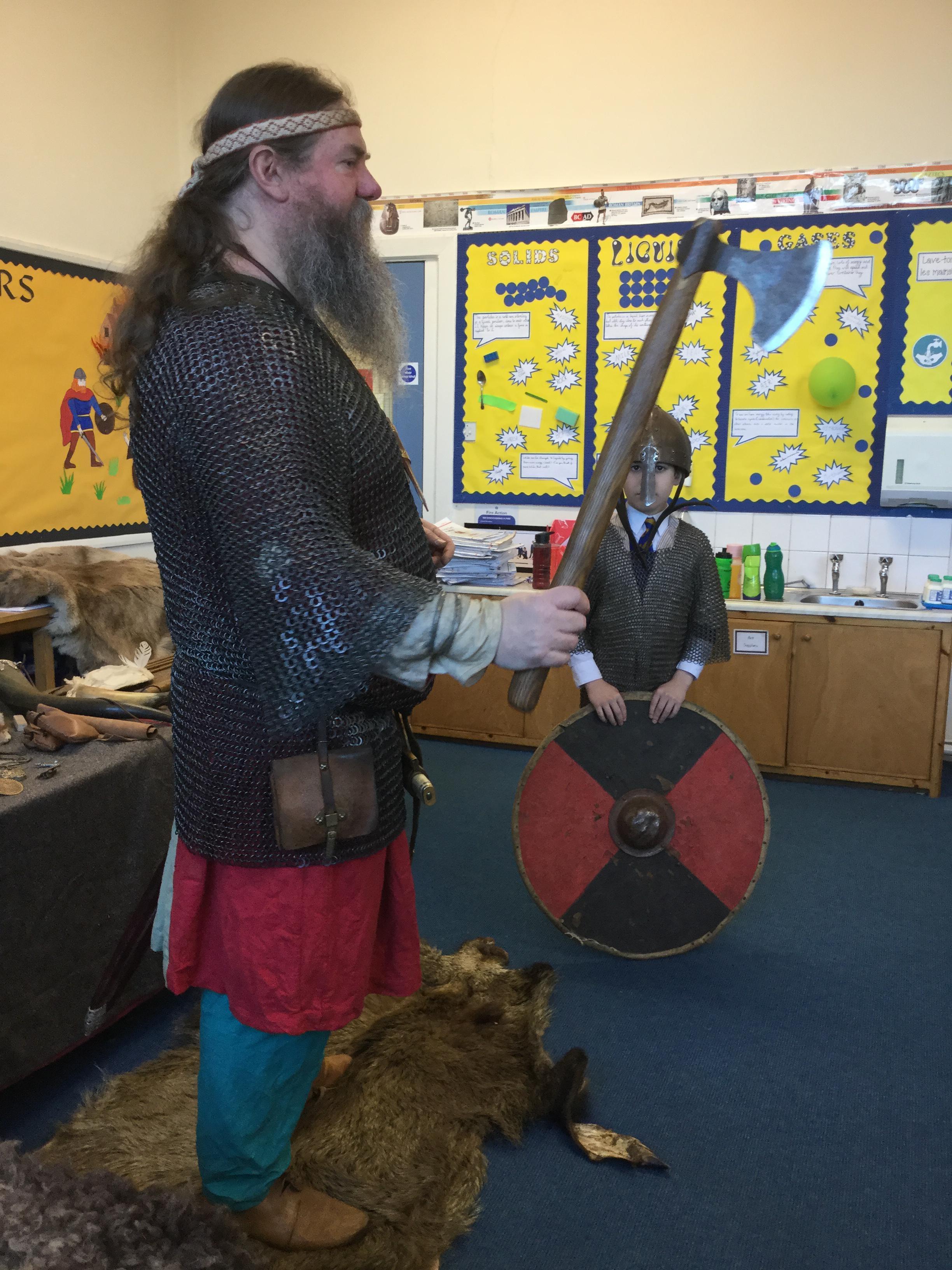 Year 4 had a visit from Bjarni Thorvaldrson today.  He brought lots of artefacts, games and weapons with him and the children loved every minute. They learned about how the Vikings lived and fought, and even how they relaxed when they weren't busy farming and raiding.