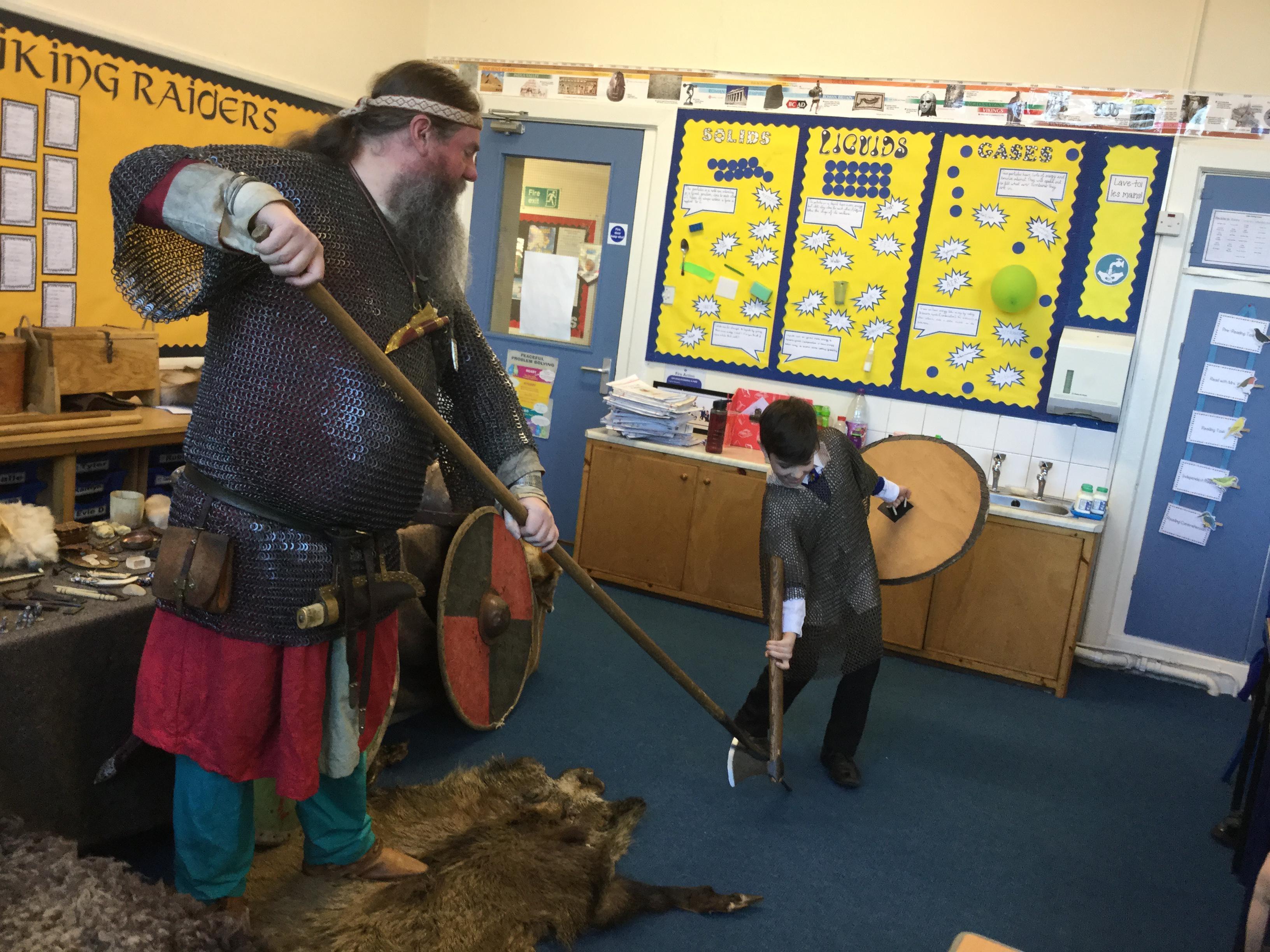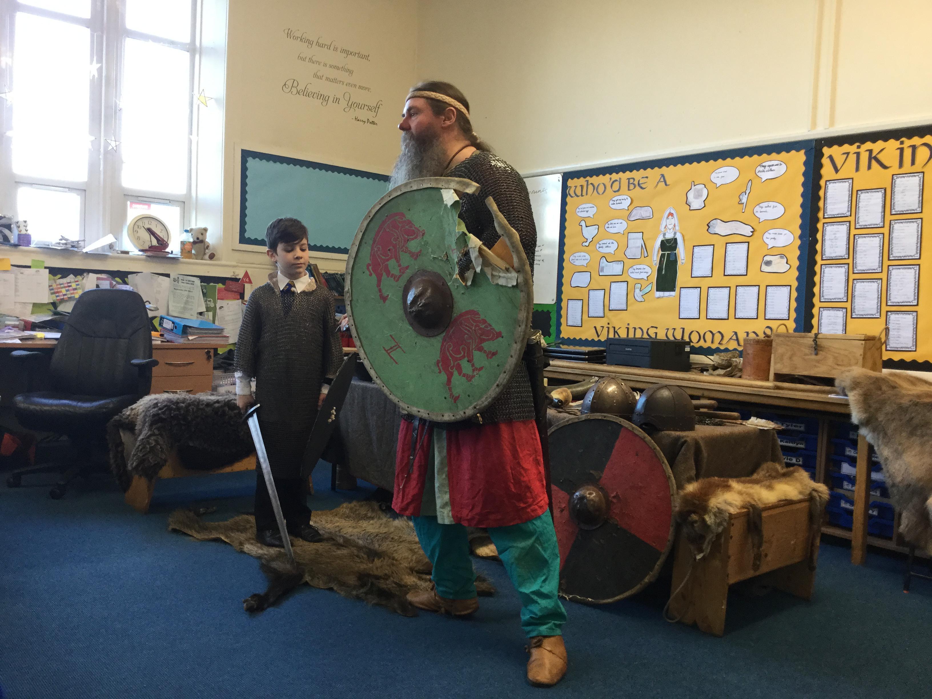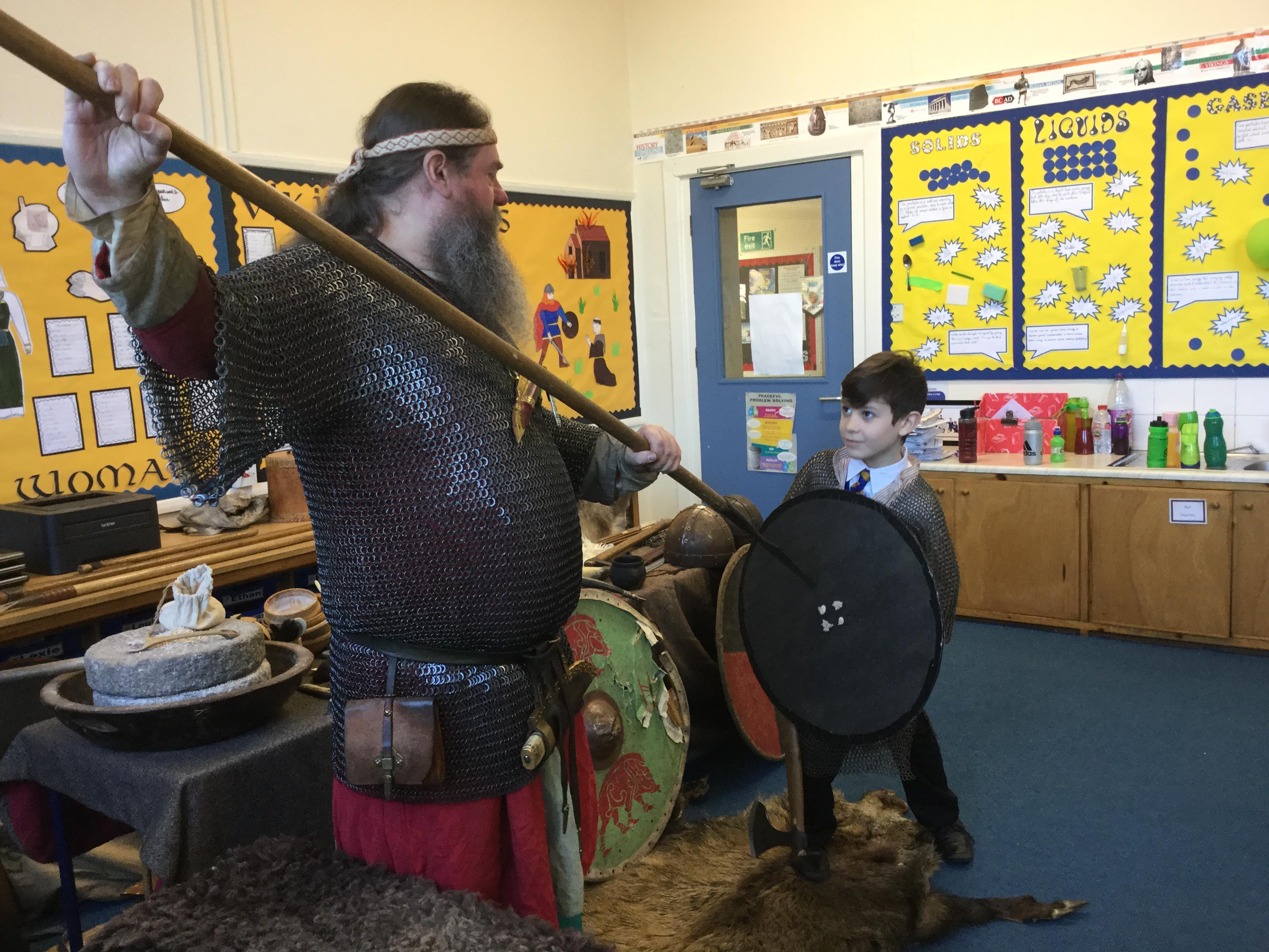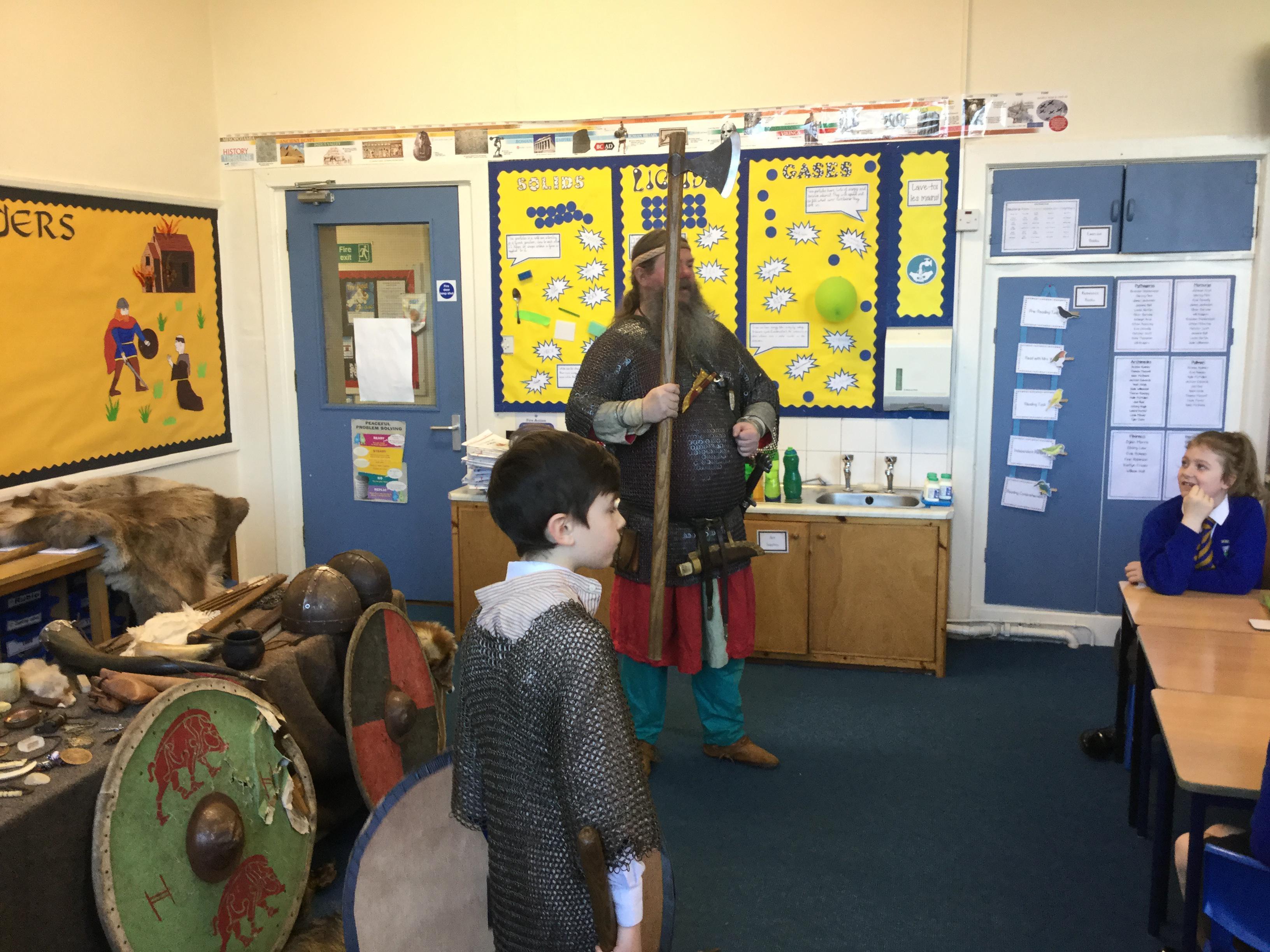 Year 4 had a visit from Bjarni Thorvaldrson today.  He brought lots of artefacts, games and weapons with him and the children loved every minute. They learned about how the Vikings lived and fought, and even how they relaxed when they weren't busy farming and raiding.