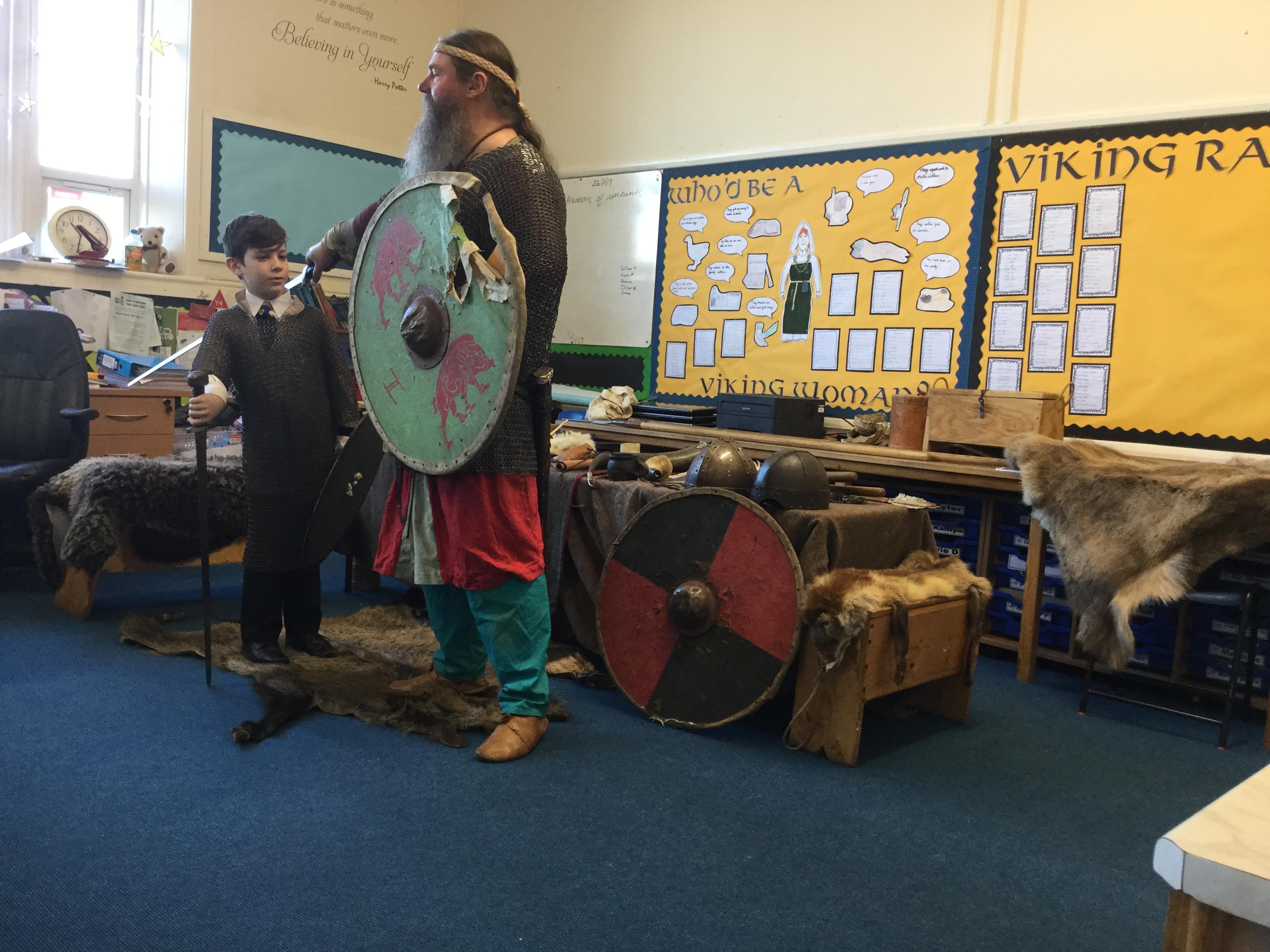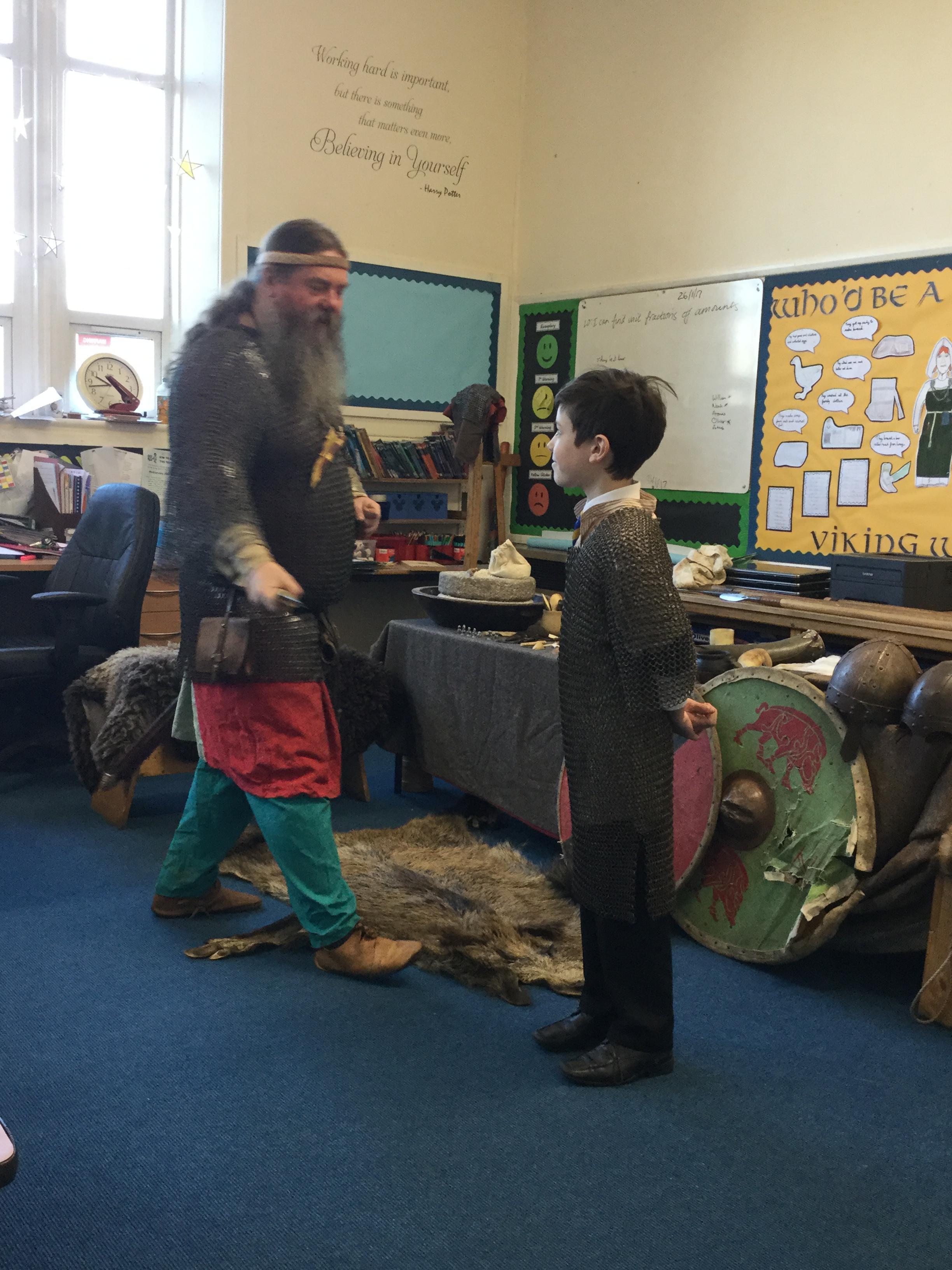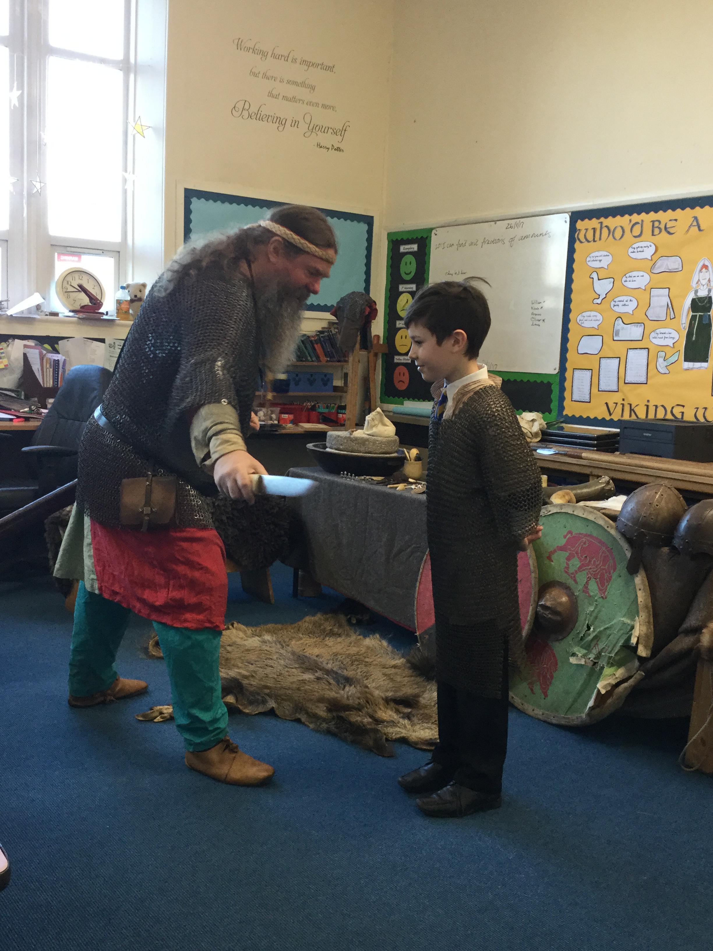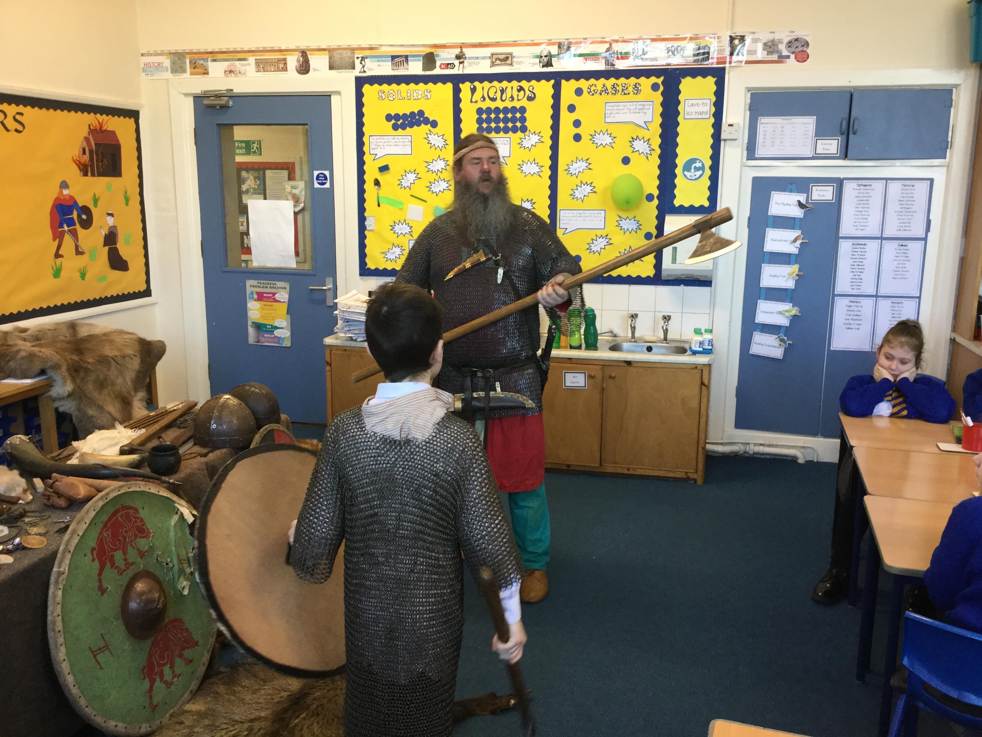 Year 4 had a visit from Bjarni Thorvaldrson today.  He brought lots of artefacts, games and weapons with him and the children loved every minute. They learned about how the Vikings lived and fought, and even how they relaxed when they weren't busy farming and raiding.