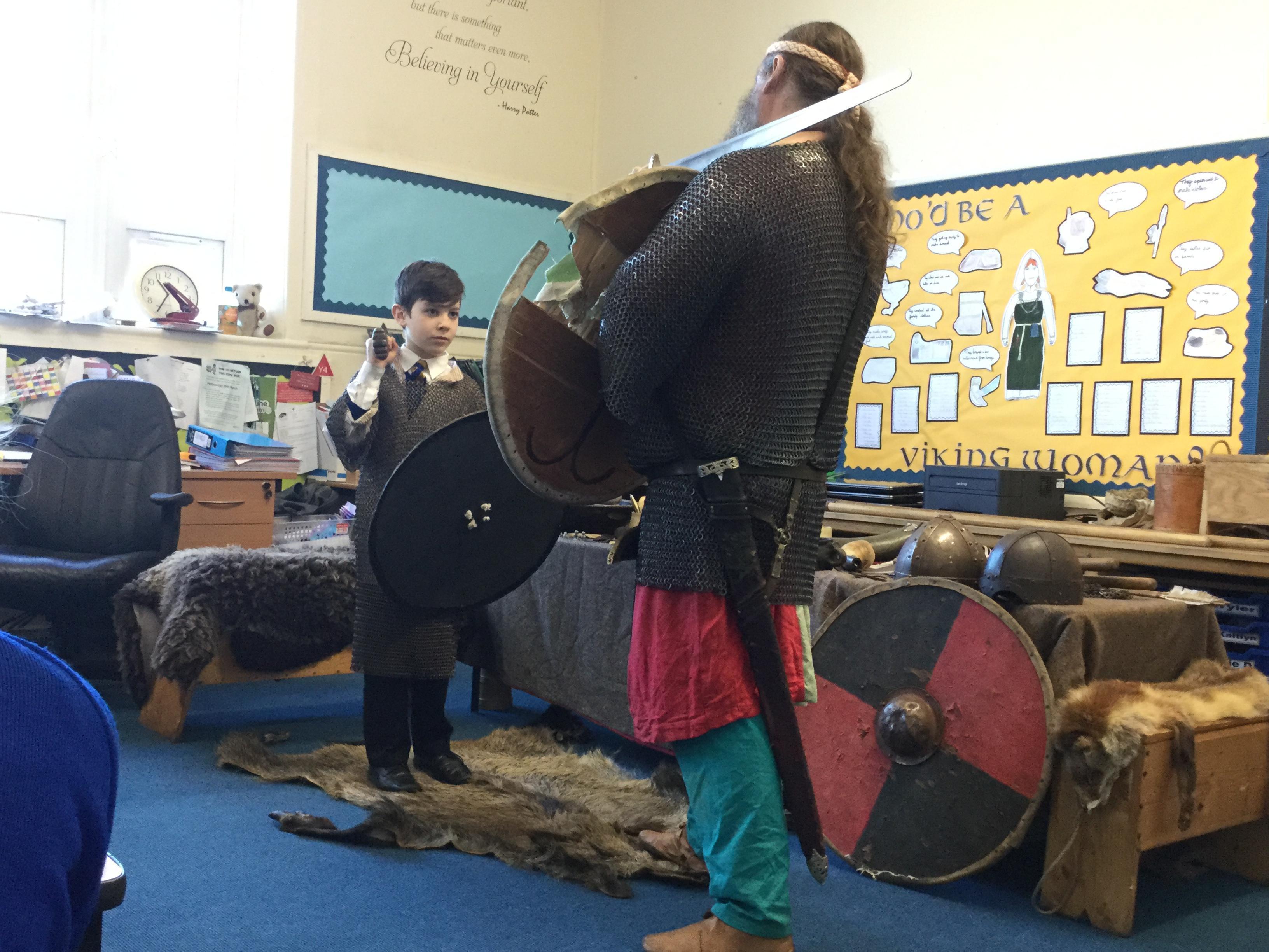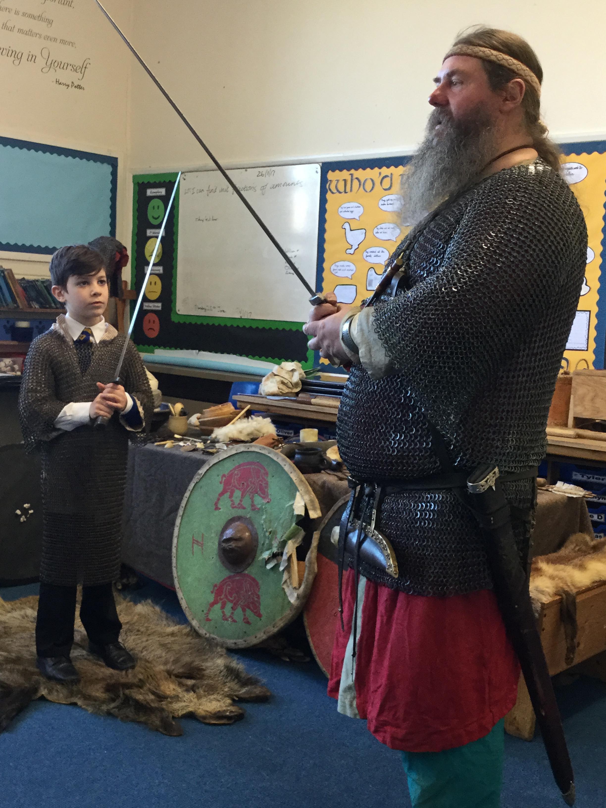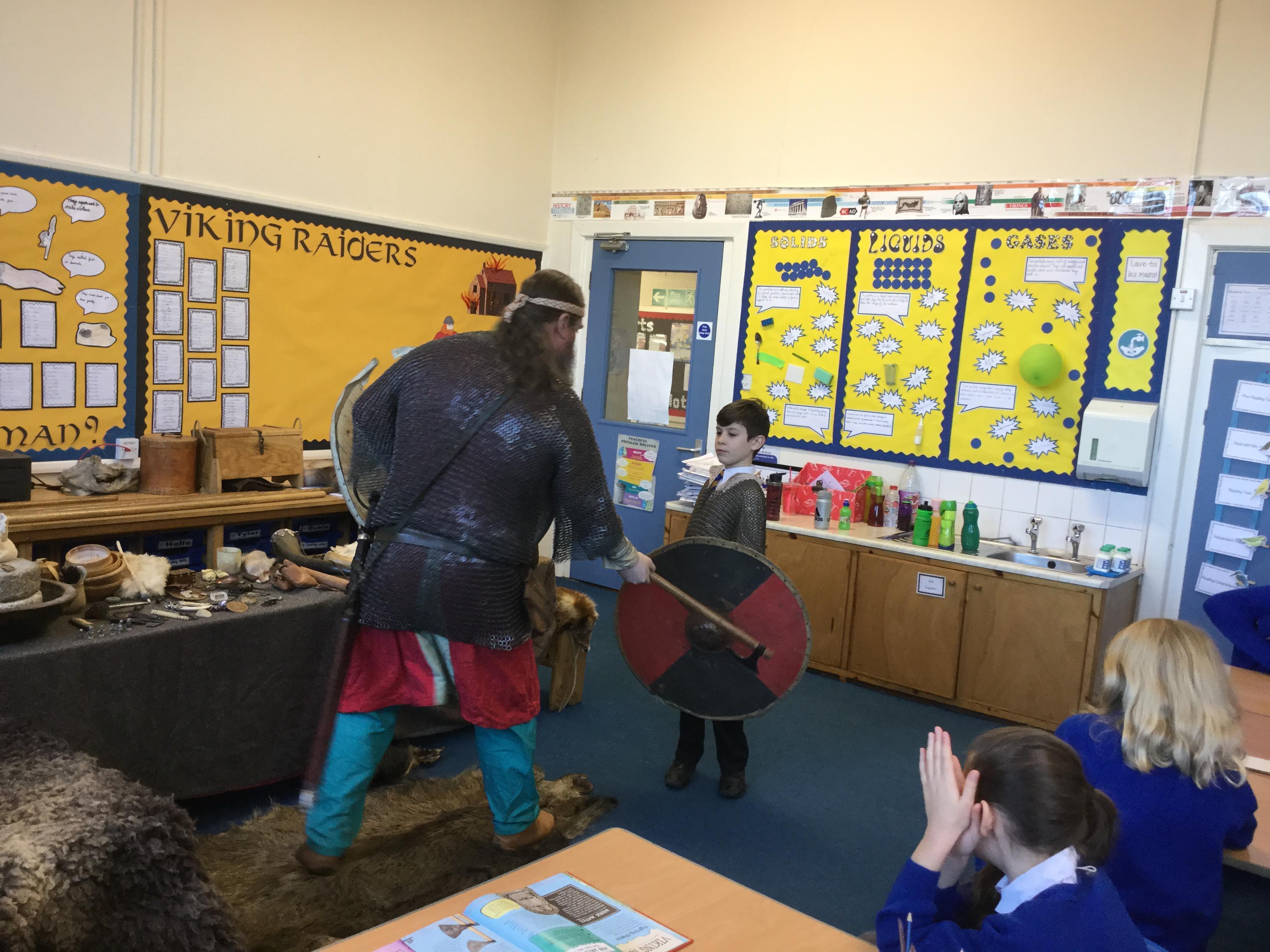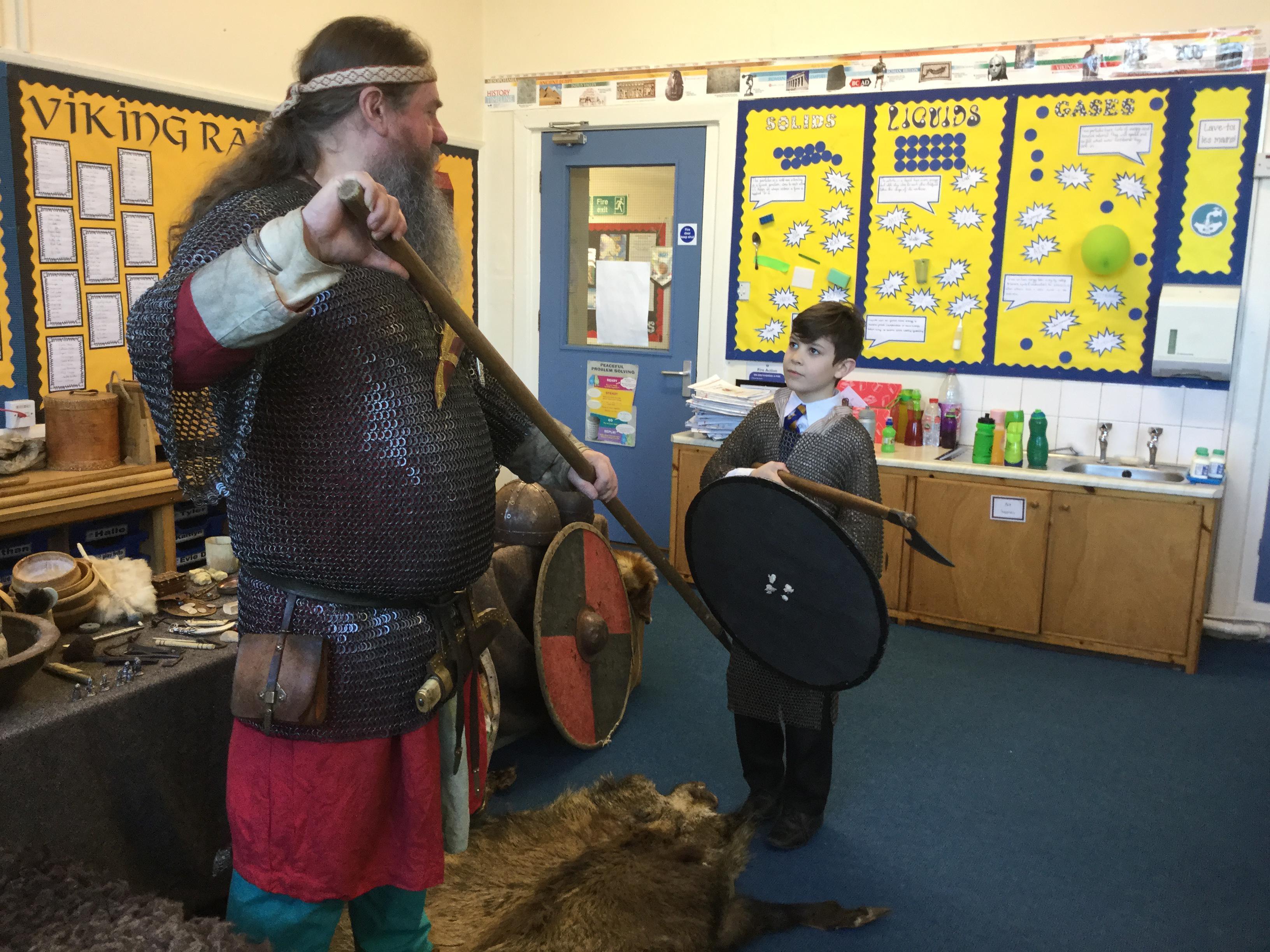 Year 4 had a visit from Bjarni Thorvaldrson today.  He brought lots of artefacts, games and weapons with him and the children loved every minute. They learned about how the Vikings lived and fought, and even how they relaxed when they weren't busy farming and raiding.