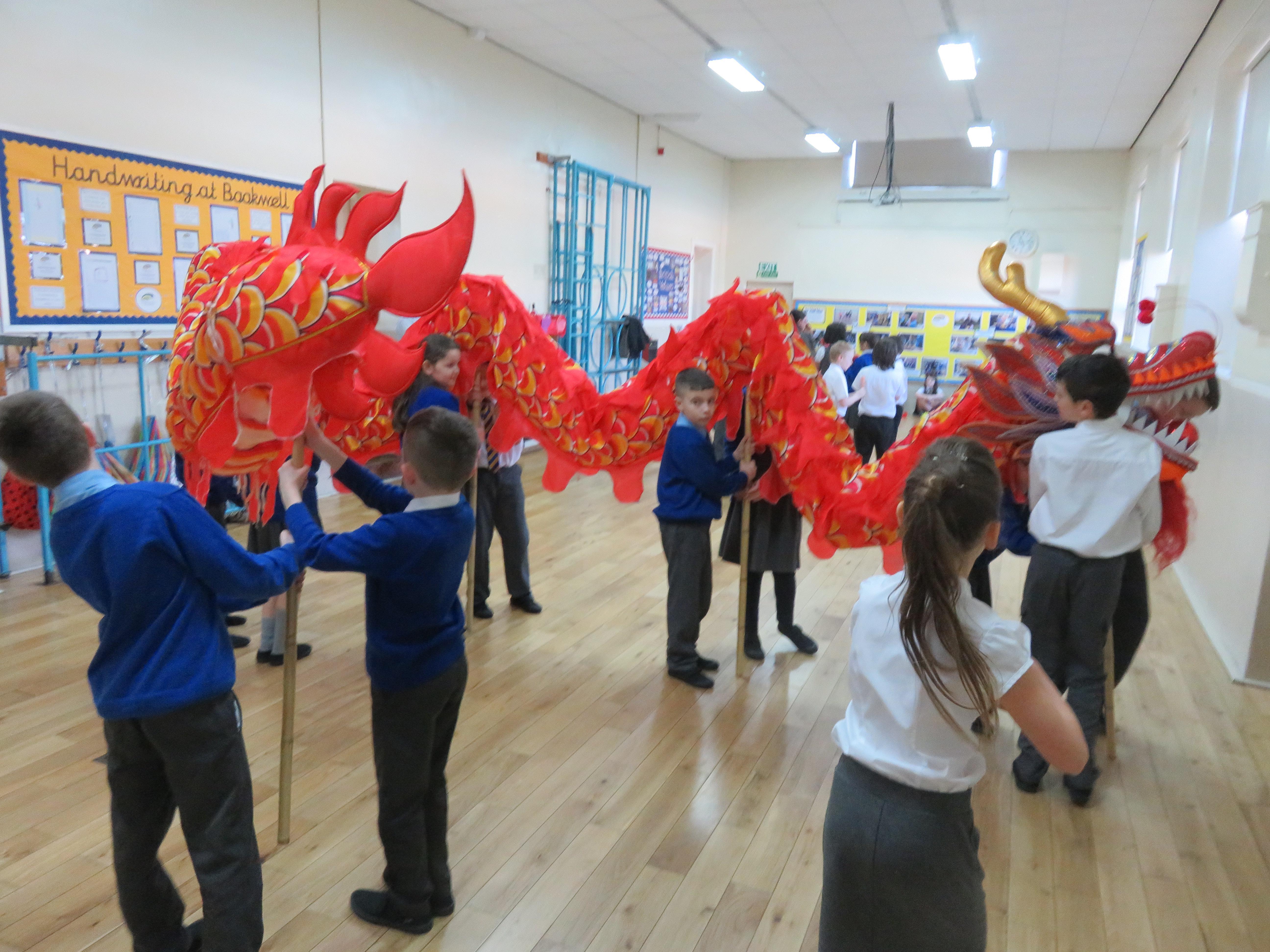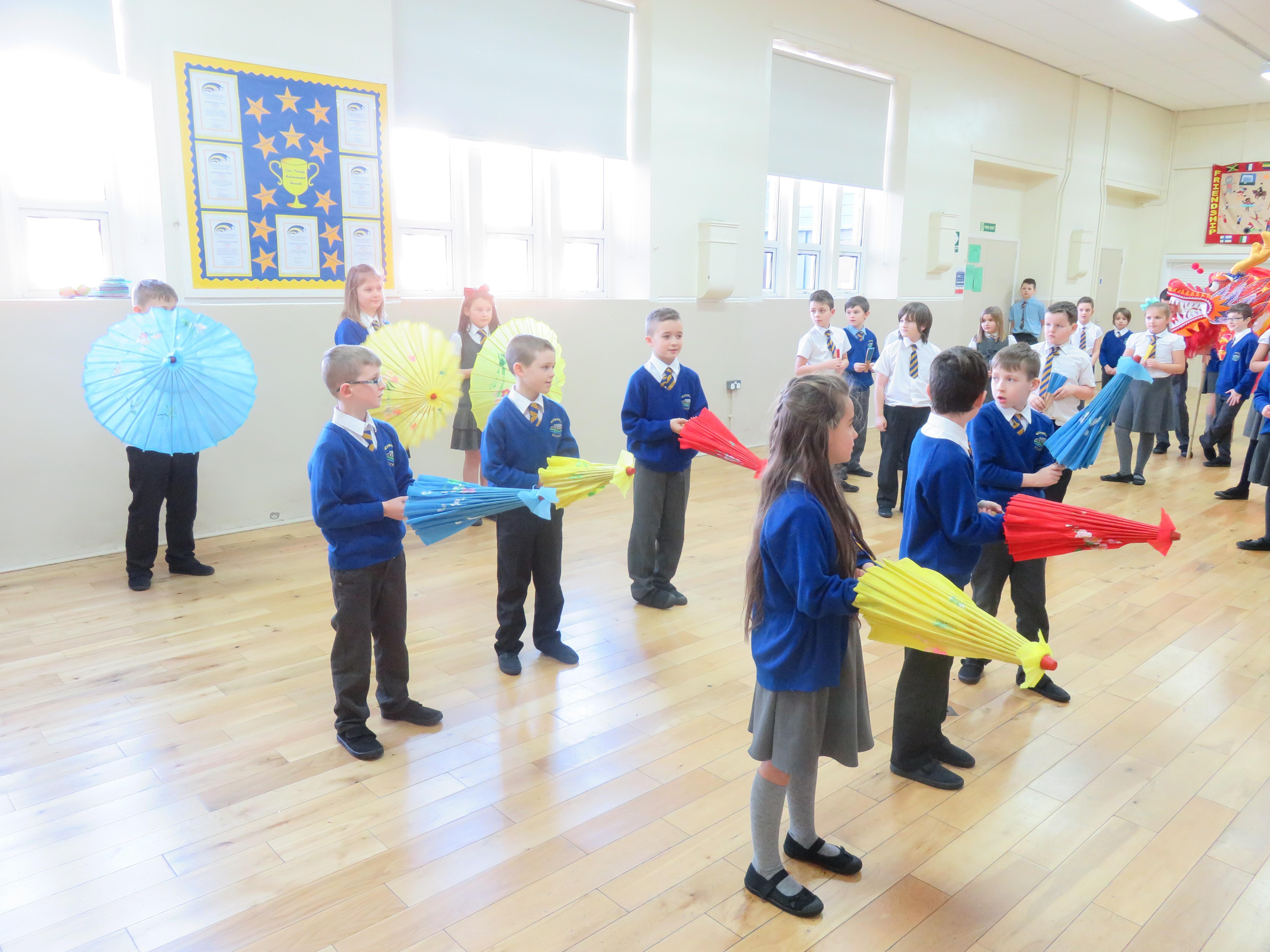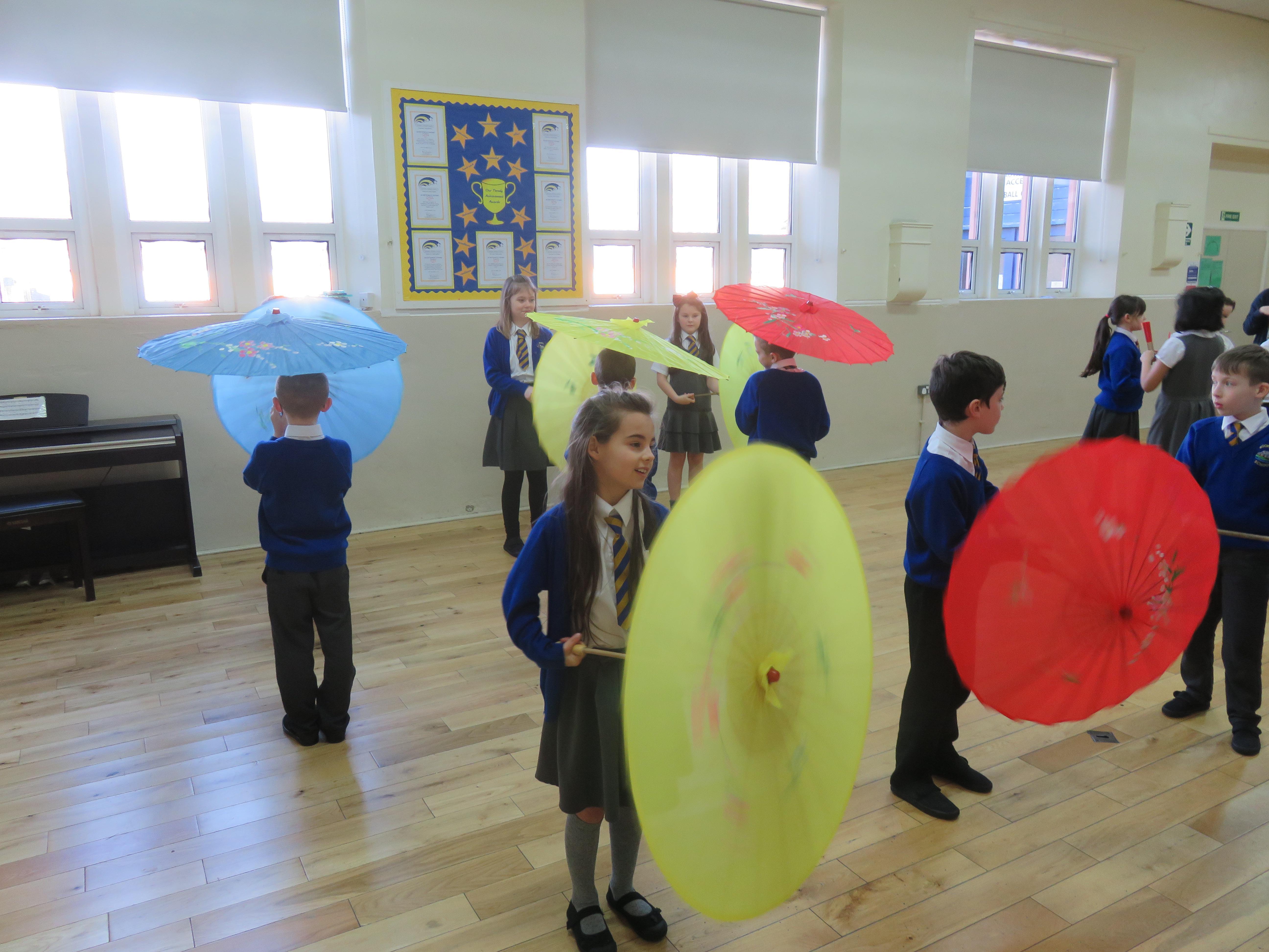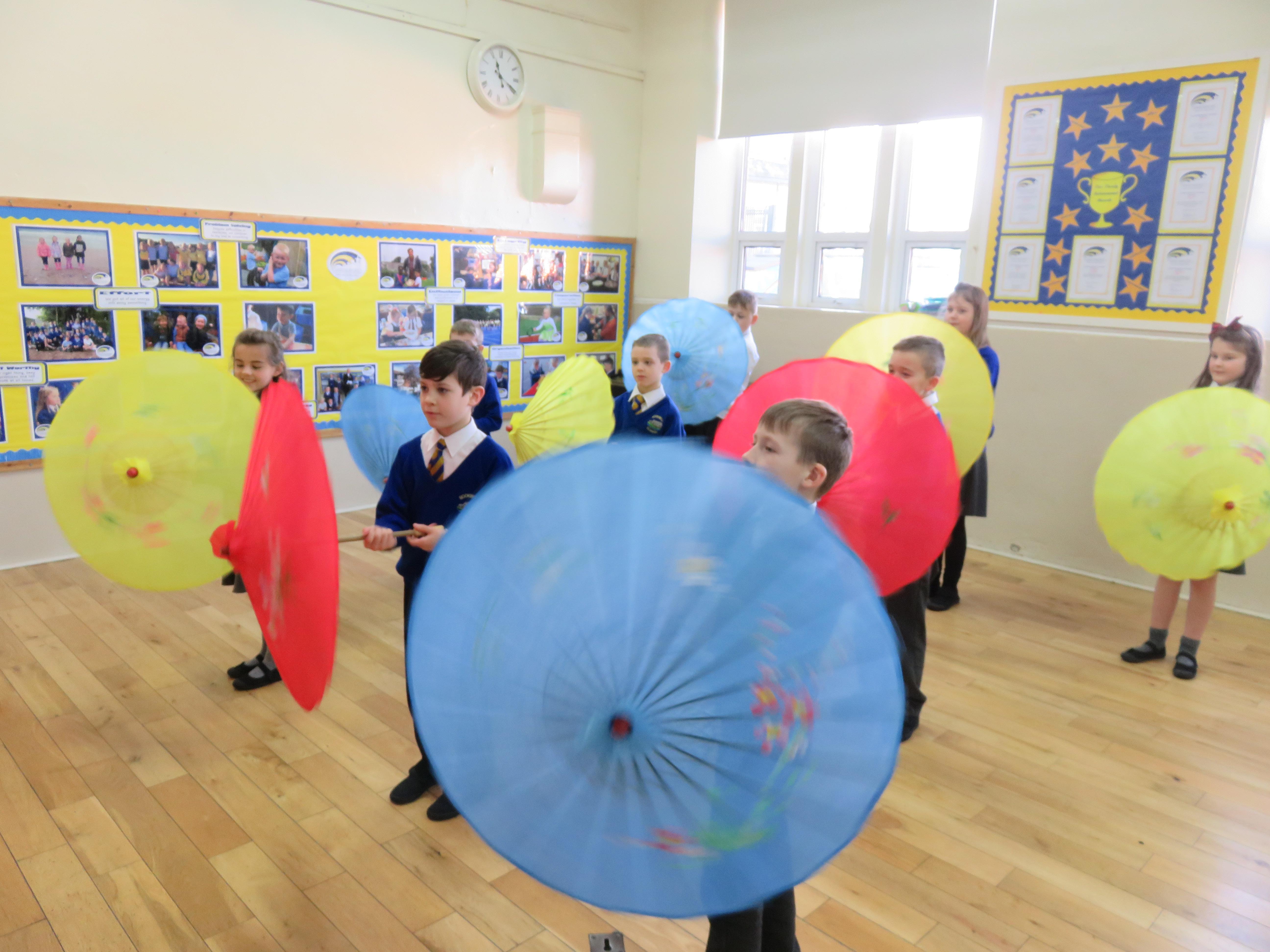 The children have been learning all about Chinese New Year.  'Primary Workshops for Schools' came to teach the children all about the Dragon Dance that is an important part of the Chinese New Year celebrations. They also got to take part in a fan or parasol dance. It was great fun!