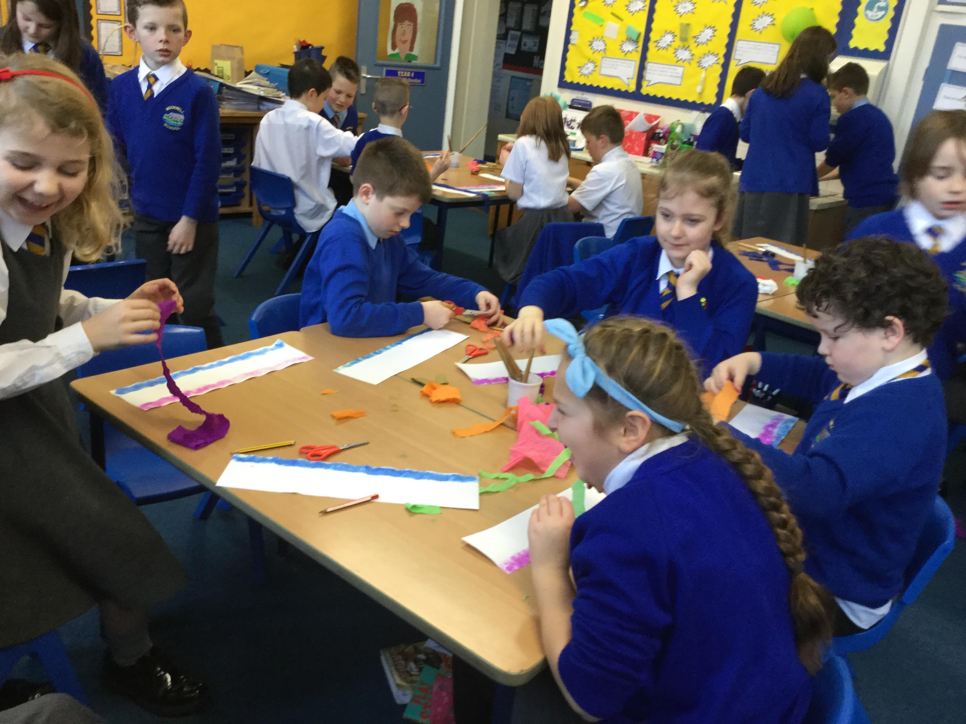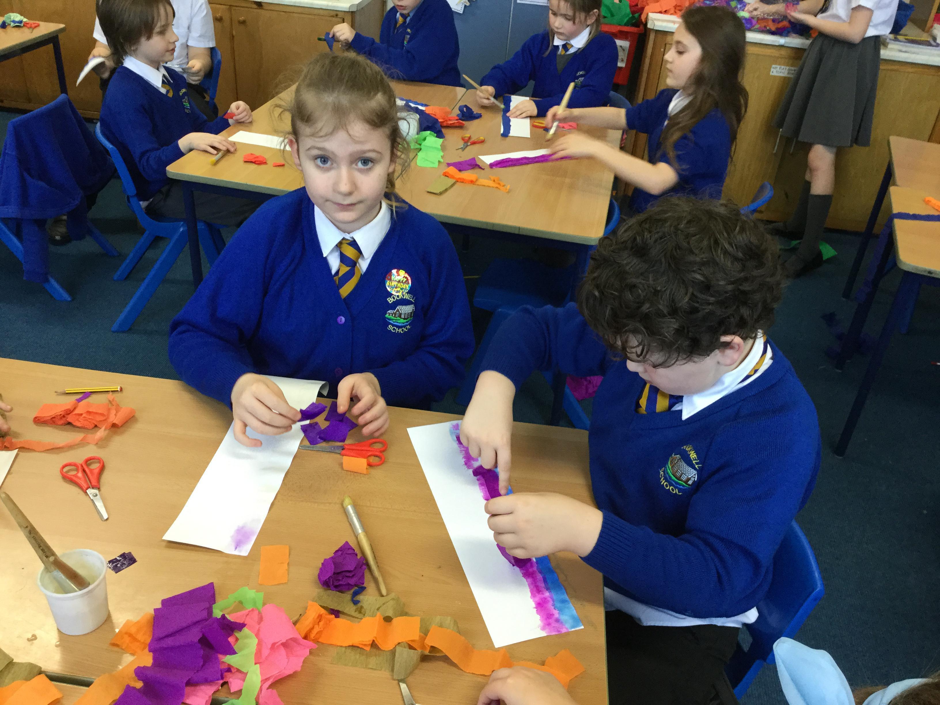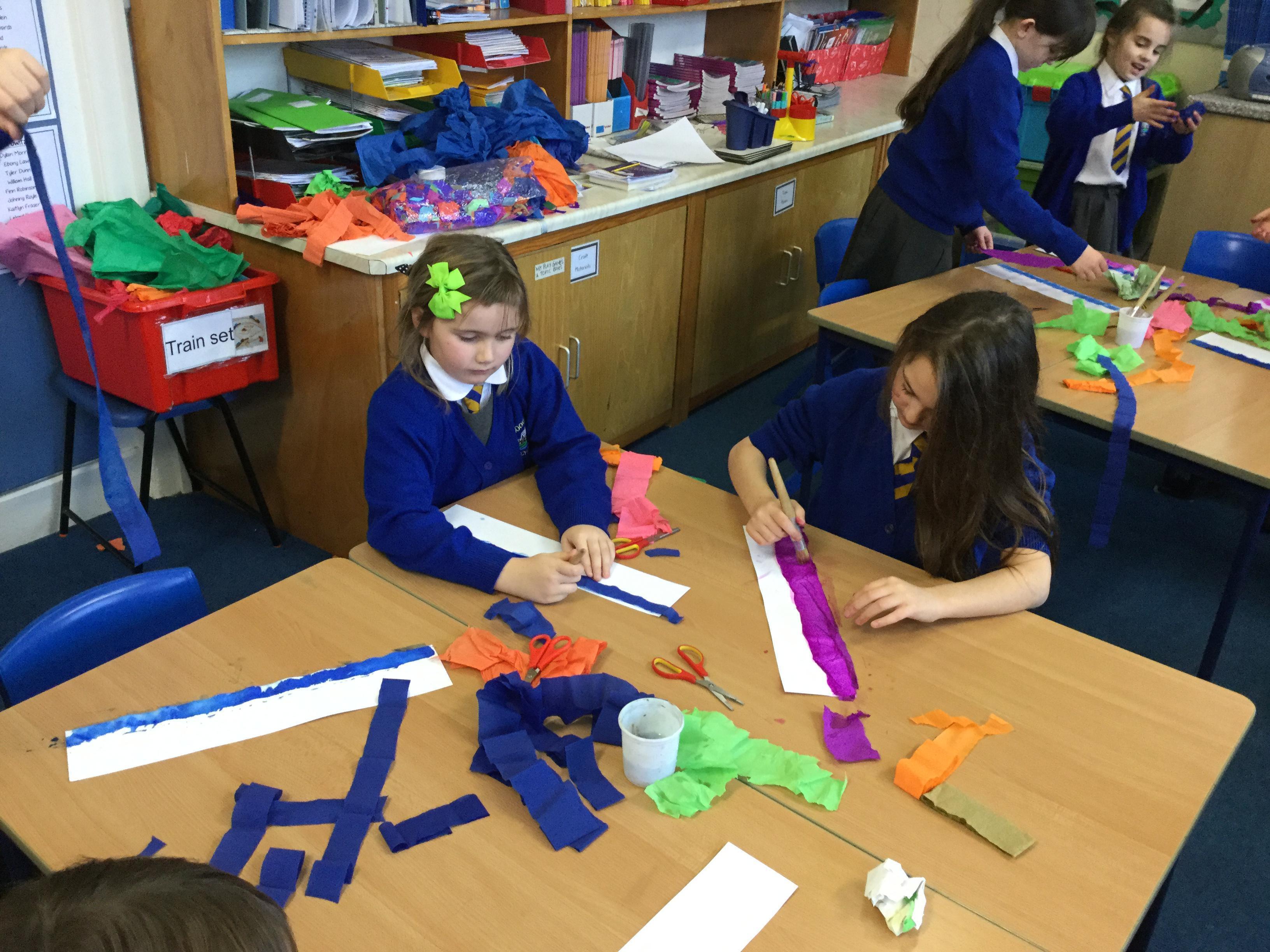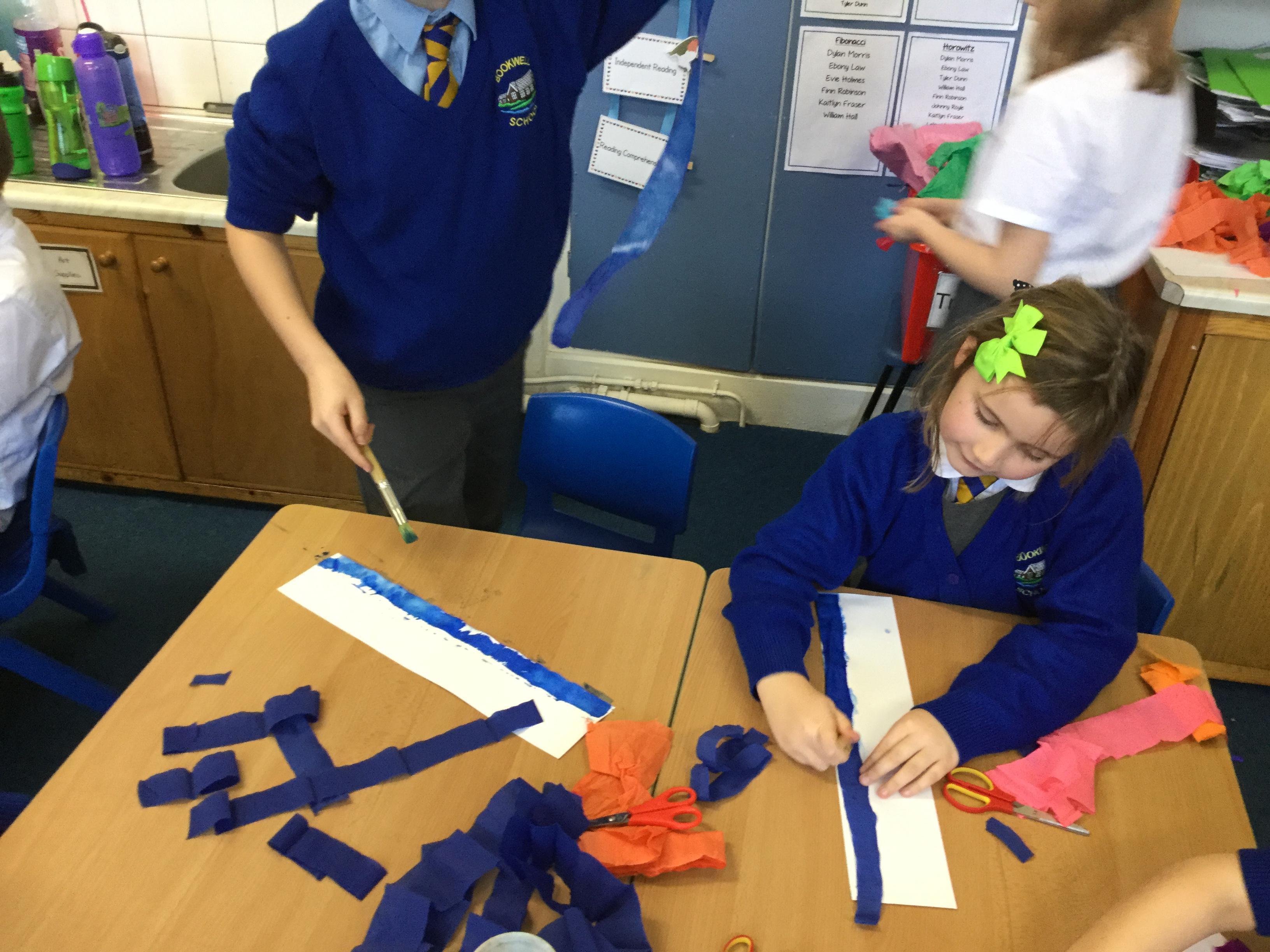 We have a couple of Art projects under way this half term. We have started making 'Calligraphy Banners' for our Chinese New Year mini-topic. We dyed cartridge paper using tissue and crepe paper to make the background for our Chinese writing.