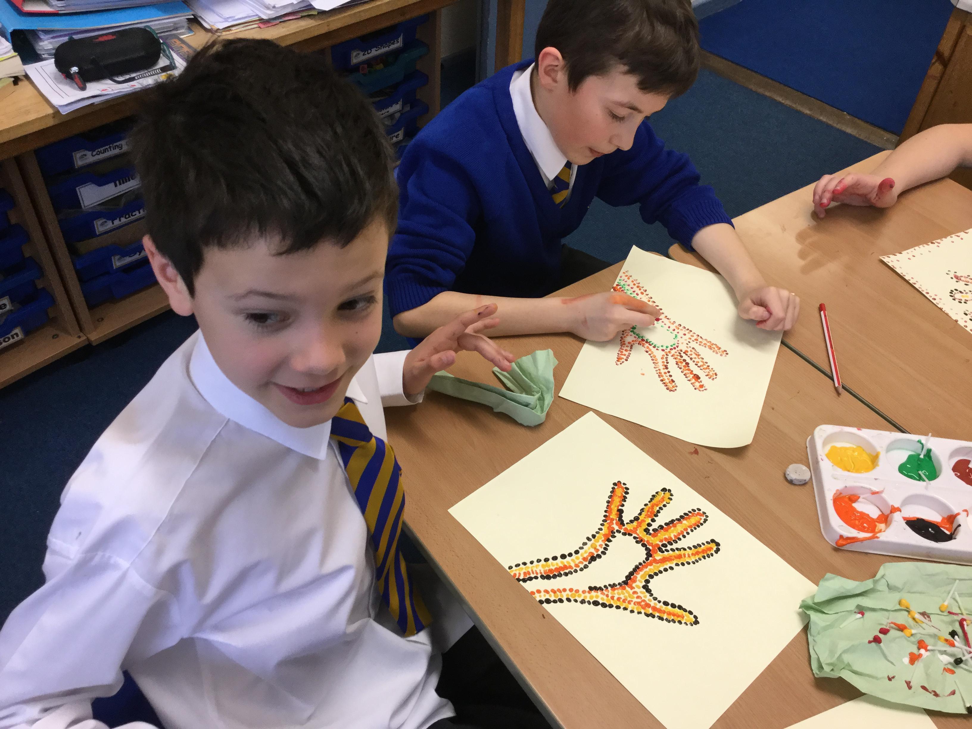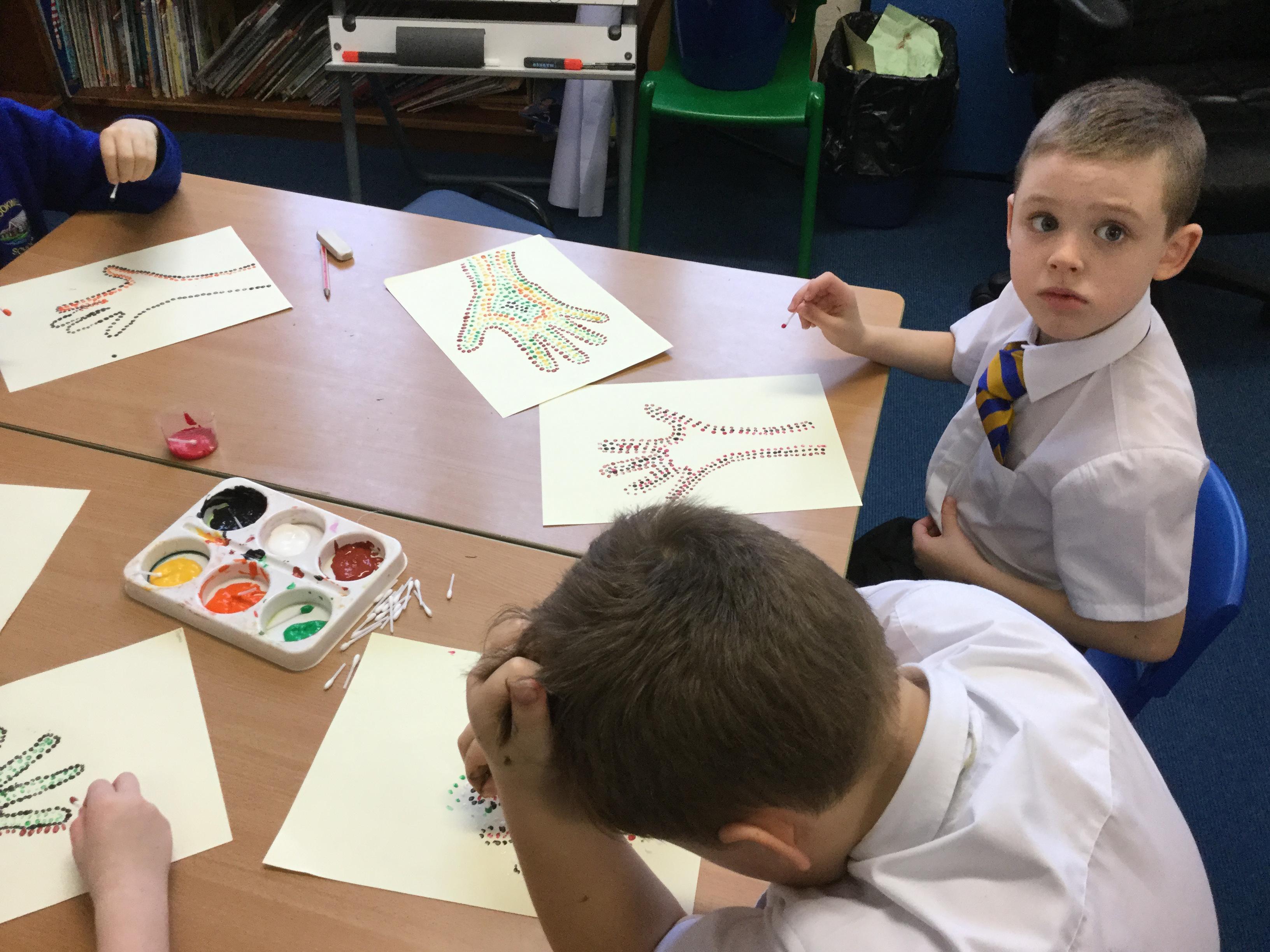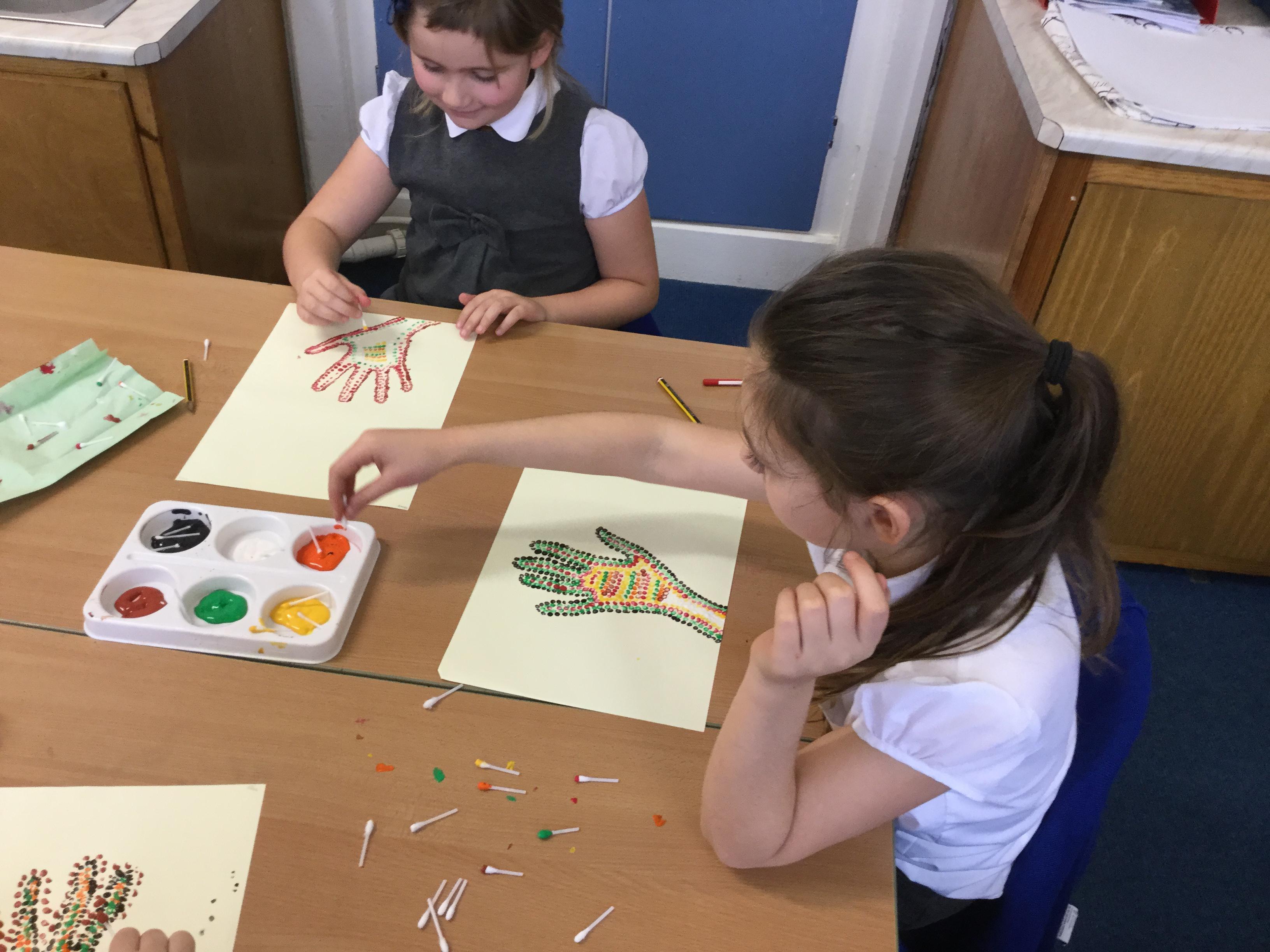 Also in progress are our 'Aboriginal Art' pieces.  The children are using earth colours and cotton buds to paint in the style of the Australian Aborigines. We'll post more pictures of our work as it progresses.