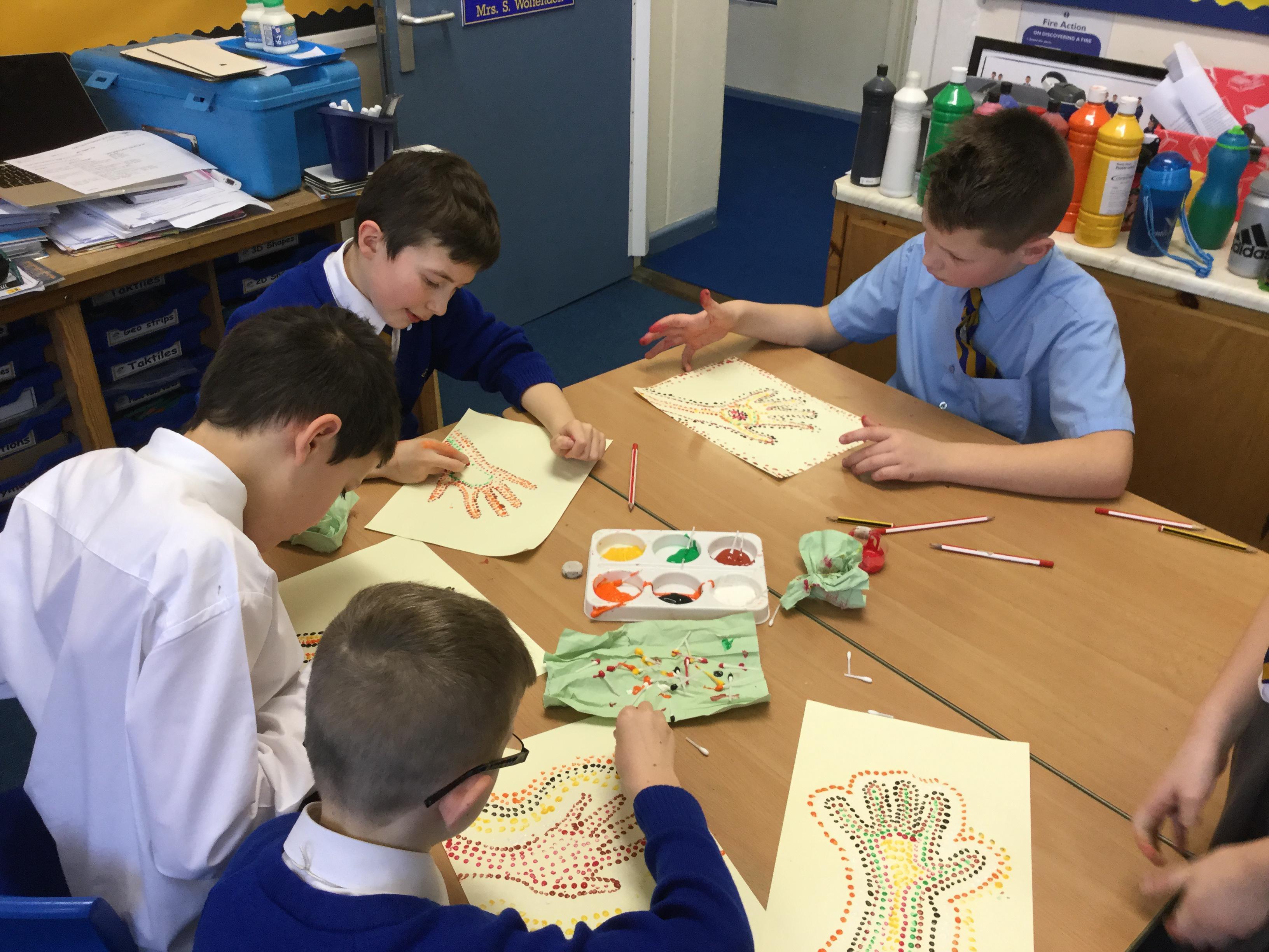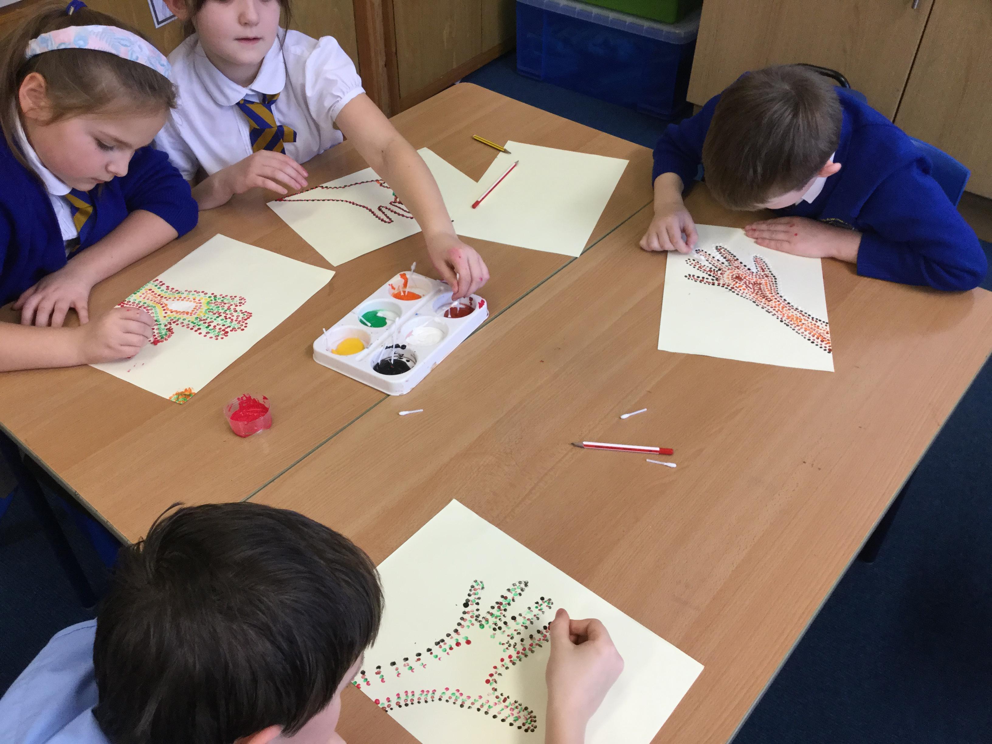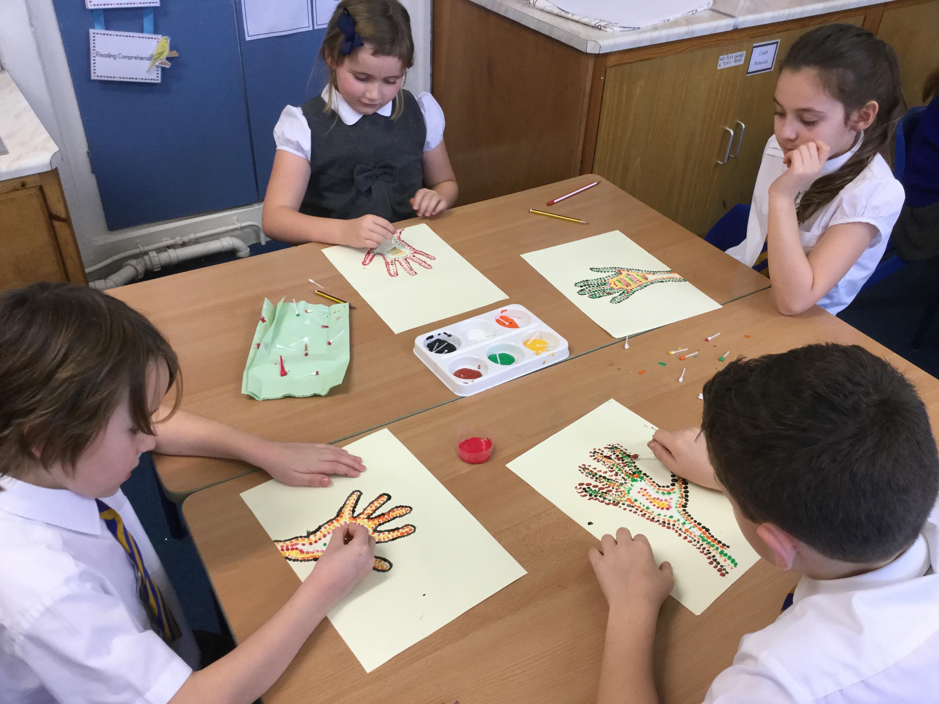 Also in progress are our 'Aboriginal Art' pieces.  The children are using earth colours and cotton buds to paint in the style of the Australian Aborigines. We'll post more pictures of our work as it progresses.