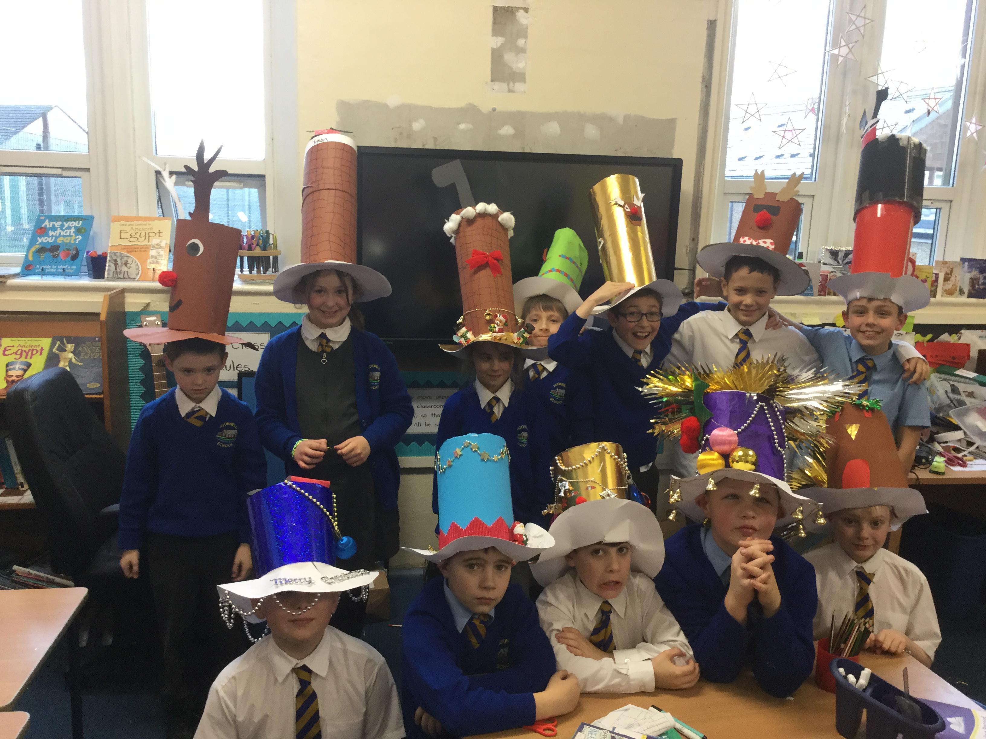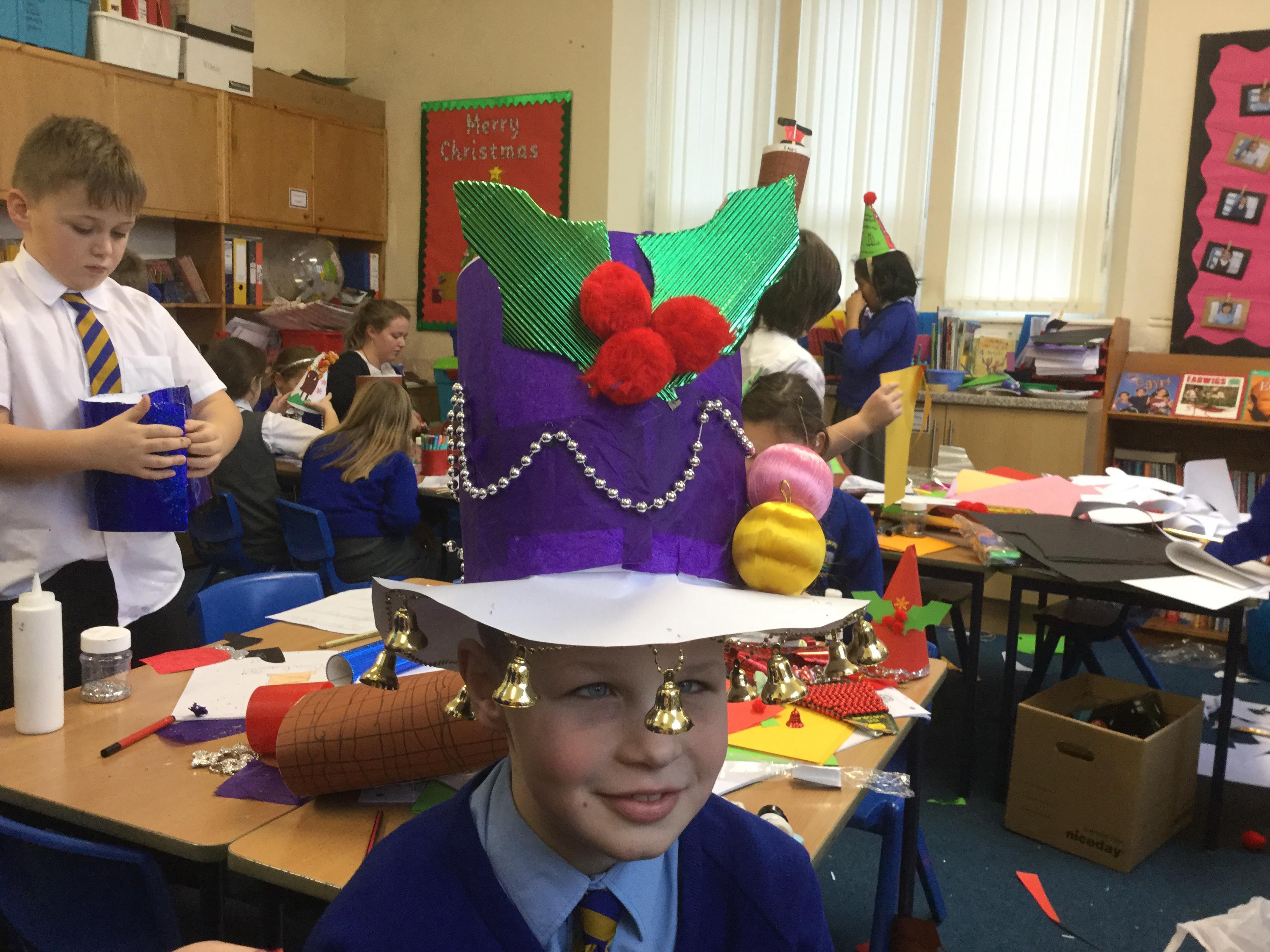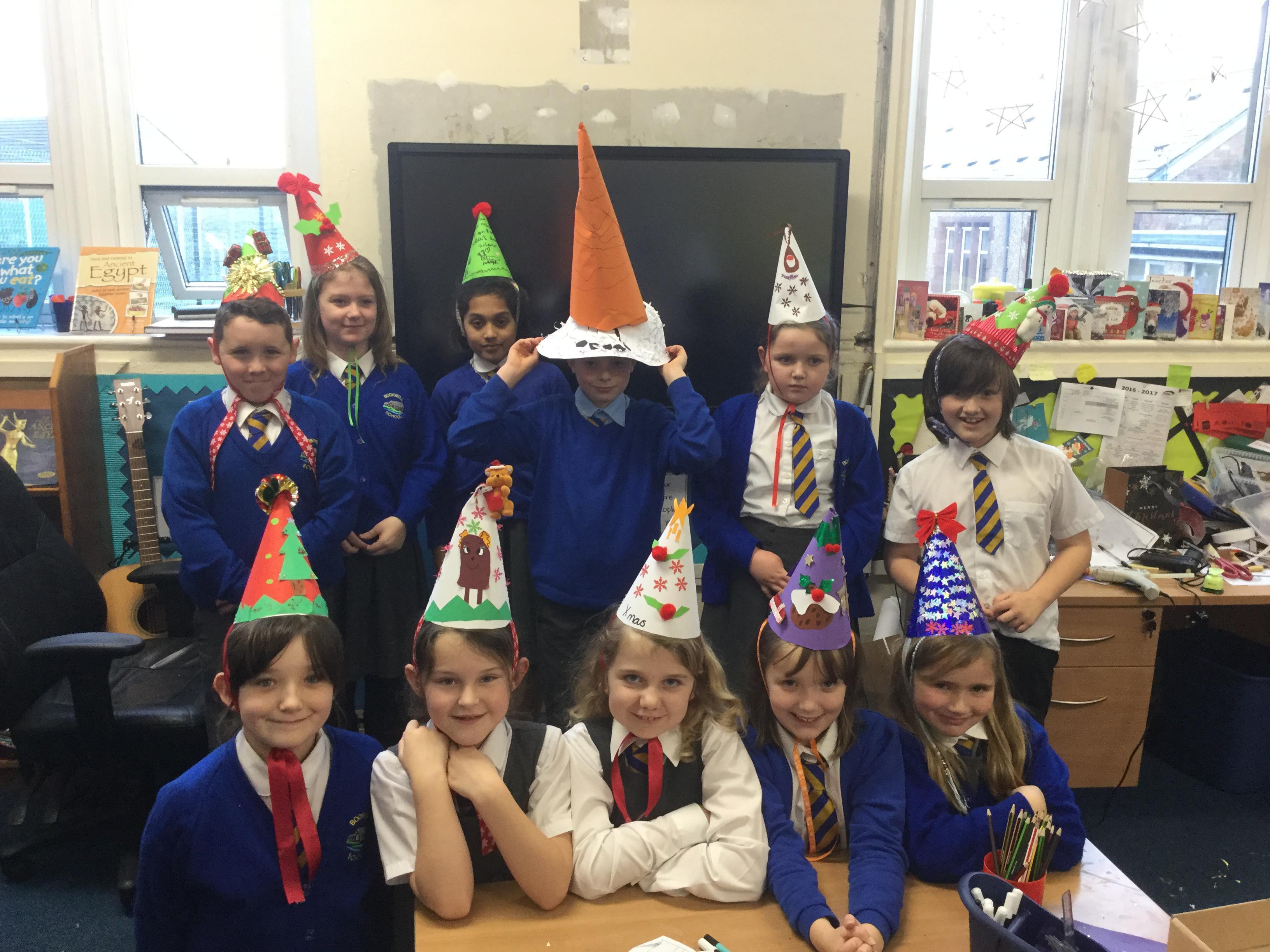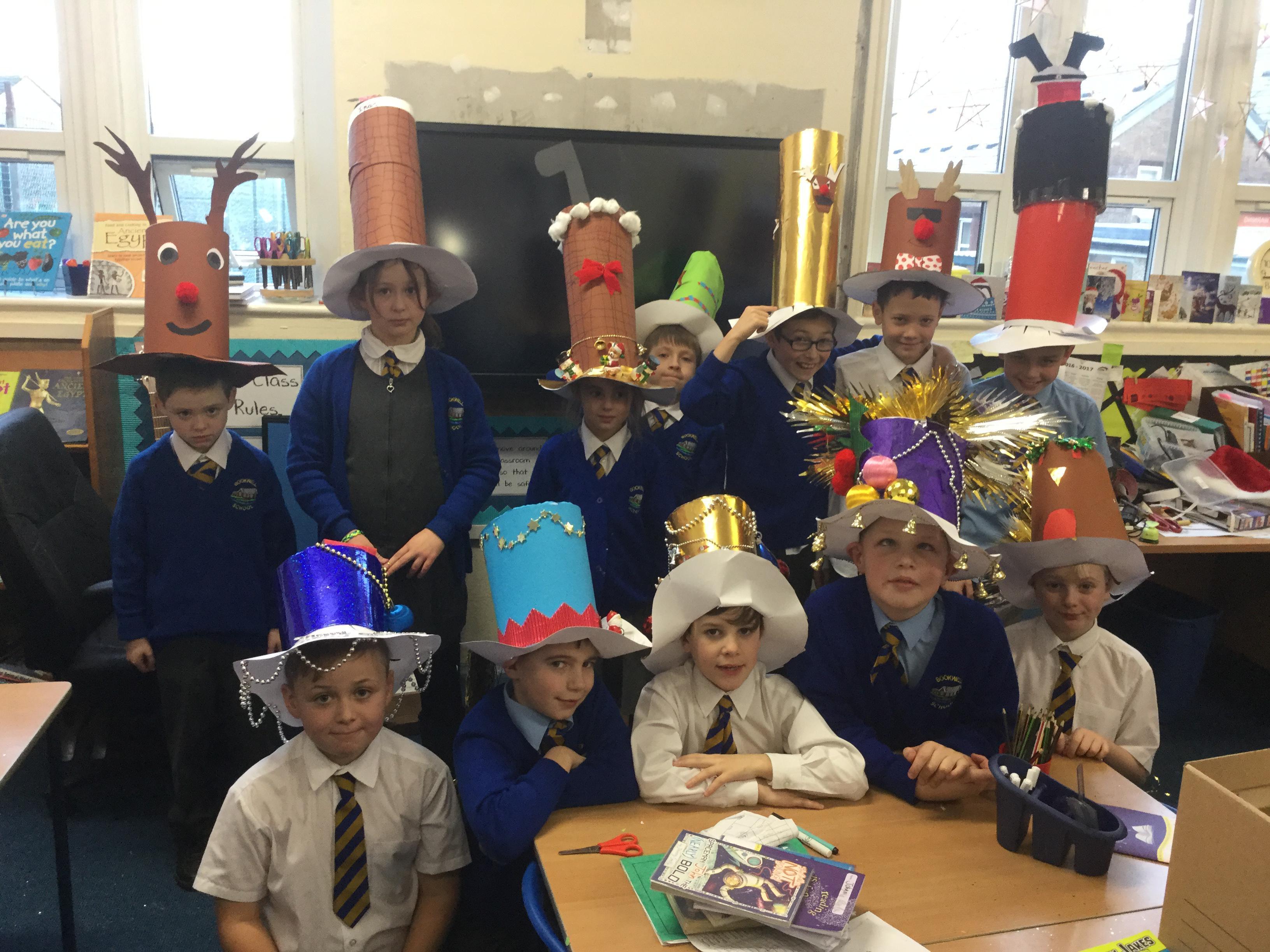 Year 4 have been competing for the 'Dick Winter Trophy'.  They were making festive party hats using lots of Christmassy decorations and ideas.  Some of them went to town on their designs.  I think they look fabulously festive.  What do you think?