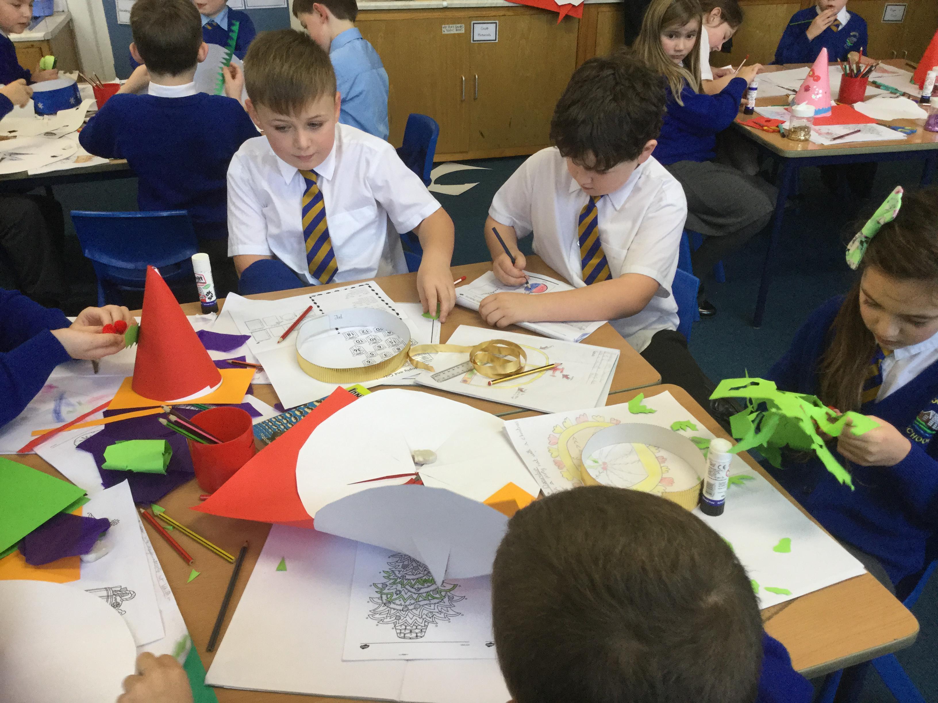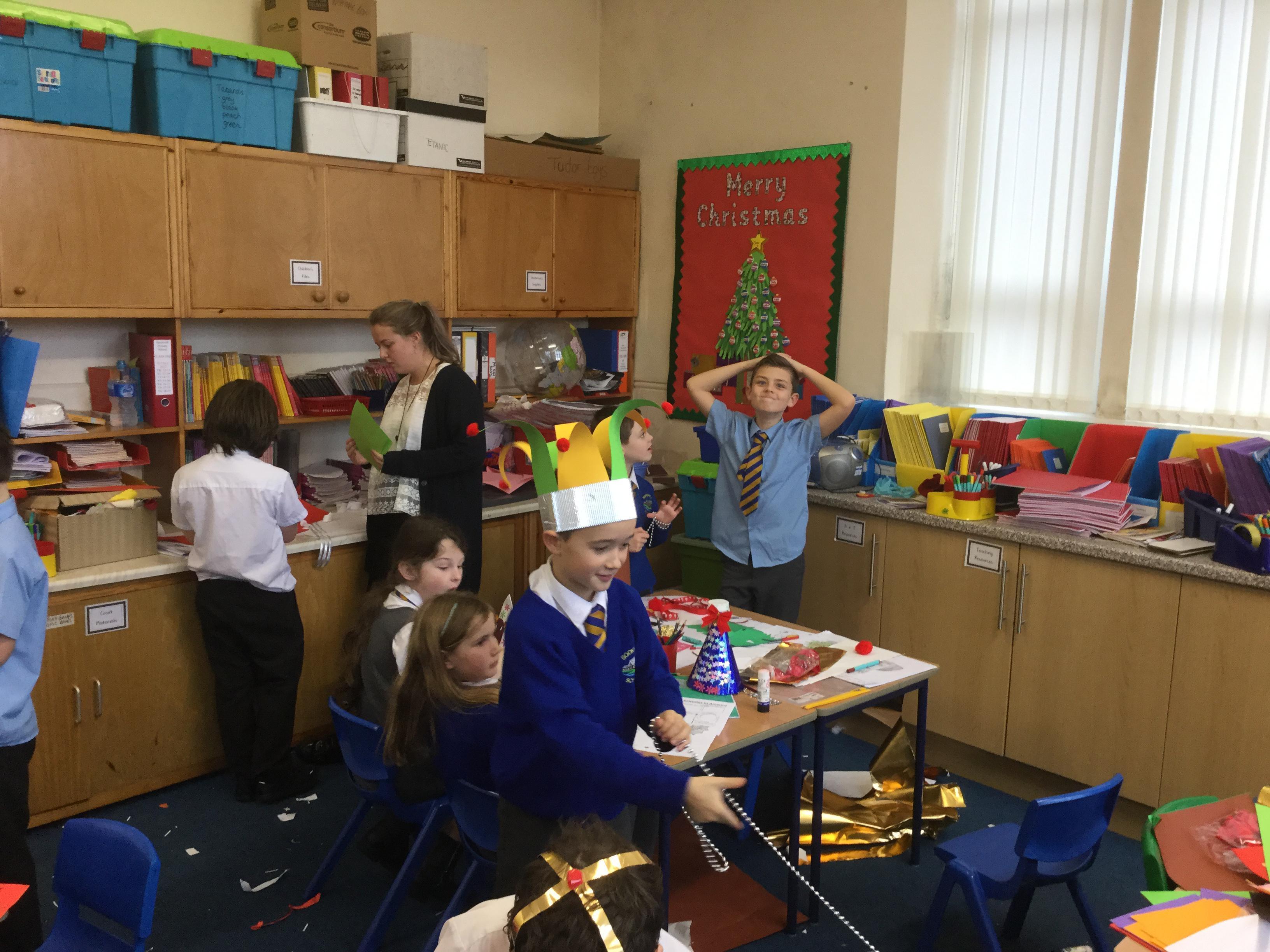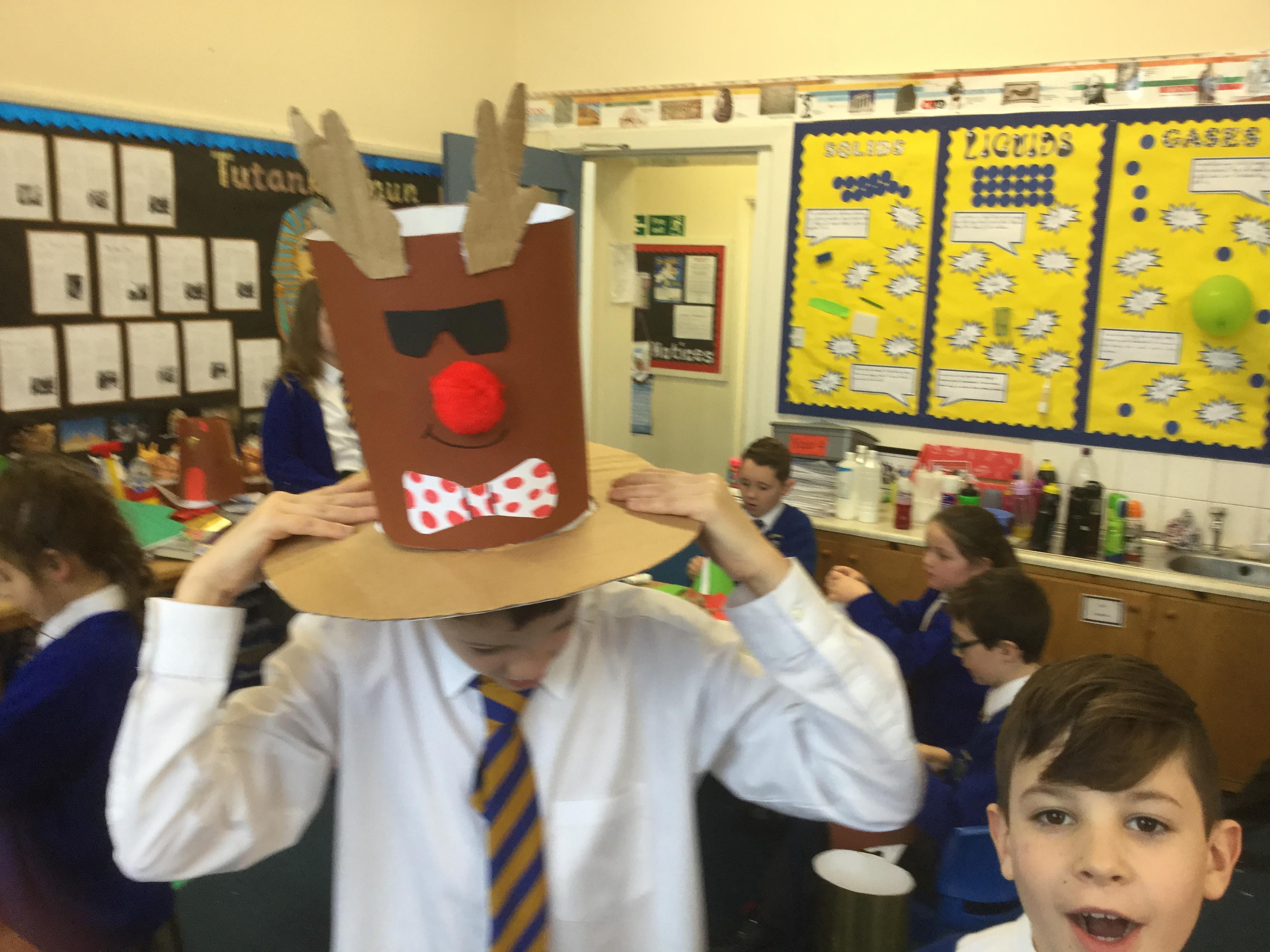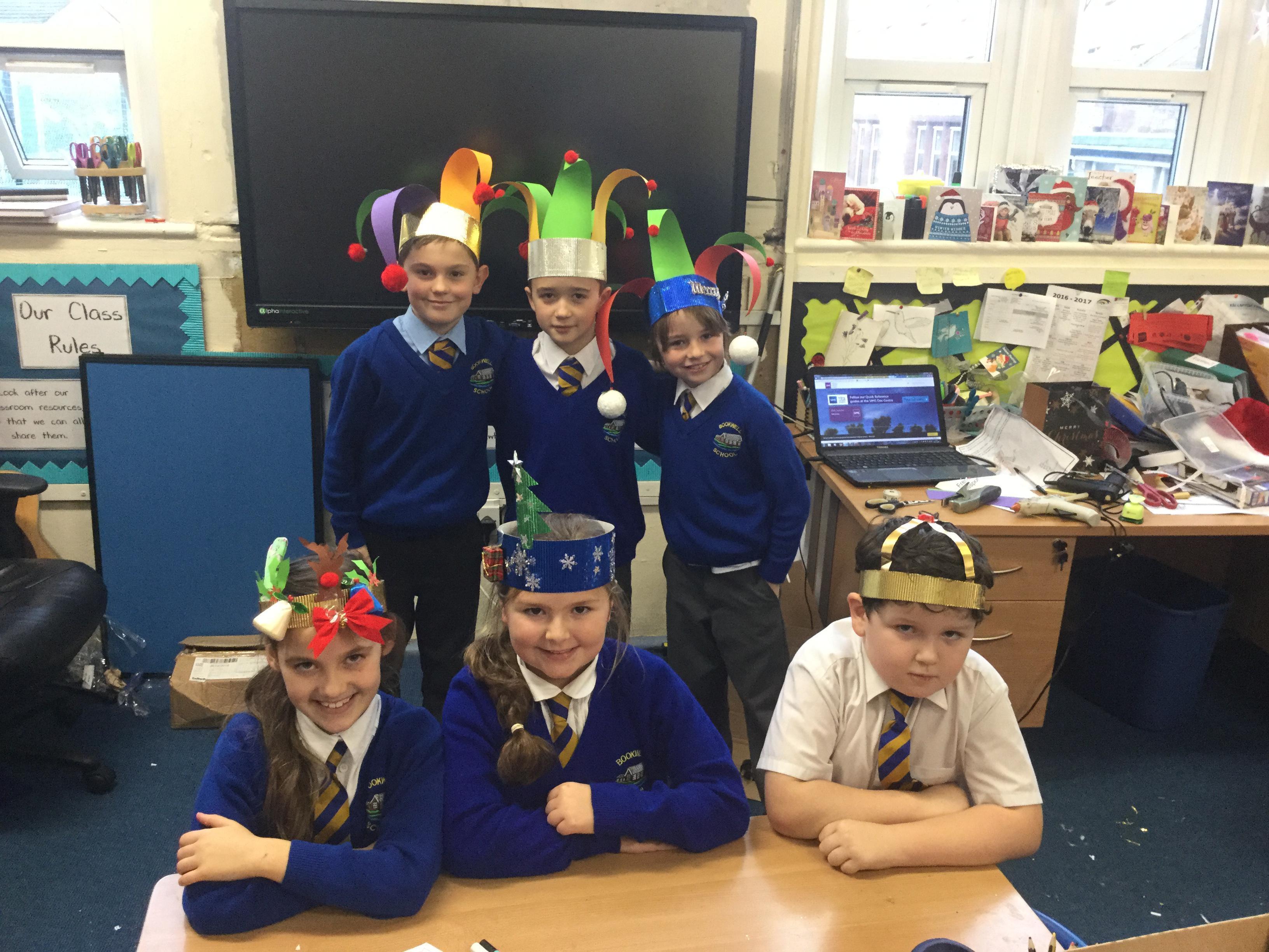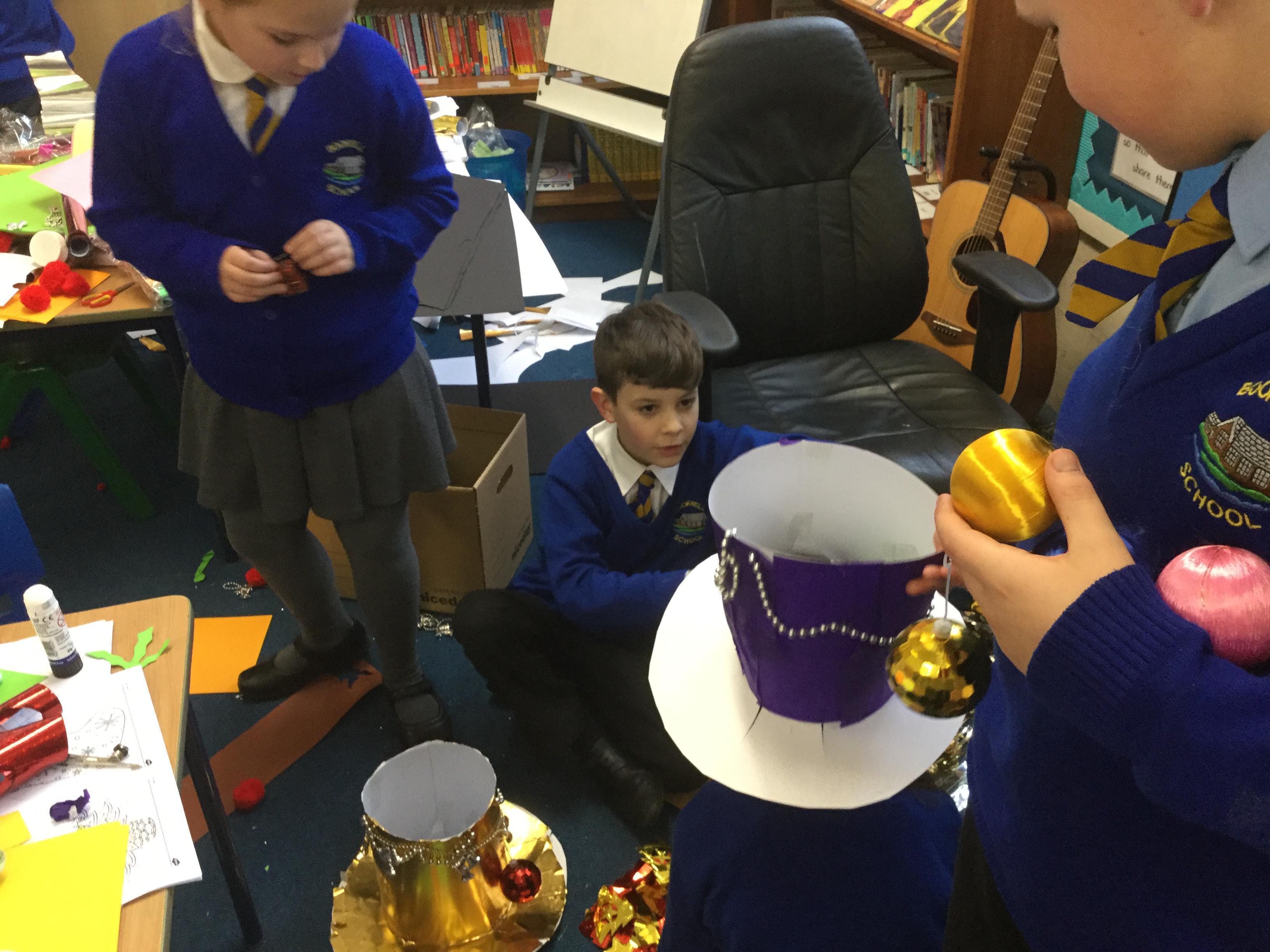 Year 4 have been competing for the 'Dick Winter Trophy'.  They were making festive party hats using lots of Christmassy decorations and ideas.  Some of them went to town on their designs.  I think they look fabulously festive.  What do you think?