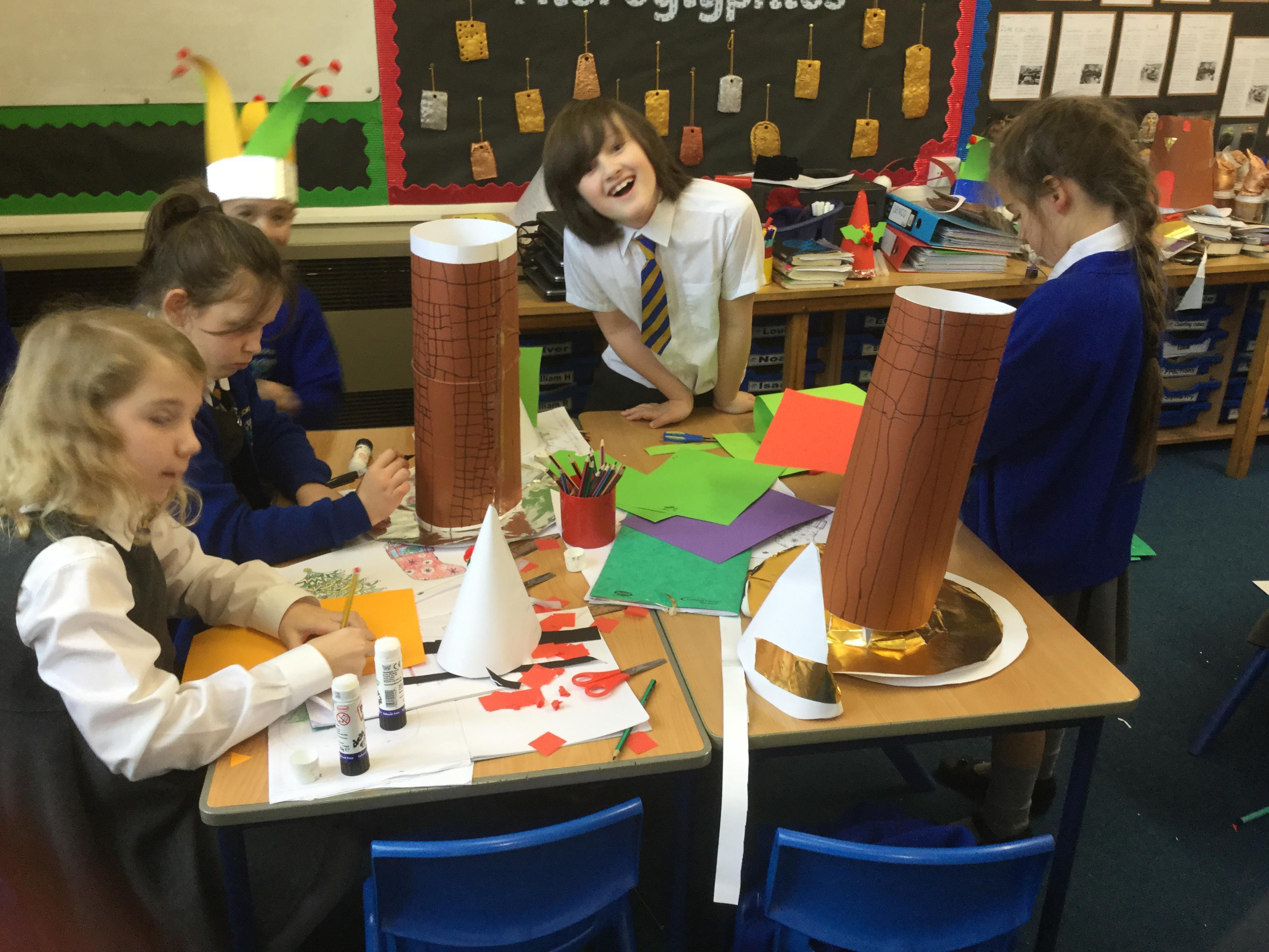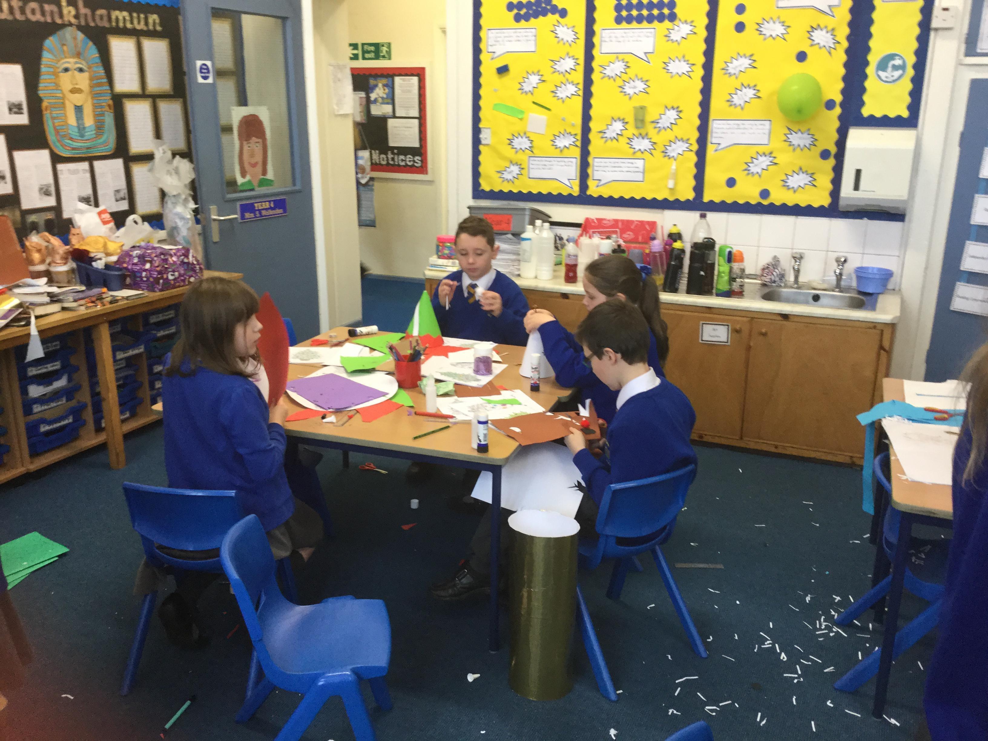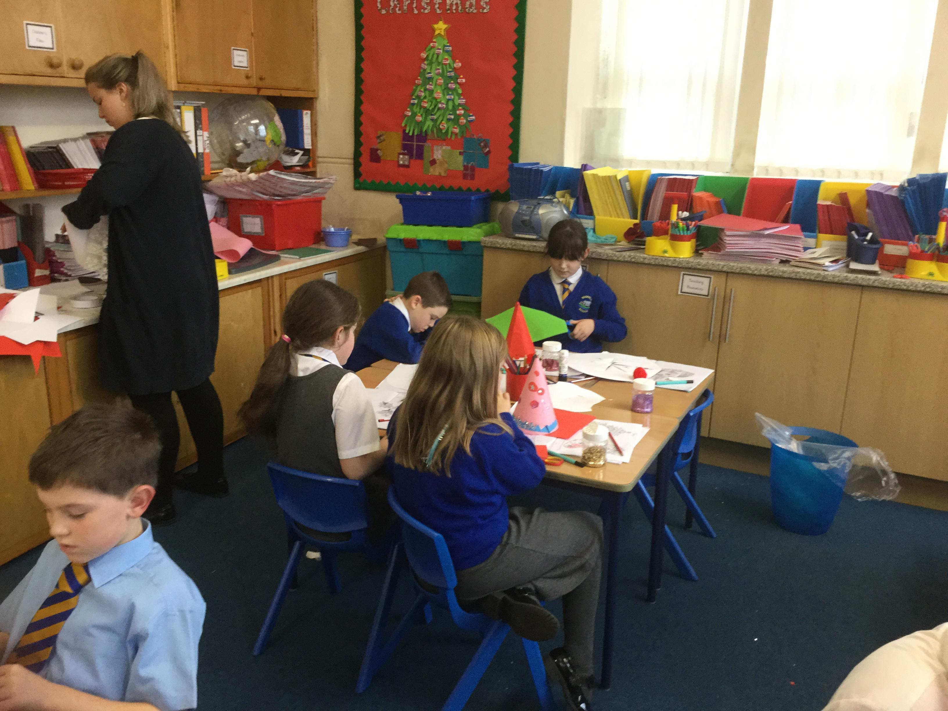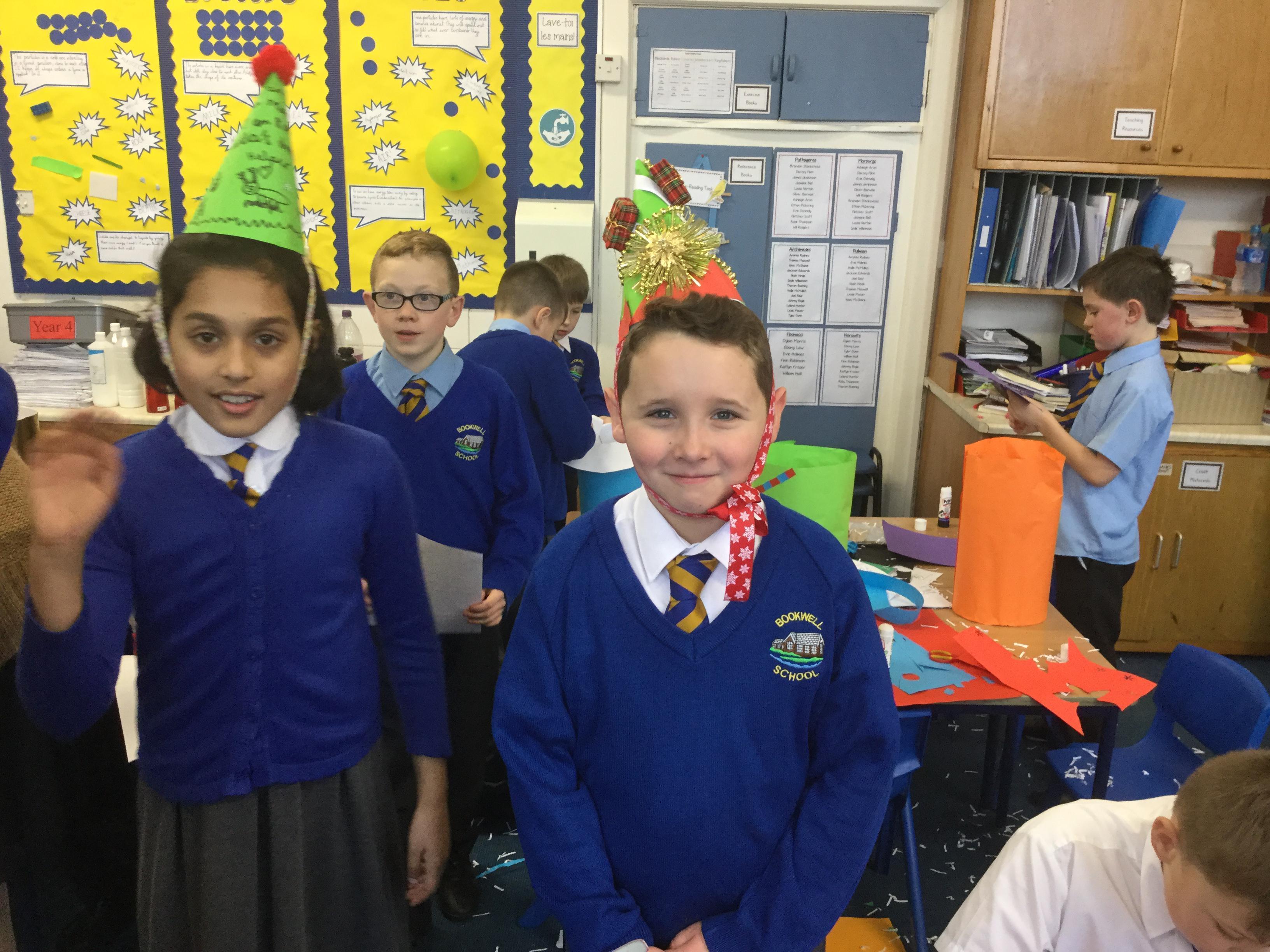 Year 4 have been competing for the 'Dick Winter Trophy'.  They were making festive party hats using lots of Christmassy decorations and ideas.  Some of them went to town on their designs.  I think they look fabulously festive.  What do you think?