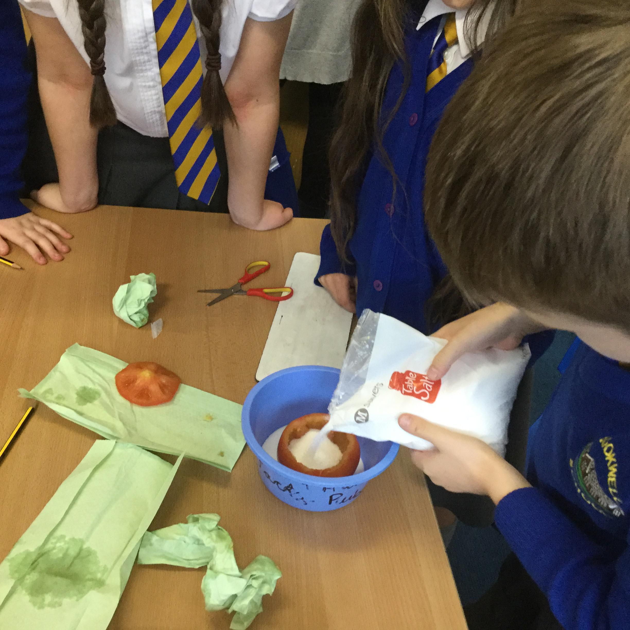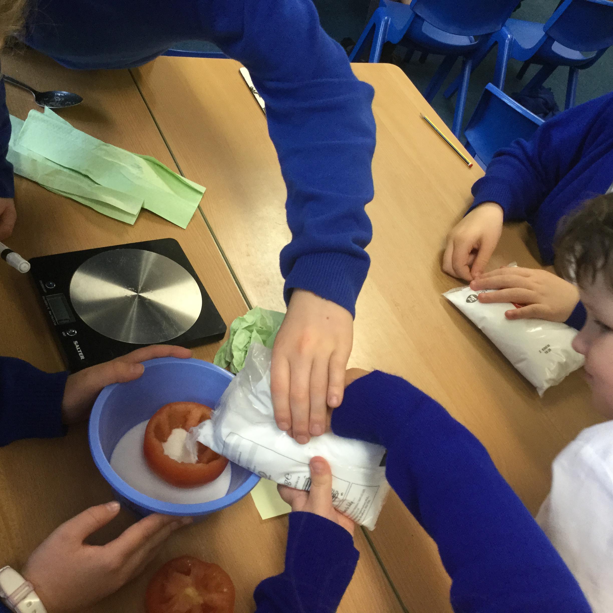 Year 4 have been mummifying tomatoes. We wanted to see why the Ancient Egyptians used Natron (salt) to dry out their dead bodies, and if it really worked!