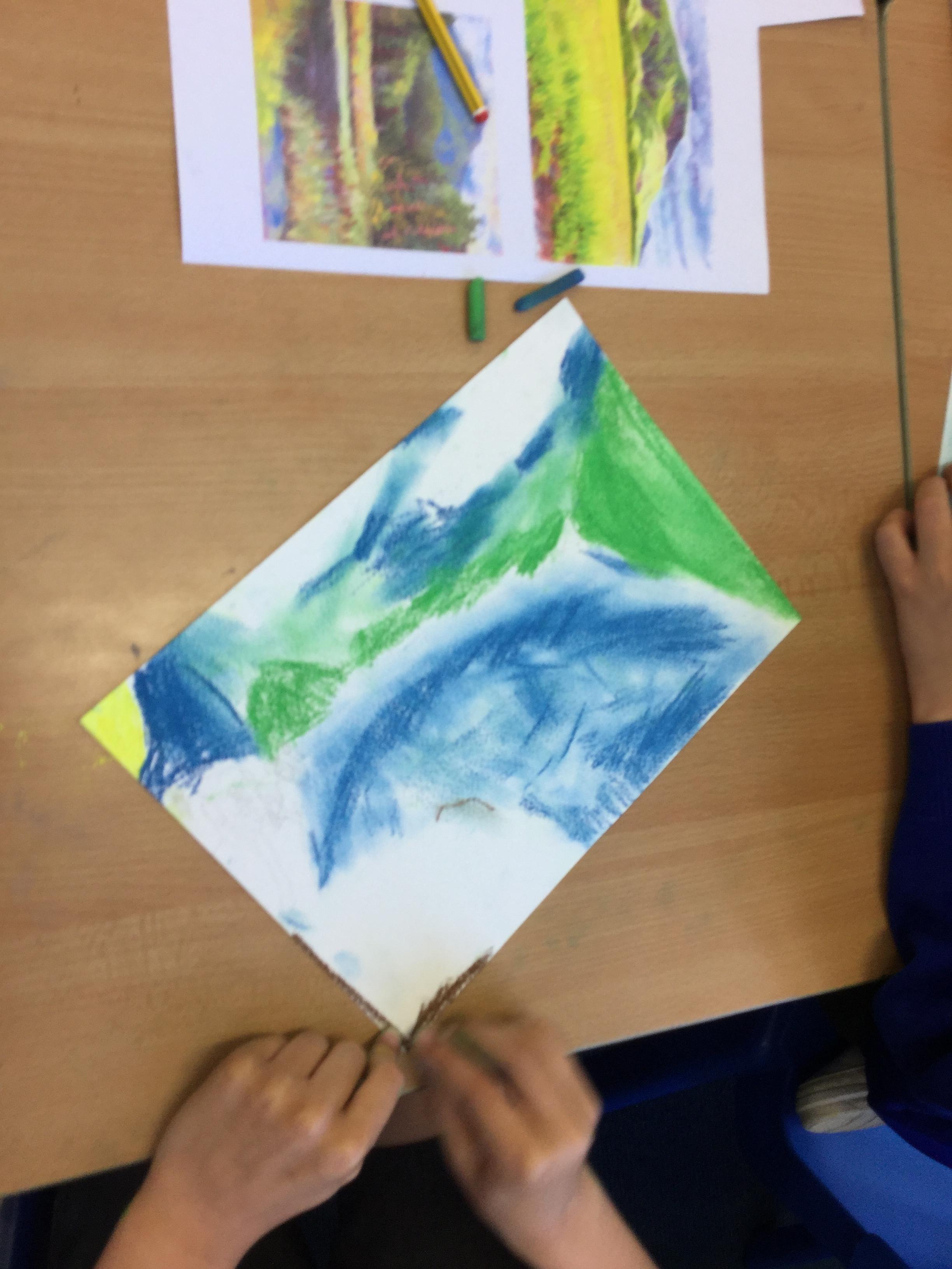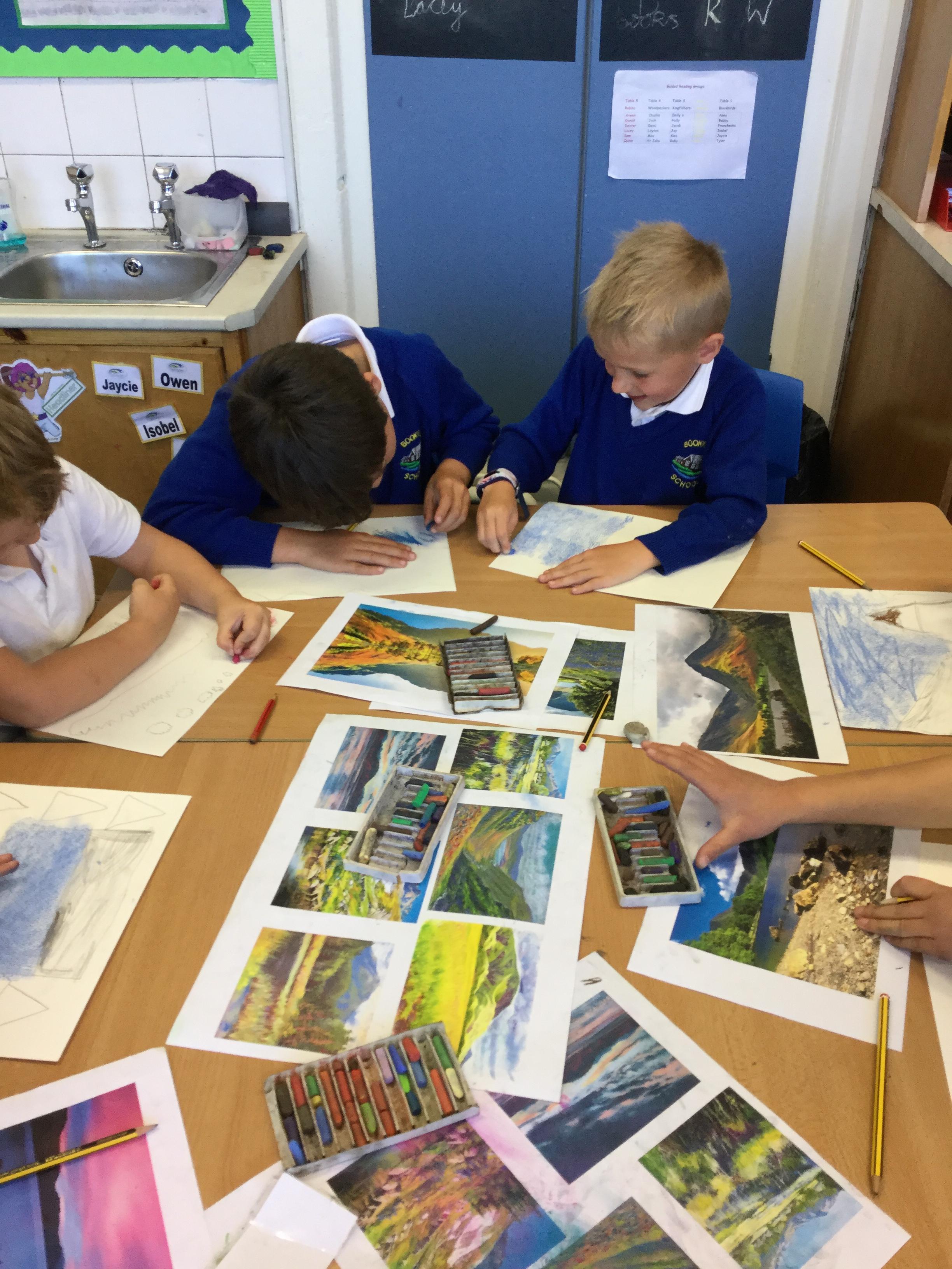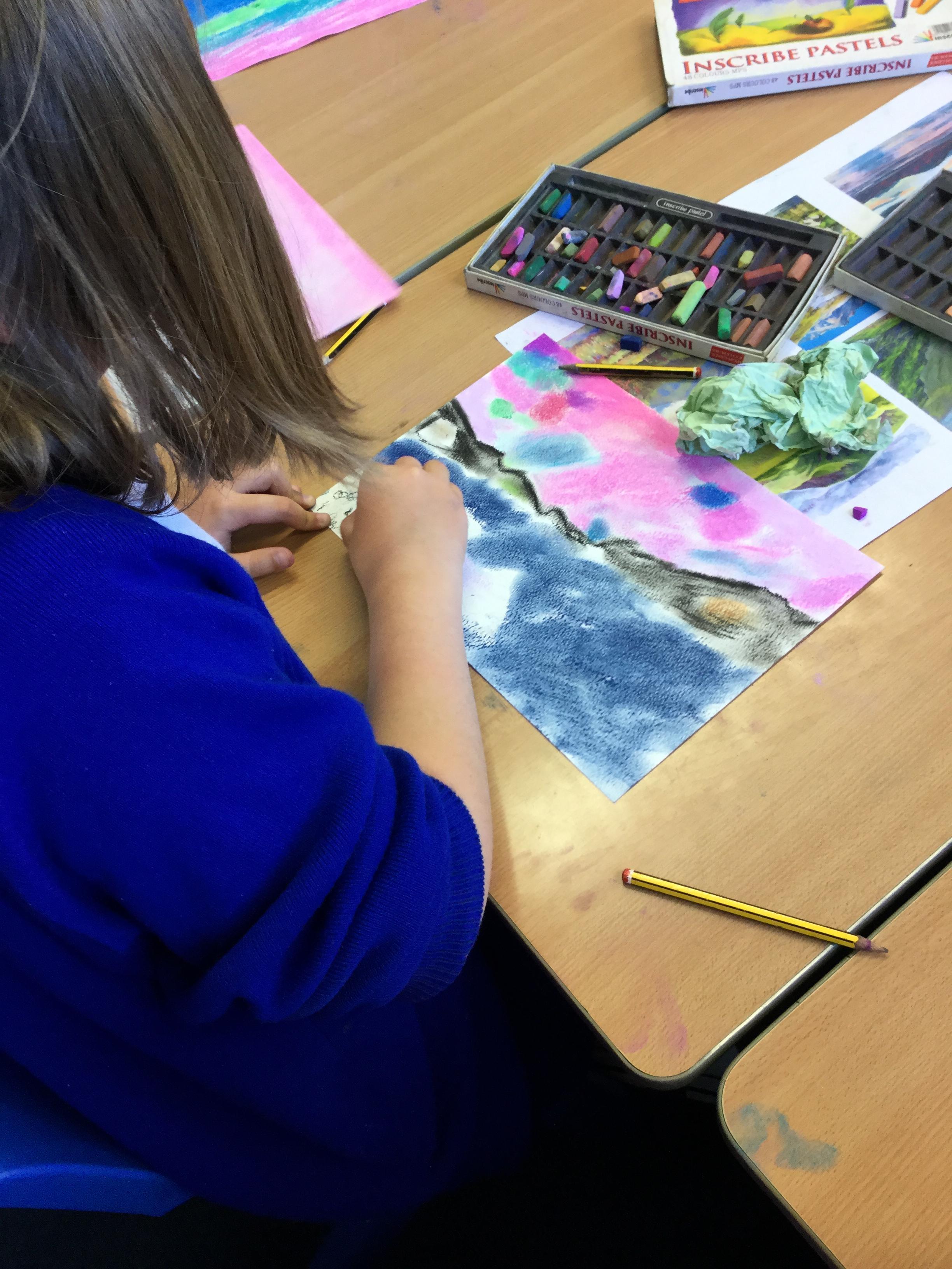 In year 4 we have been creating landscape drawing of the Lake District using chalk pastels. The children have been given a range of photographic images from famous fells to popular lakeside tourist destinations, as a basis for their drawings. They have been taught how to create different colours and effects with the pastels and produced some fabulous work.