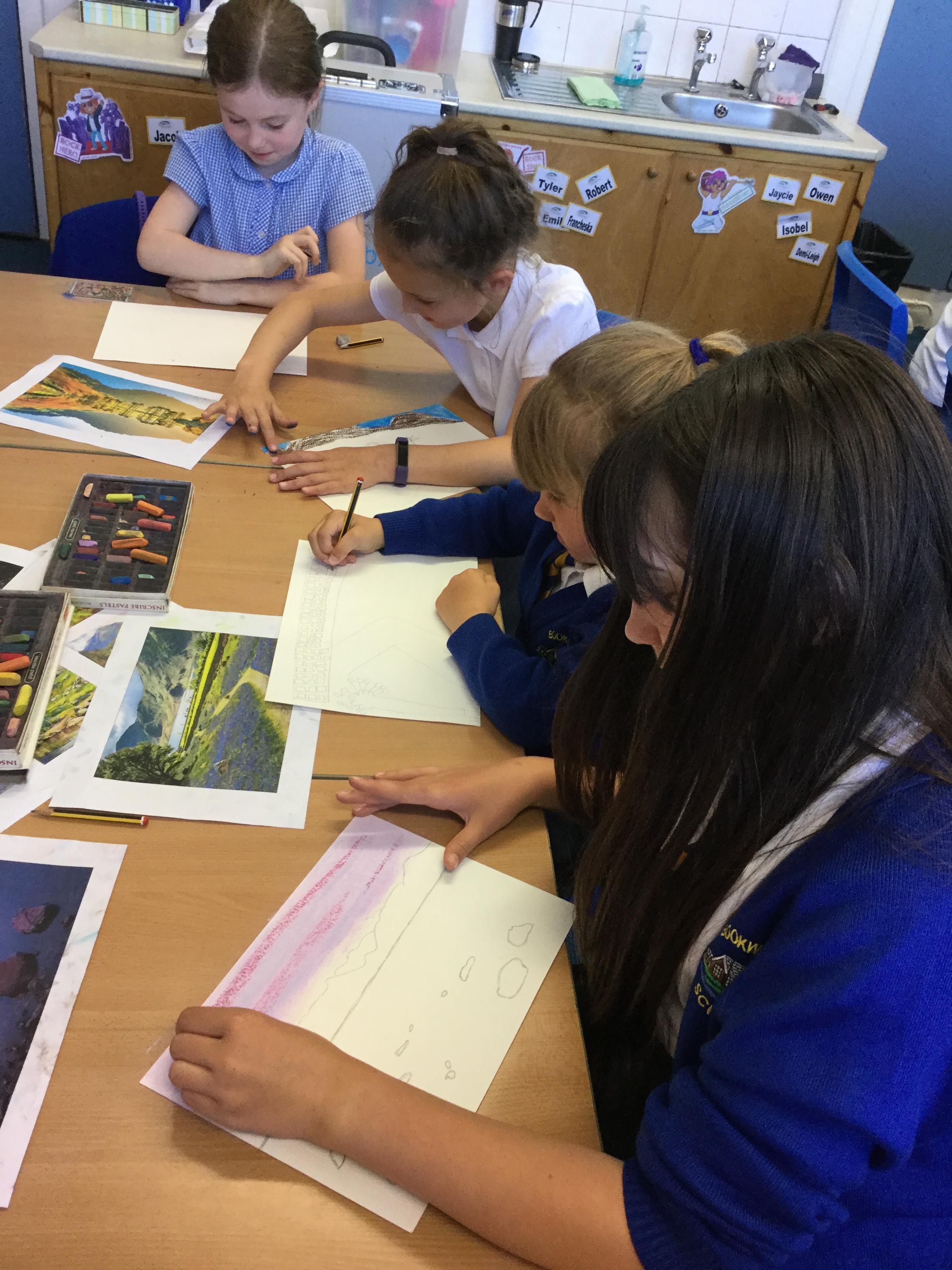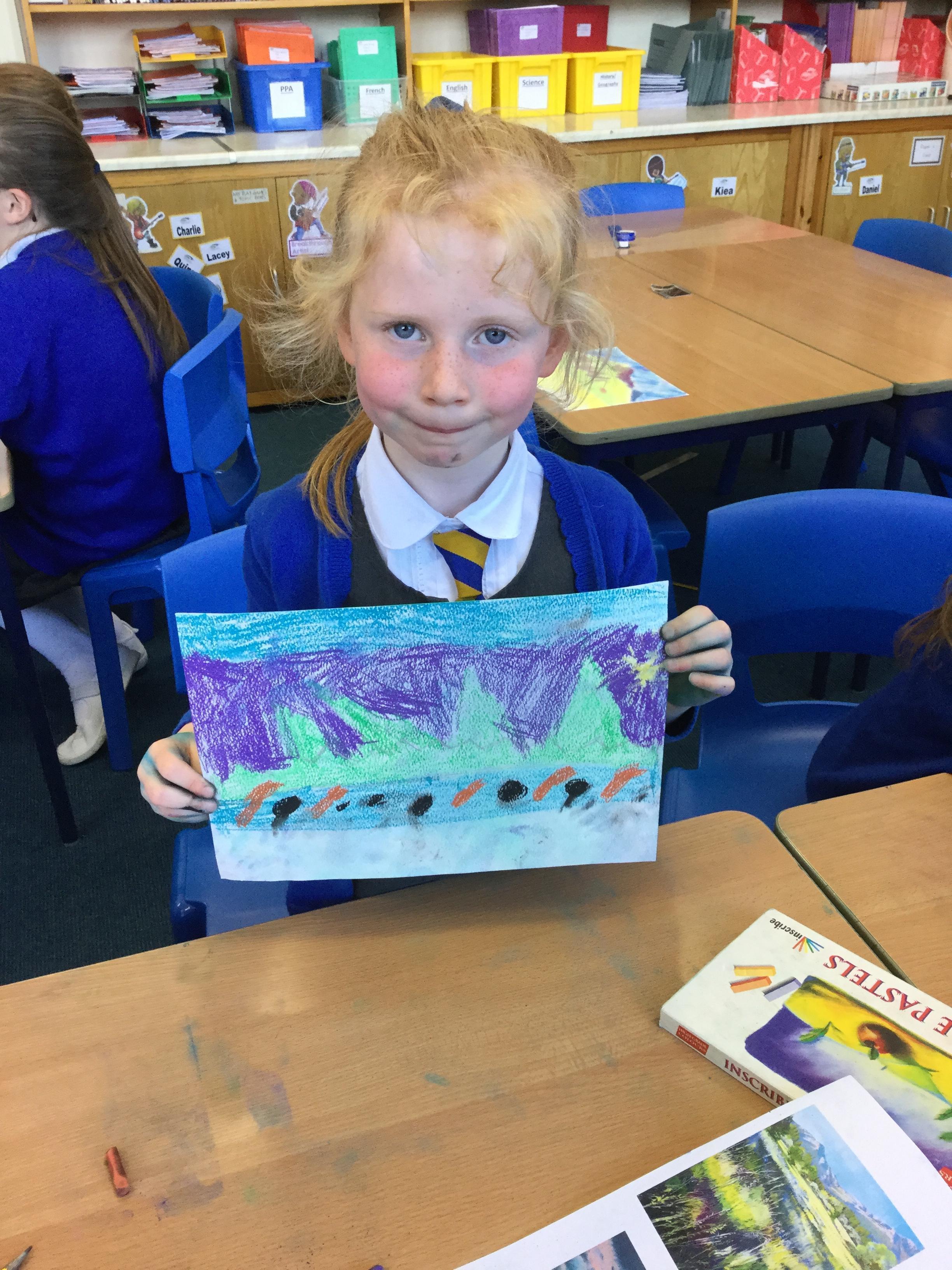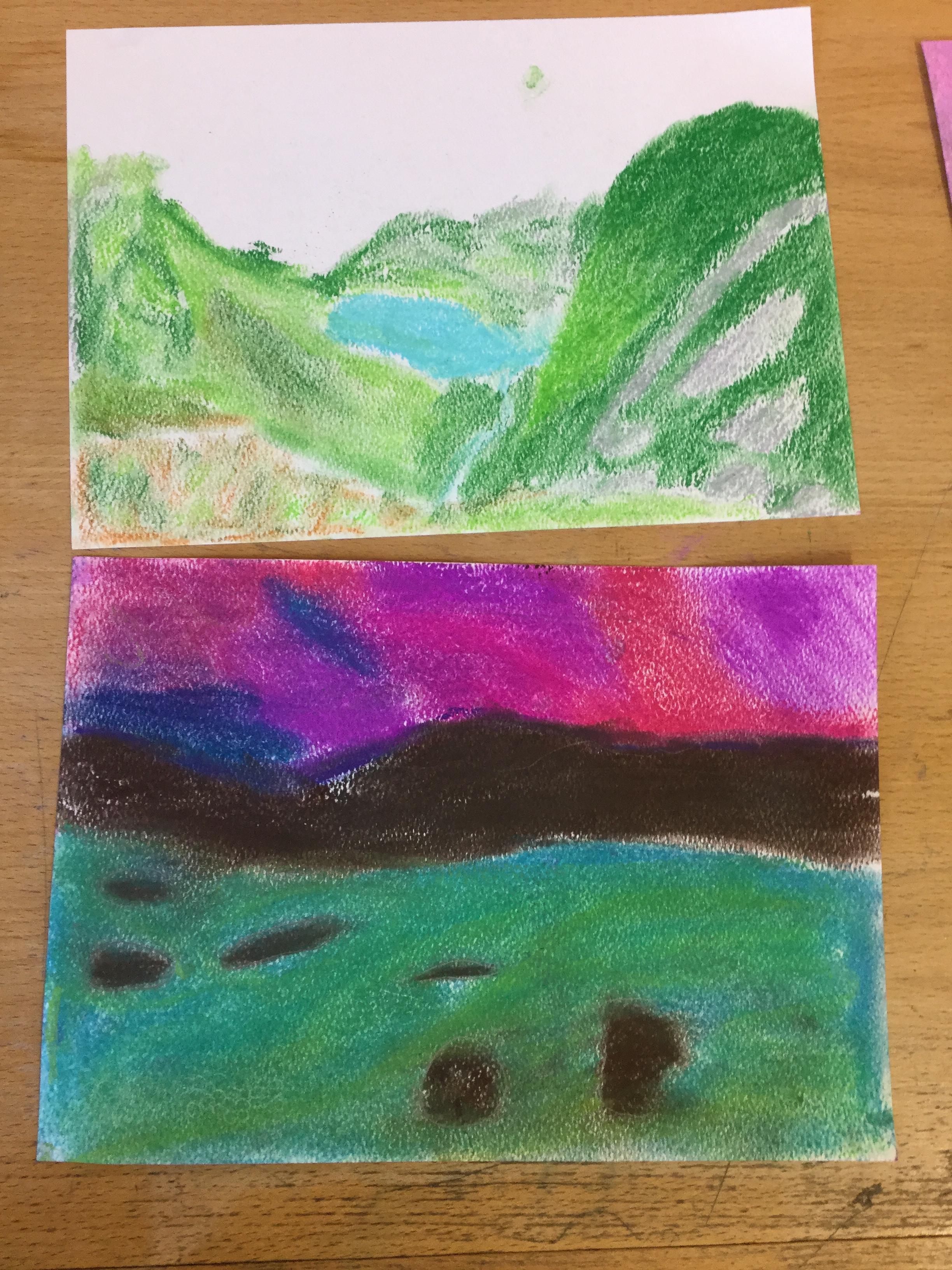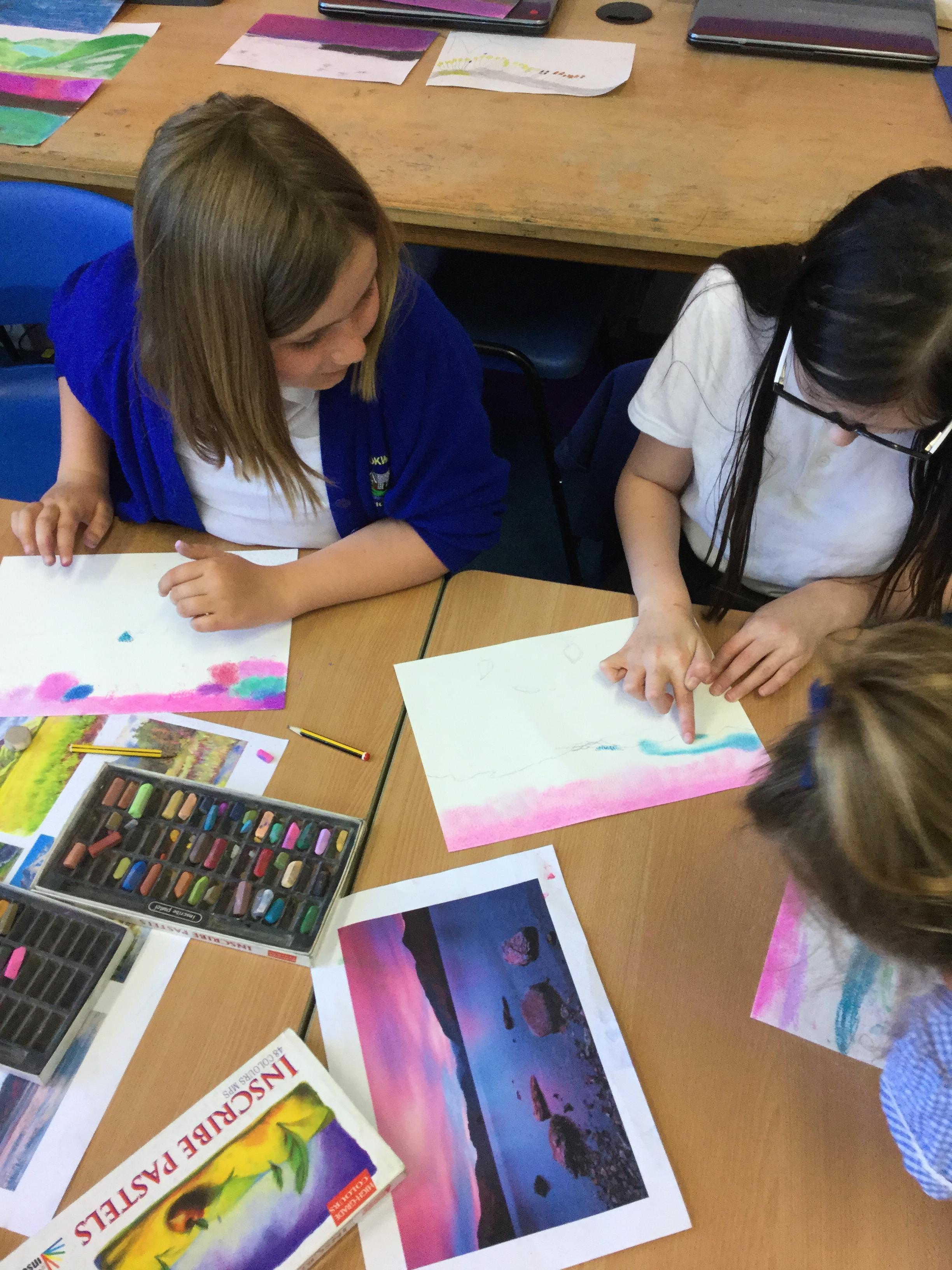 In year 4 we have been creating landscape drawing of the Lake District using chalk pastels. The children have been given a range of photographic images from famous fells to popular lakeside tourist destinations, as a basis for their drawings. They have been taught how to create different colours and effects with the pastels and produced some fabulous work.
