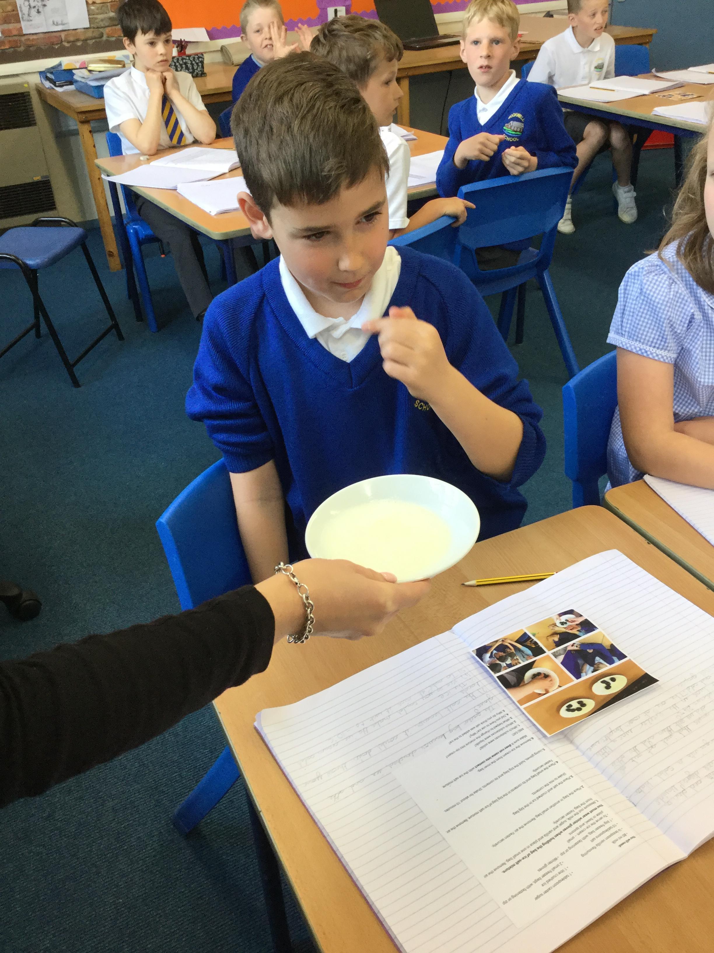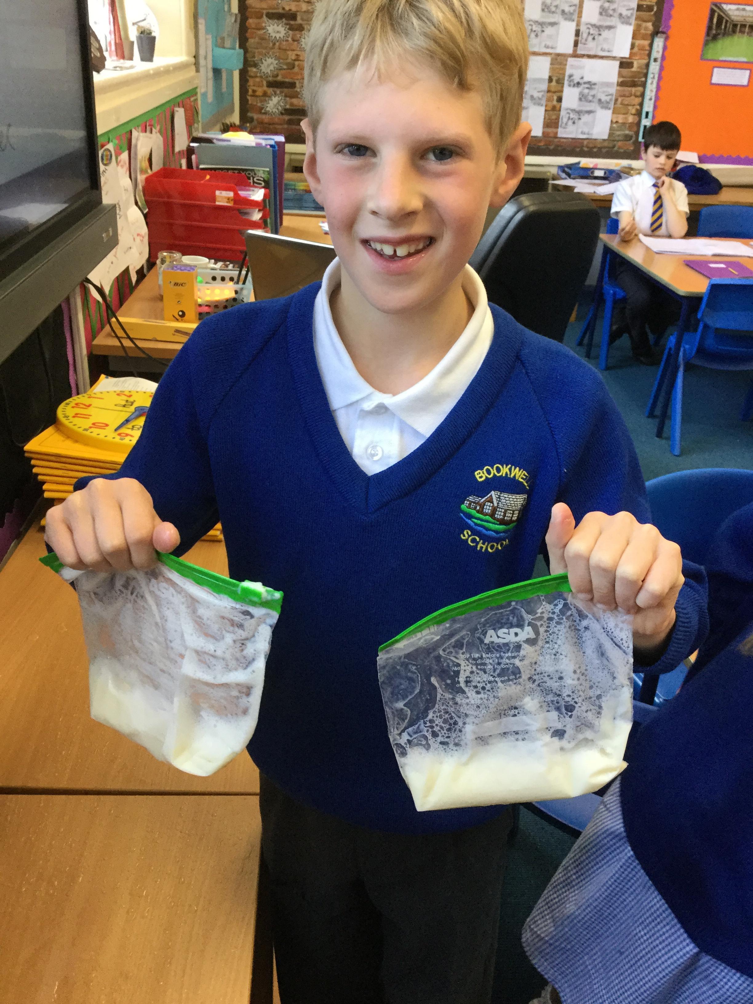 In year 4 this half term we have been looking at states of matter. We have been comparing solids, liquids and gases and experimenting with changing state. Today we had a go at freezing different liquids to make ice-cream. It was delicious!