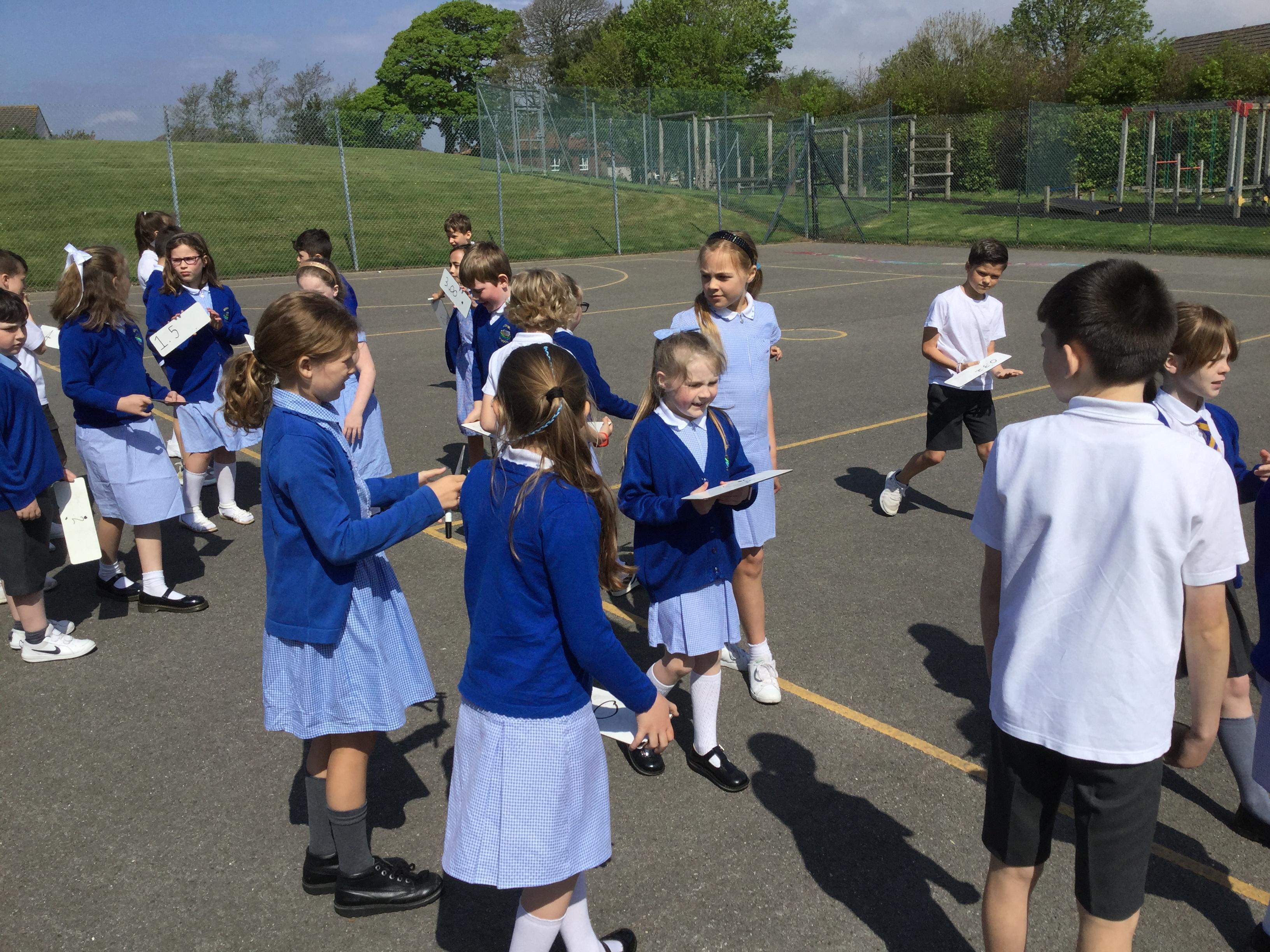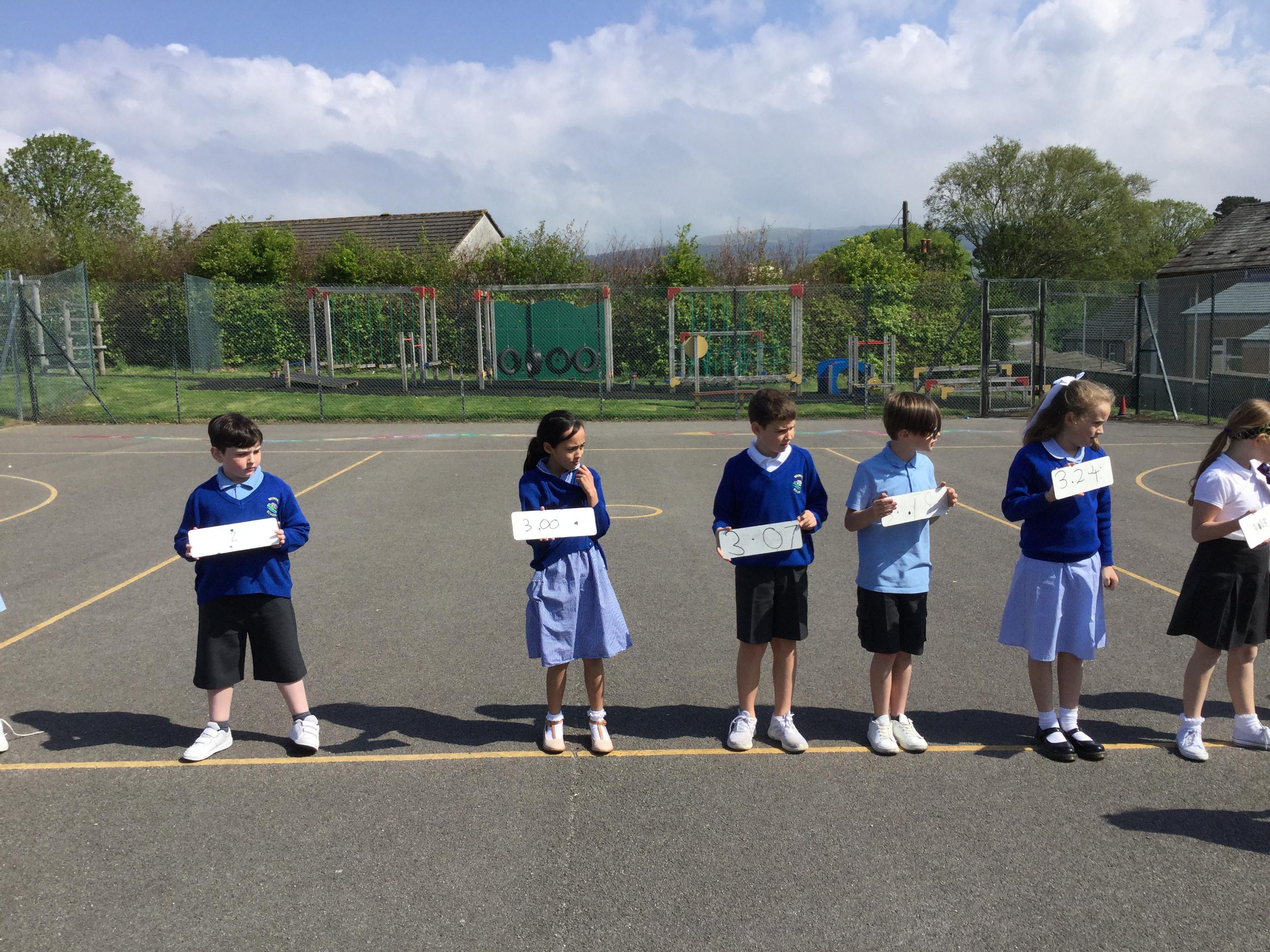 In maths we have been learning all about decimals. Today we had a go at ordering decimals with tenths and hundredths. Each child was given a decimal number between 0 and 5 and had to organise themselves into order from smallest to largest without help from the adults.