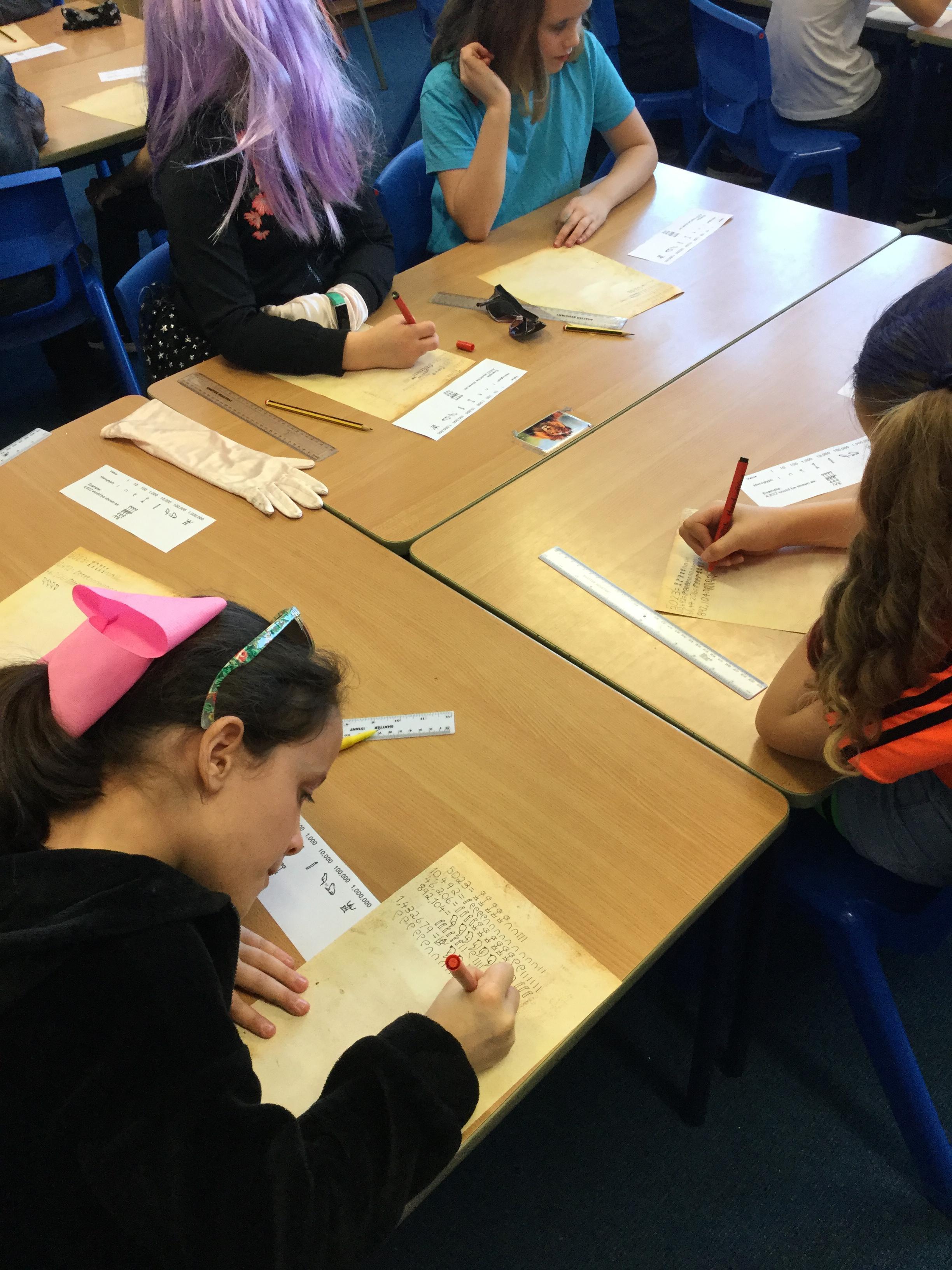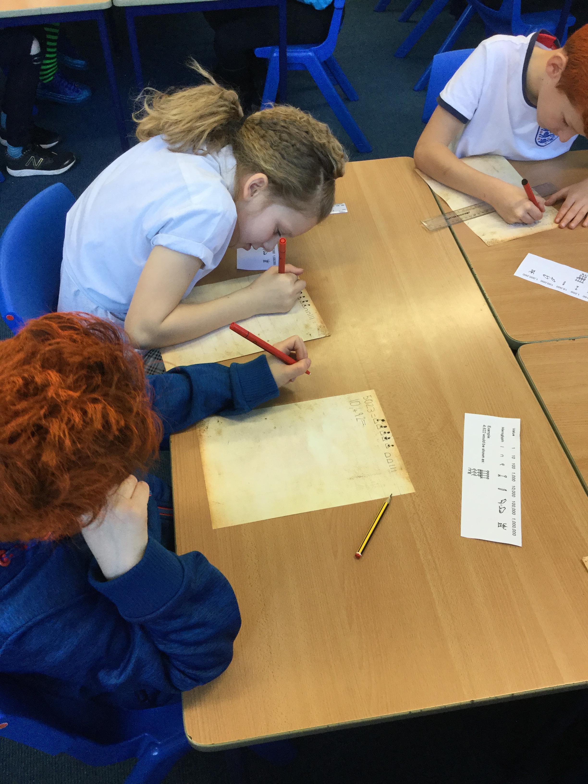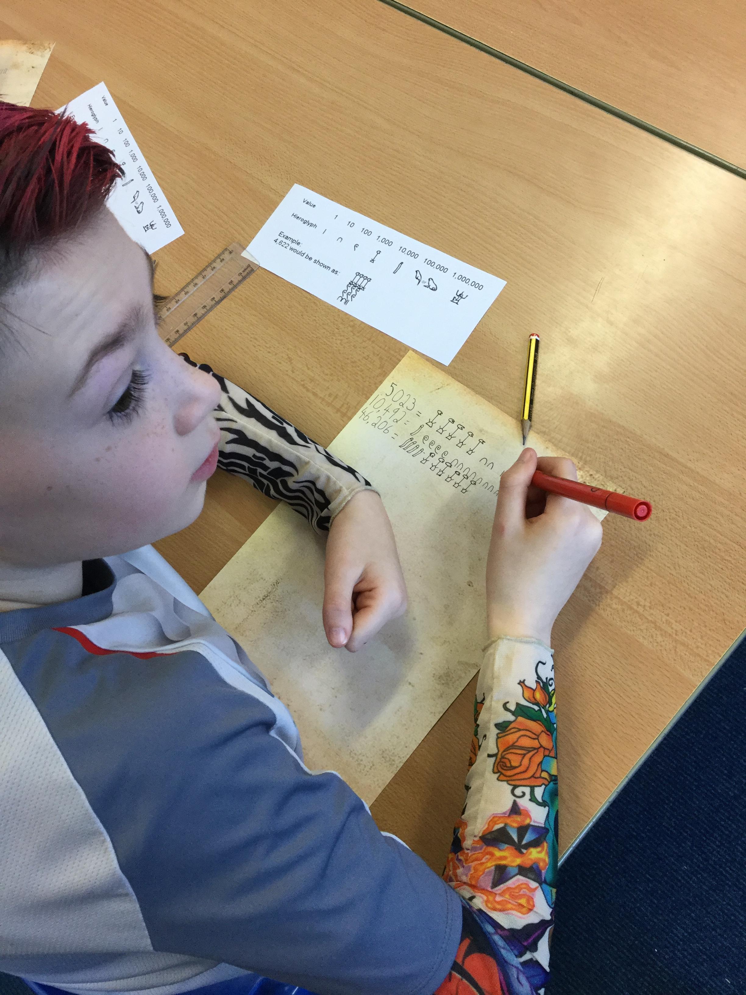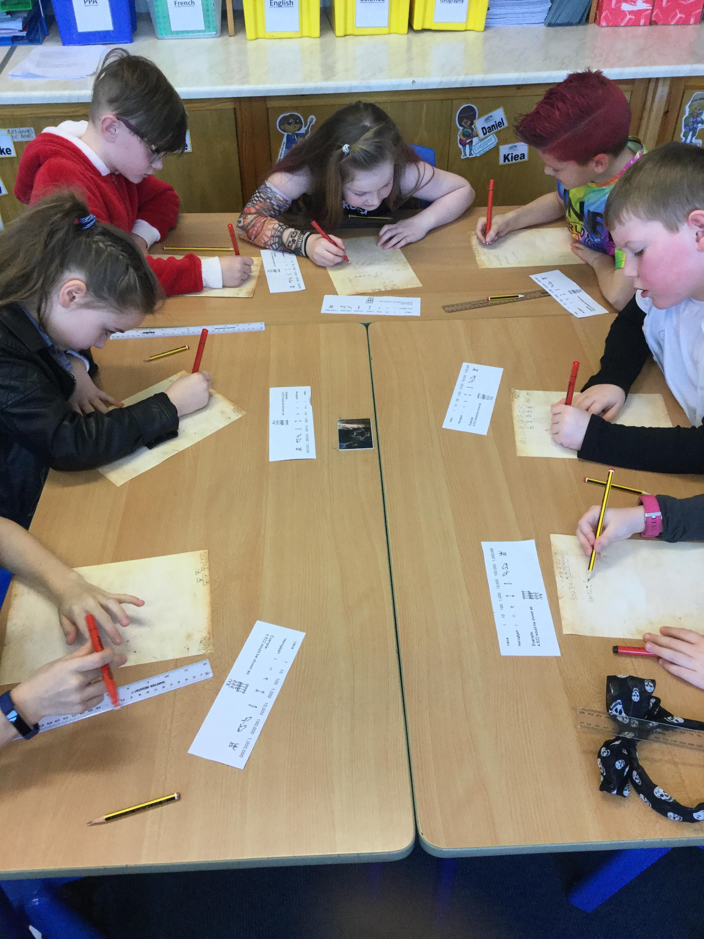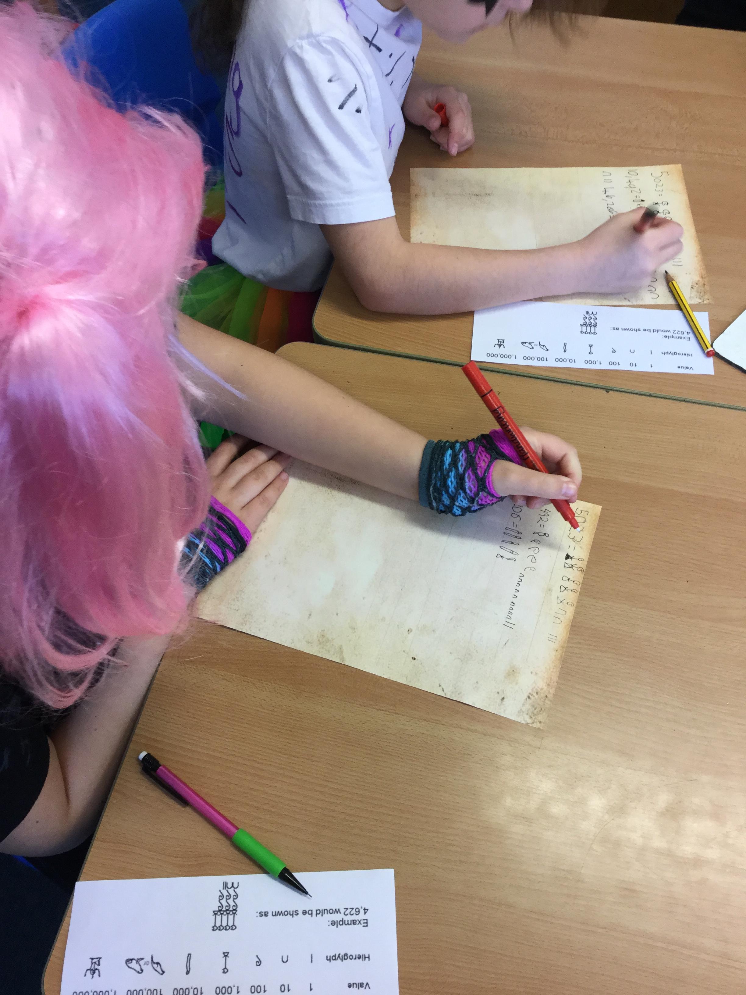 As part of maths week each class investigated a different counting system and we learned all about the Ancient Egyptian system. We discovered that unlike our own number system, they used symbols instead of Arabic numbers to classify different numbers and amounts. We had a go at decoding the symbols and even creating some simple maths questions in hieroglyphics.