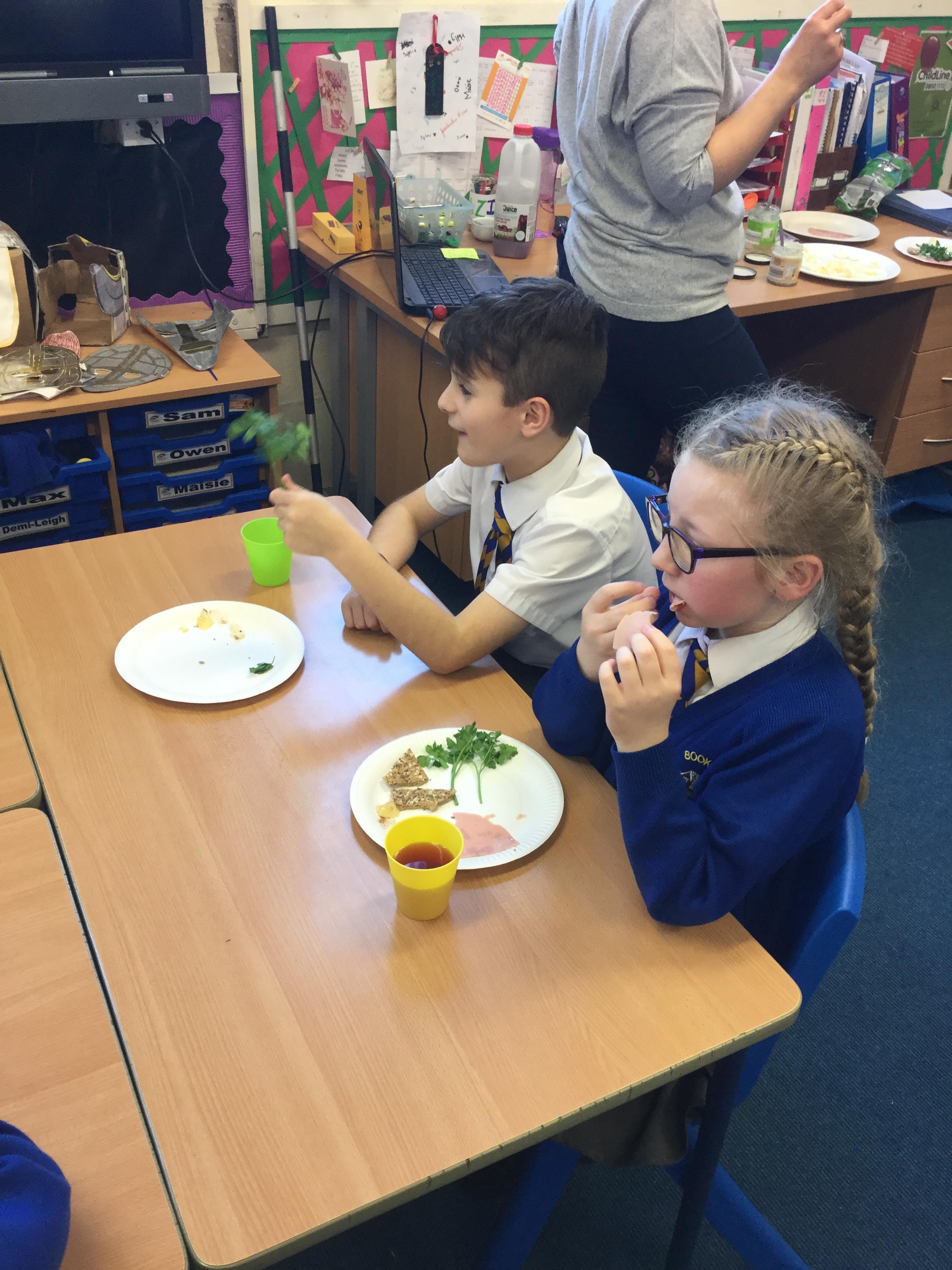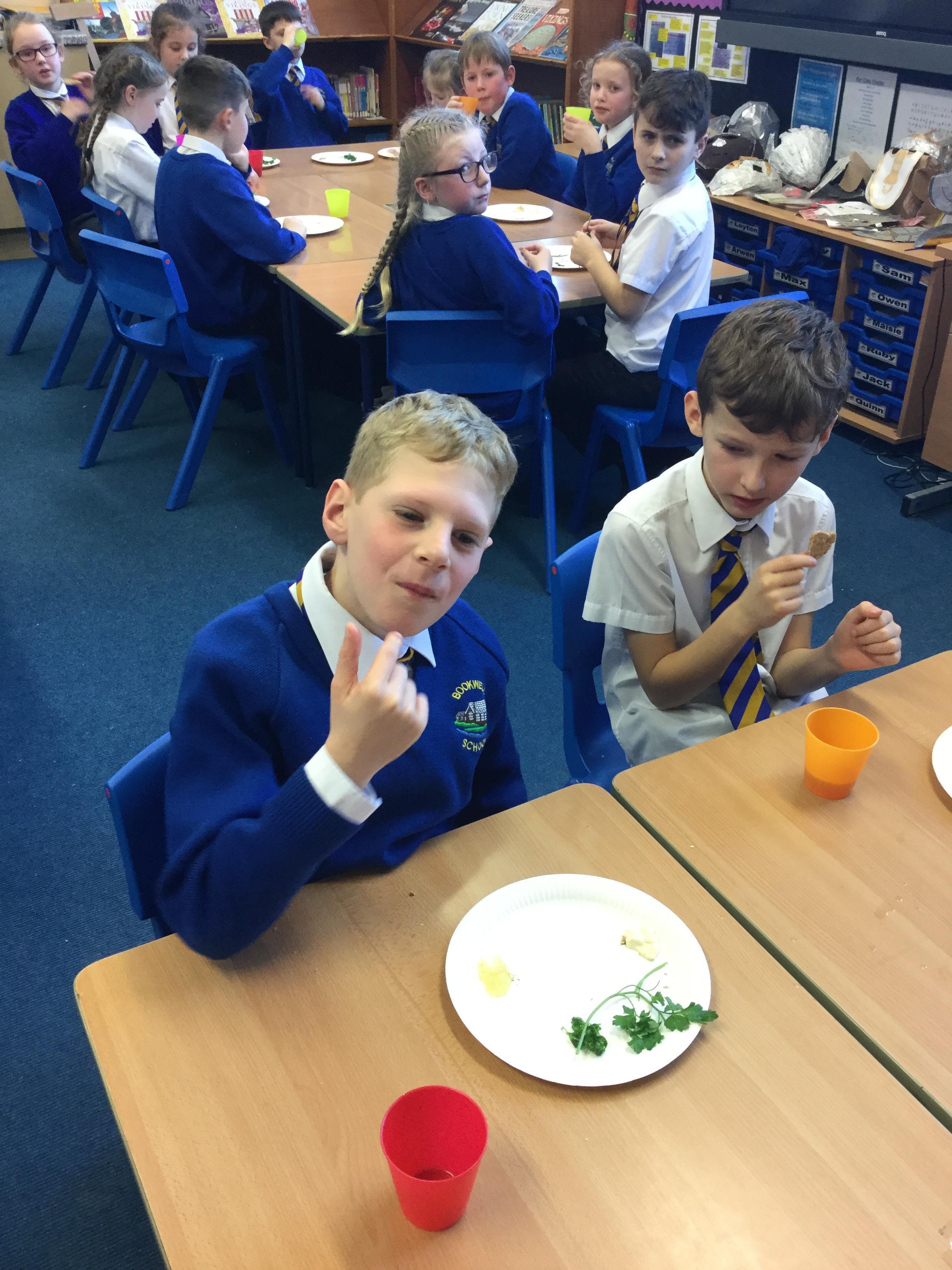 During R.E this half term year 4 have been learning all about Judaism. We have learned all about the raltionship Jews have with their God and how they worship him. One of their most important celebrations is Passover and to experience what it is like we had our very own Seder meal. We tried all of the traditional foods eaten from the Seder plate, washed down with some fruit juice.
