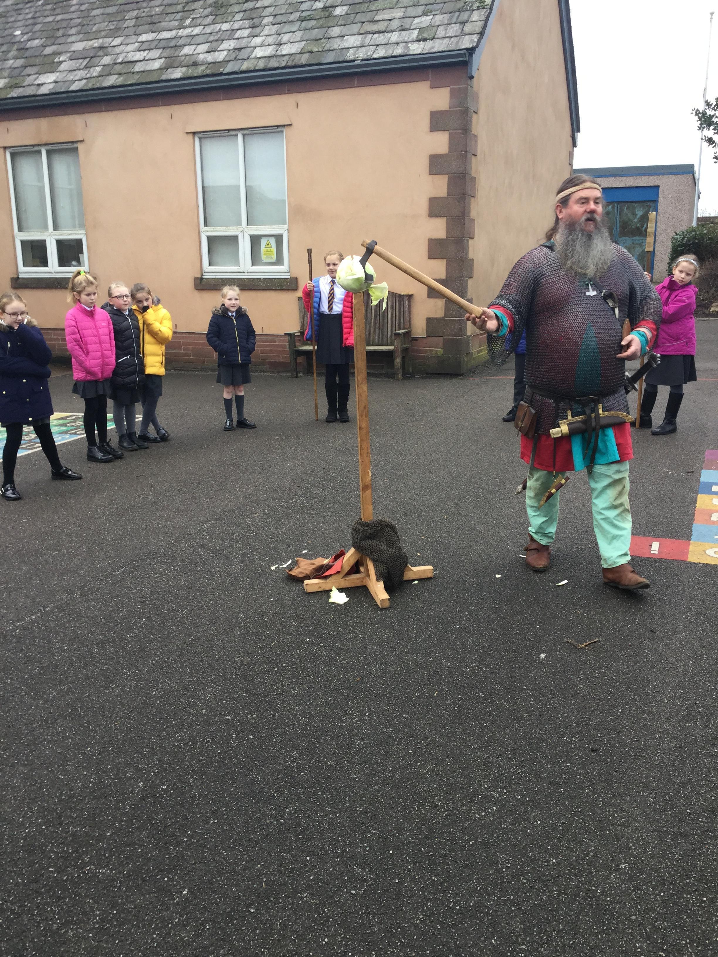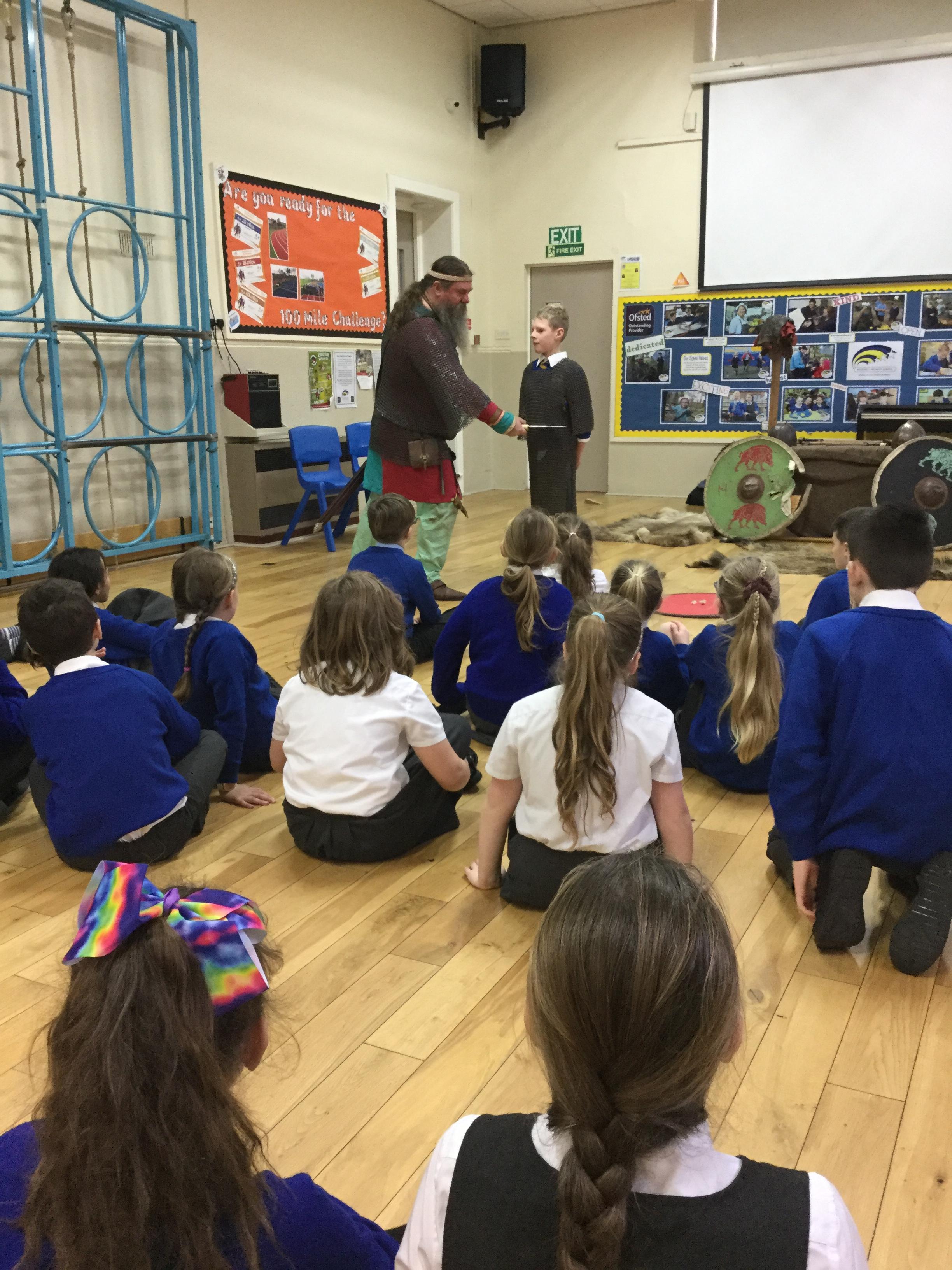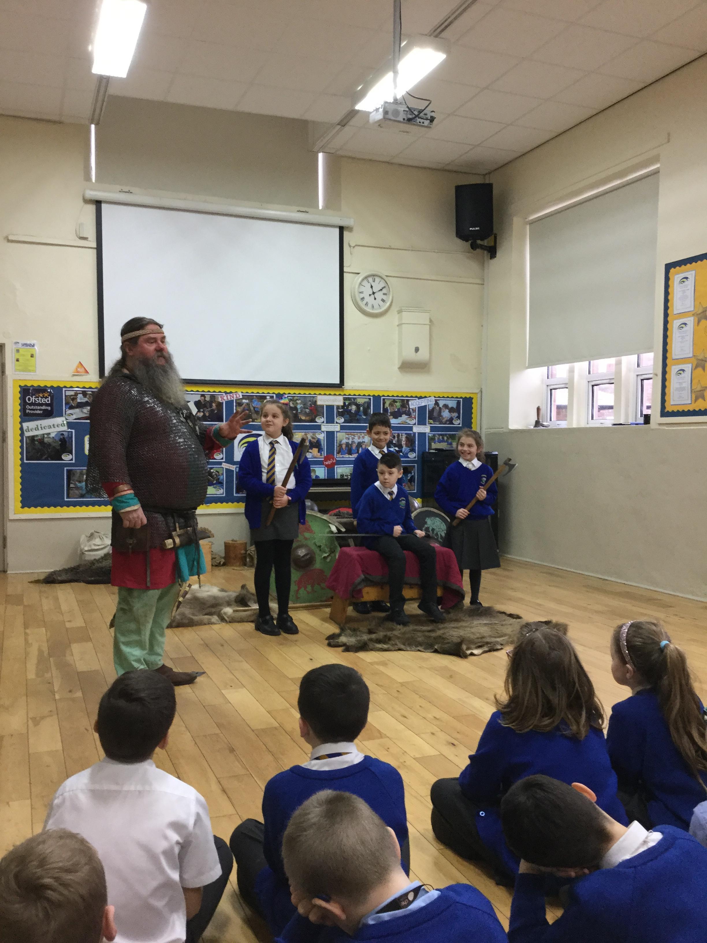 This half term our topic has changed once again to history and the children are learning all about Vikings. To begin the topic I arranged a visit from a very special visitor Bjarni Thorvaldrson, to come and tell the children all about what Viking life was like. The children learned lots about daily life, work, weapons and fighting, invading and raiding, religion and funerals and even had a go at coin striking and dressing up.