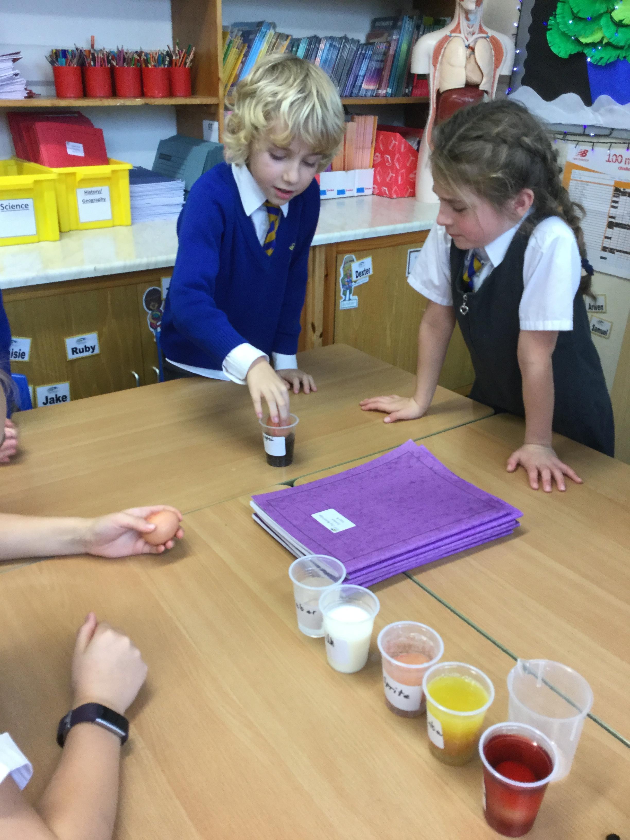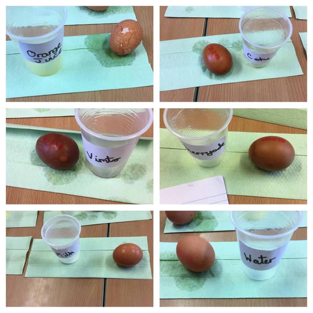 Our topic in science this half term is Animals including humans: Teeth and Eating and the children have learned all about the different types of teeth. We decided to create an experiment to test which drinks had the greatest effect on the enamel of our teeth. The children titled the experiment: How does sugar effect my teeth? and planned which drinks they were going to test and would then write up their finding once the experiment was finished. To emulate the enamel of our teeth we chose to test the drinks on free range eggs as the shell is very similar to that of our tooth enamel. Each group had 6 eggs and the results were very interesting.