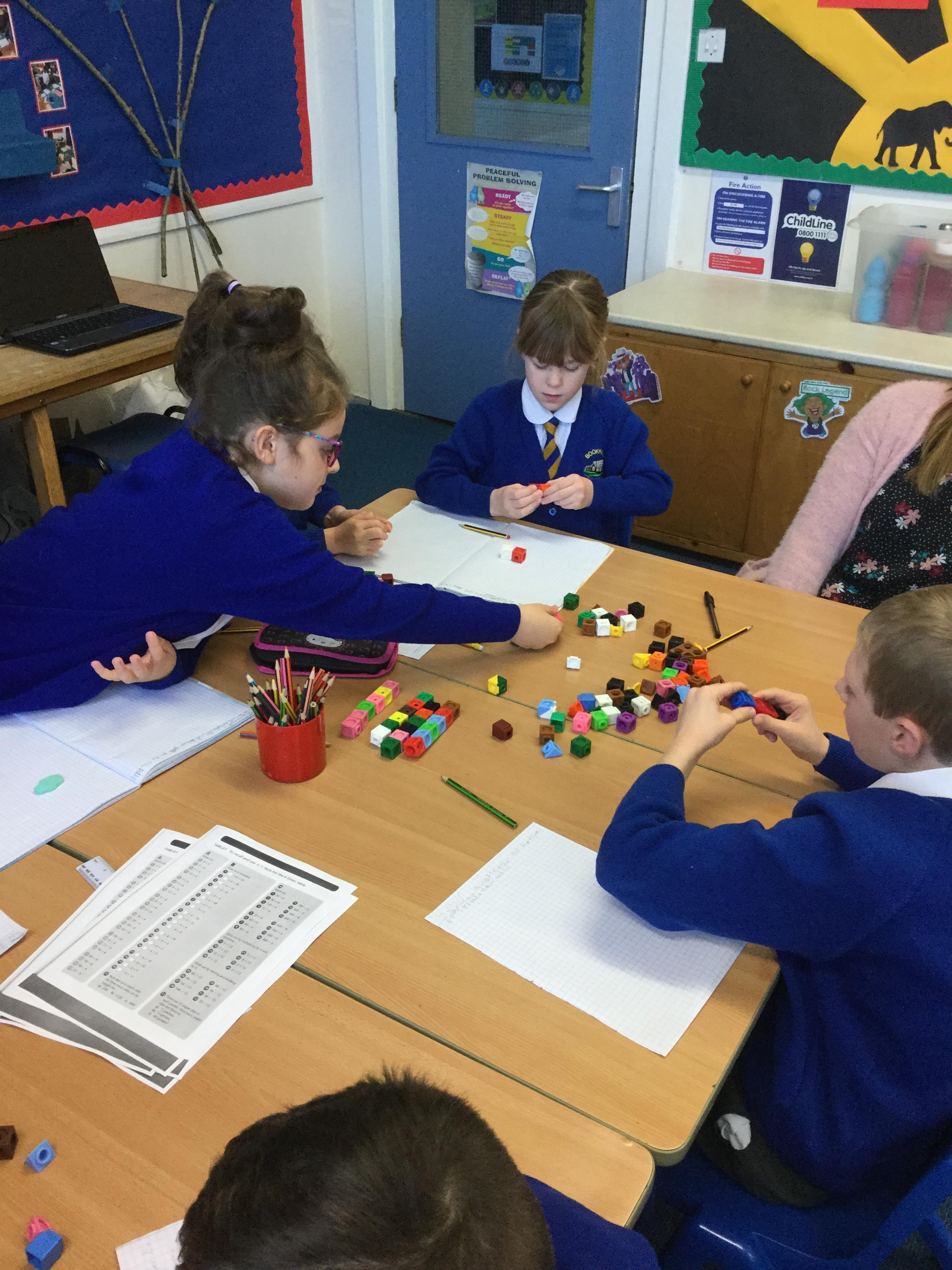 This half term we are looking at multiplication and division. Today the children have been practising their times tables. Using multi link cubes as a physical representation, the children grouped the numbers to work out the answers to the multiplication questions and words problems.
