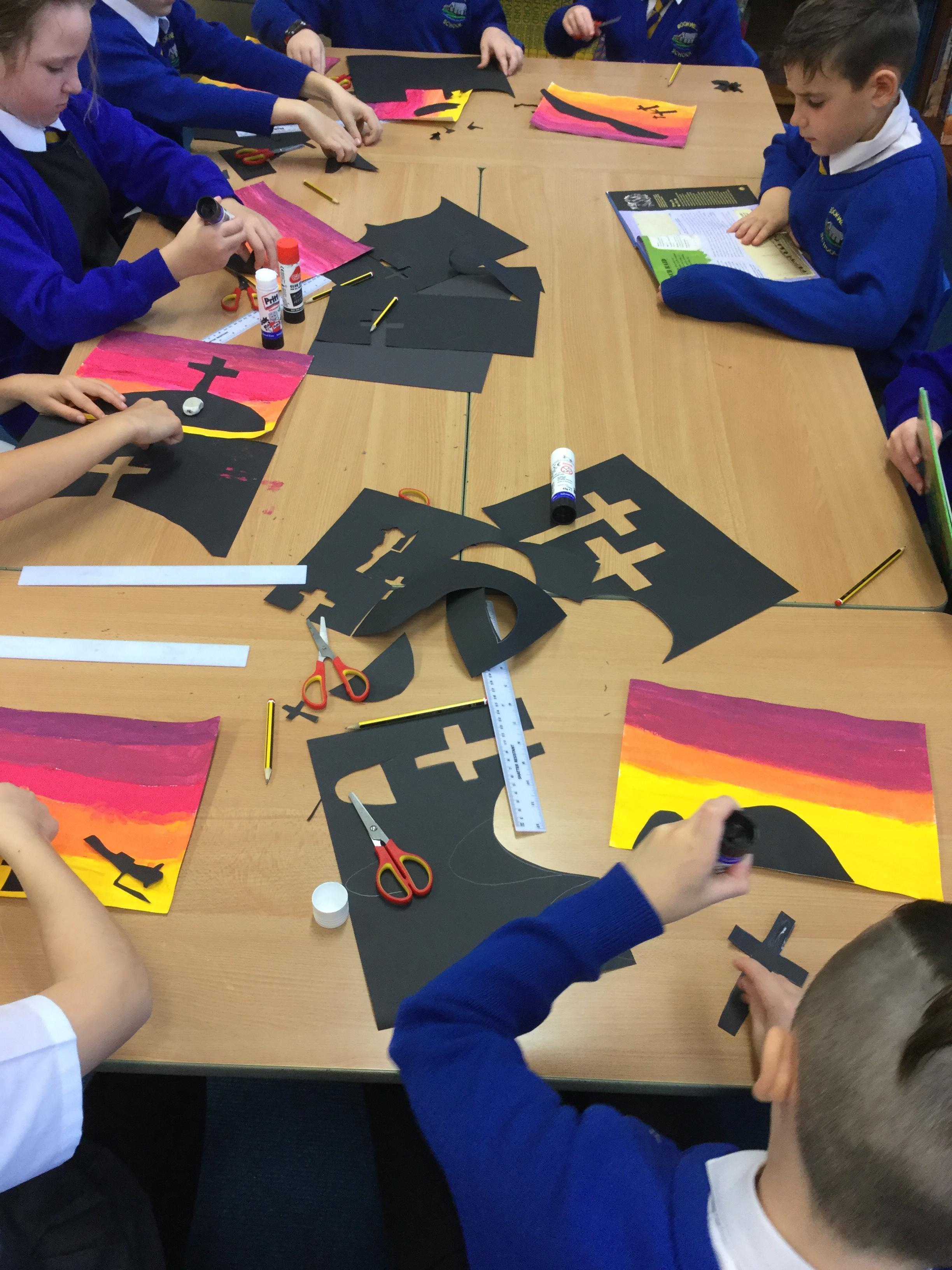 To commemorate the 100th anniversary of the end of ‘The Great War’, this week we have been learning all about World War 1. We have done lots of different activities to help us both learn about the war and remember those who gave their lives for us. The children have investigated the different luggage bags of people living and working during WW1, pretended to be a soldiers living in the trenches and serving on the front line and  also produced some wonderful silhouette art.