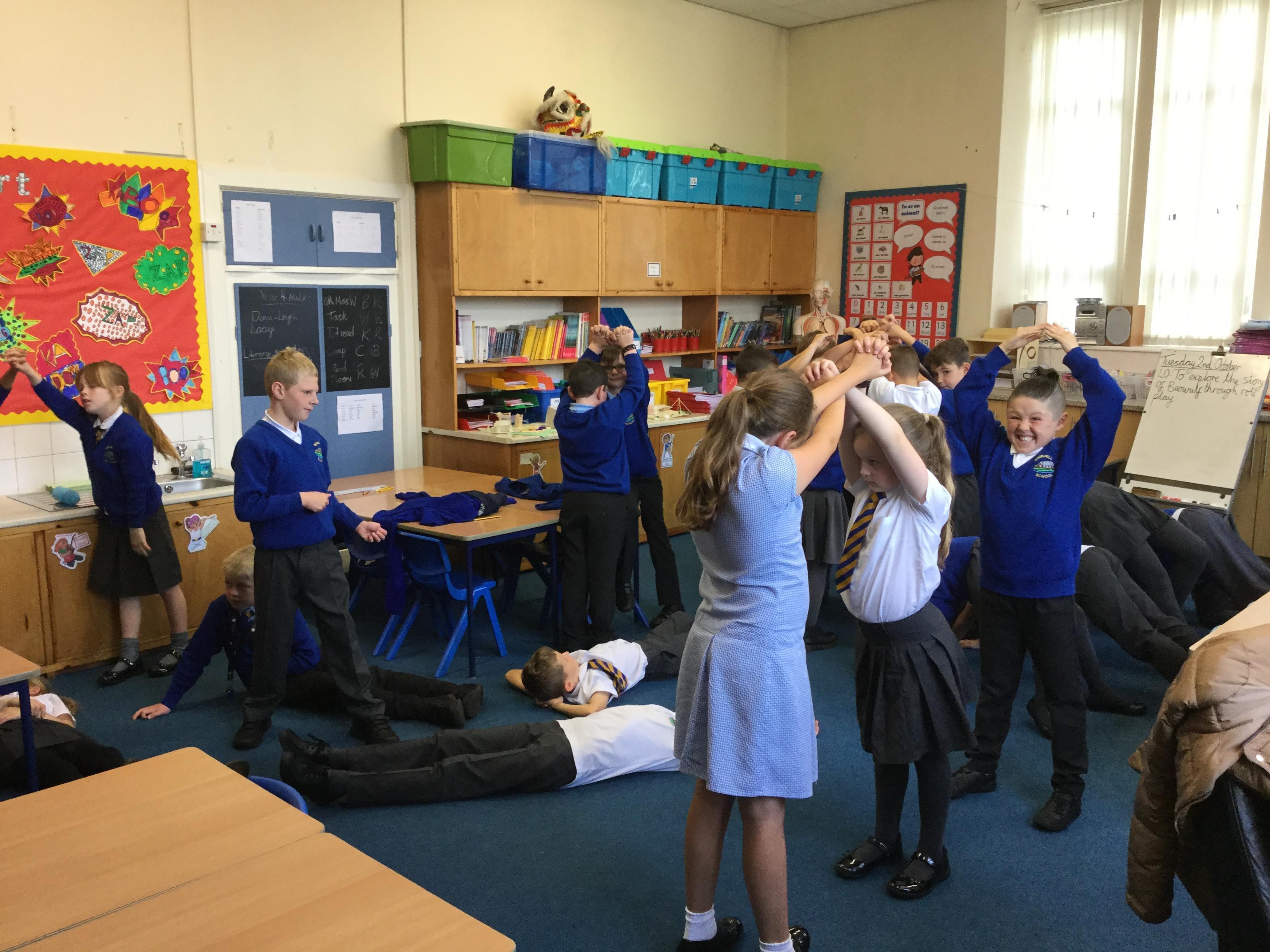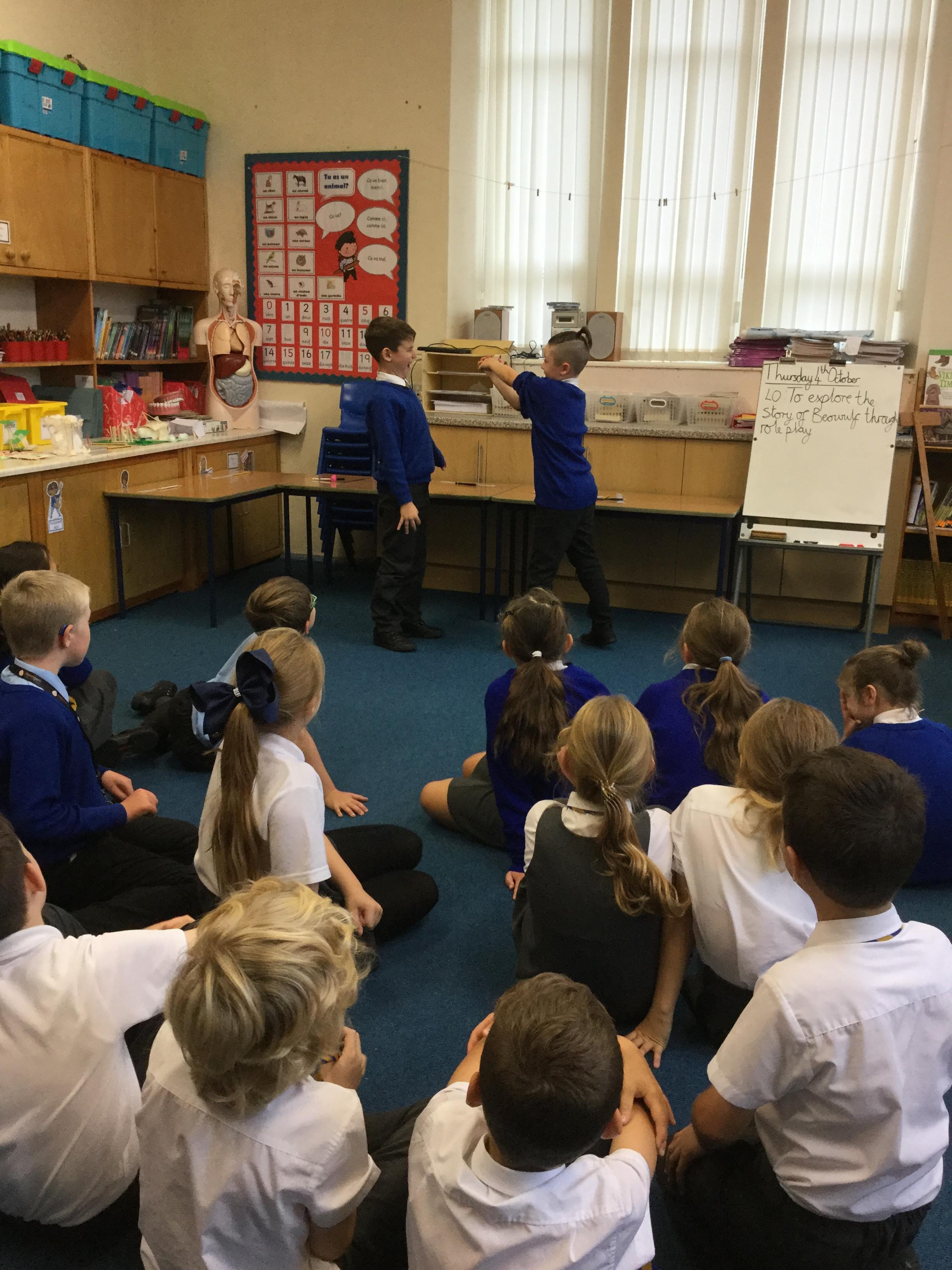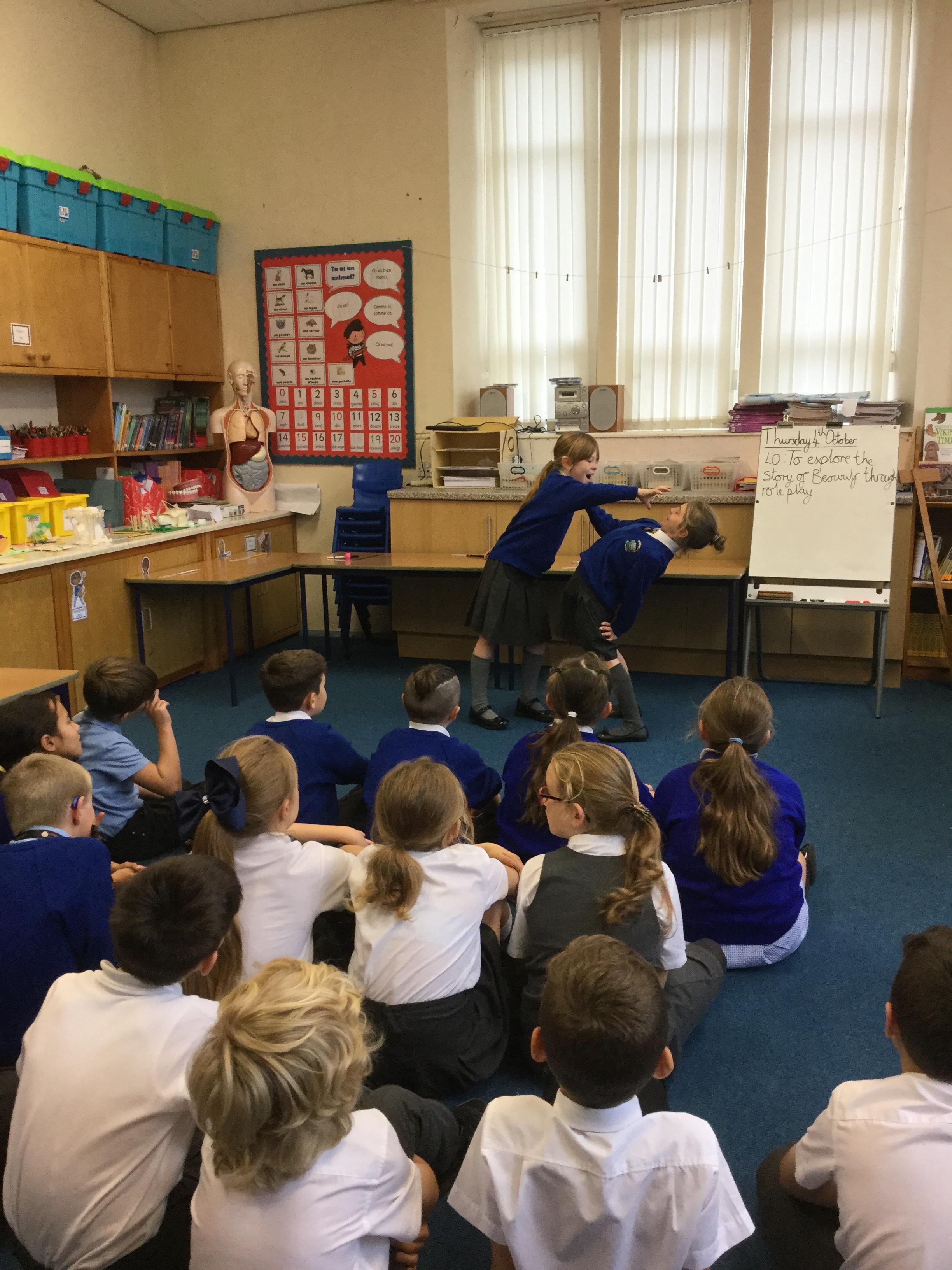 In English this week, the children have been exploring the story of Beowulf through the use of role play. The children have done a character walk, some physical theatre, freeze frames.