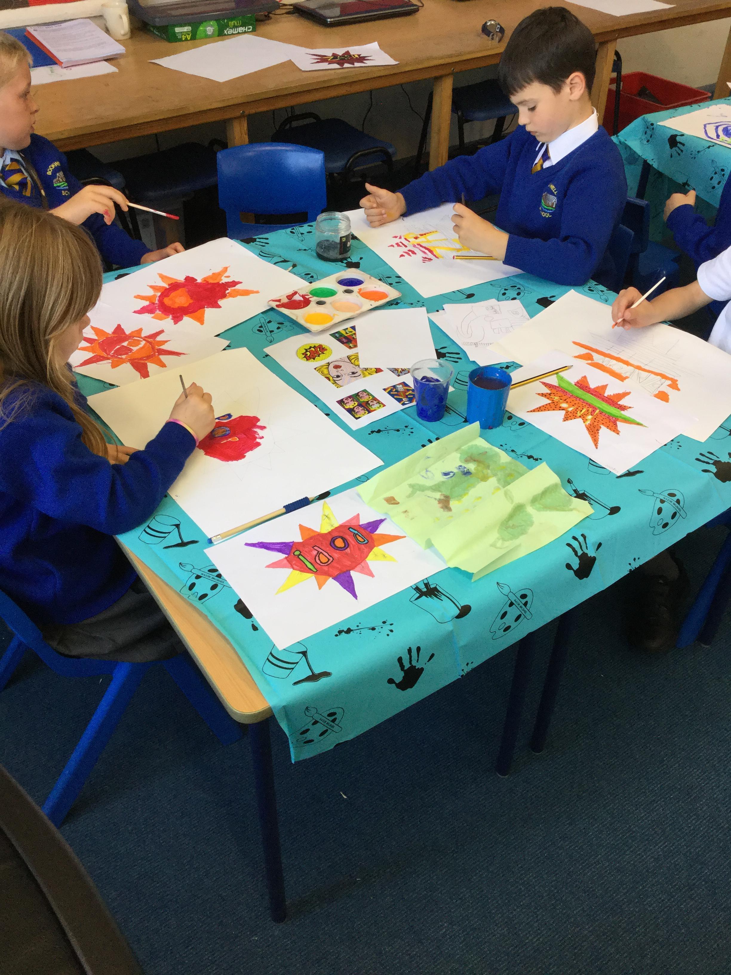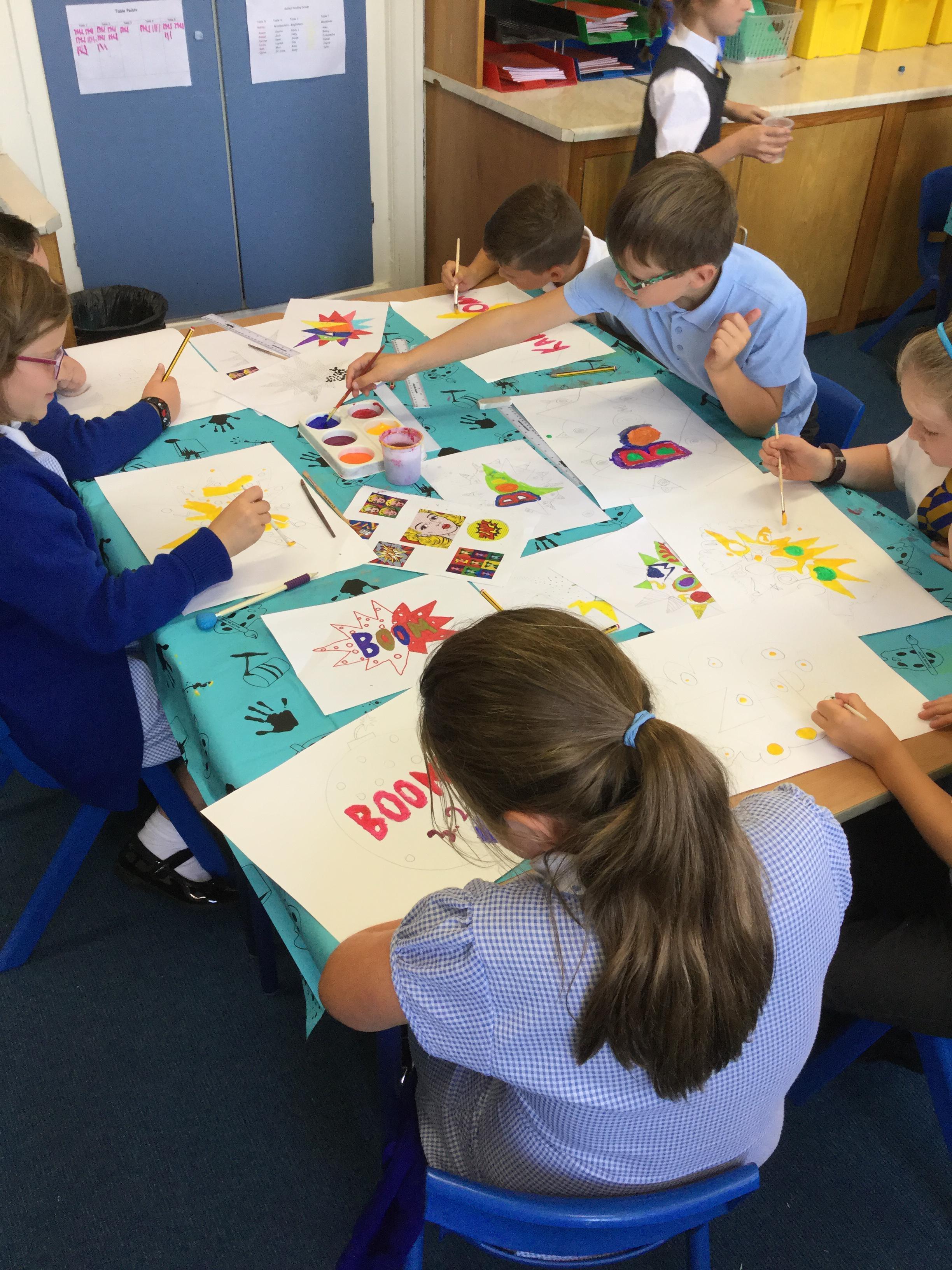 In year 4 this term children have been looking at Pop Art in our art lessons. We have created our own comic strip artwork in the style of Roy Lichtenstein... take a look!
