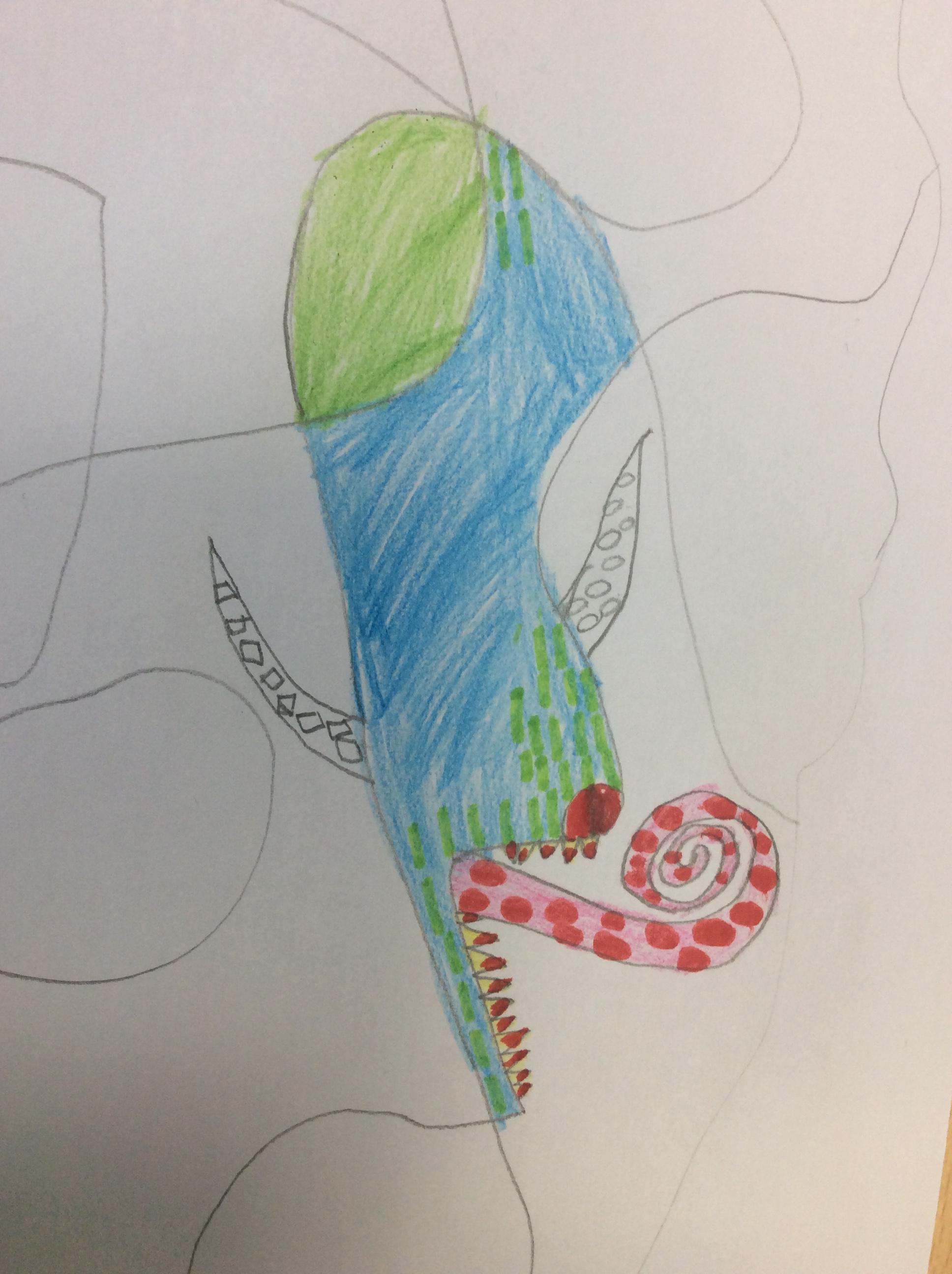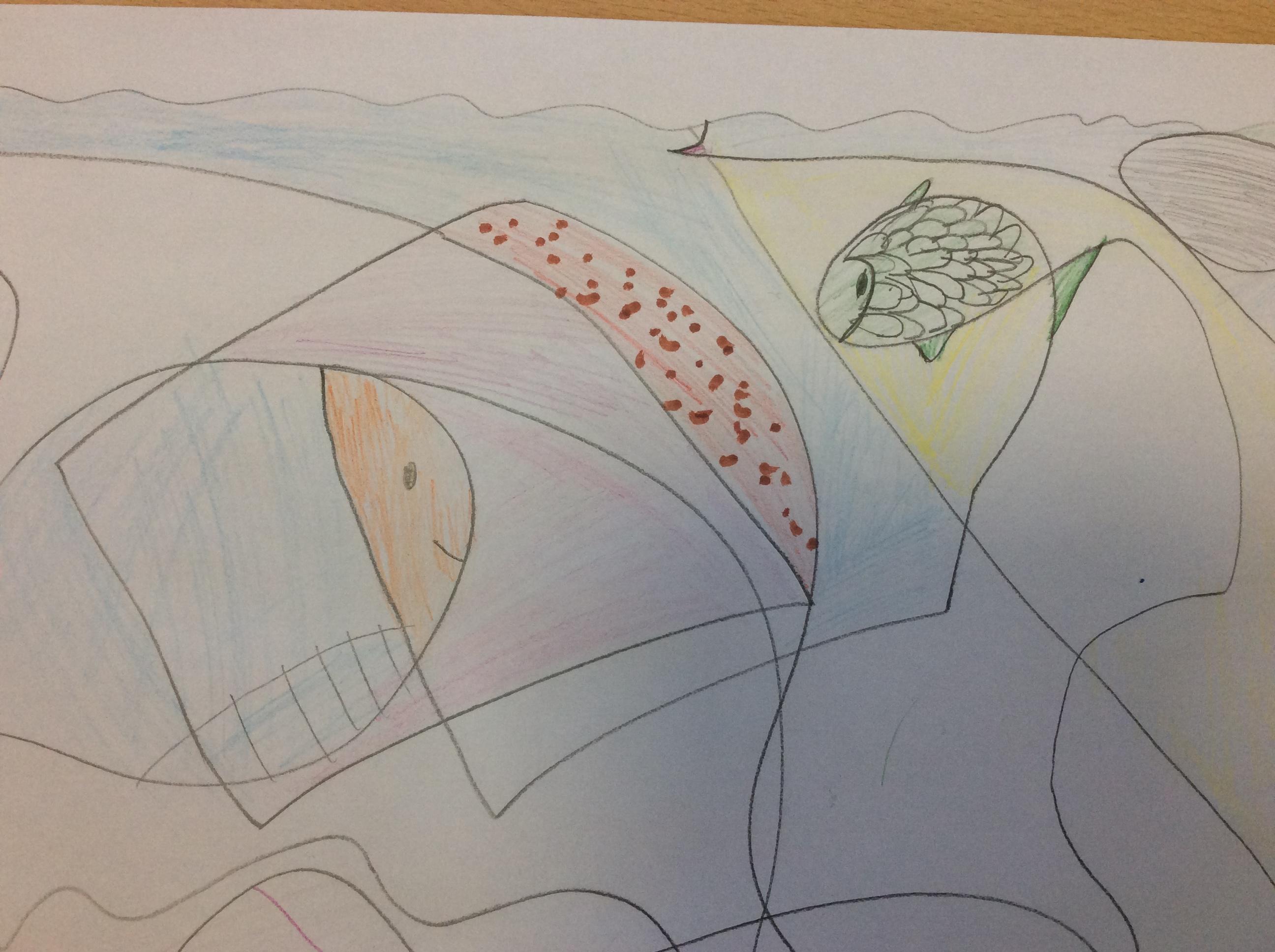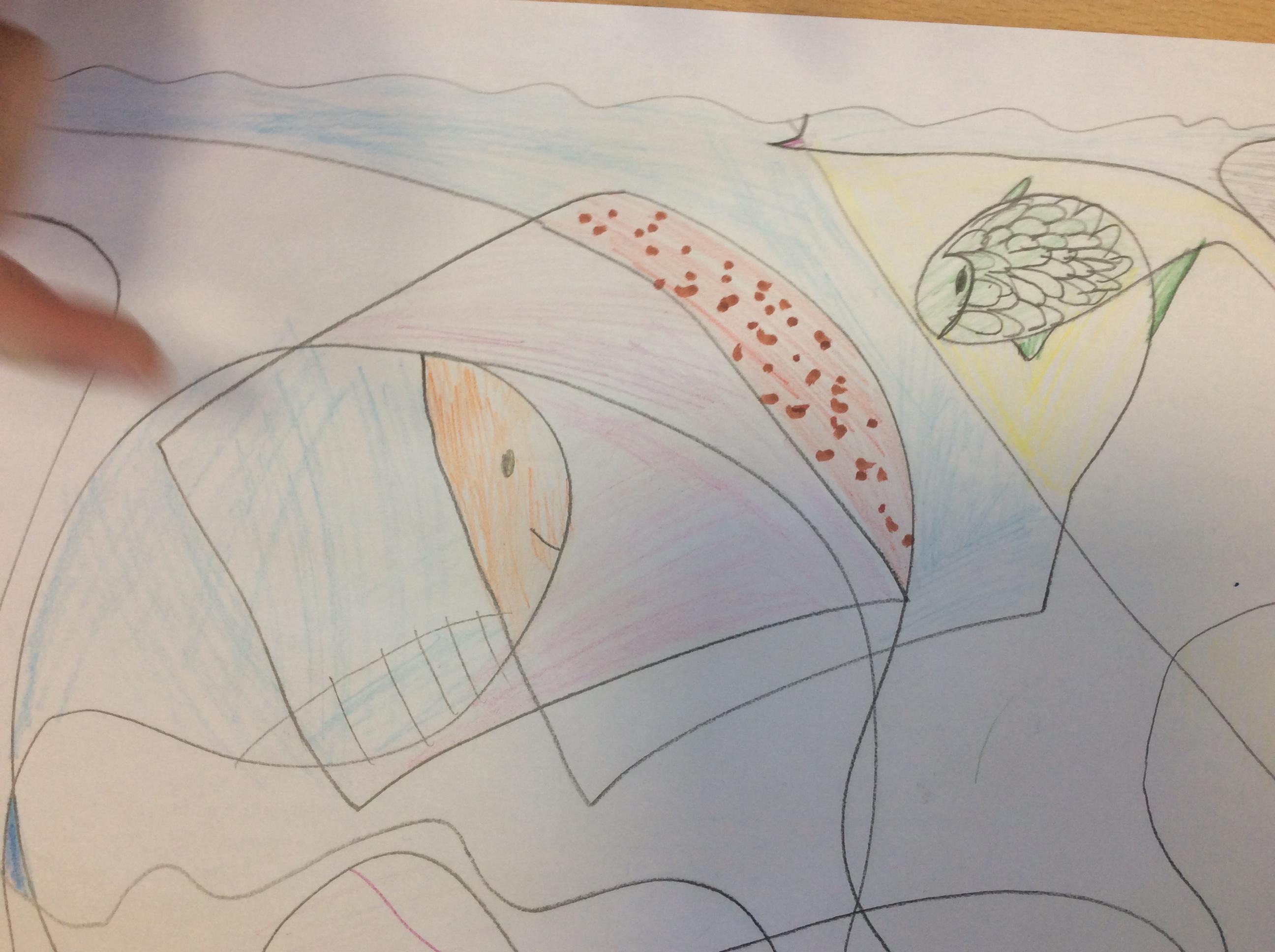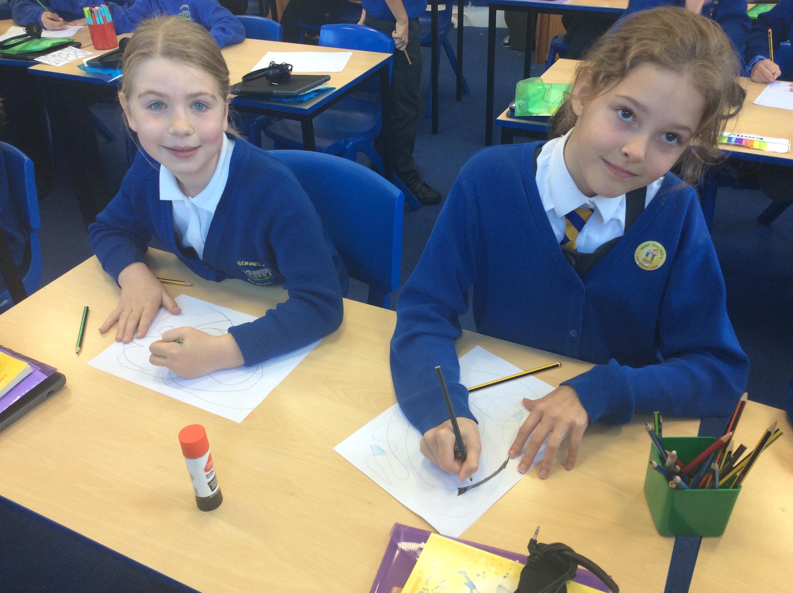 We used the images as inspiration for our own art work using pencil, pastel, metallics and coloured cellophane.