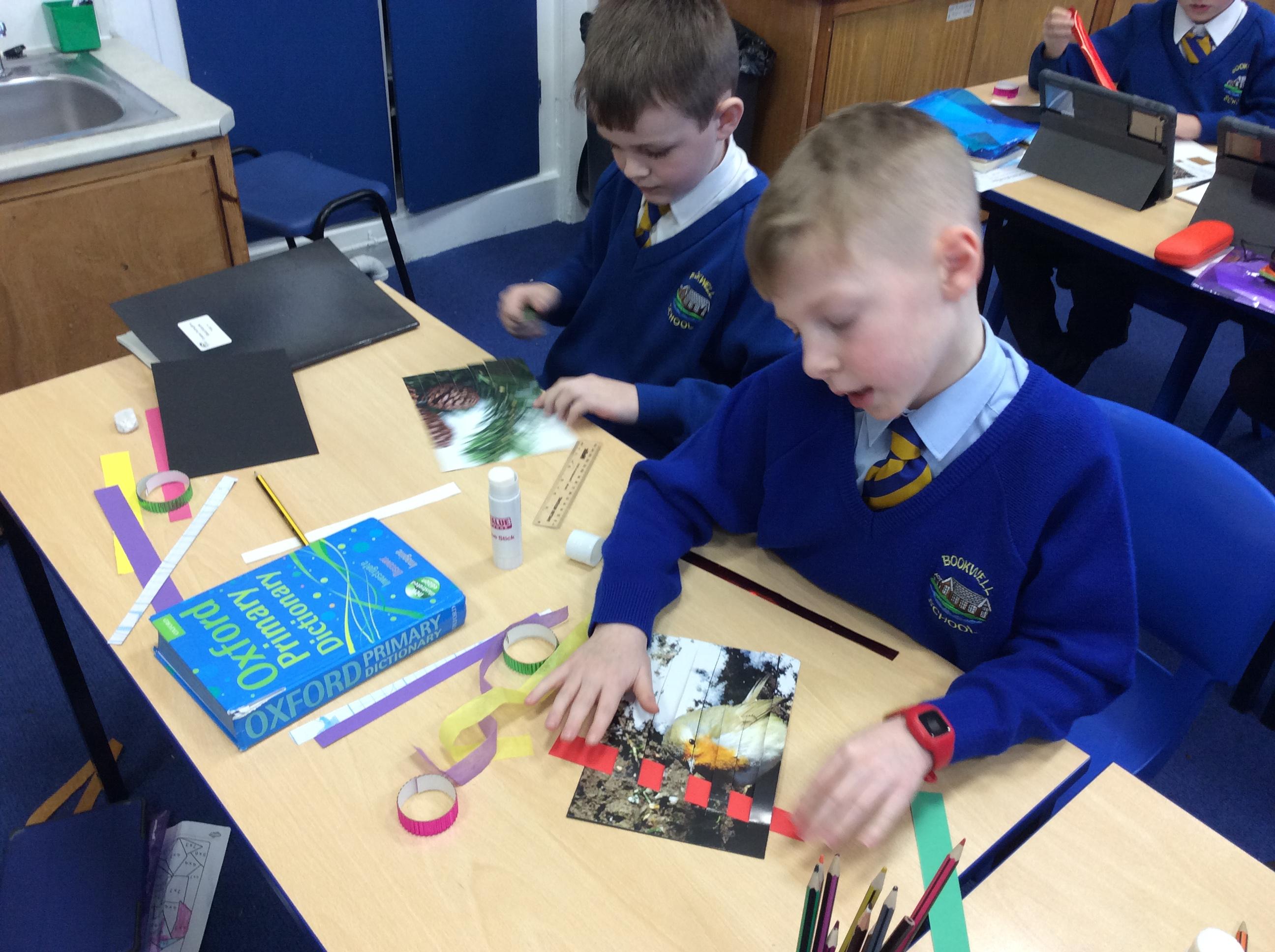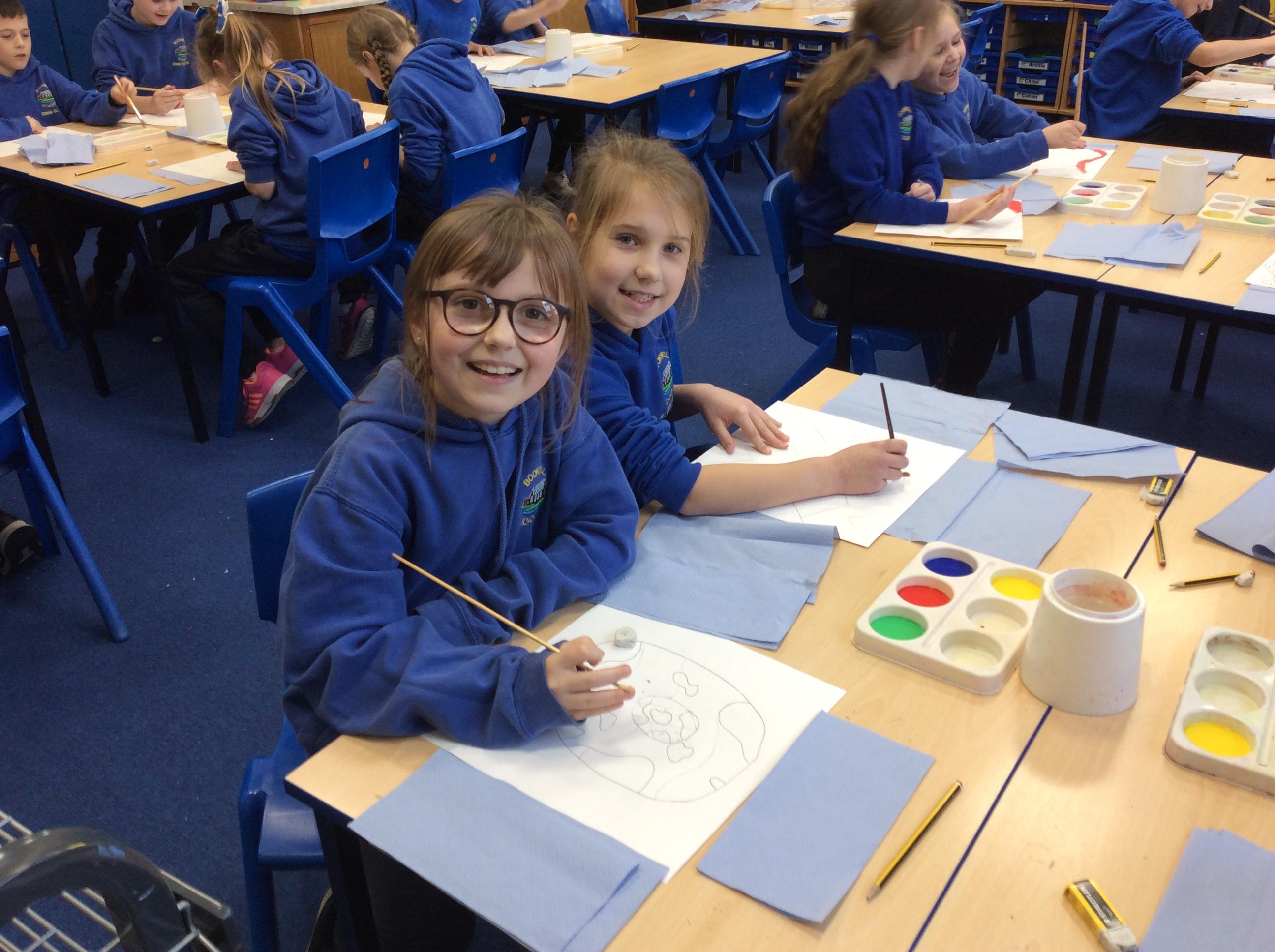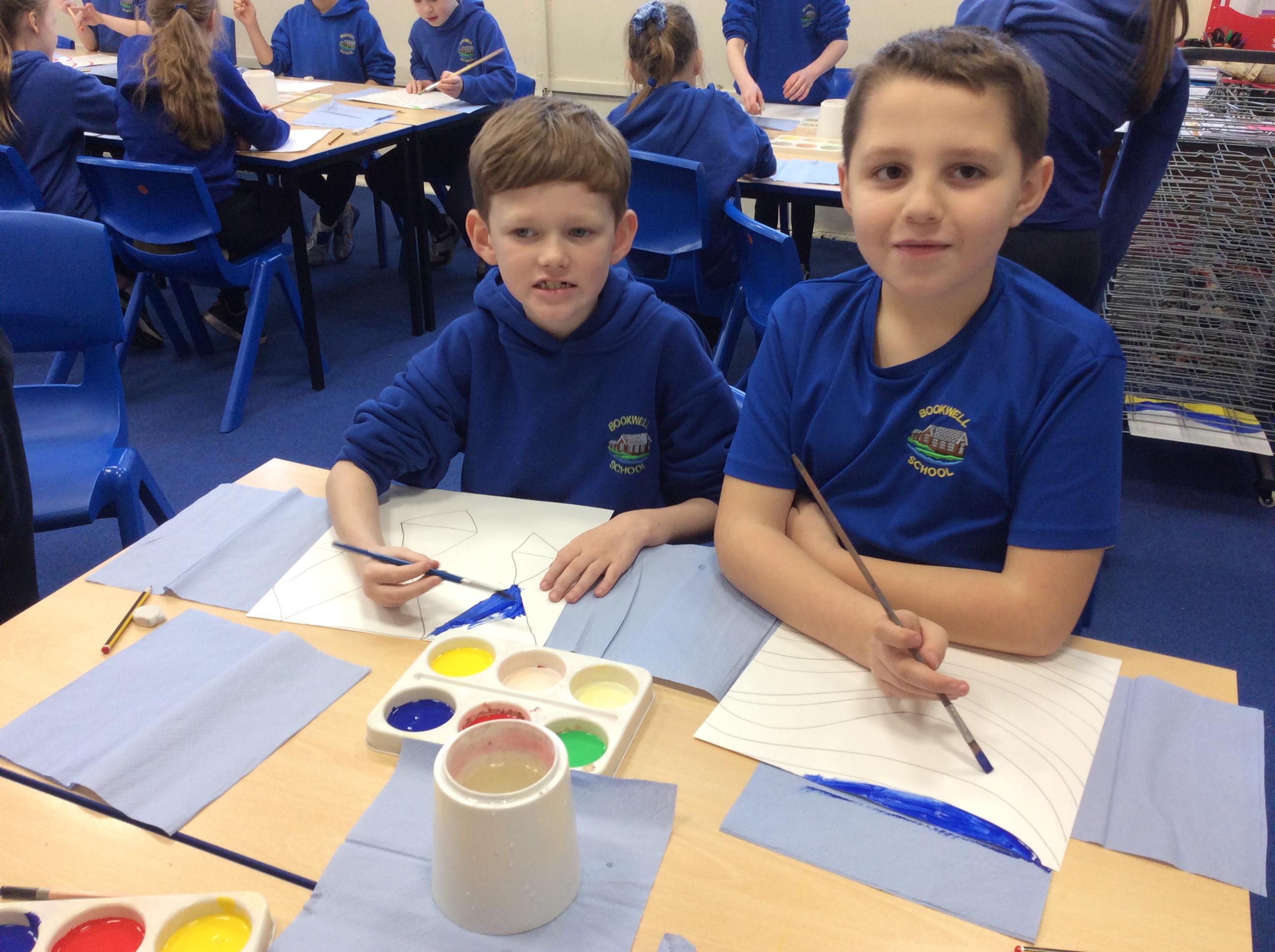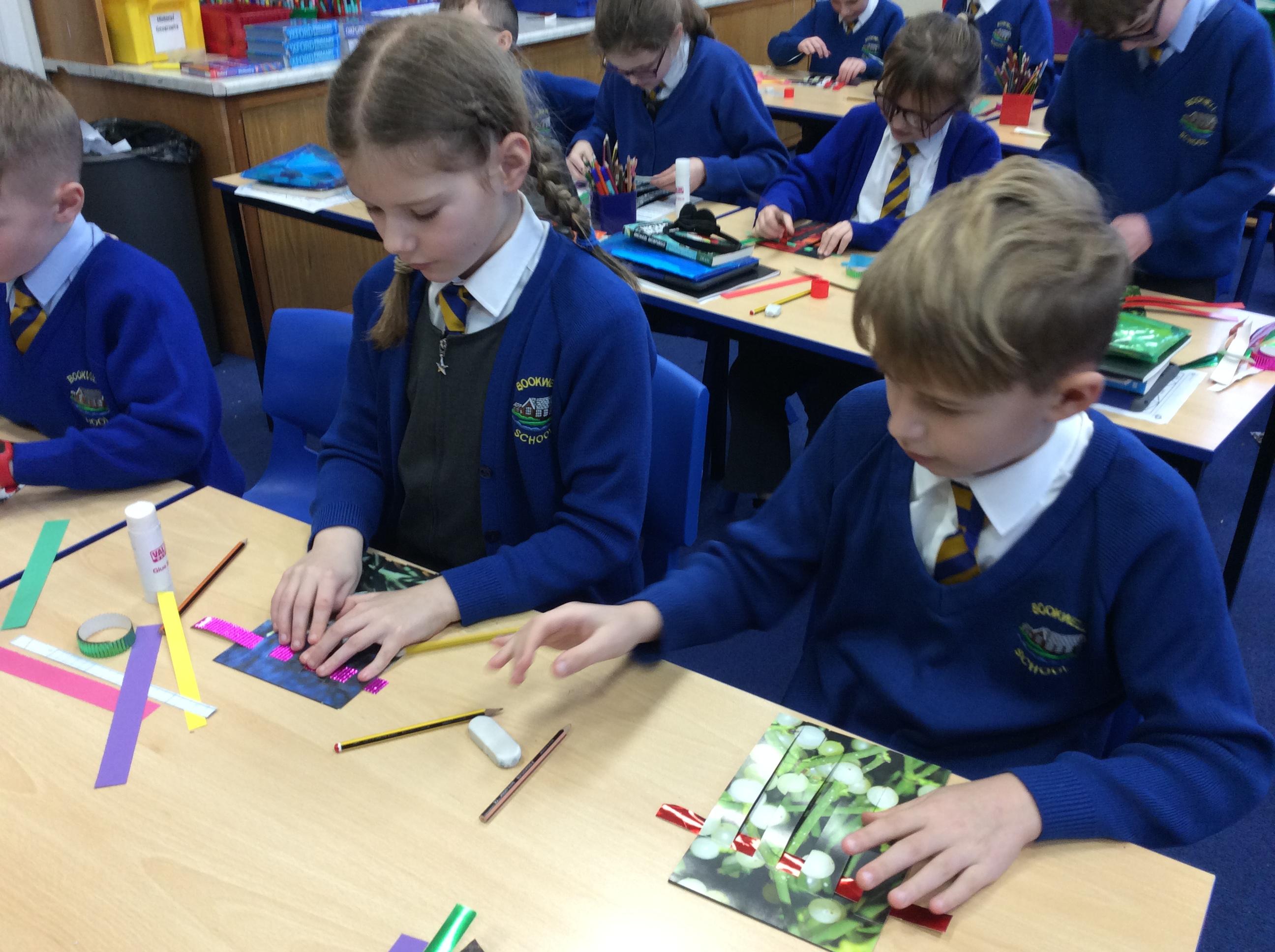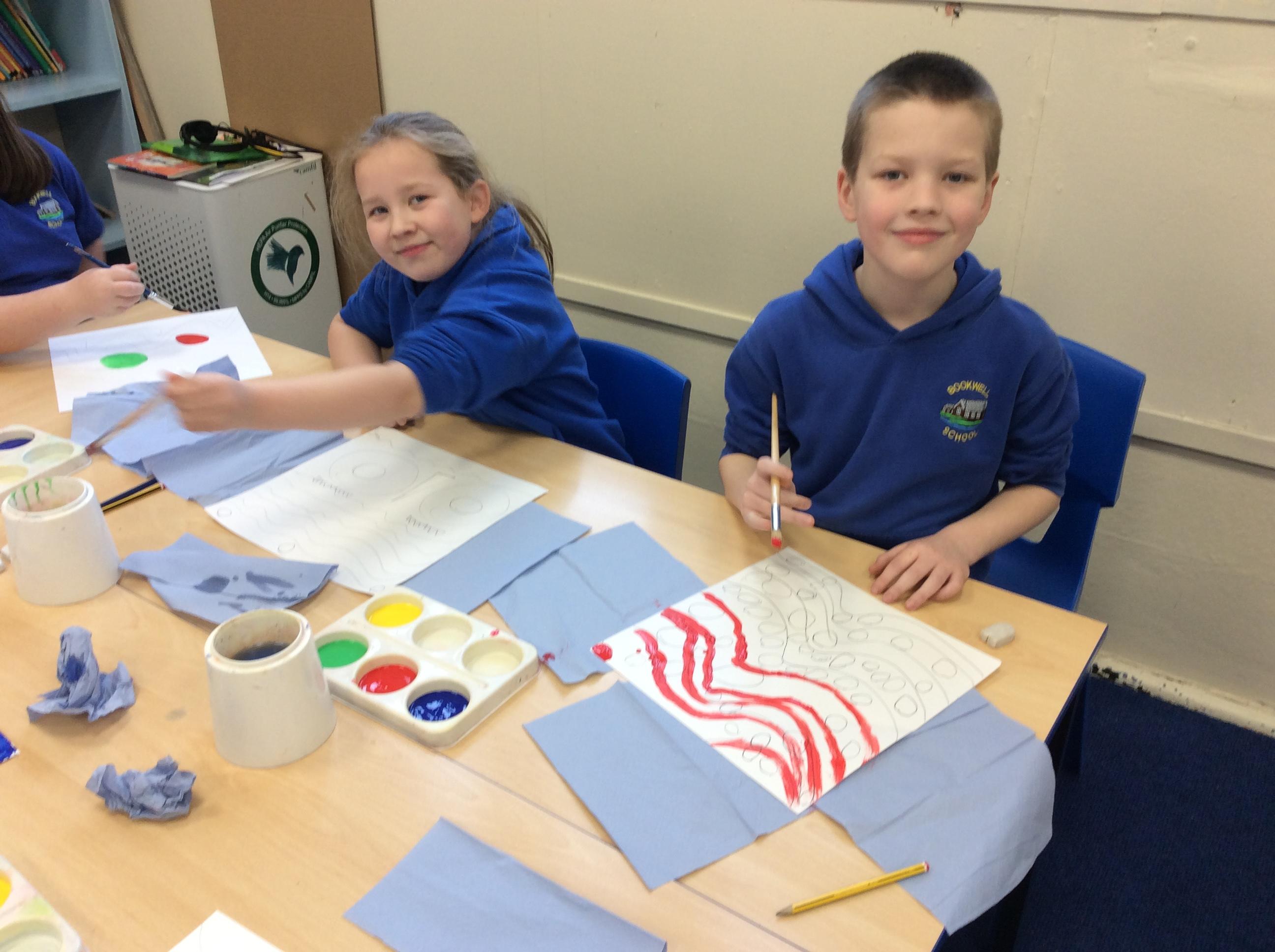 Year 4 have enjoyed using collage to build up a textured surface to paint on. They have mixed colours and overpainted areas to add detail and interest. Their concentration and skill was impressive and they were very organised with their resources. Well done Year 4.