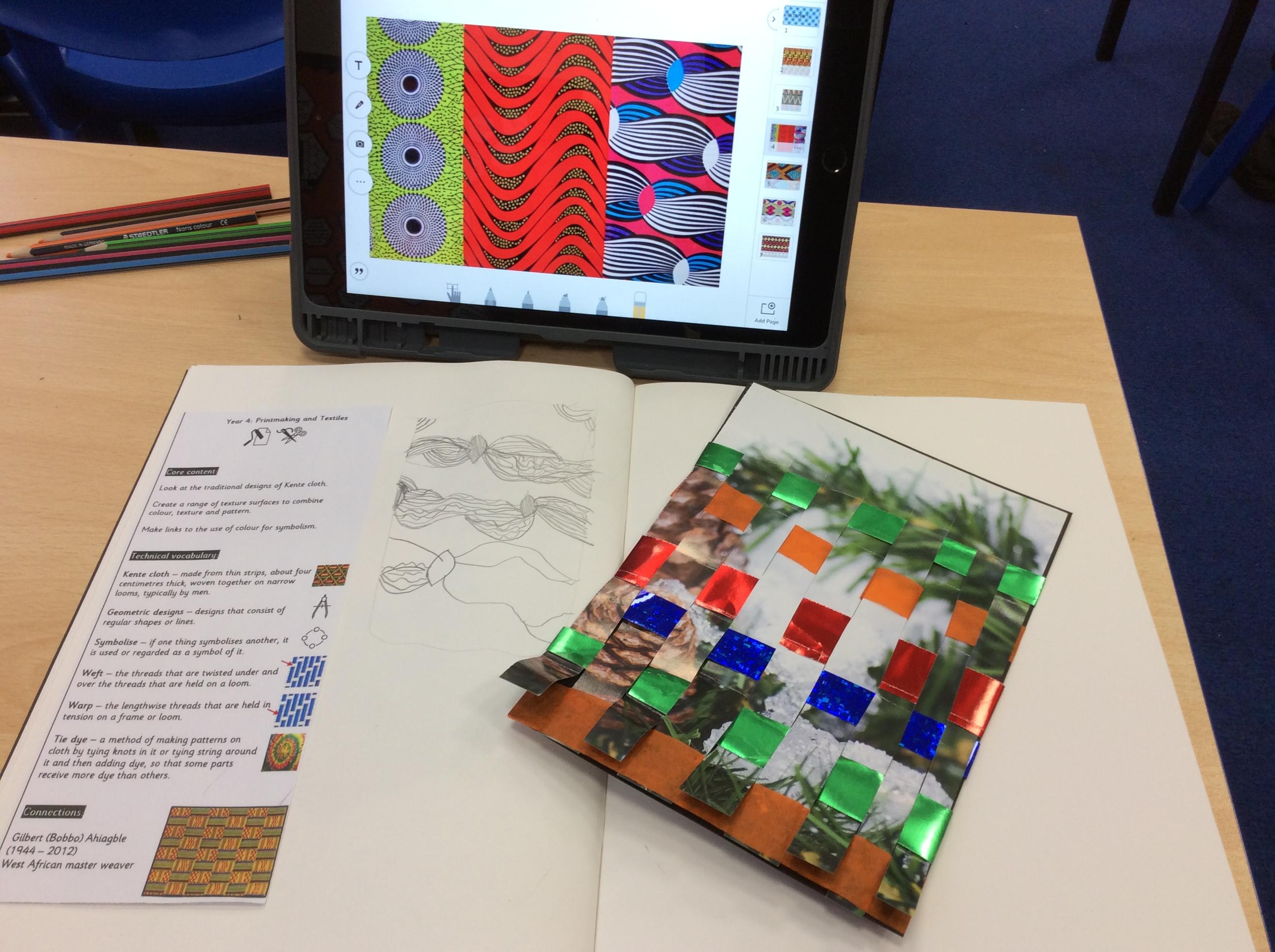 Year 4 looked at African Kente cloth before using the patterns as inspiration for their own painting and weaving.