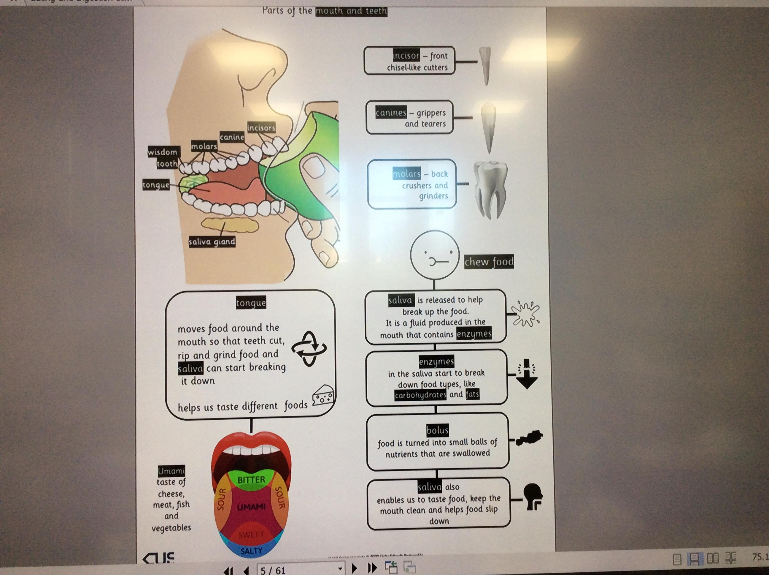 Year 4 identified which teeth are used when eating thought about how food travels around the mouth.