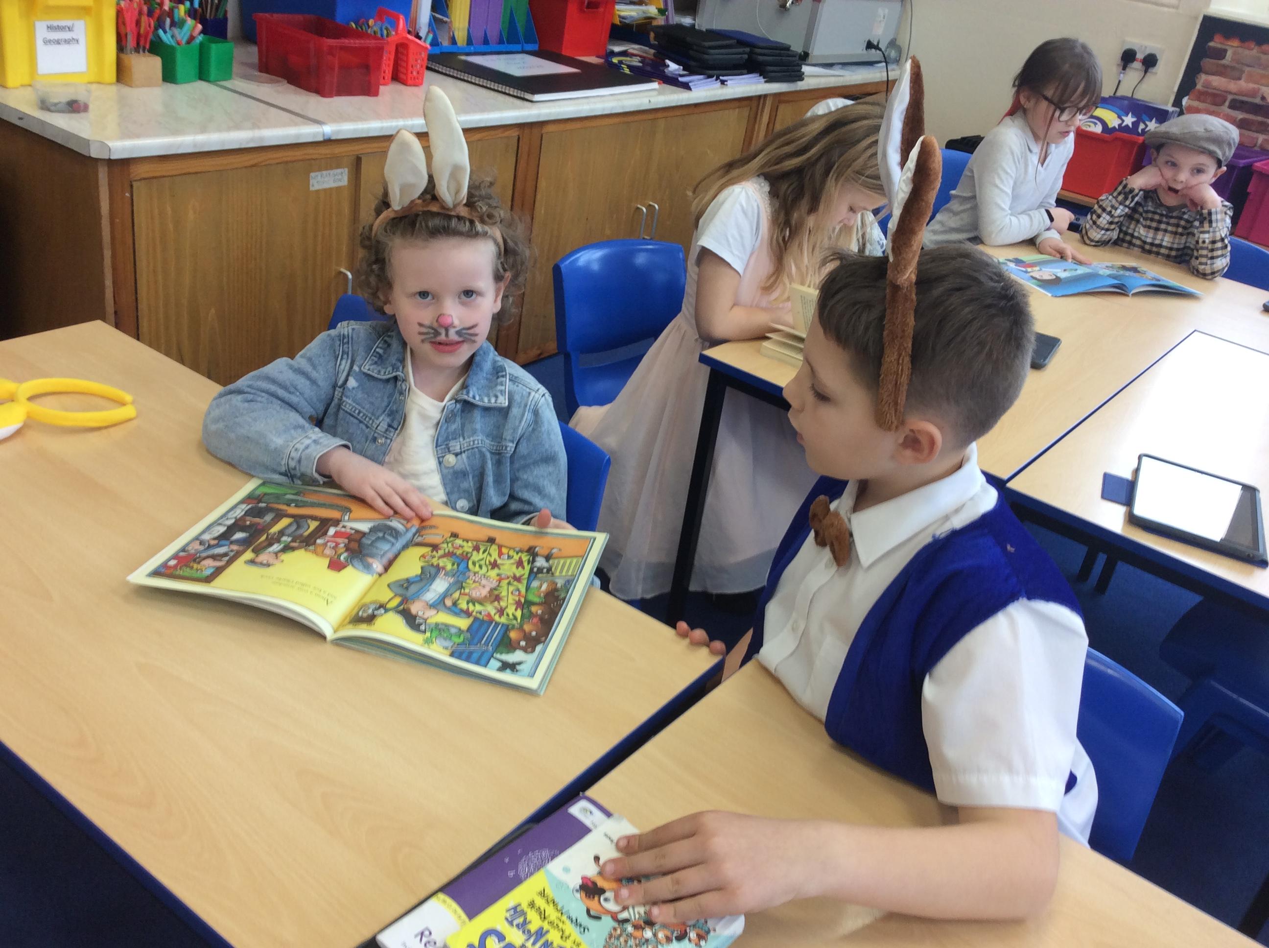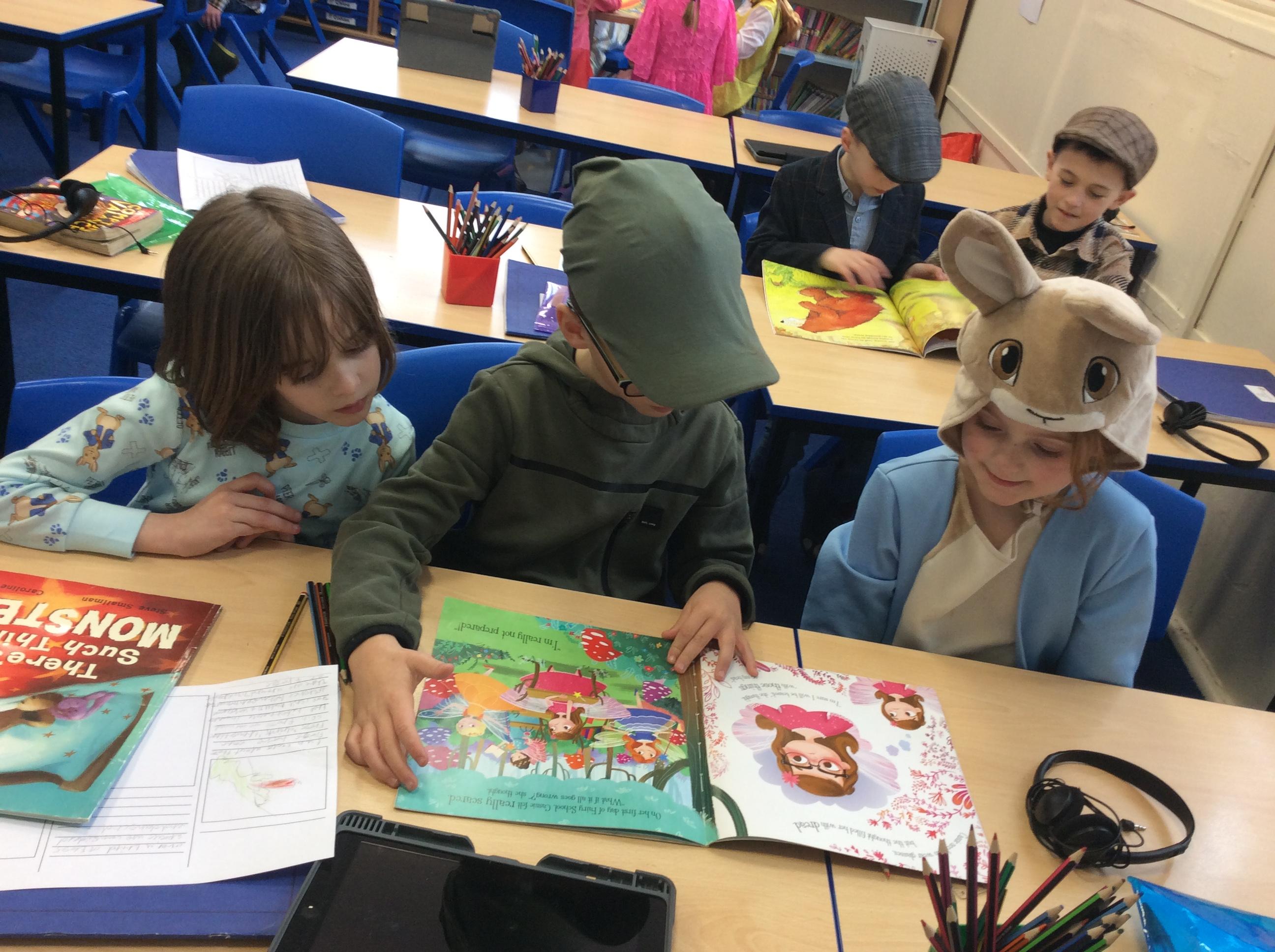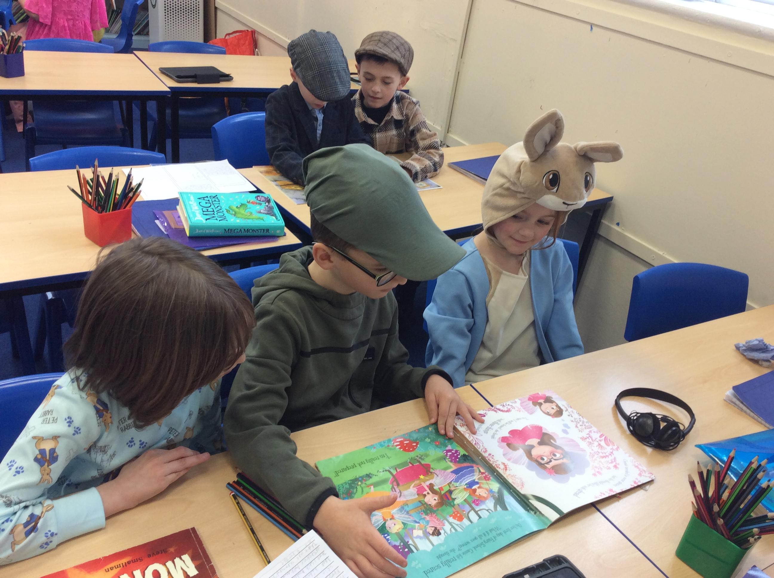 Year 4 celebrated world book day by dressing as characters from Beatrix Potter books and enjoyed a range of activities included shared reading with year 2.