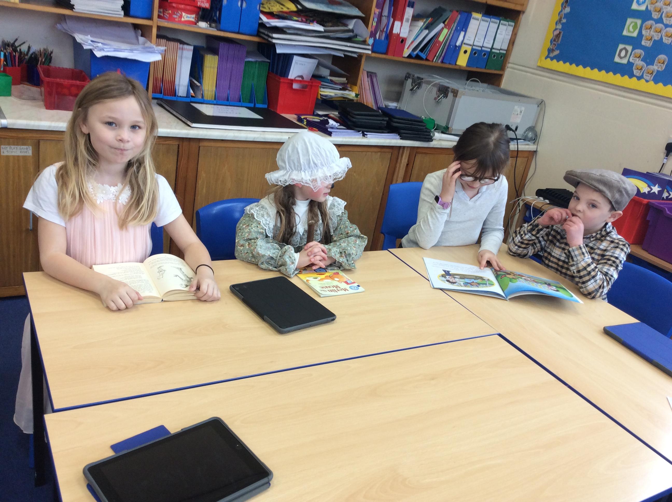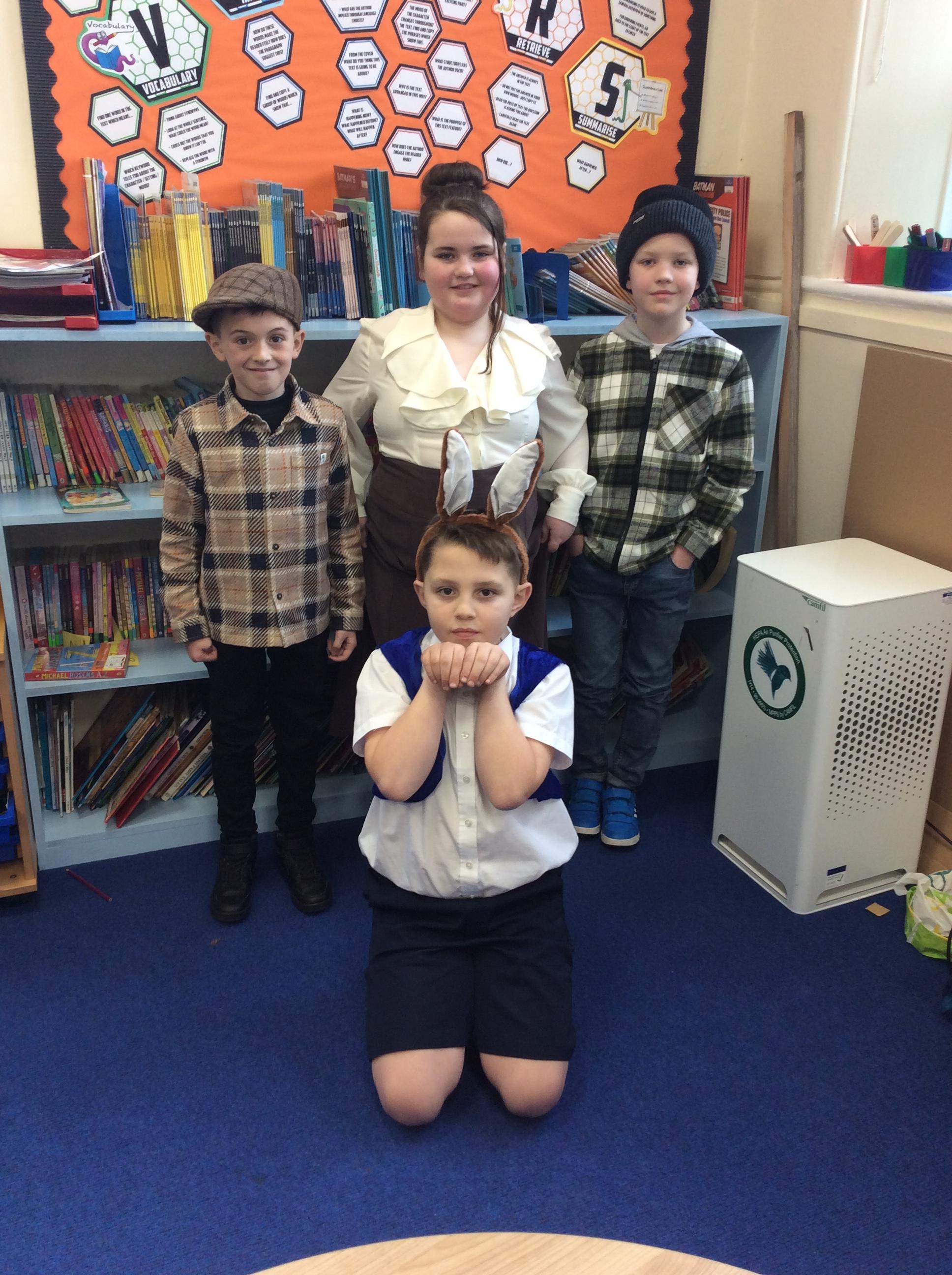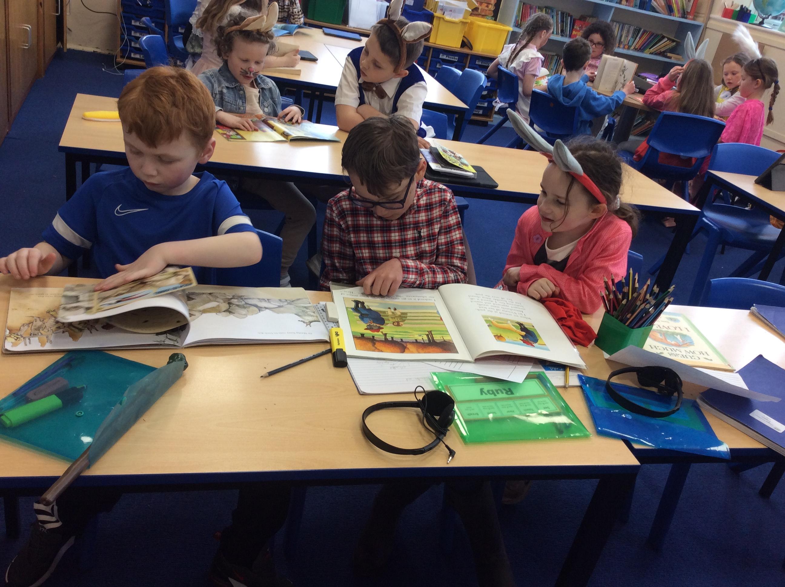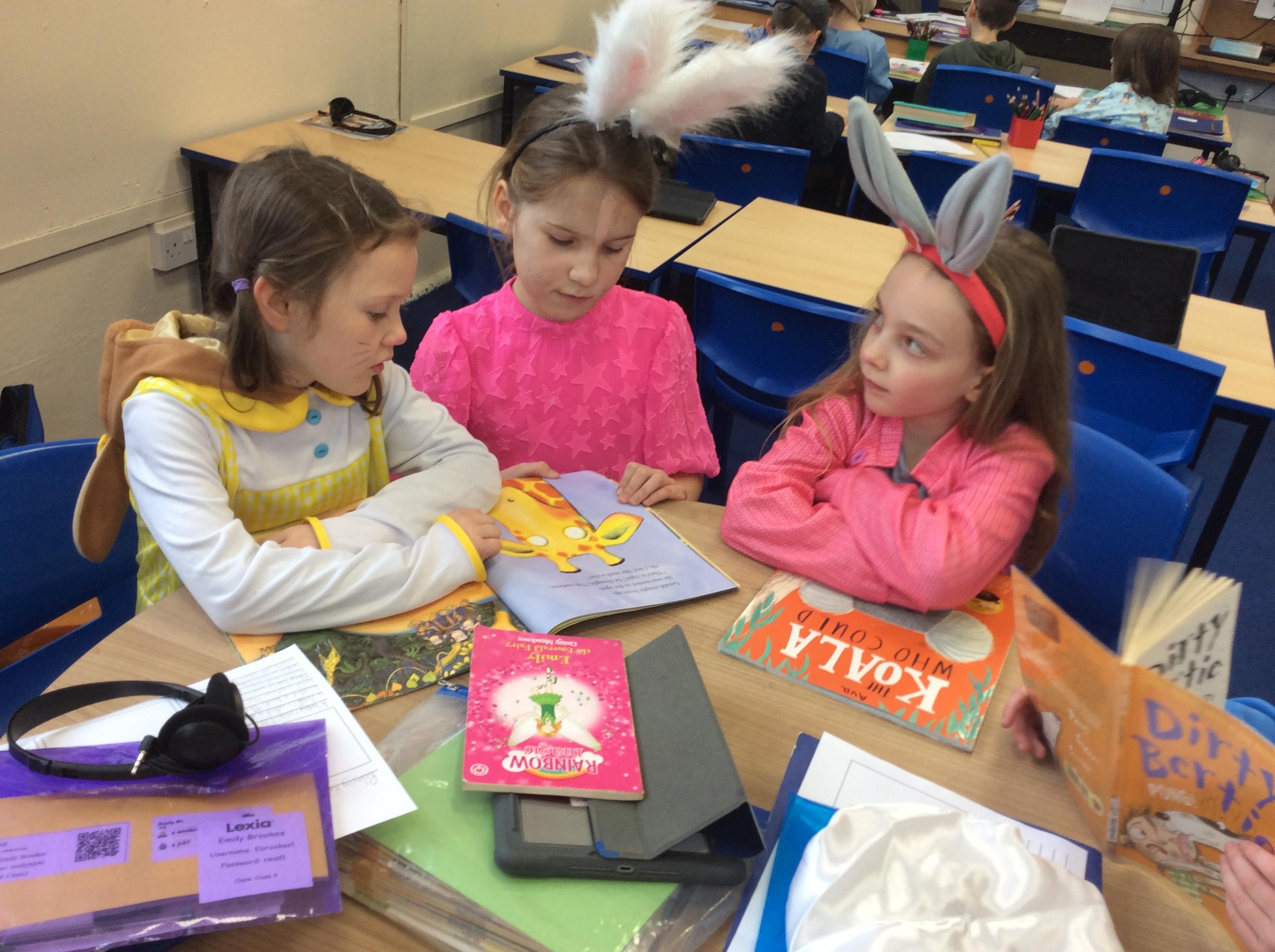 Year 4 celebrated world book day by dressing as characters from Beatrix Potter books and enjoyed a range of activities included shared reading with year 2.