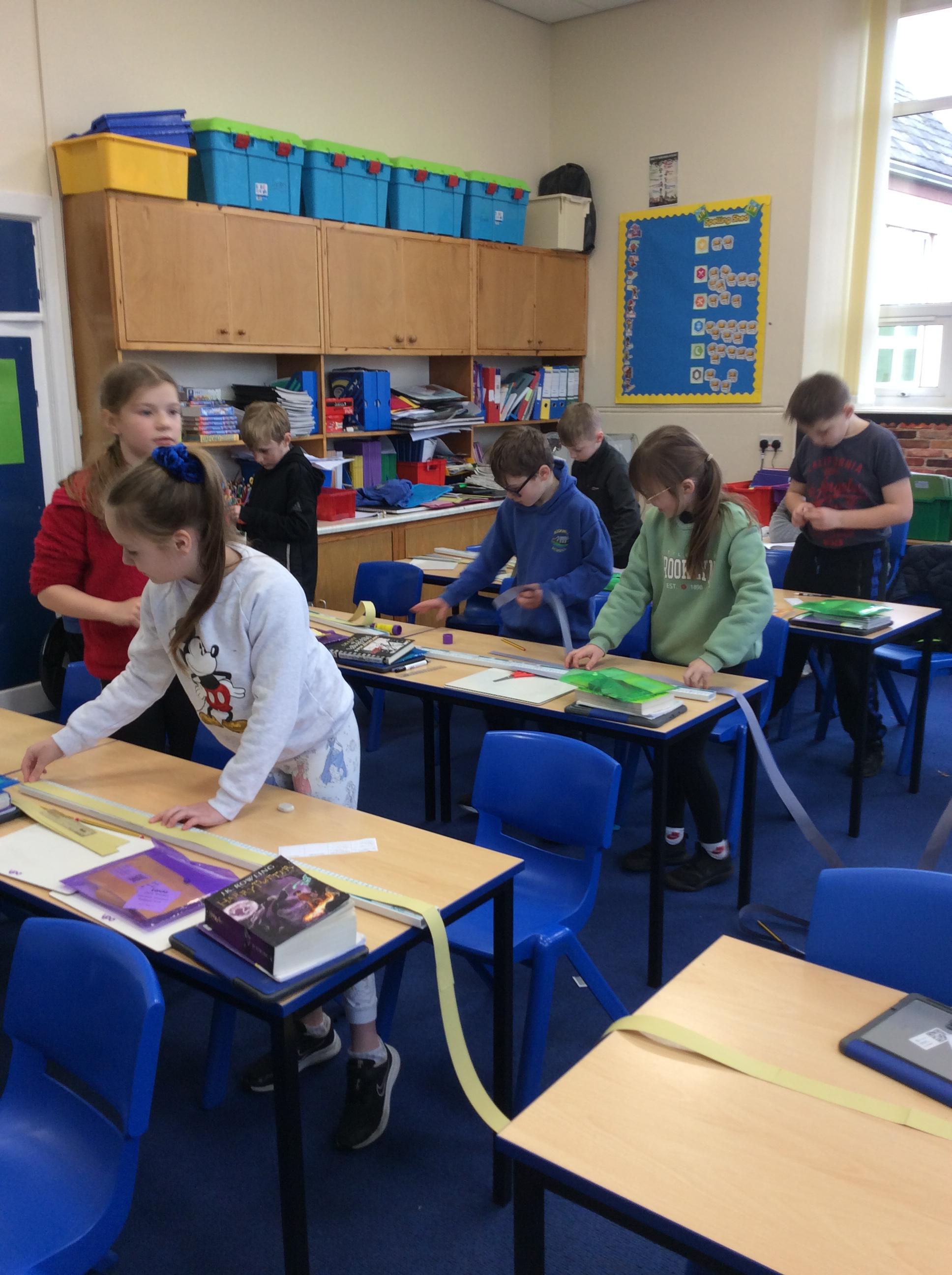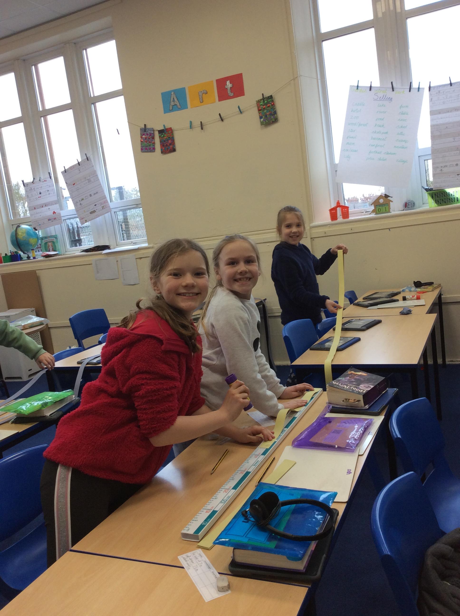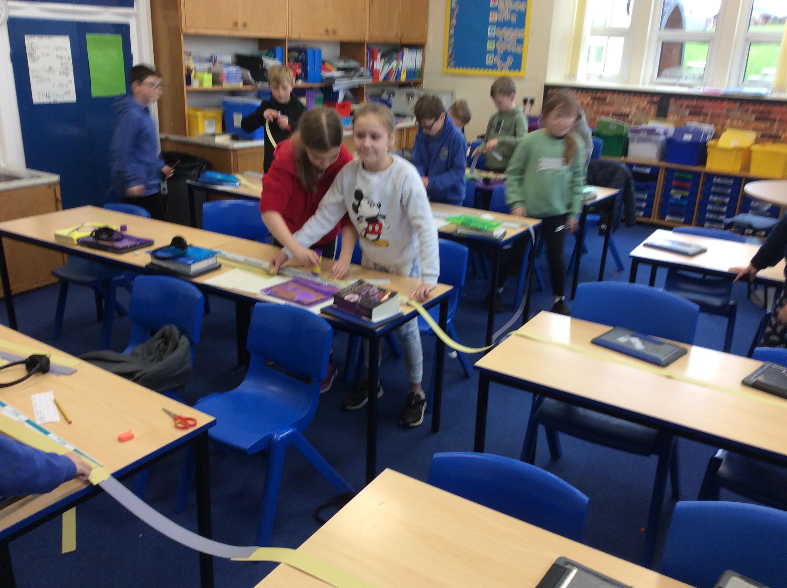 We looked at the size of the small intestines, made measuring tapes and compared its length around the school.
