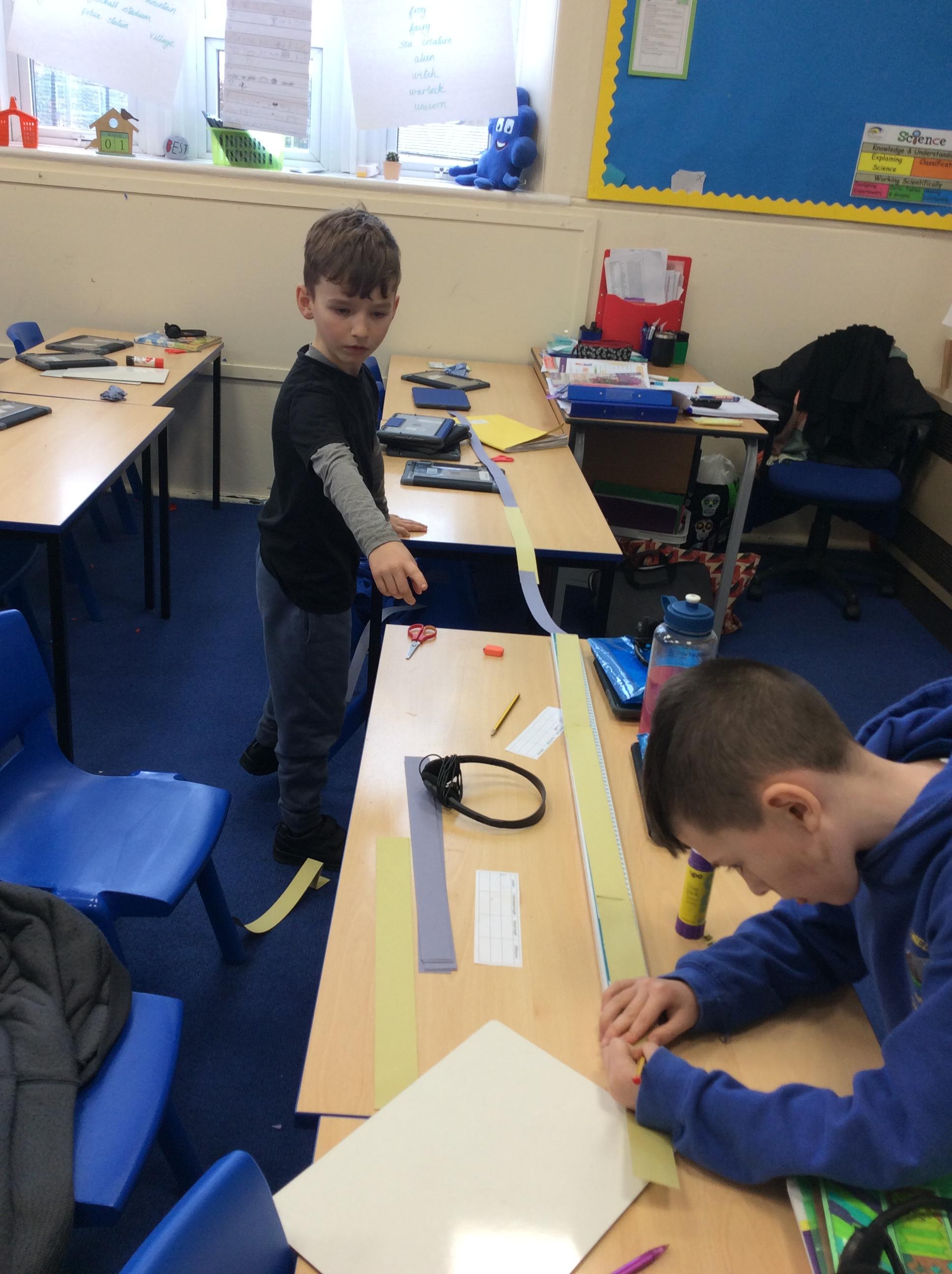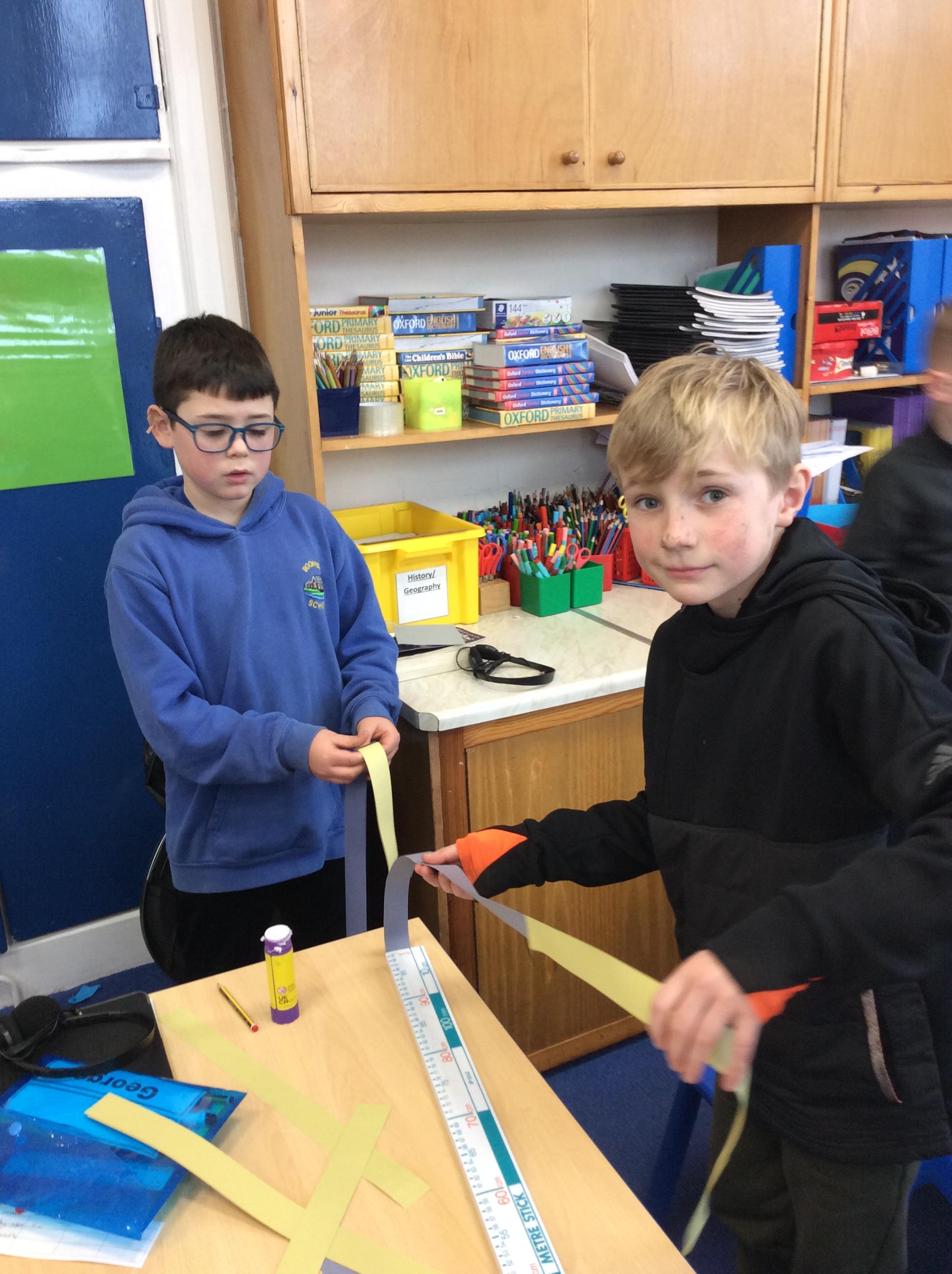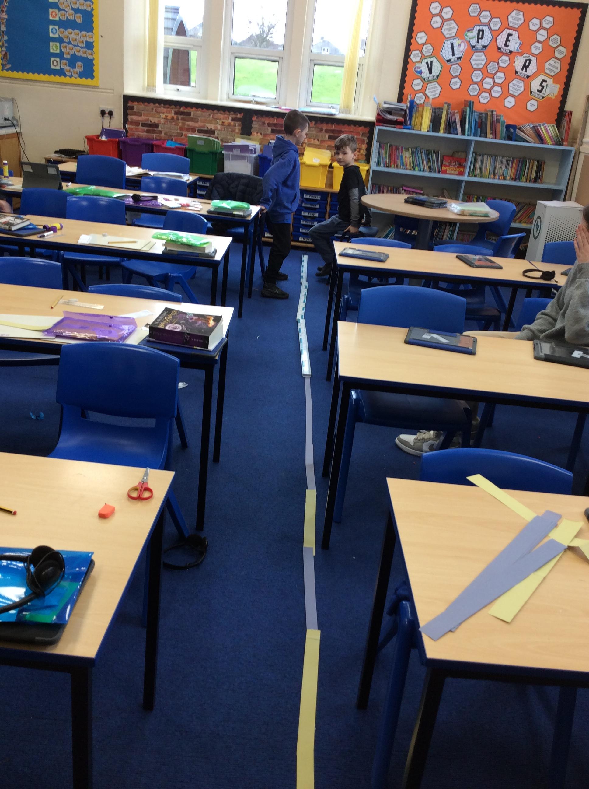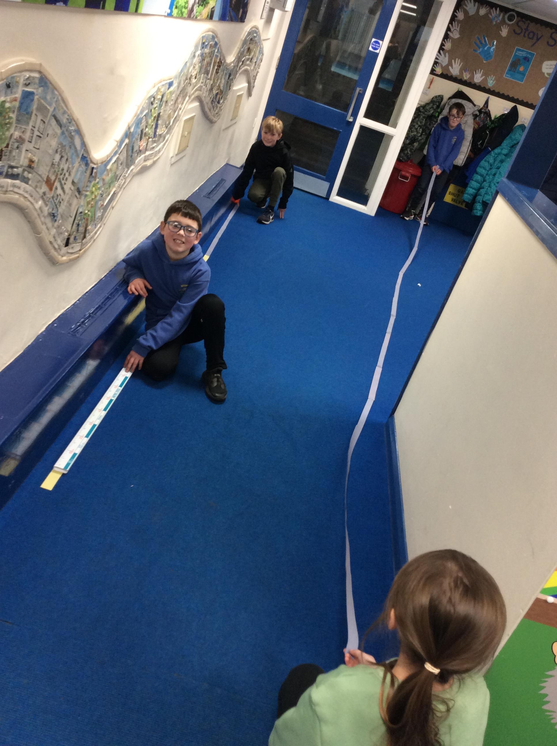 We looked at the size of the small intestines, made measuring tapes and compared its length around the school.