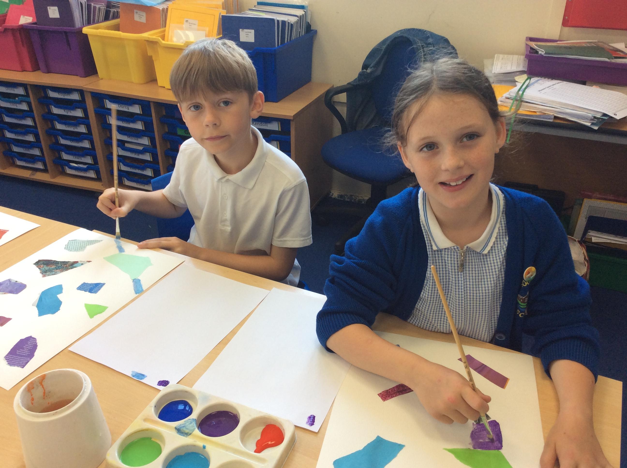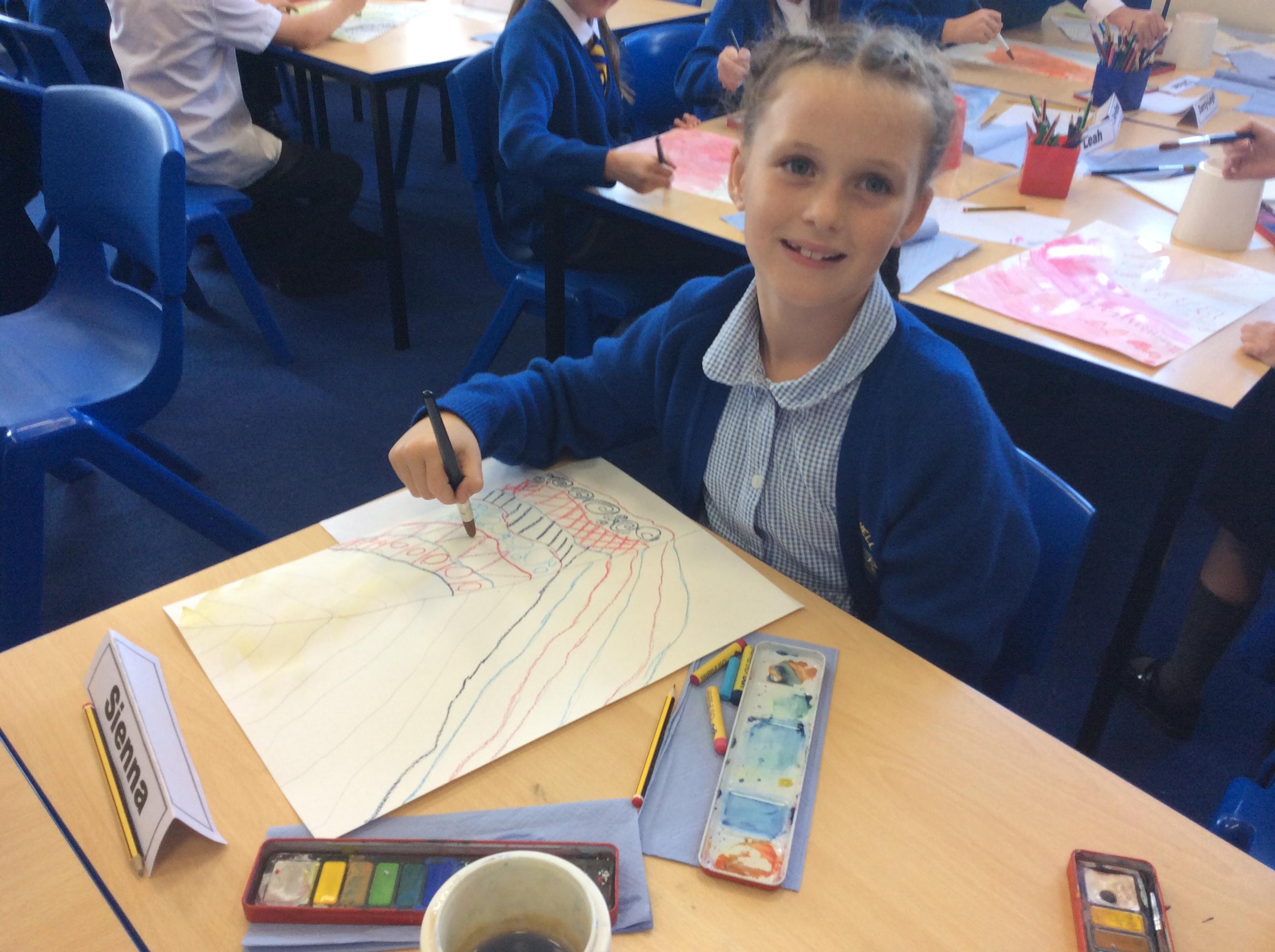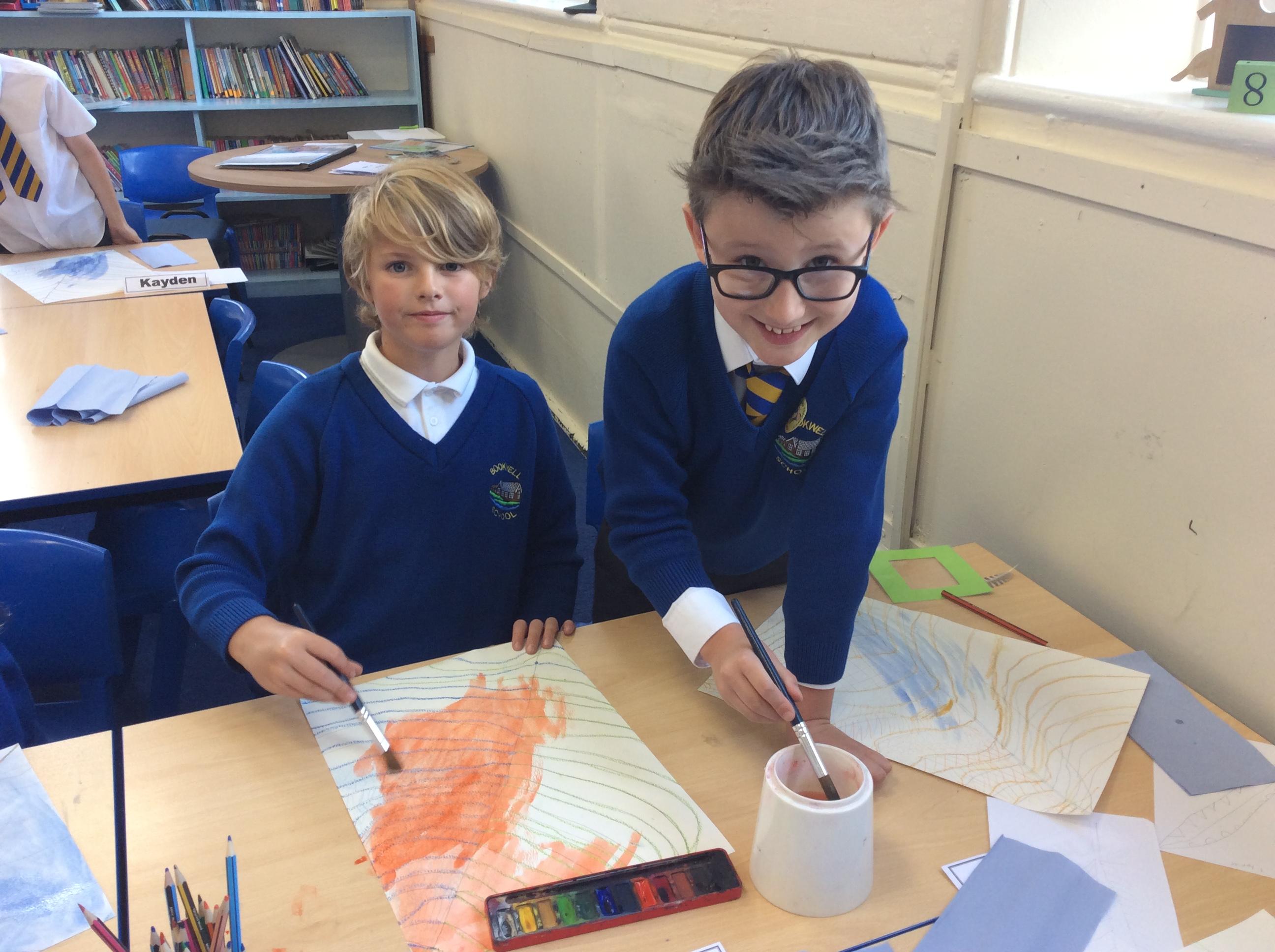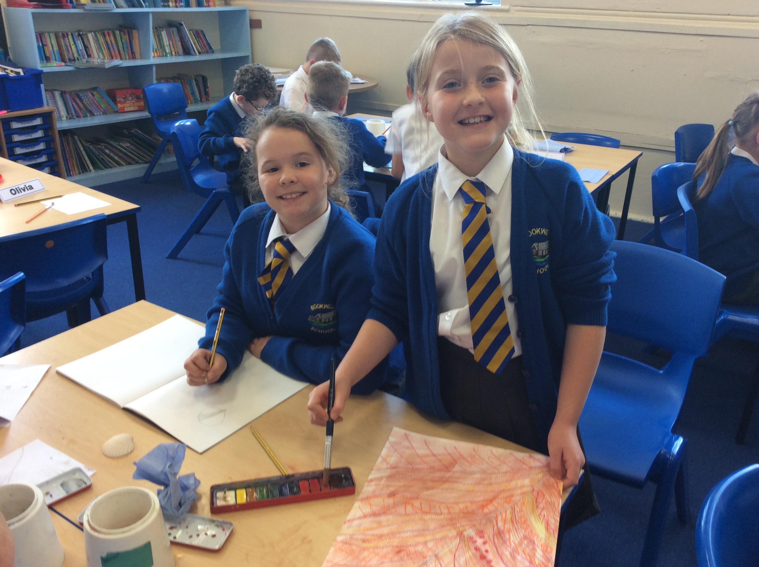 Year 4 have been very creative by using a range of mark making techniques to create large scale paintings based on their own drawings of feathers and shells.