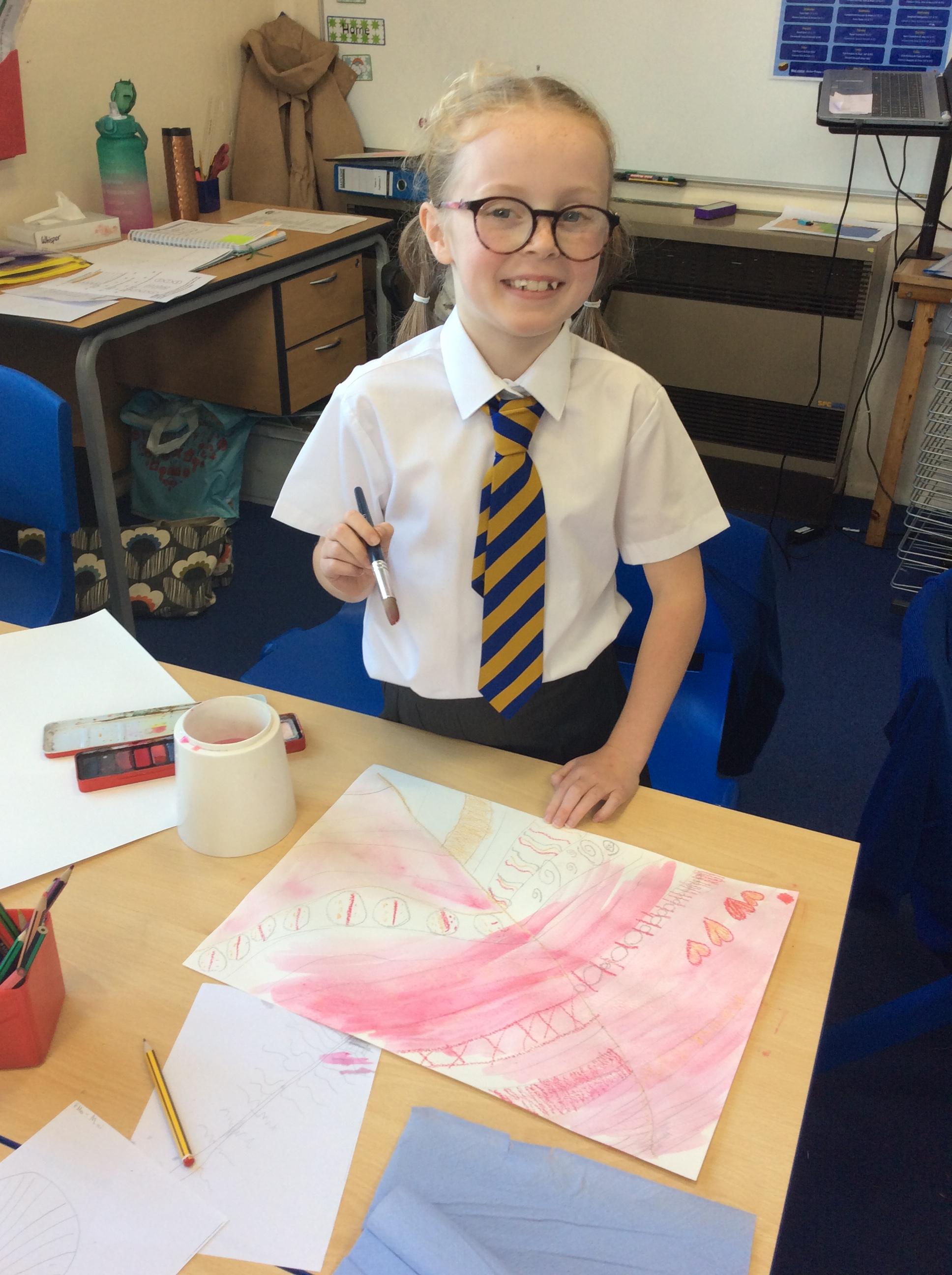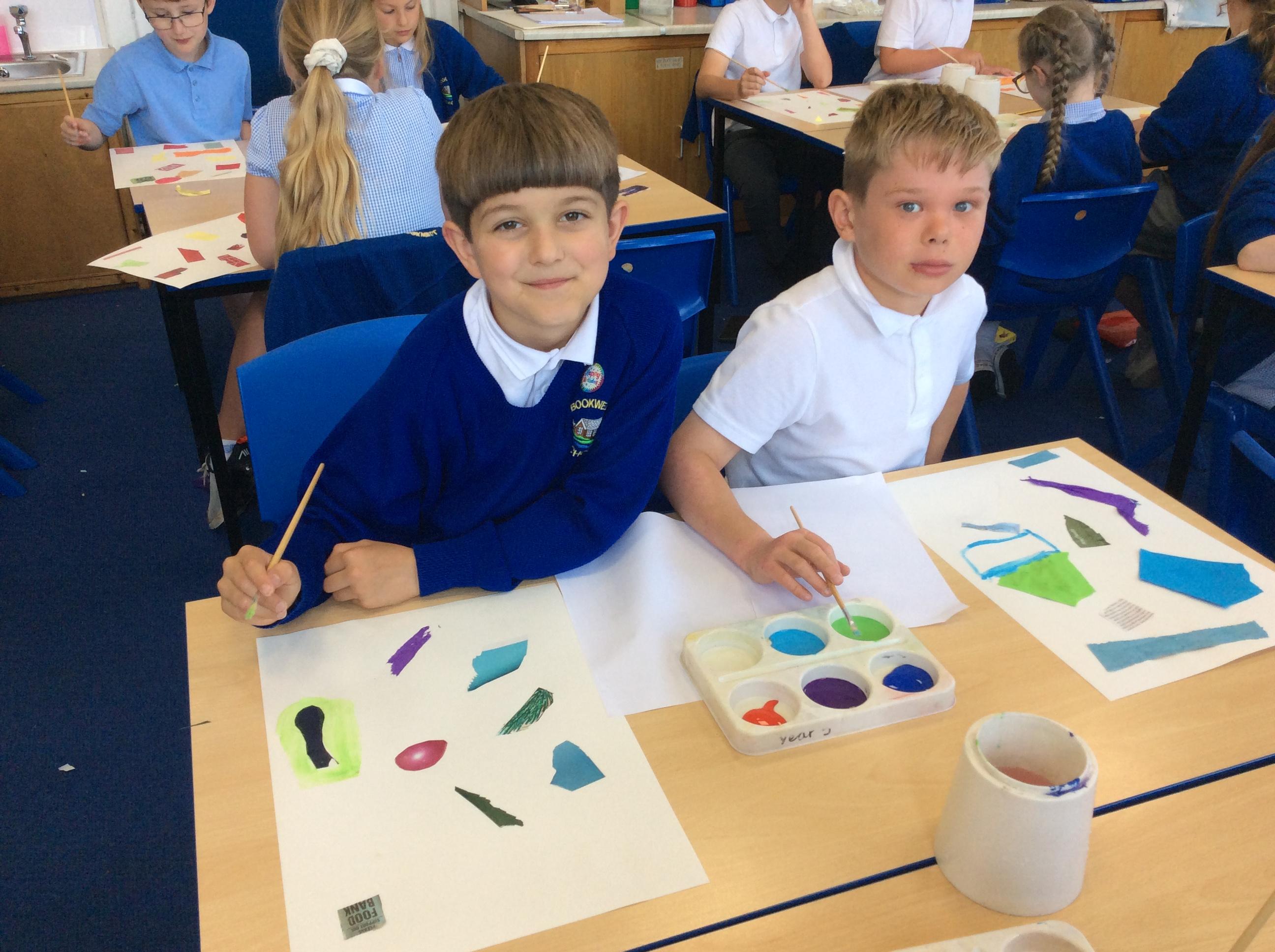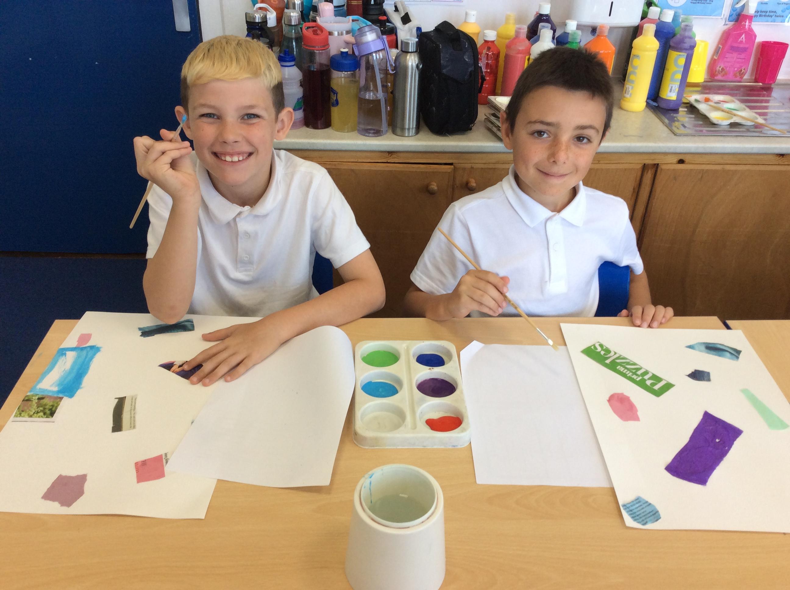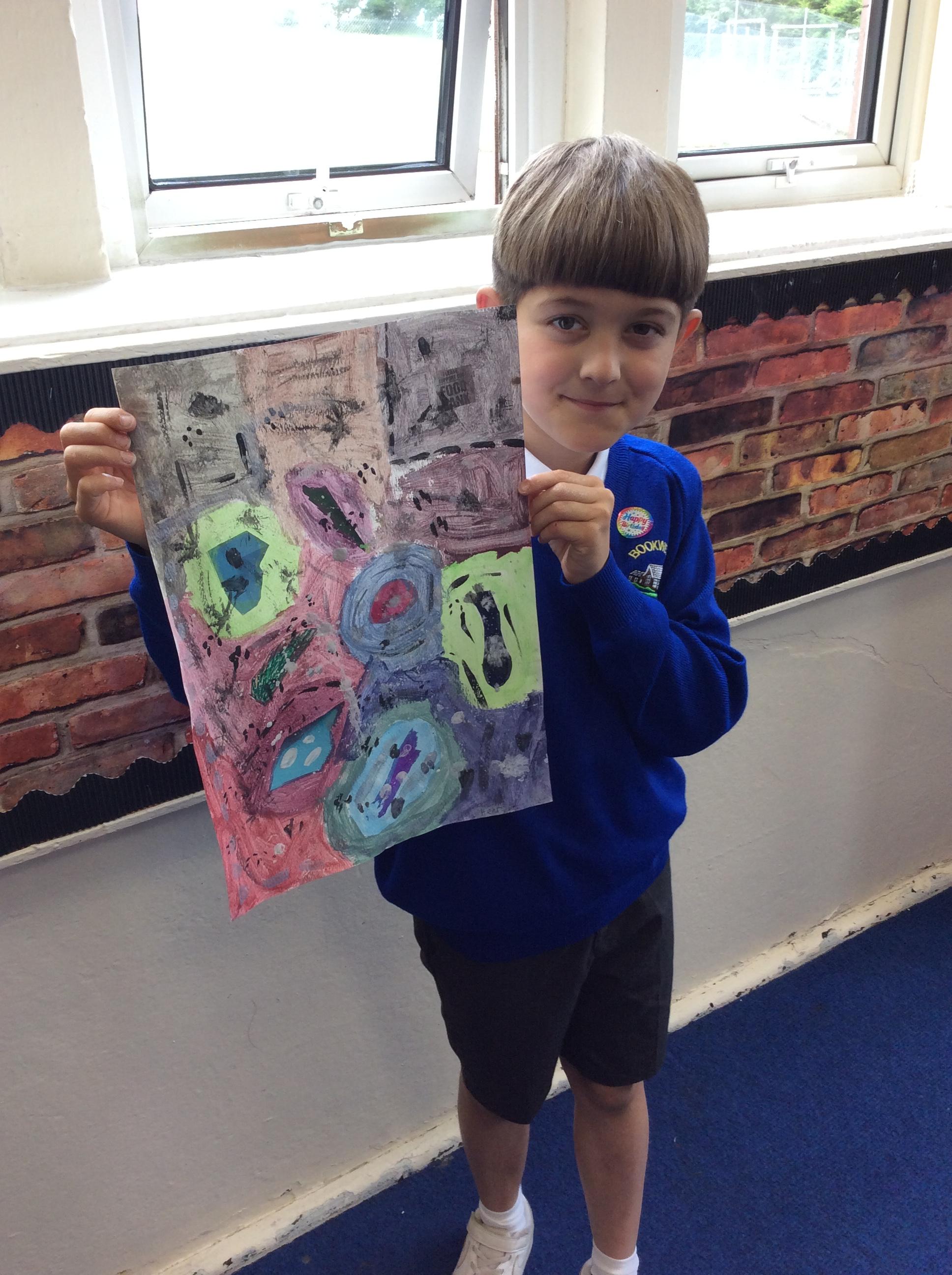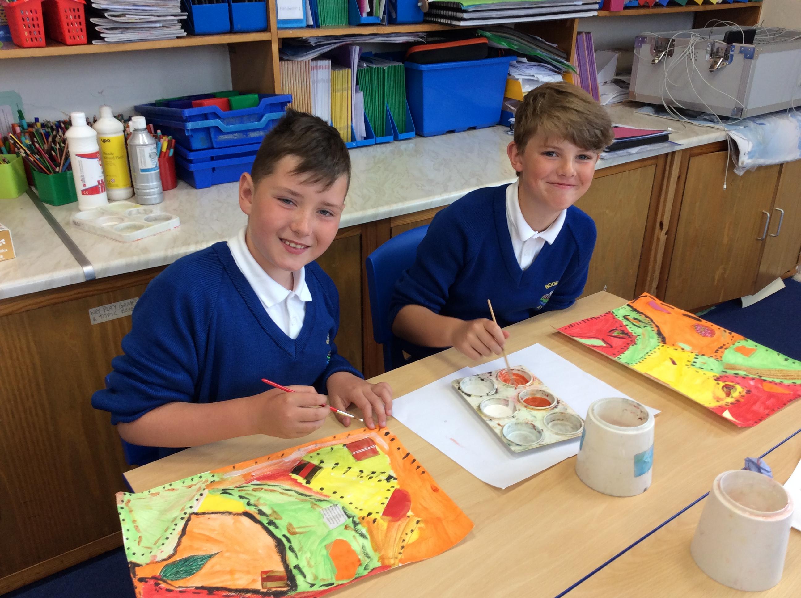Year 4 have been very creative by using a range of mark making techniques to create large scale paintings based on their own drawings of feathers and shells.