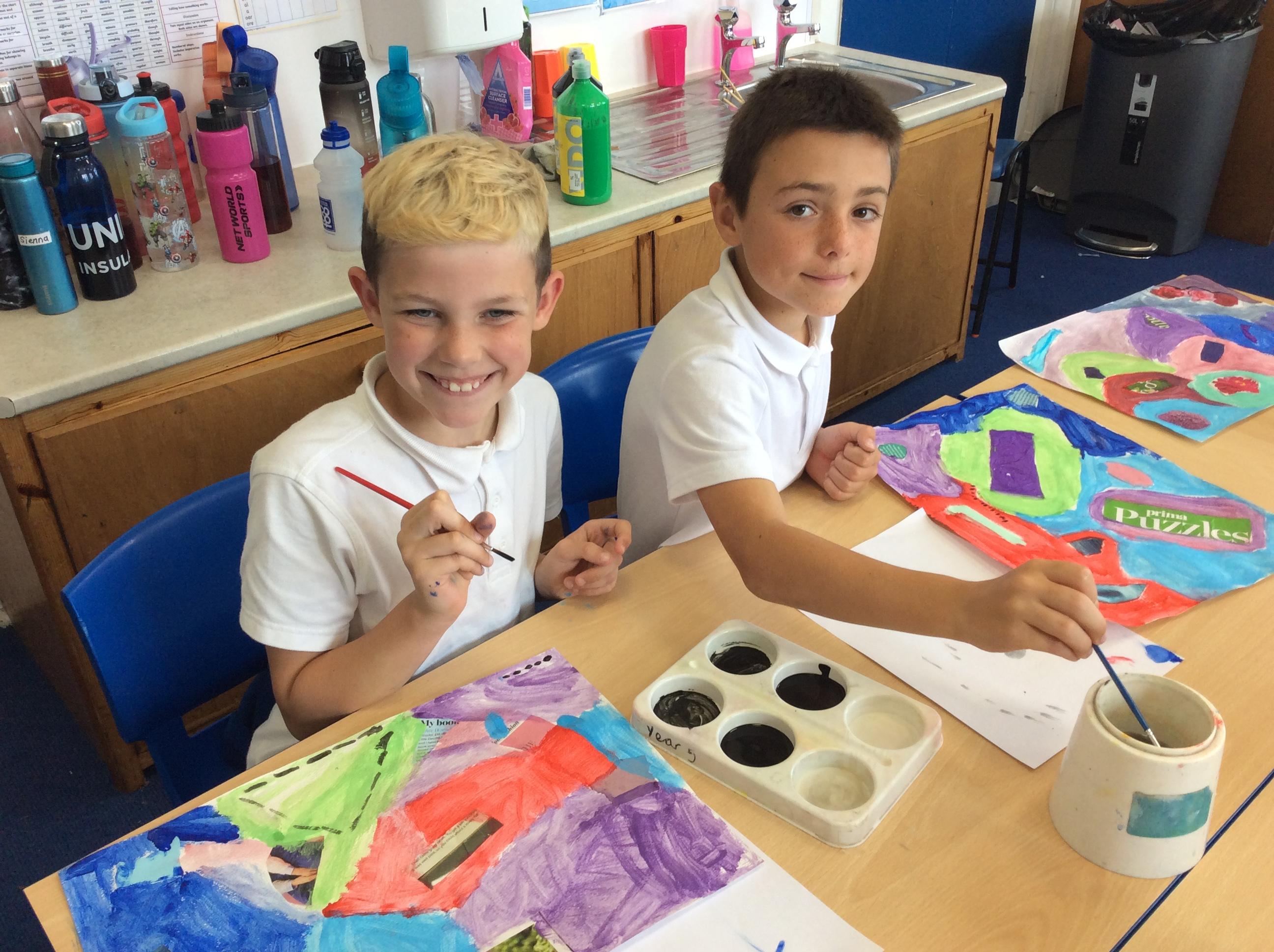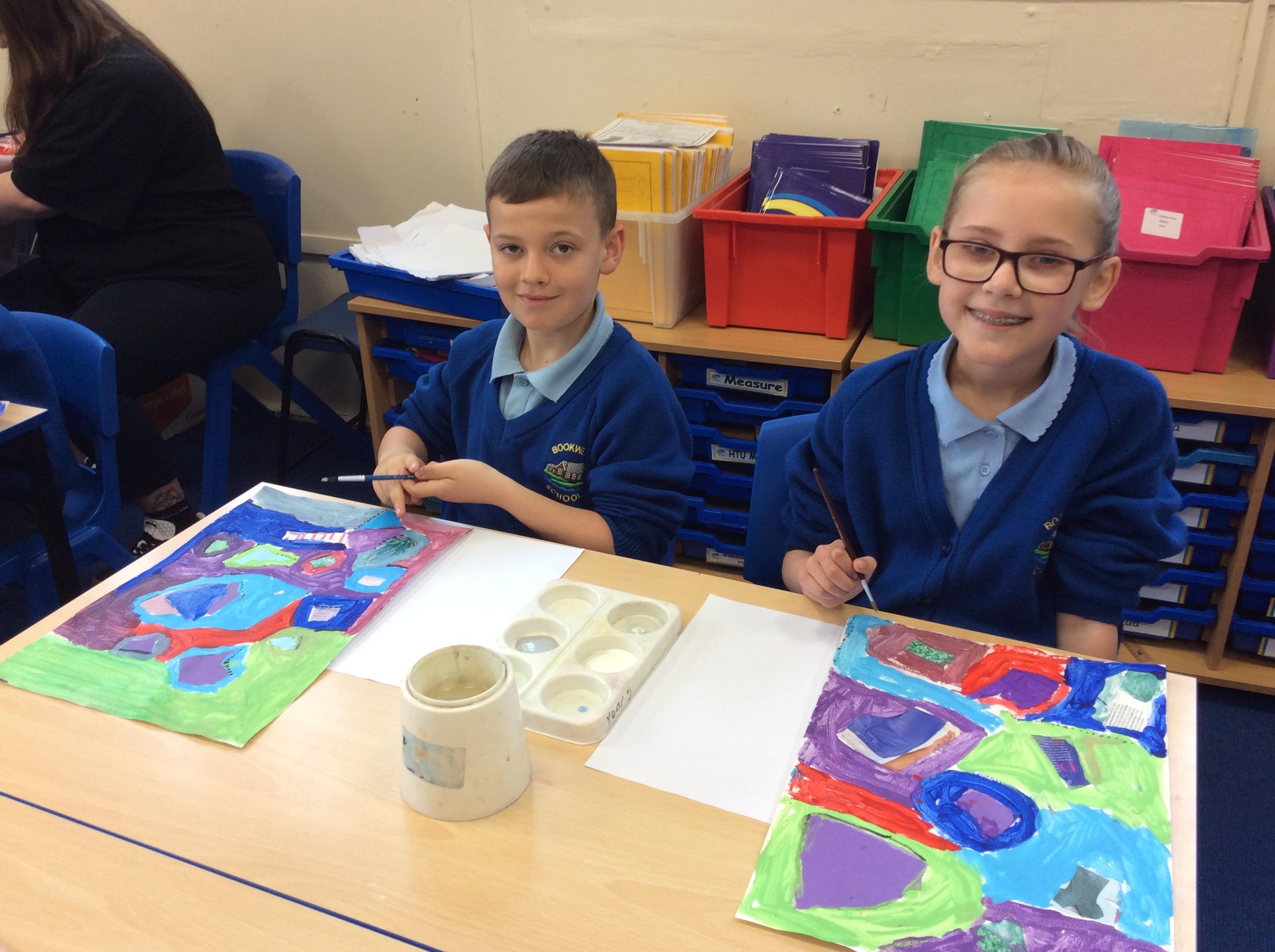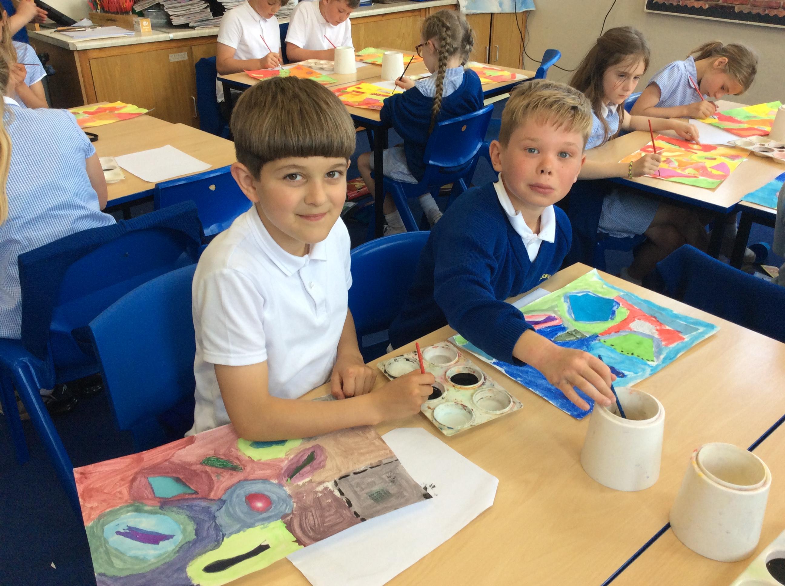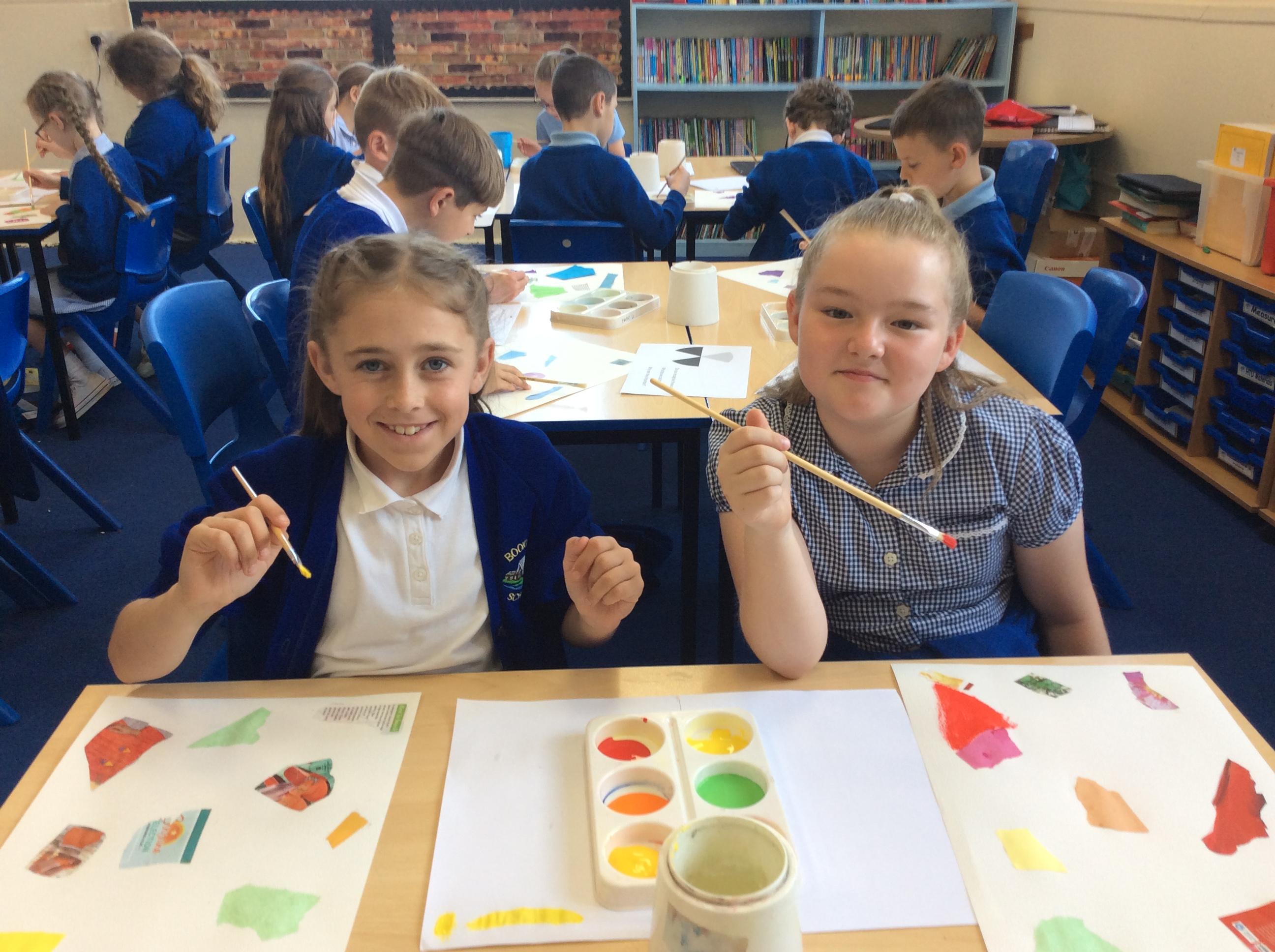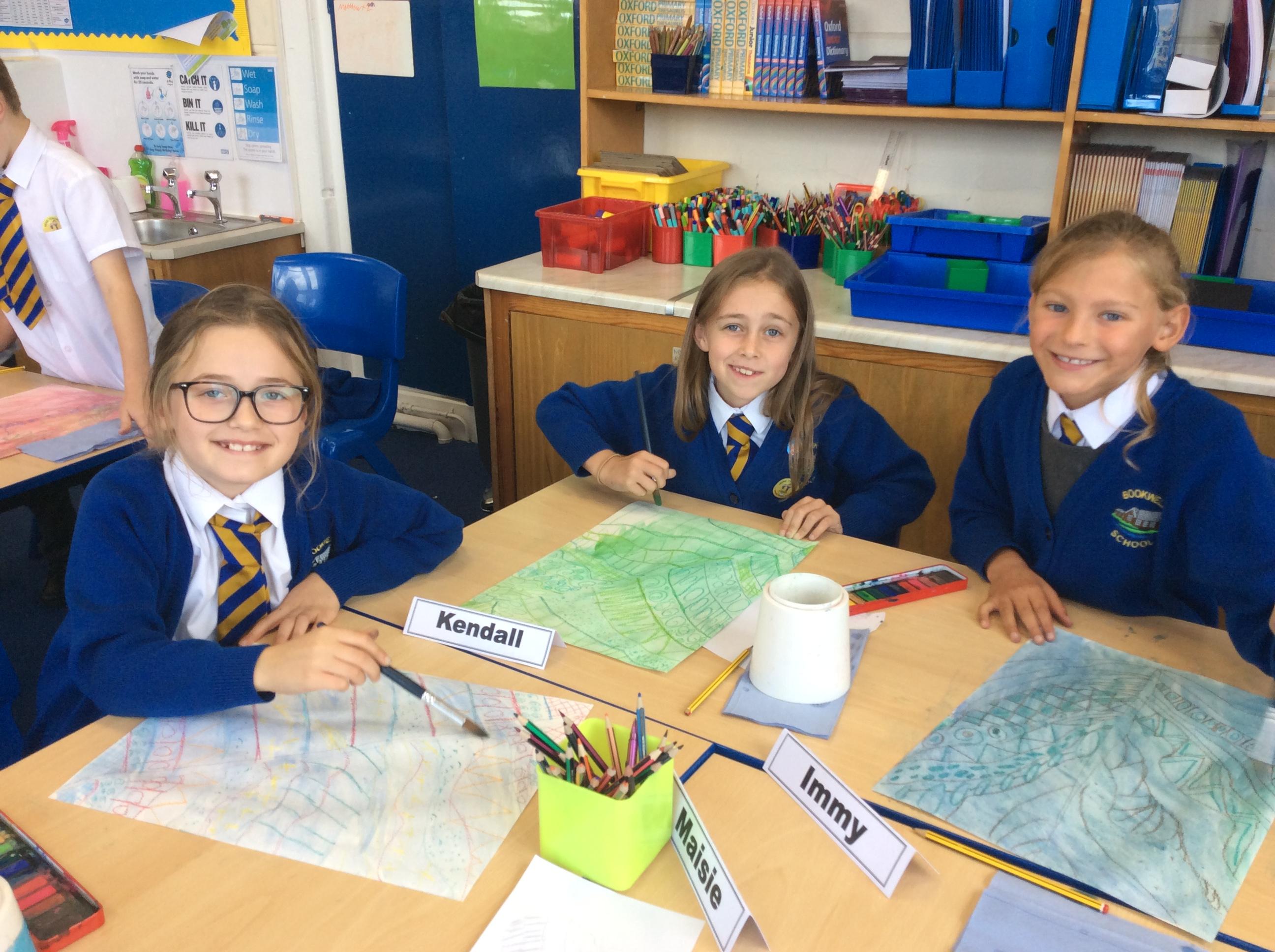 Year 4 have been very creative by using a range of mark making techniques to create large scale paintings based on their own drawings of feathers and shells.