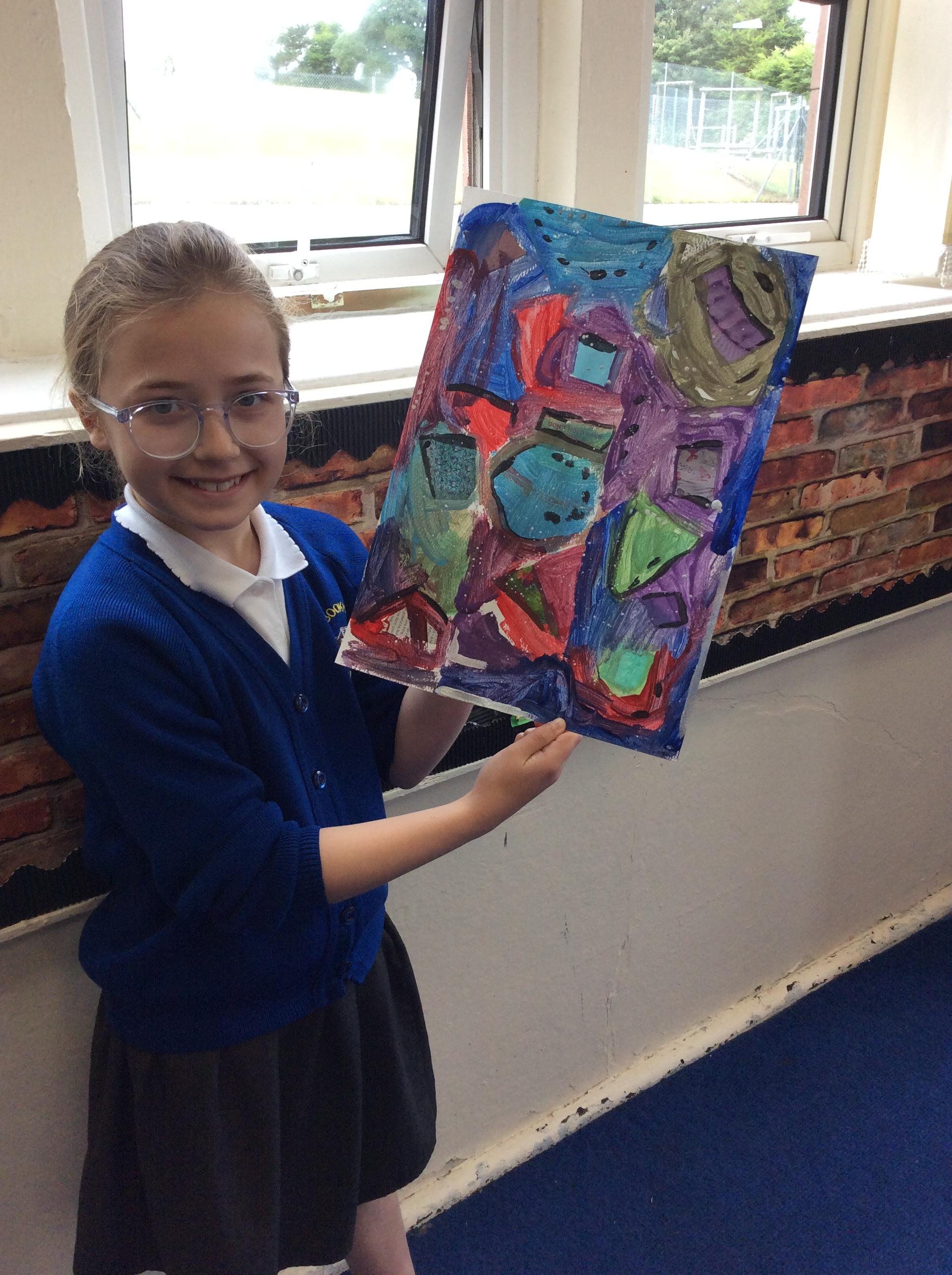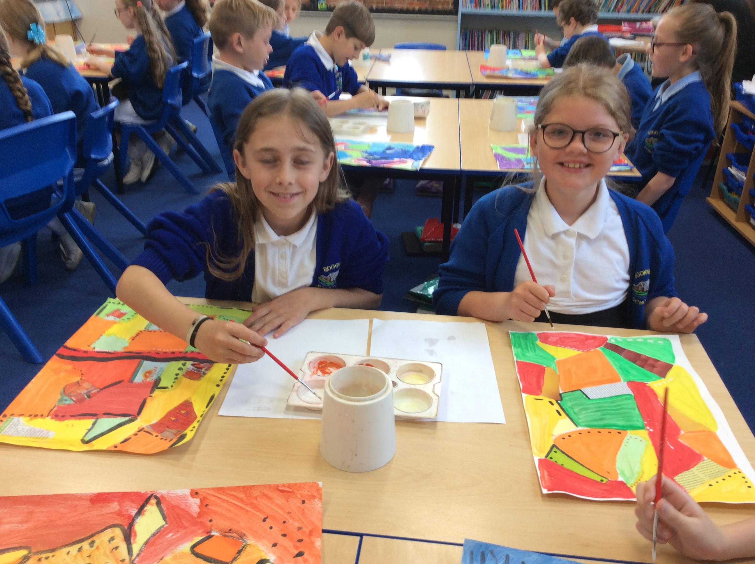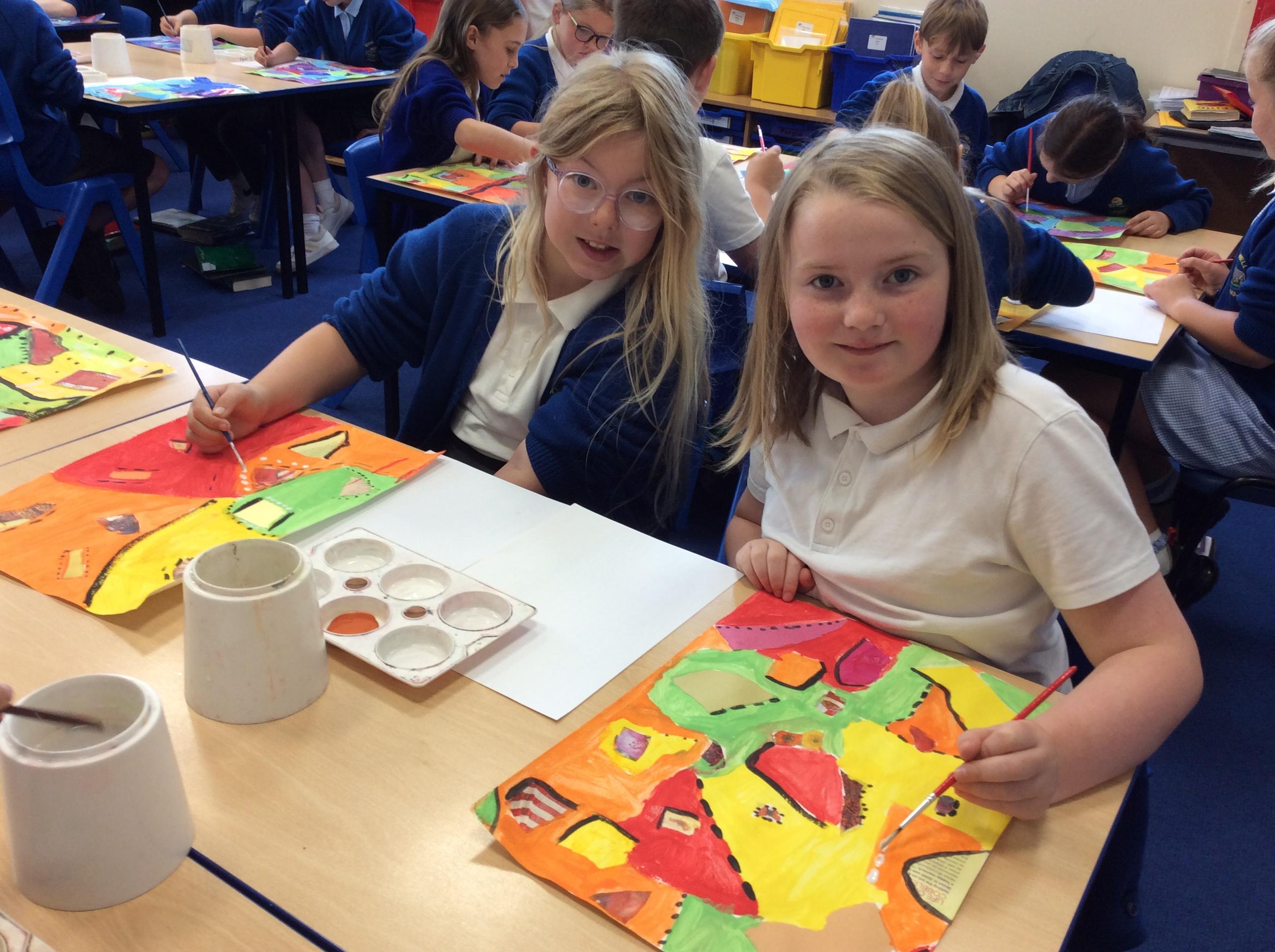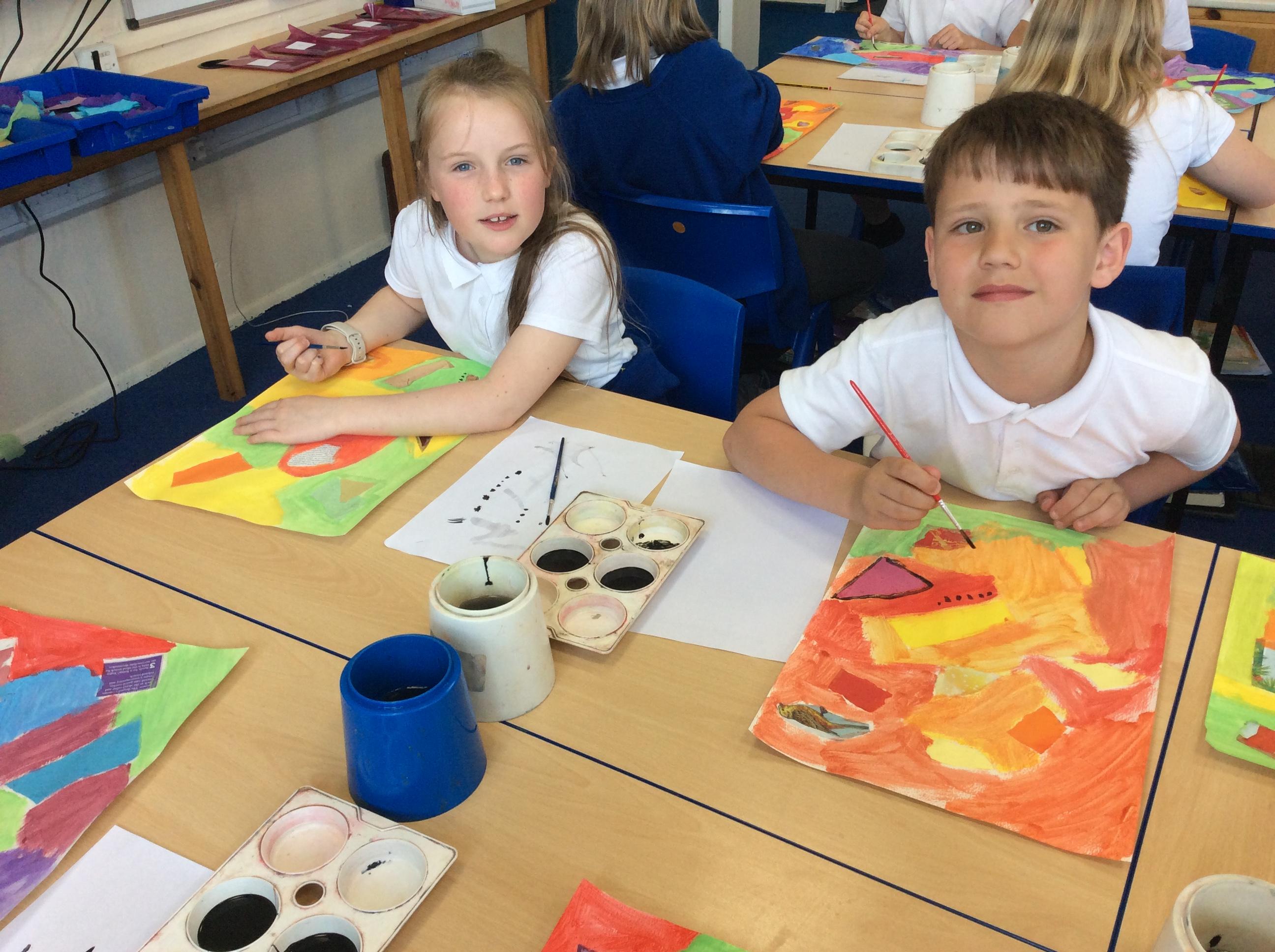 Year 4 have been very creative by using a range of mark making techniques to create large scale paintings based on their own drawings of feathers and shells.