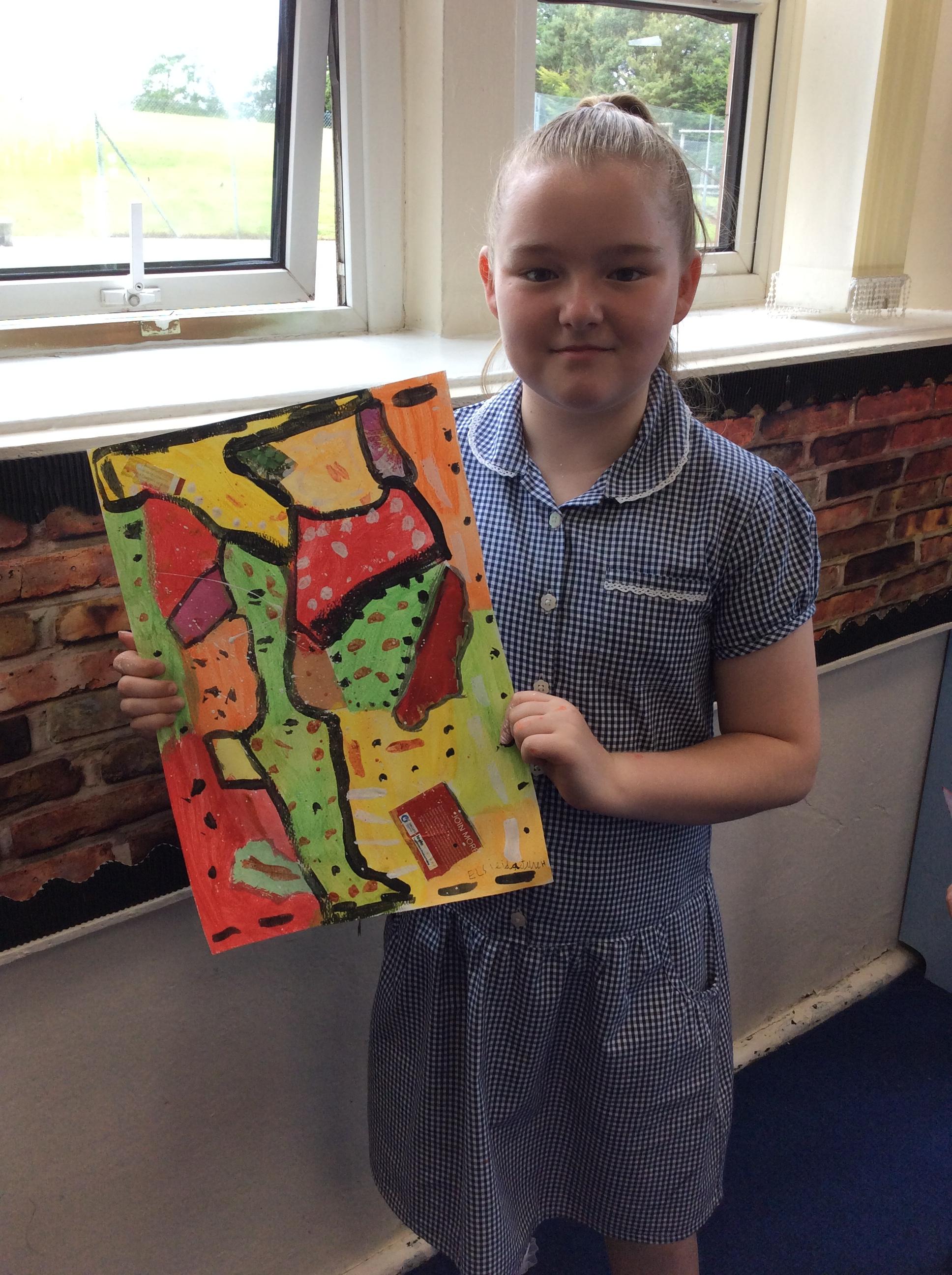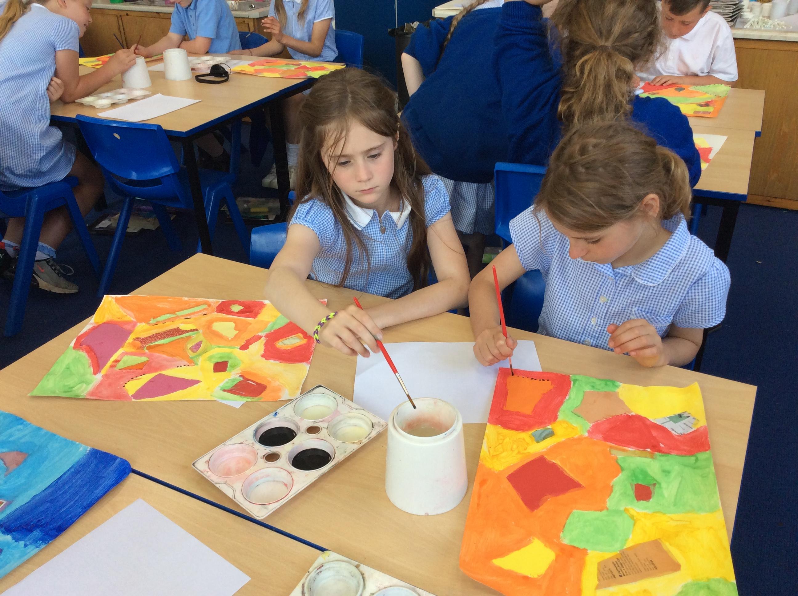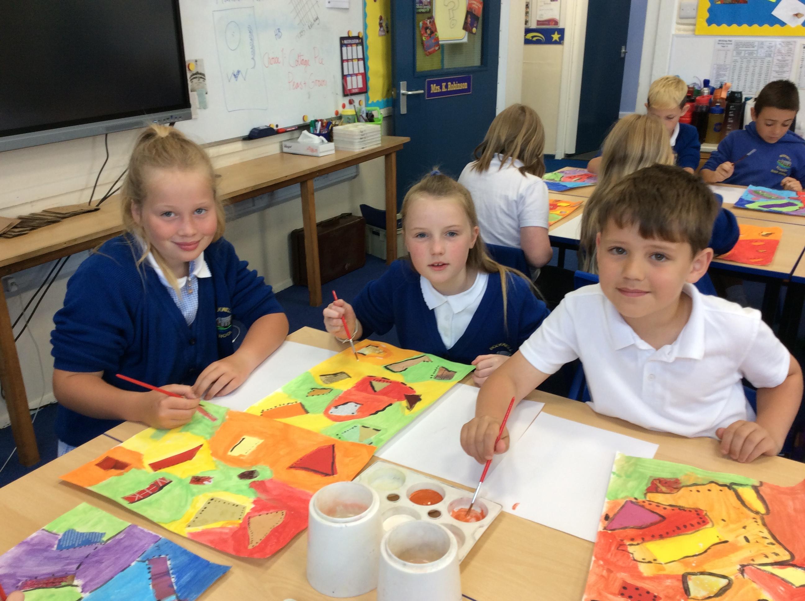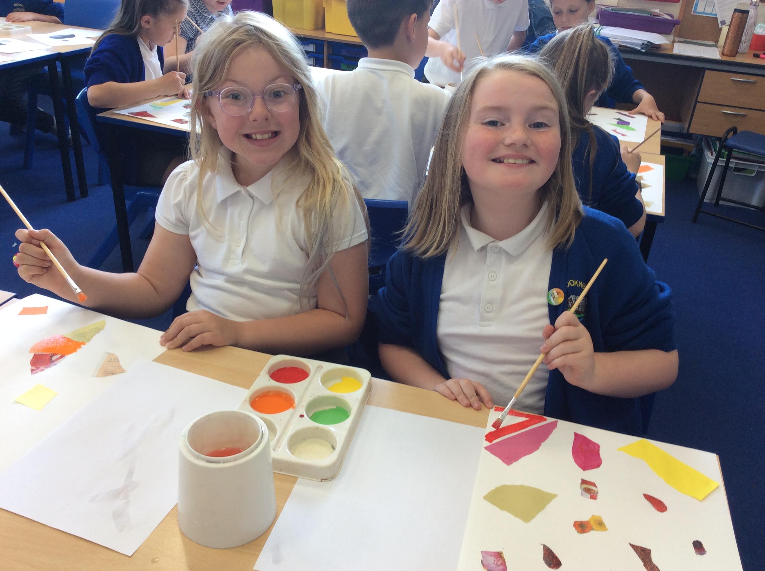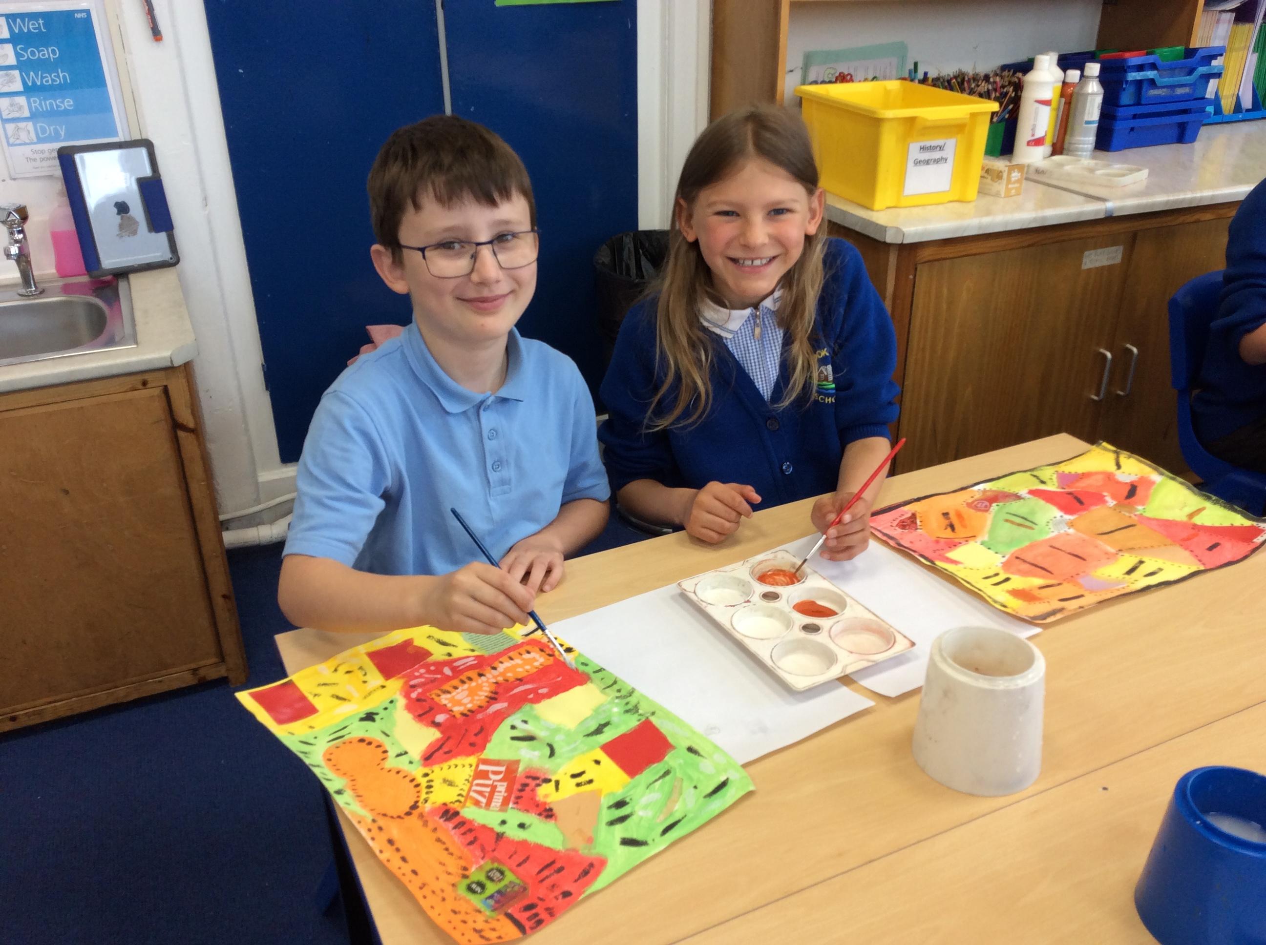 Year 4 have been very creative by using a range of mark making techniques to create large scale paintings based on their own drawings of feathers and shells.