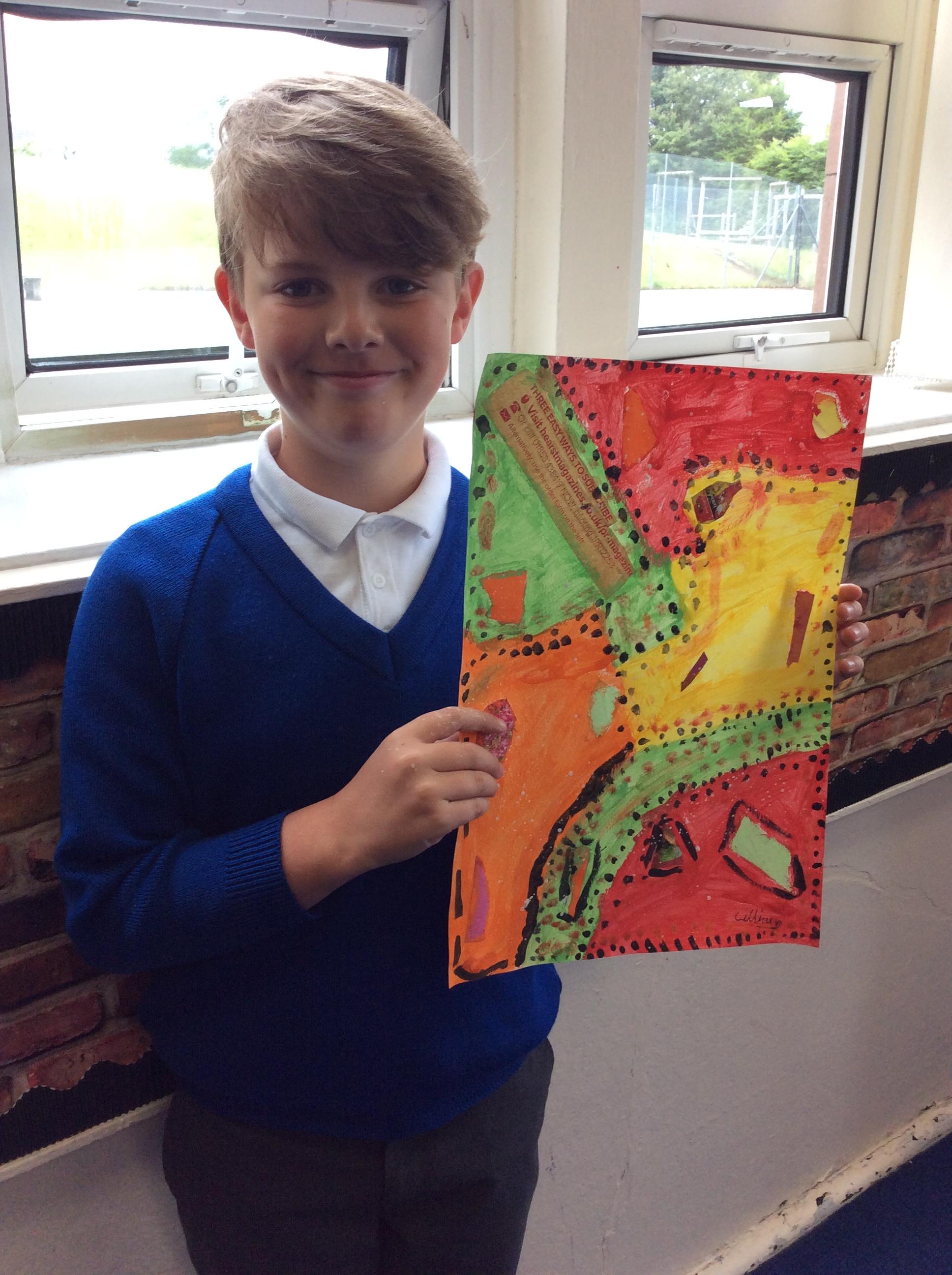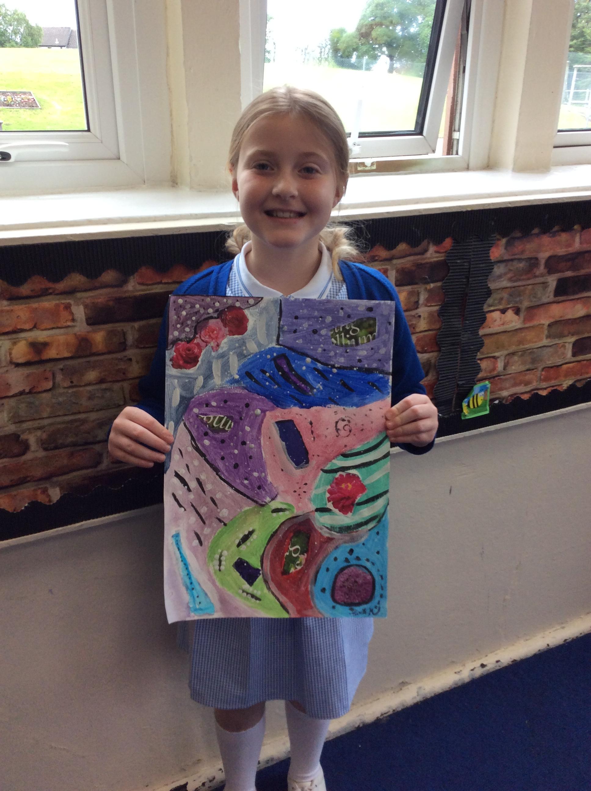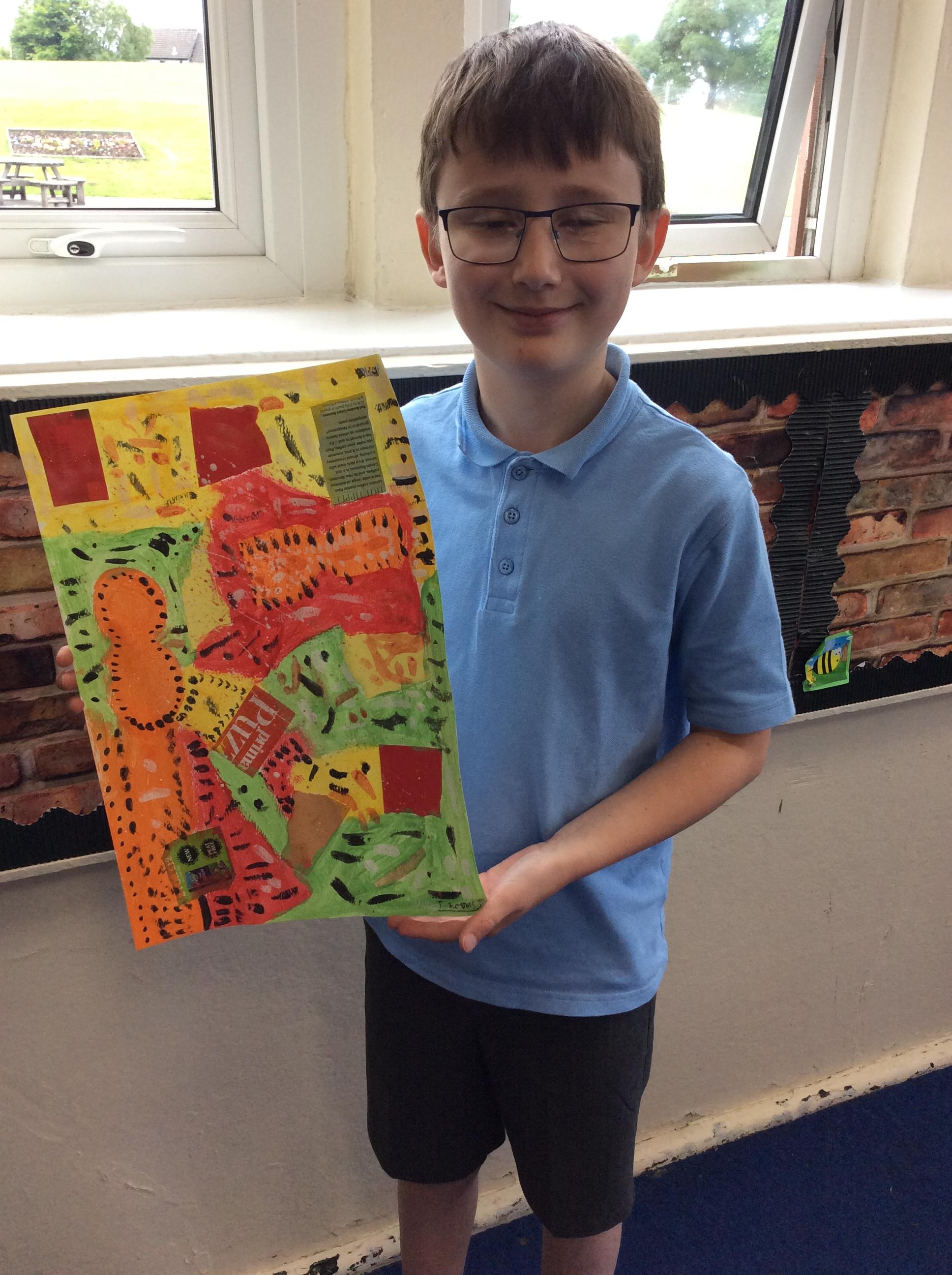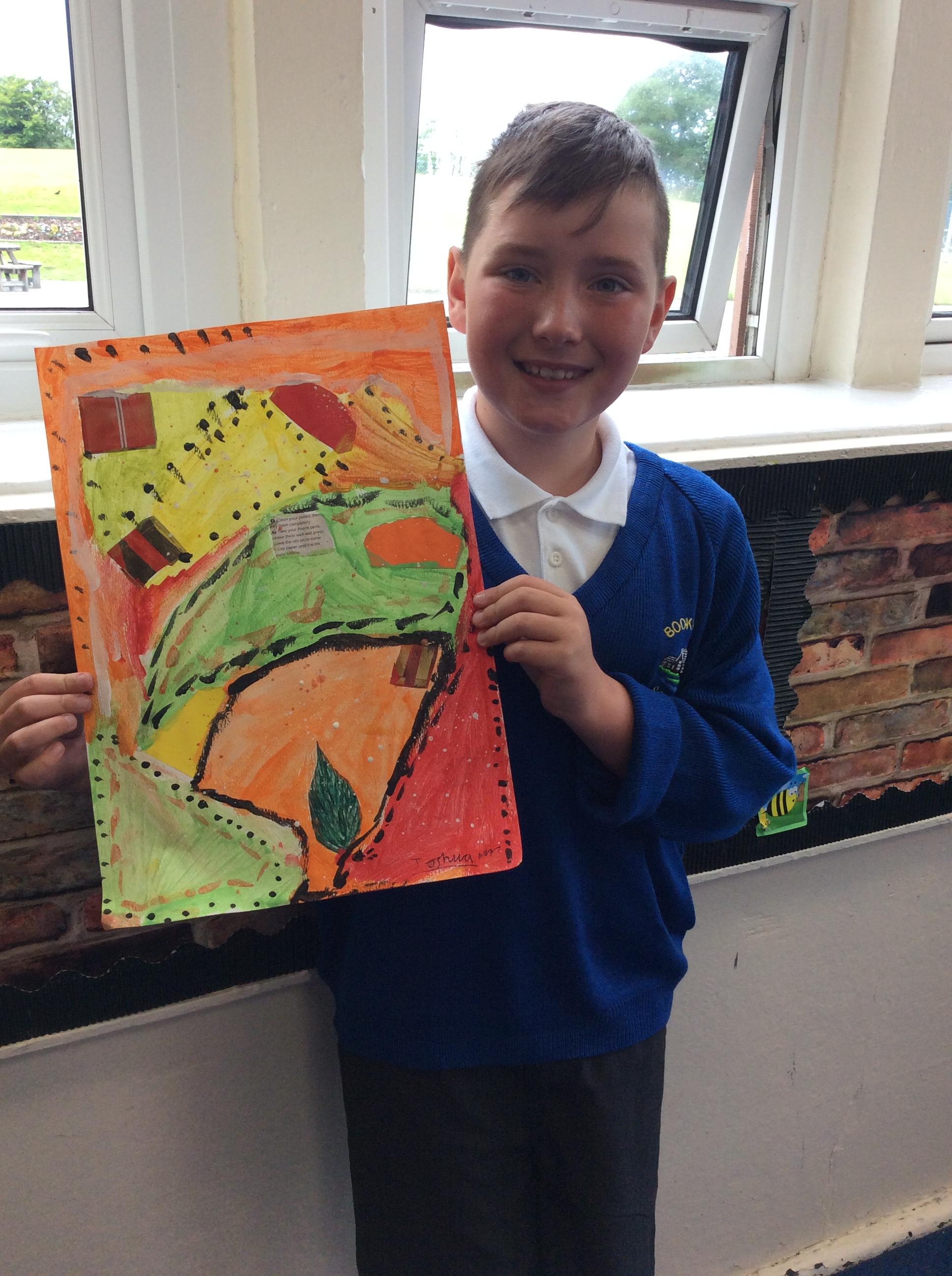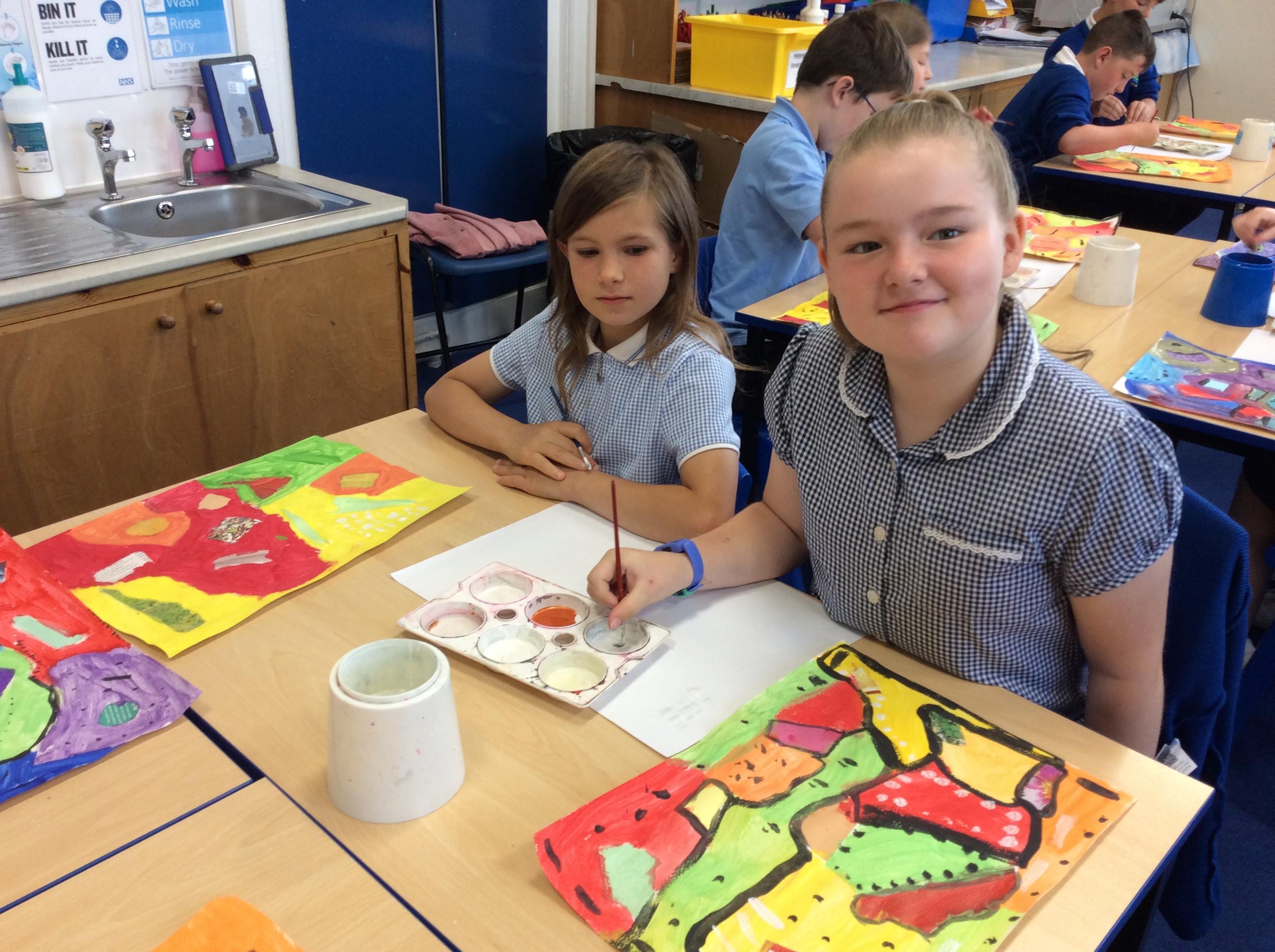 Year 4 have been very creative by using a range of mark making techniques to create large scale paintings based on their own drawings of feathers and shells.