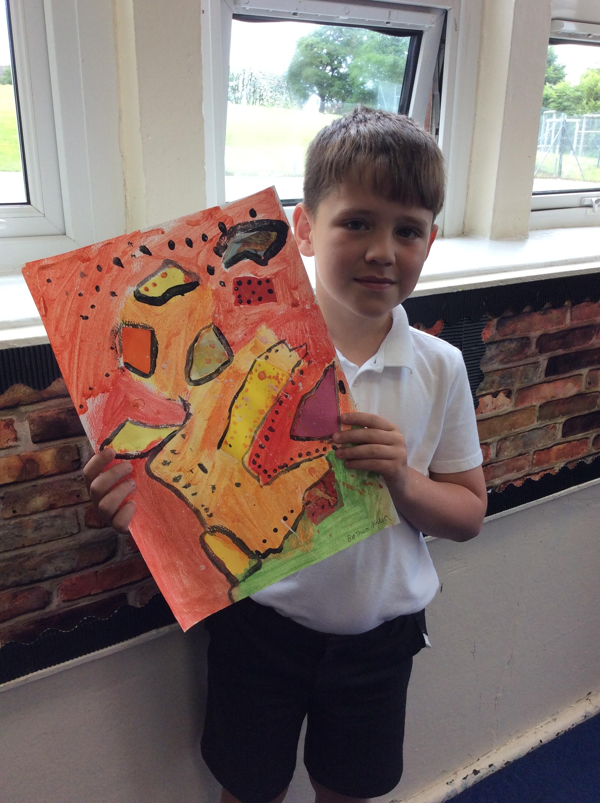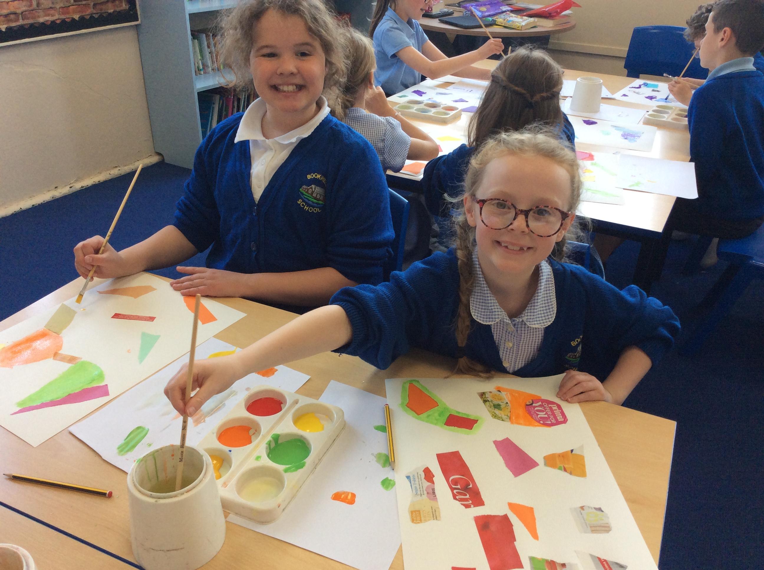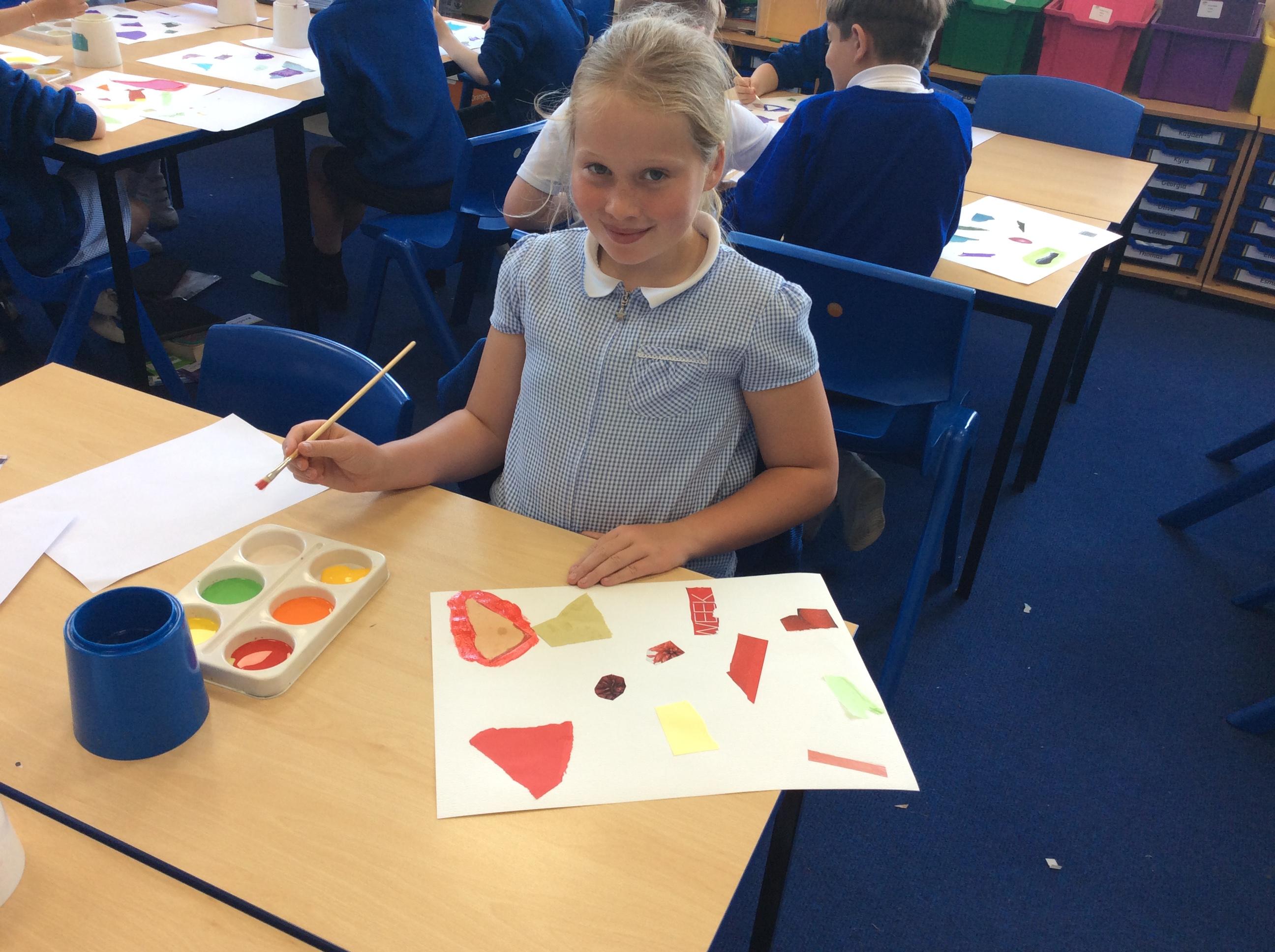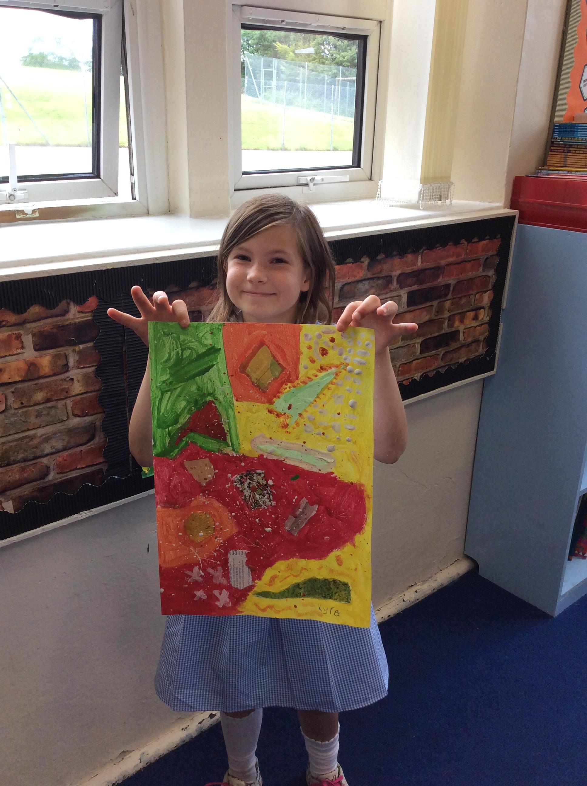 Year 4 have been very creative by using a range of mark making techniques to create large scale paintings based on their own drawings of feathers and shells.