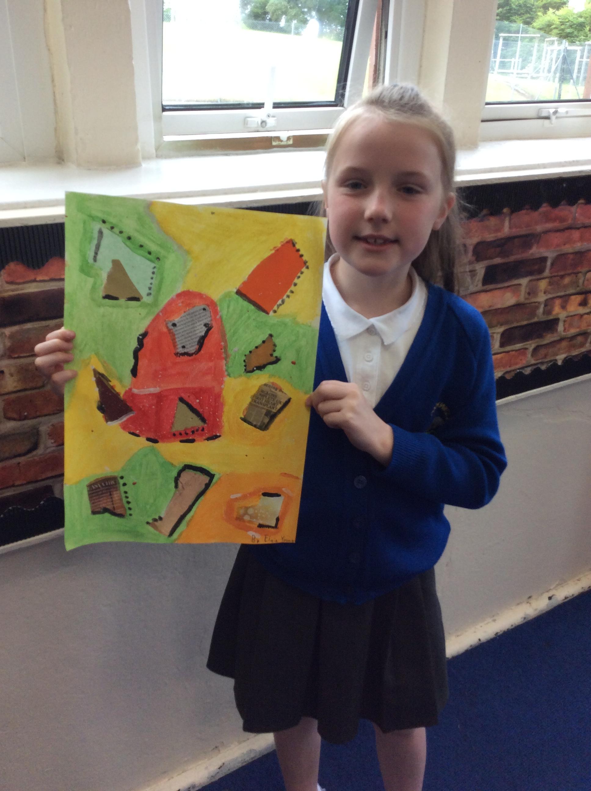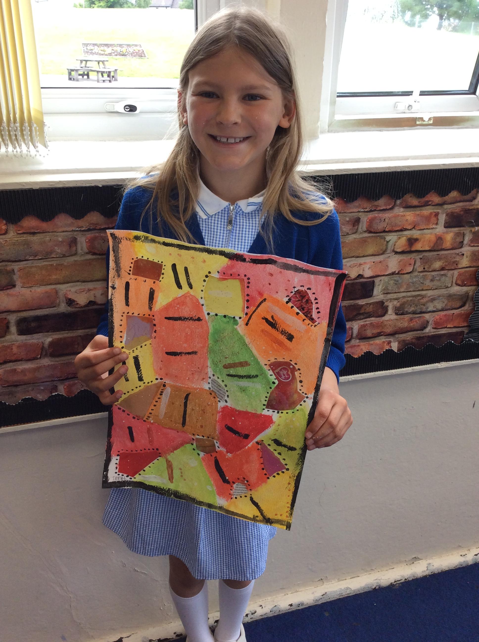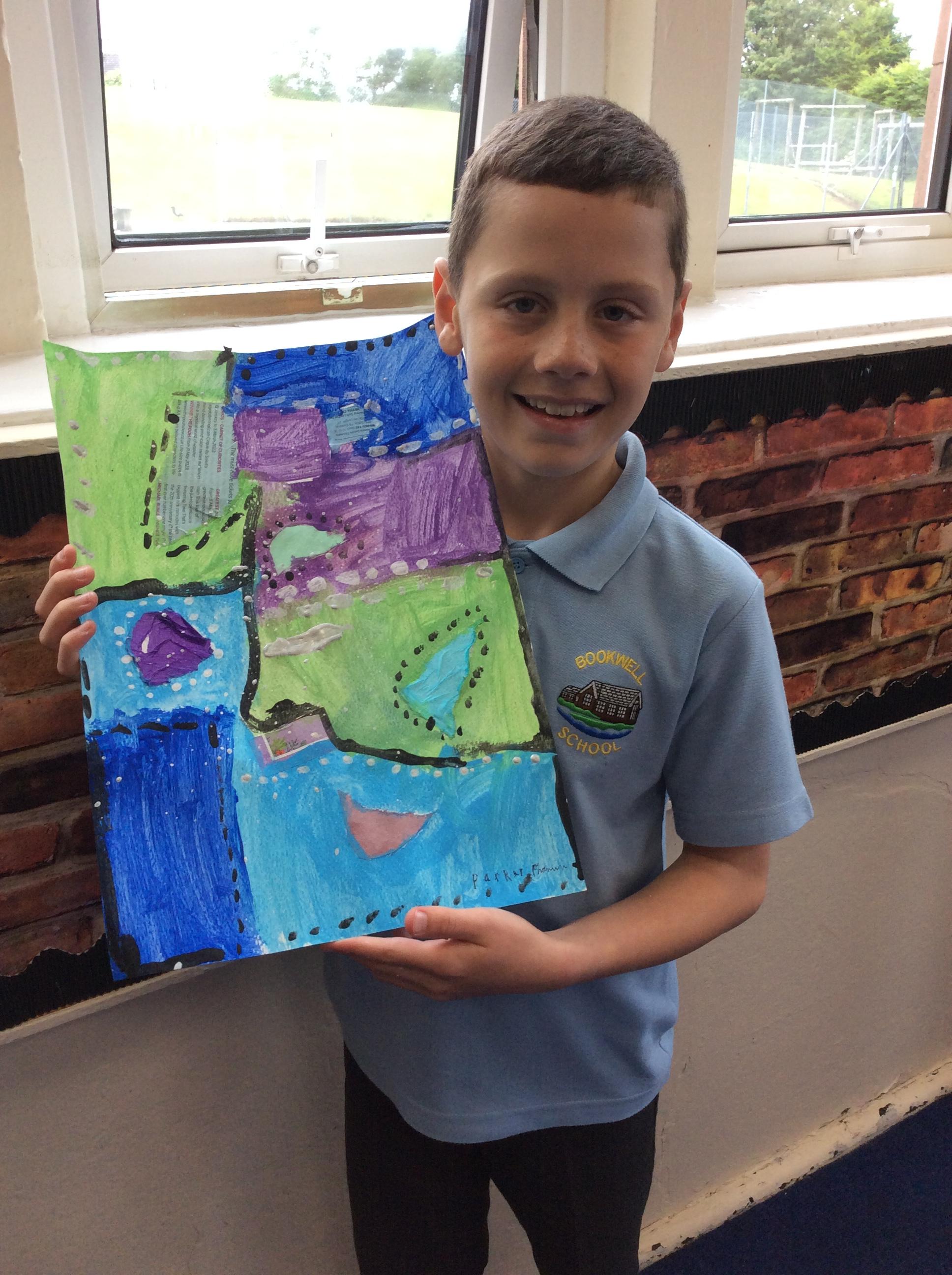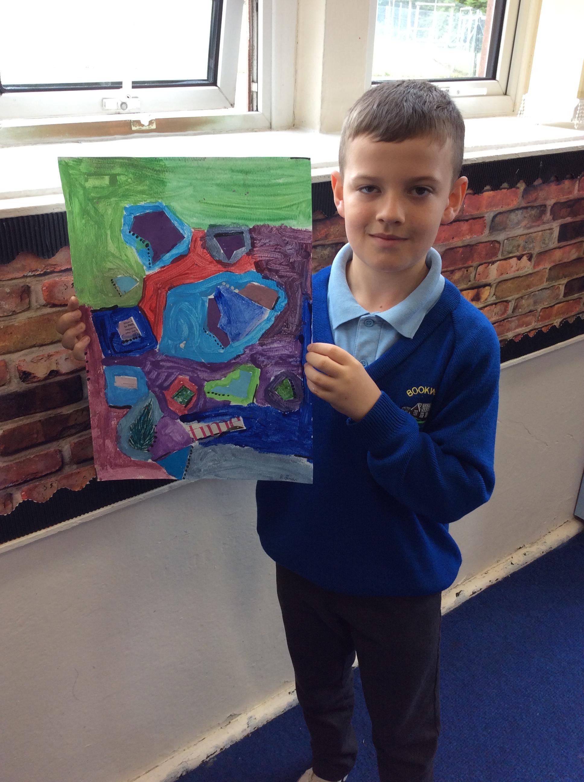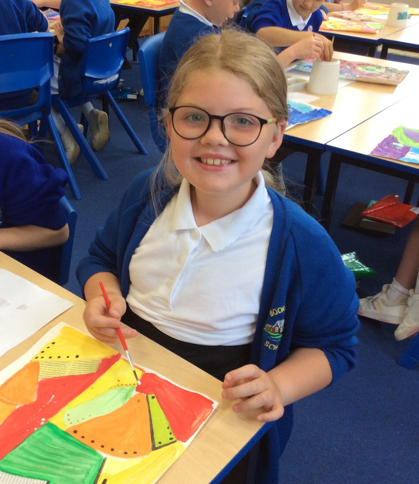 Year 4 have been very creative by using a range of mark making techniques to create large scale paintings based on their own drawings of feathers and shells.