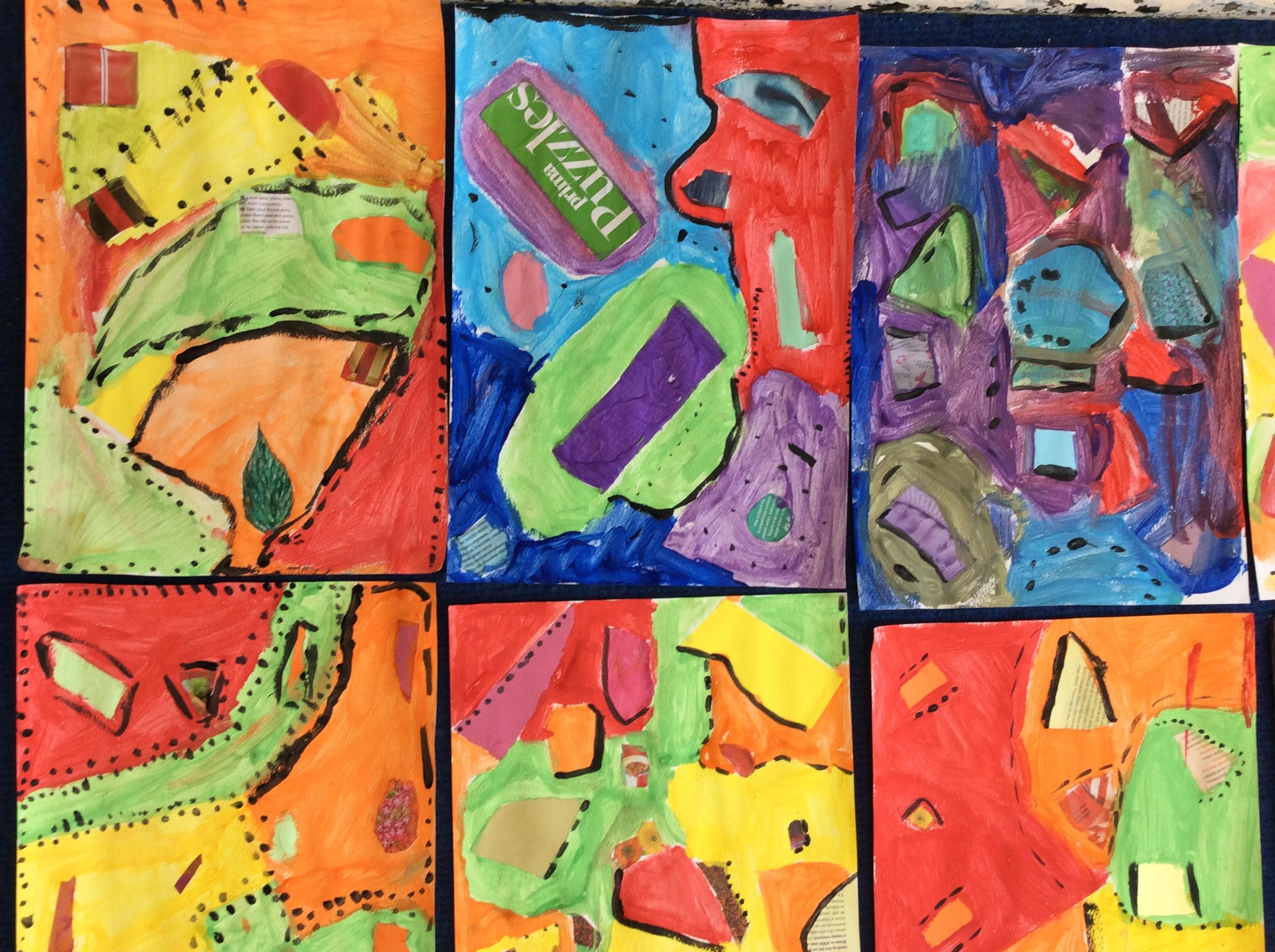 Arts Week. Layered Abstract Painting and Collage.