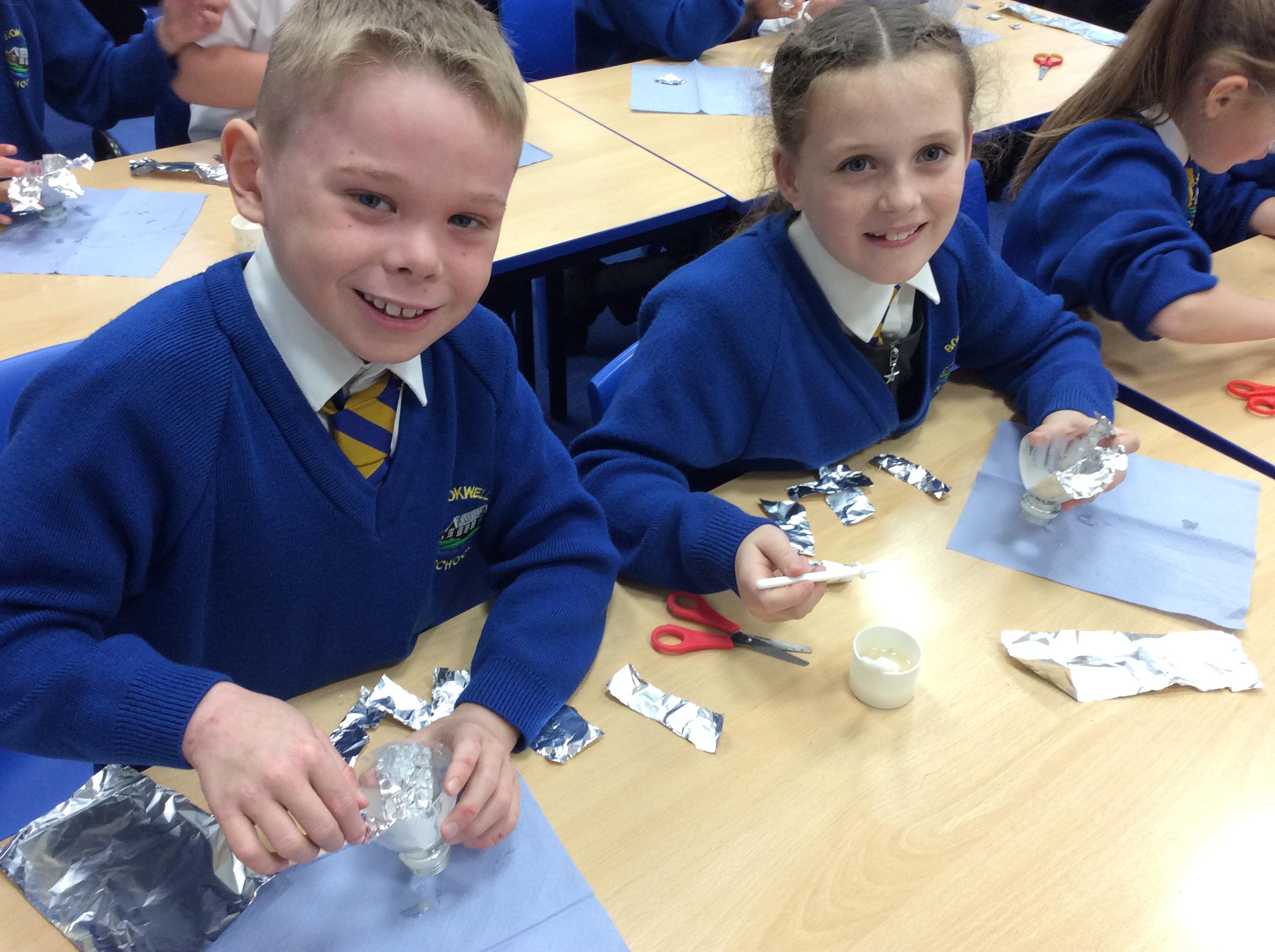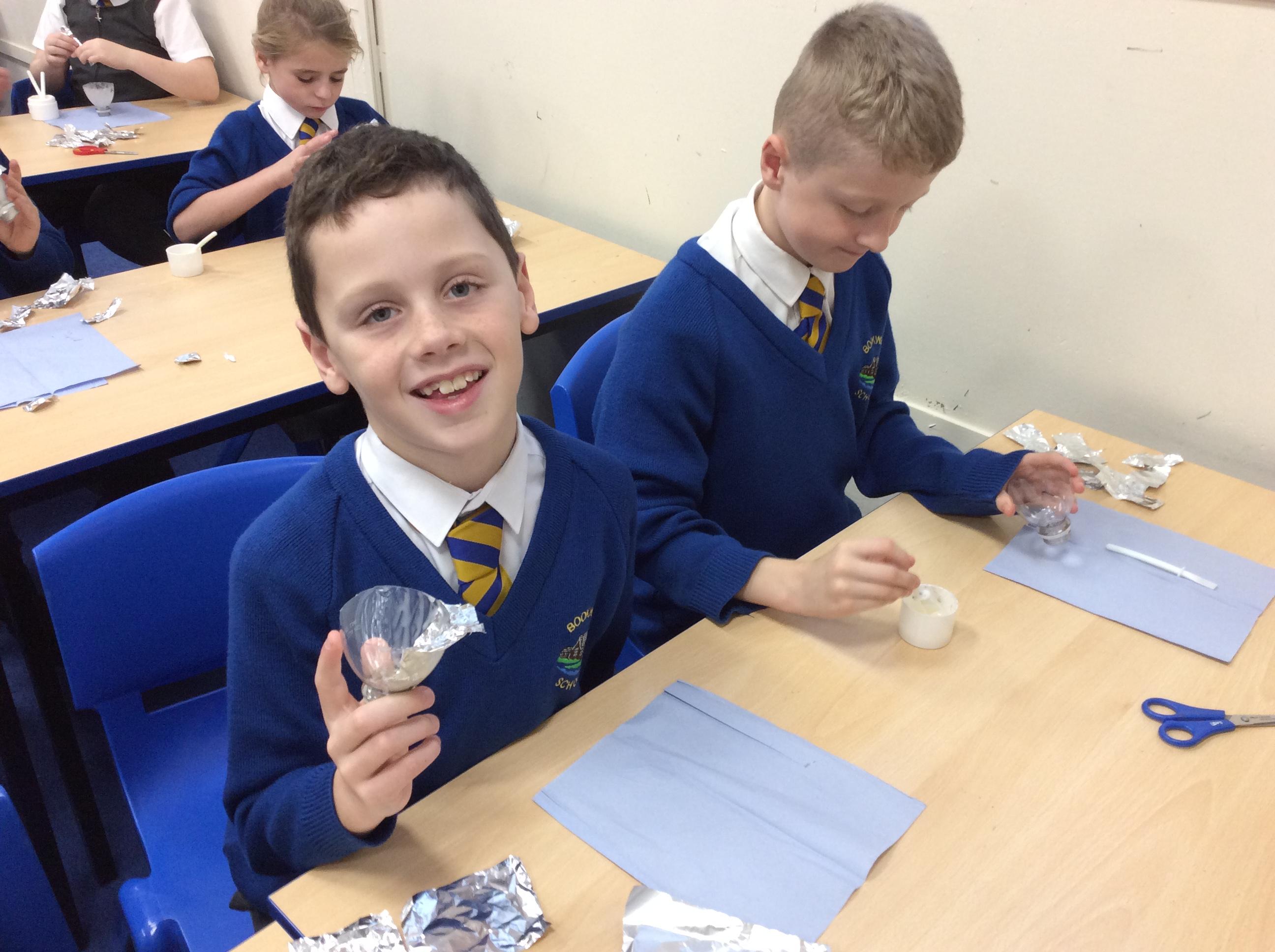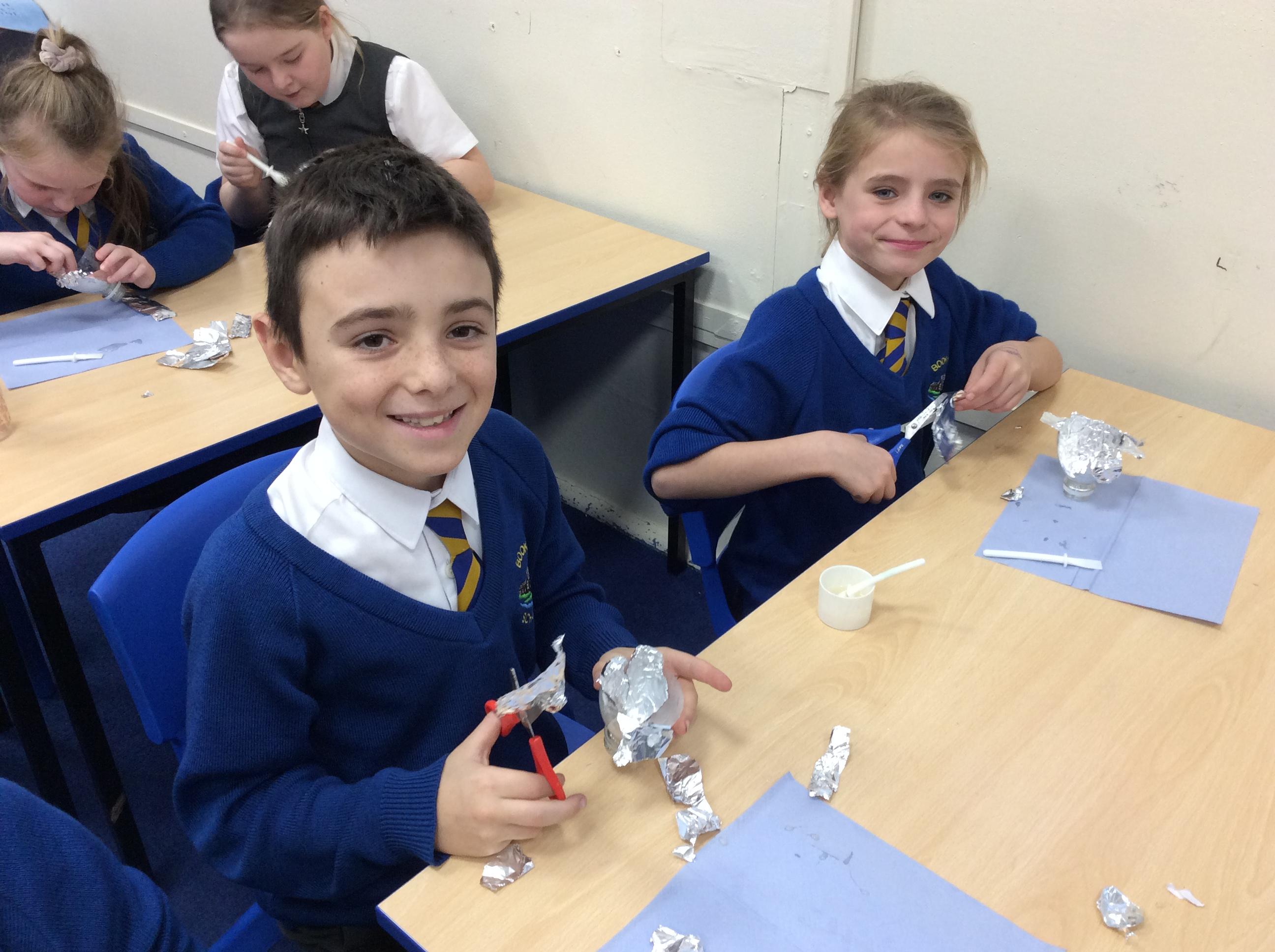 In Design Technology year 4 have skilfully made a reflector for their torch project.