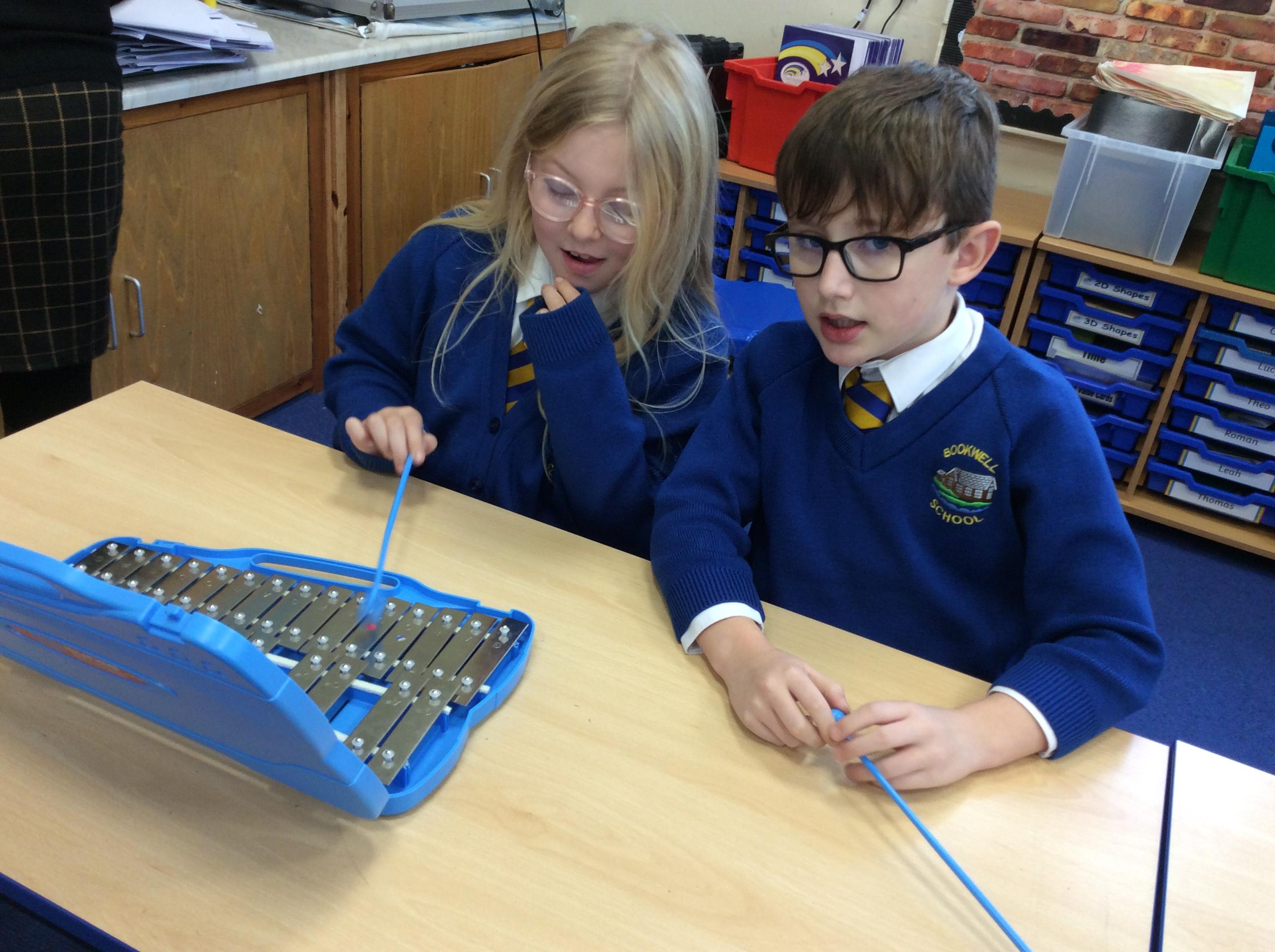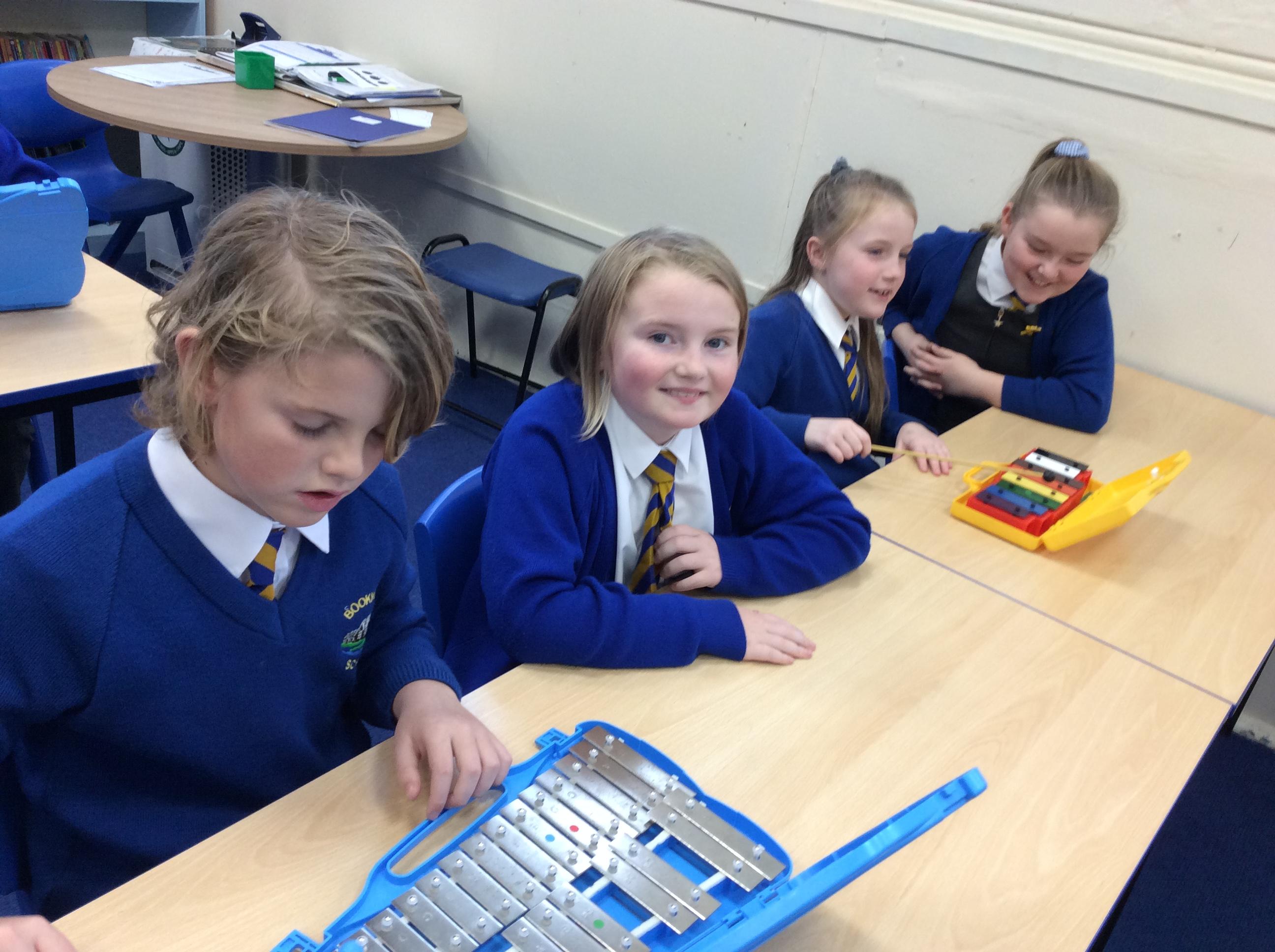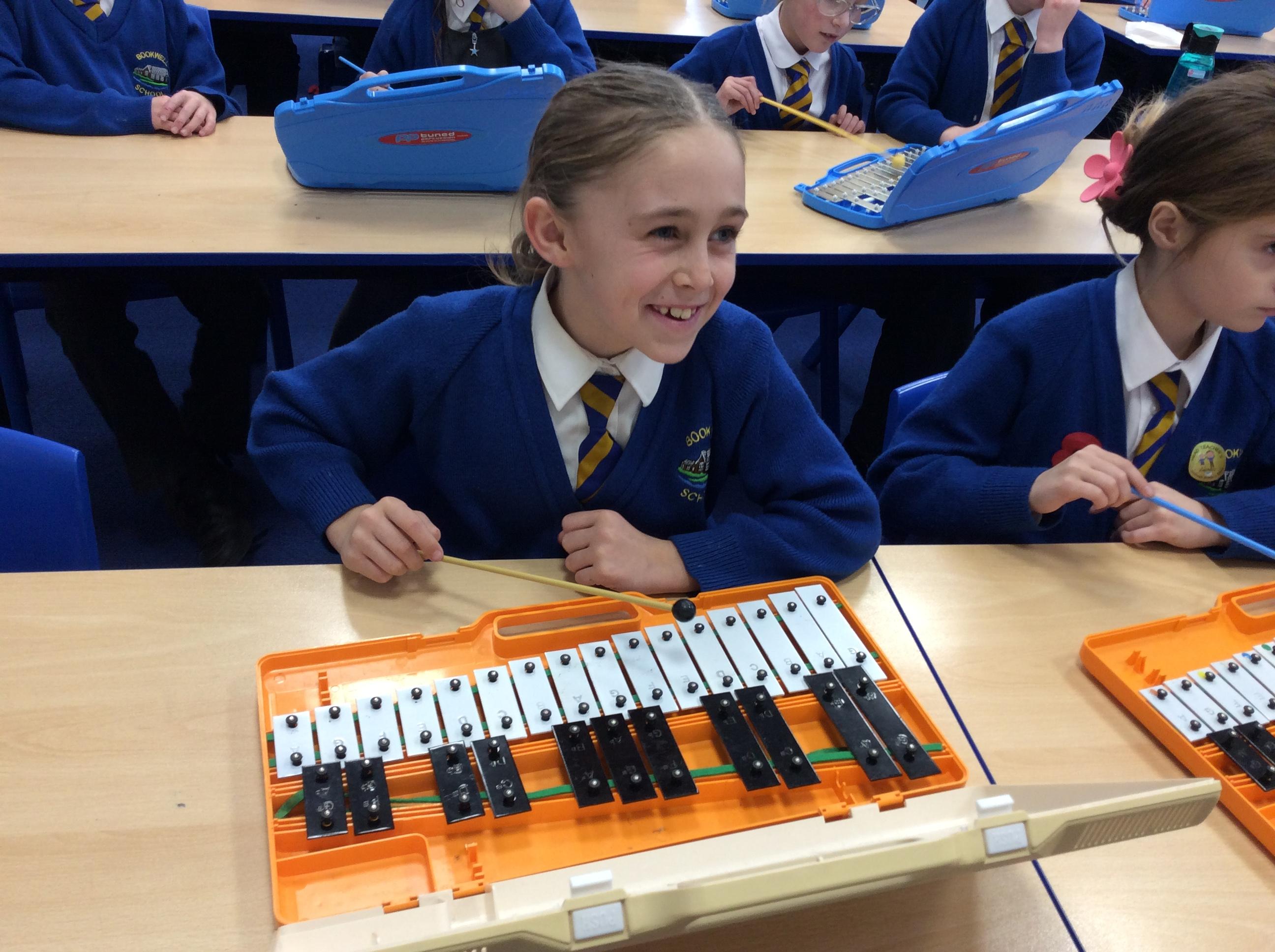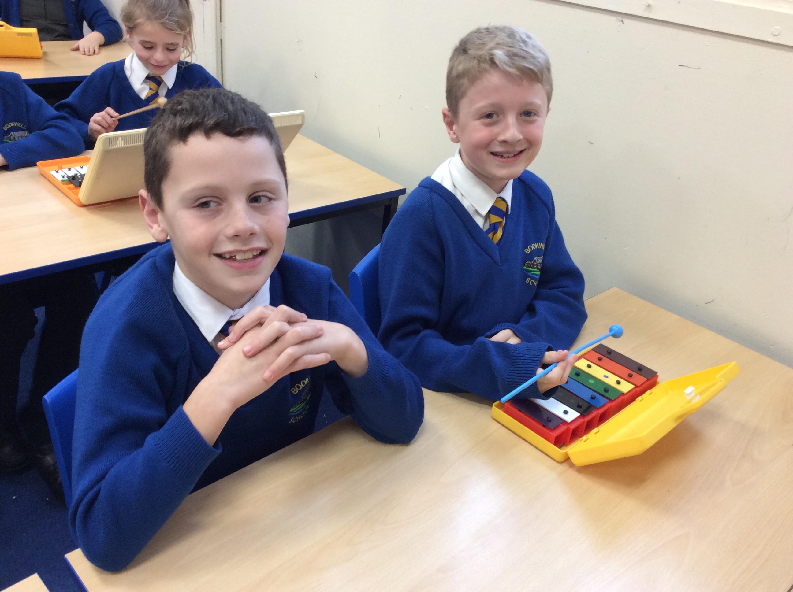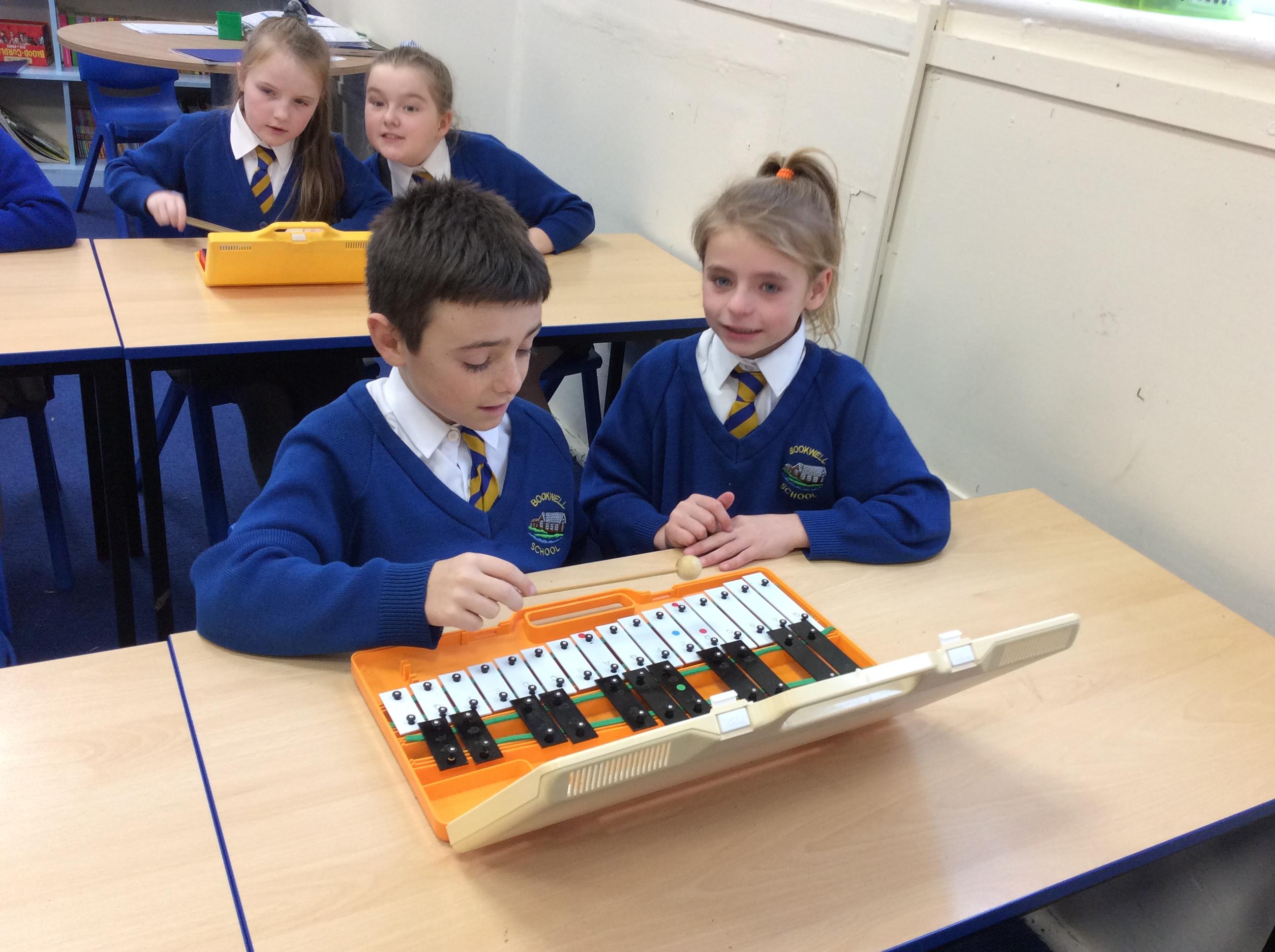 In Music year 4 have been helping their learning partner follow the music when playing the glockenspiel.